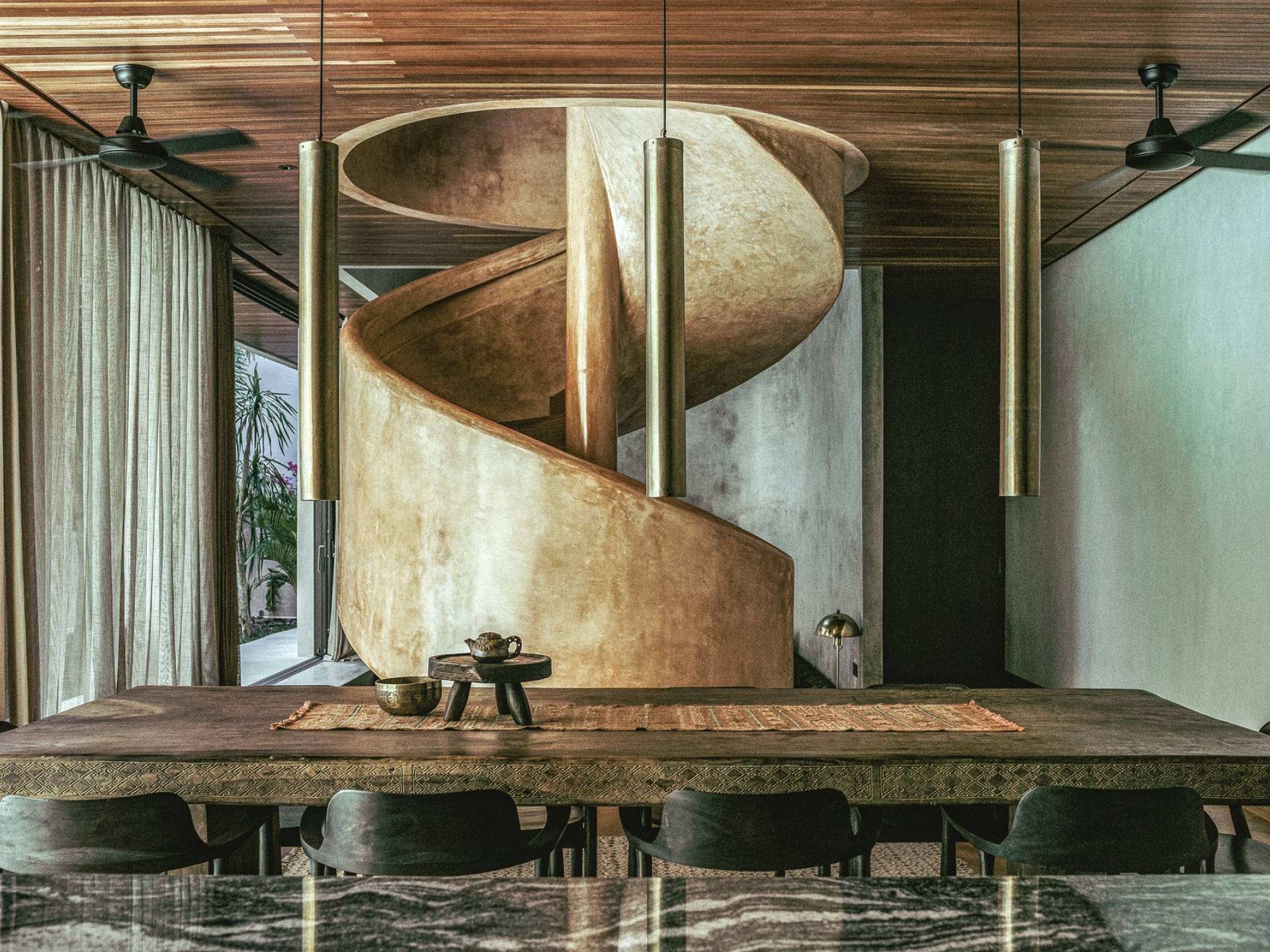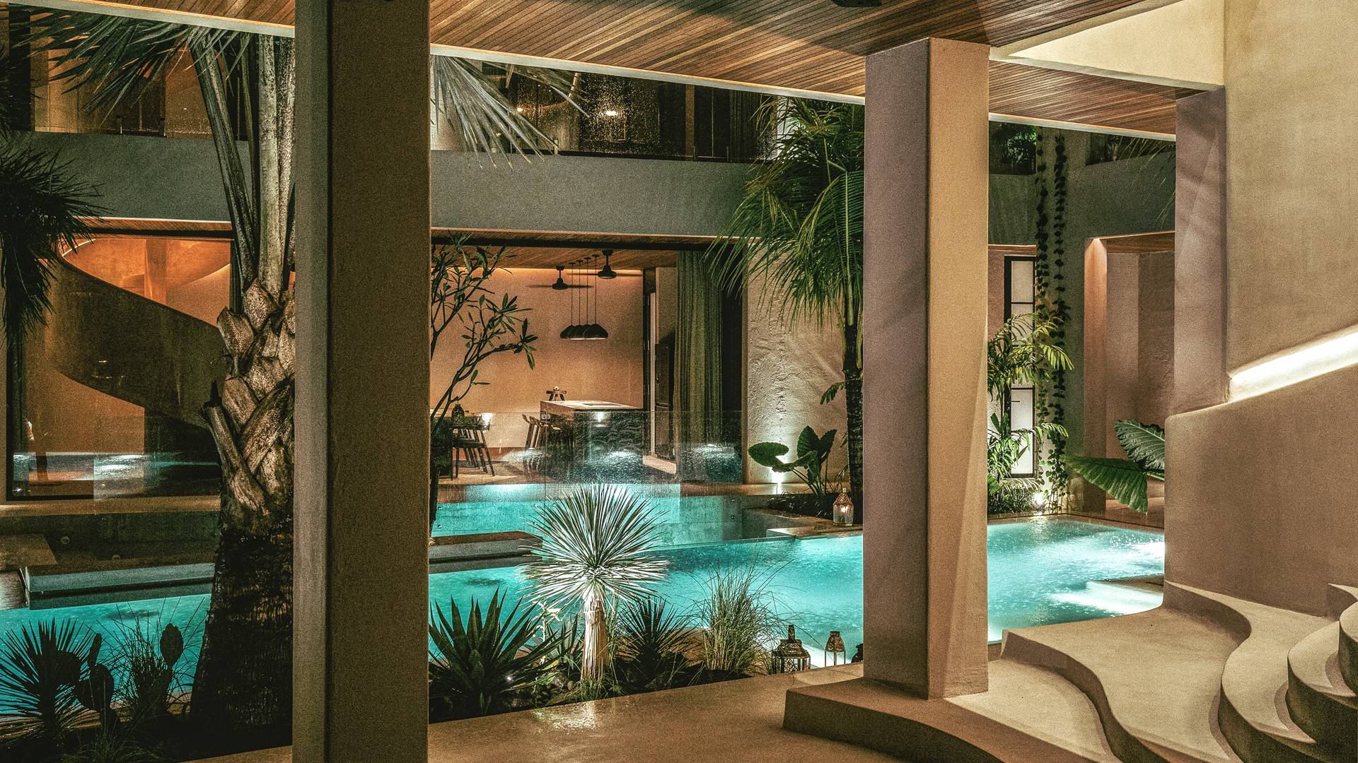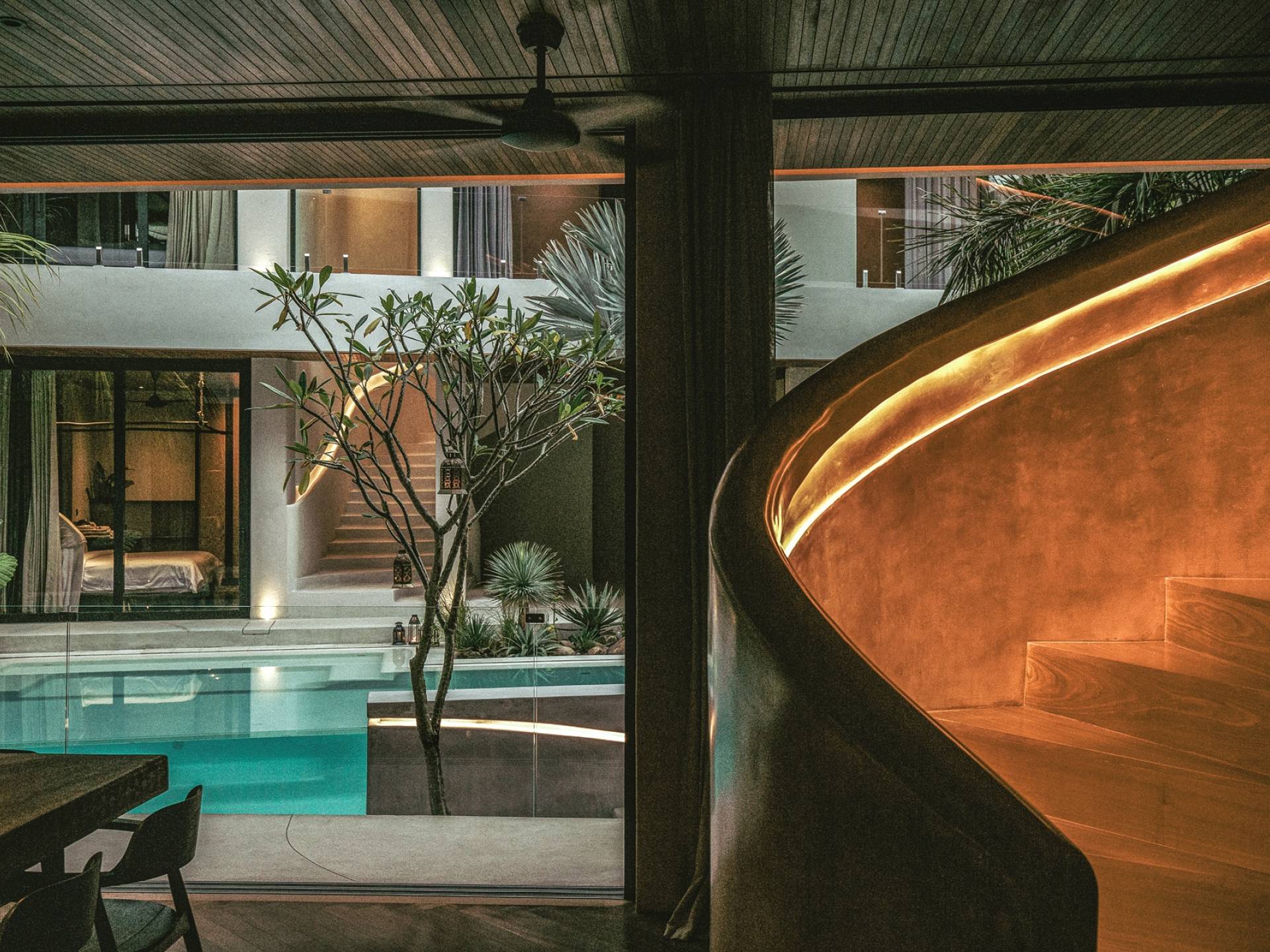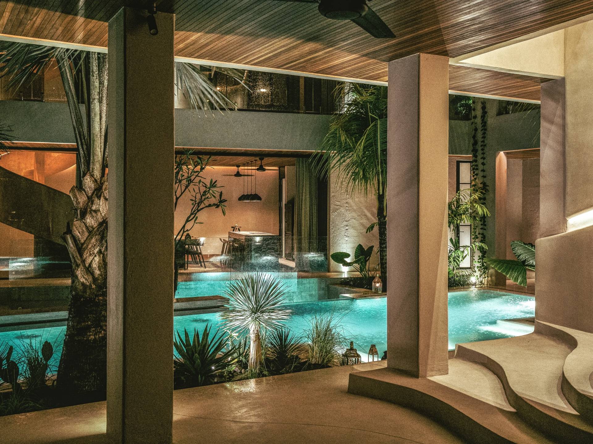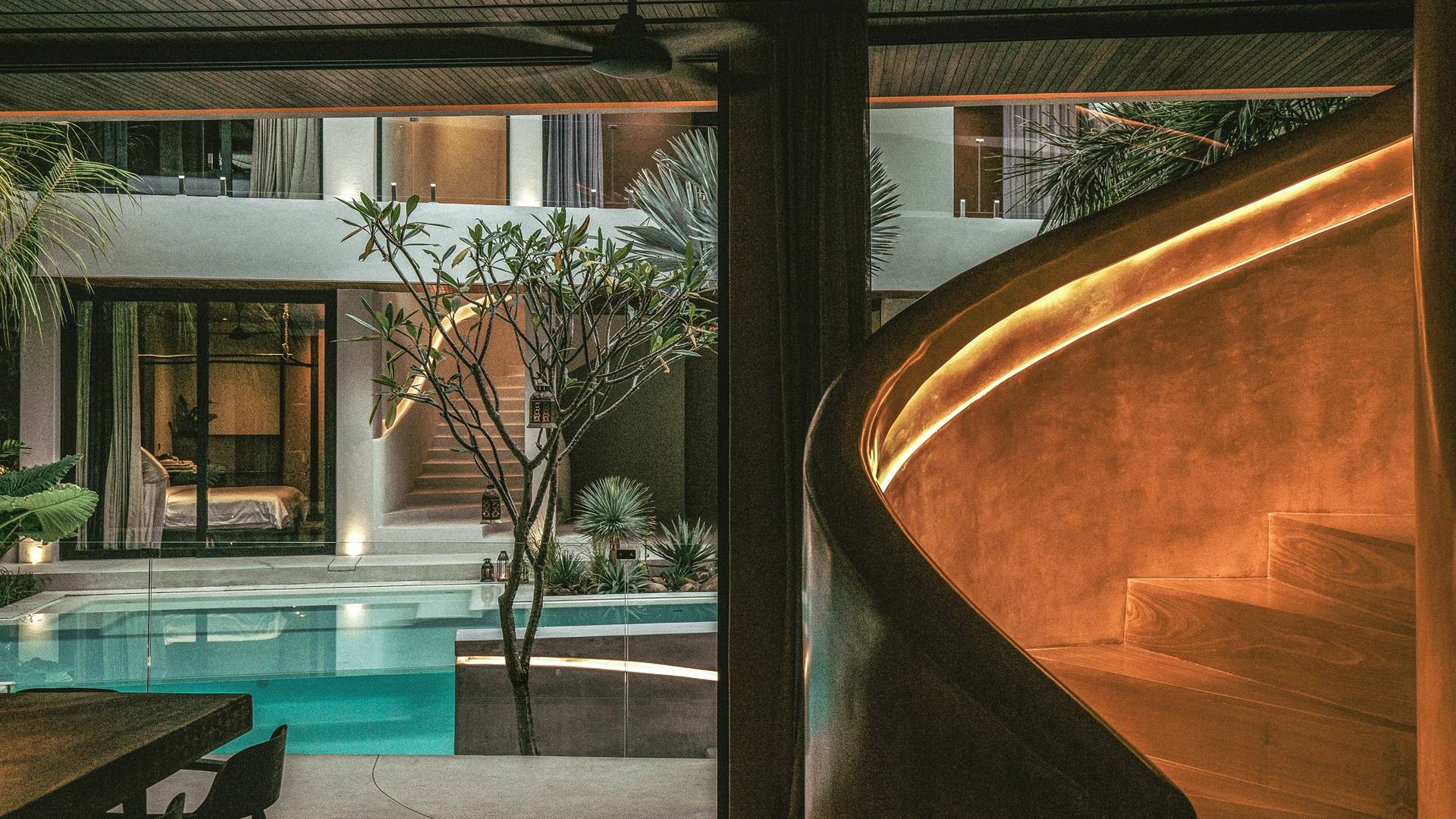 Redefiniendo la experiencia de la villa en Canggu con su nivel único y personalizado de lujo y comodidad, venga a descubrir y déjese cautivar por el alma que es The Turiya. Reflejando la naturaleza y el paisaje de Bali, la paleta de colores de los interiores de The Turiya combina cálidos tonos tierra, oliva y verdes reales, que cobran vida a través de materiales de textura como madera, terrazo, latón cepillado, terciopelo, pisos de cemento pulido y cal. paredes lavadas.