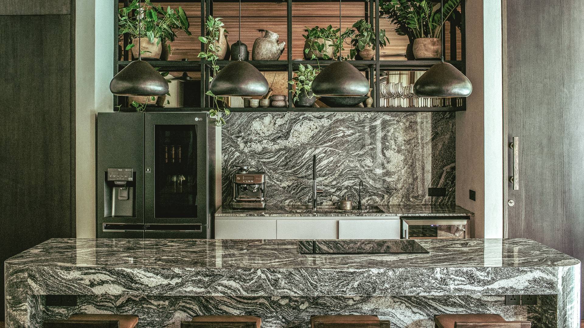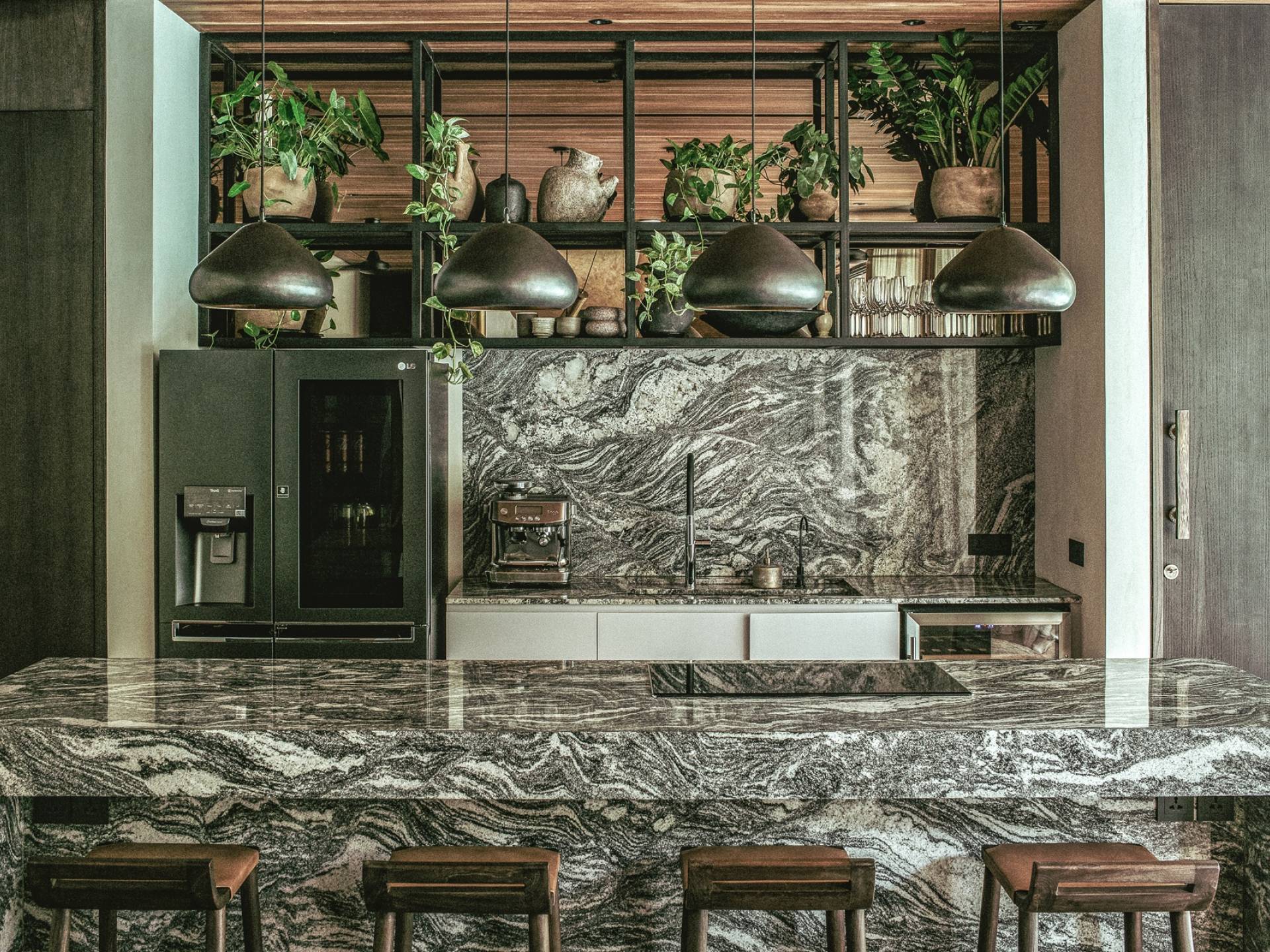 El Turiya tiene 3 cocinas. La cocina para invitados hecha a medida está hecha de granito, su grano refleja las olas de Canggu y sus cristales energizan y calman el espacio. Una cocina comercial de servicio completo alberga a nuestro chef privado que atenderá sus necesidades culinarias y tenemos una cocina en la azotea más informal y un bar en la azotea.
