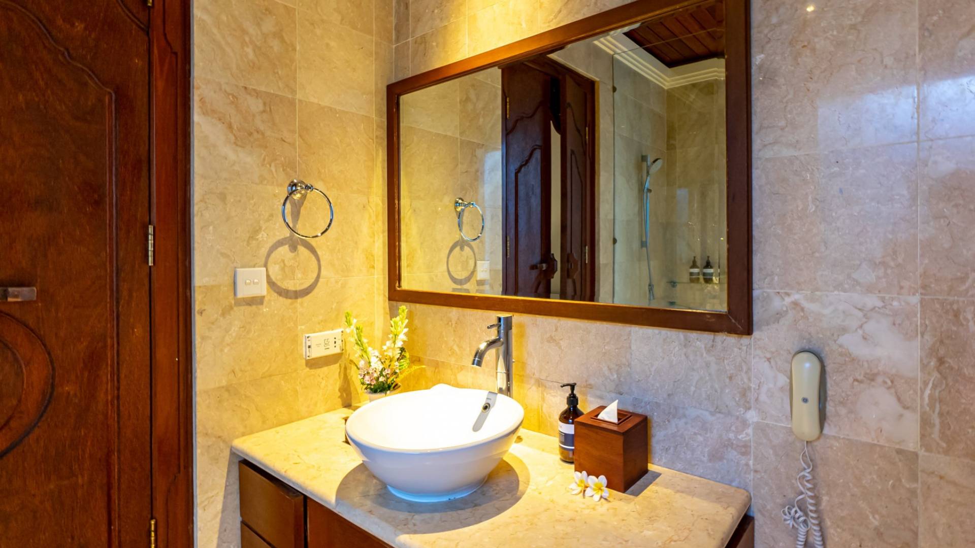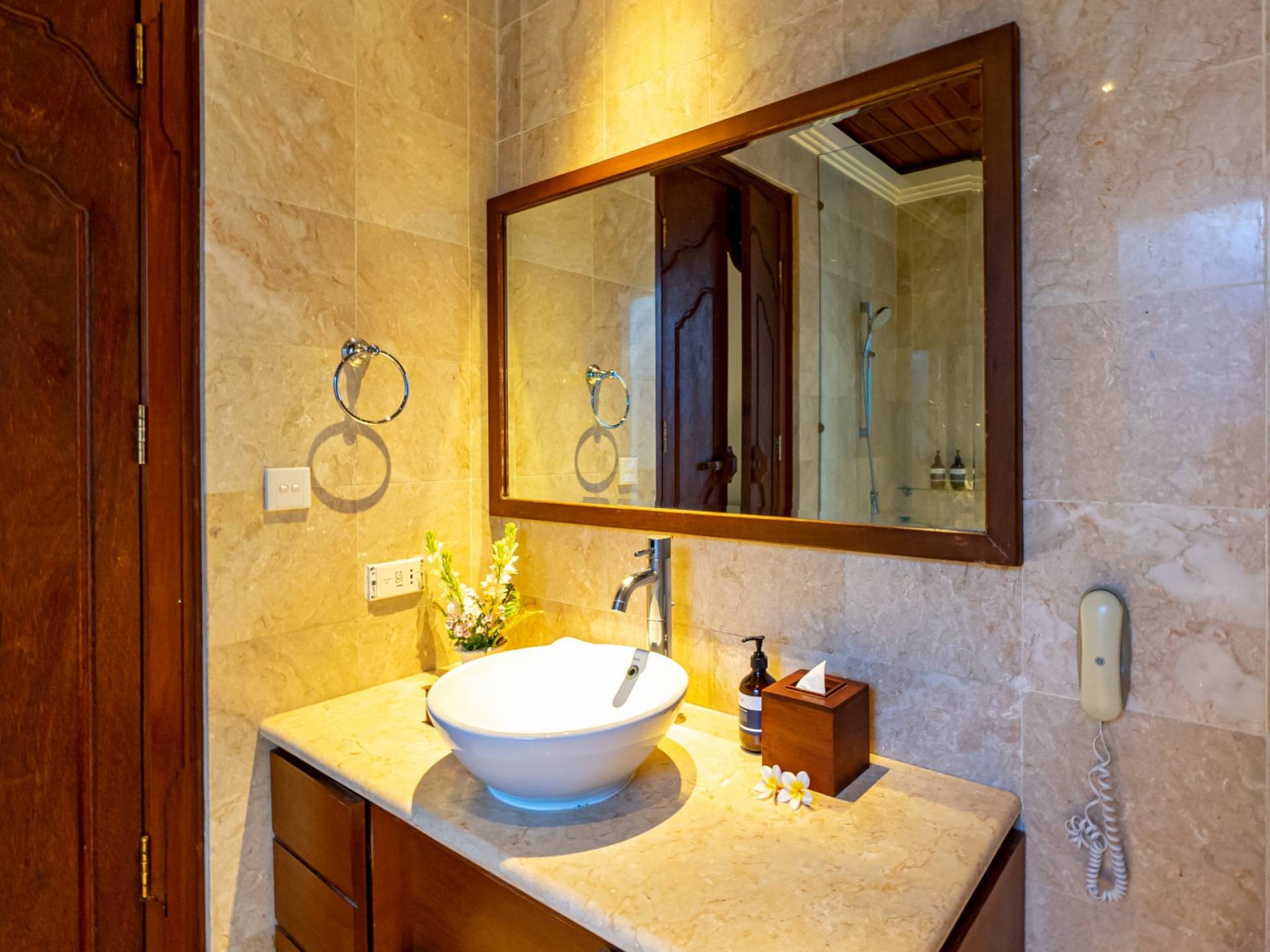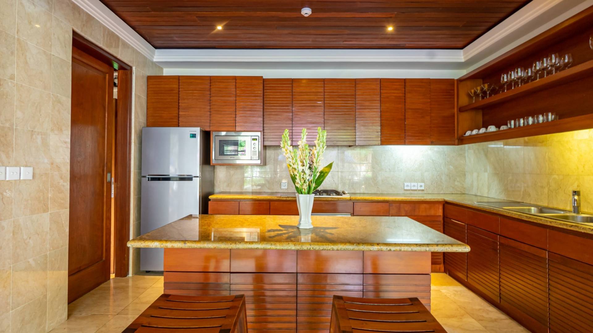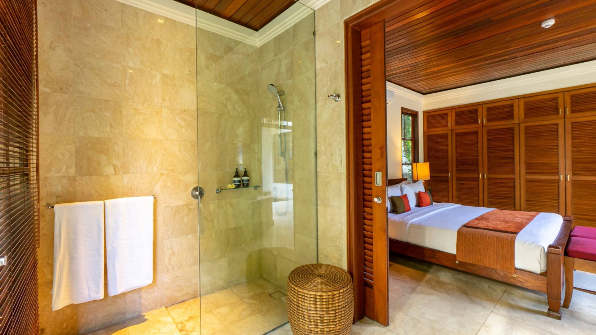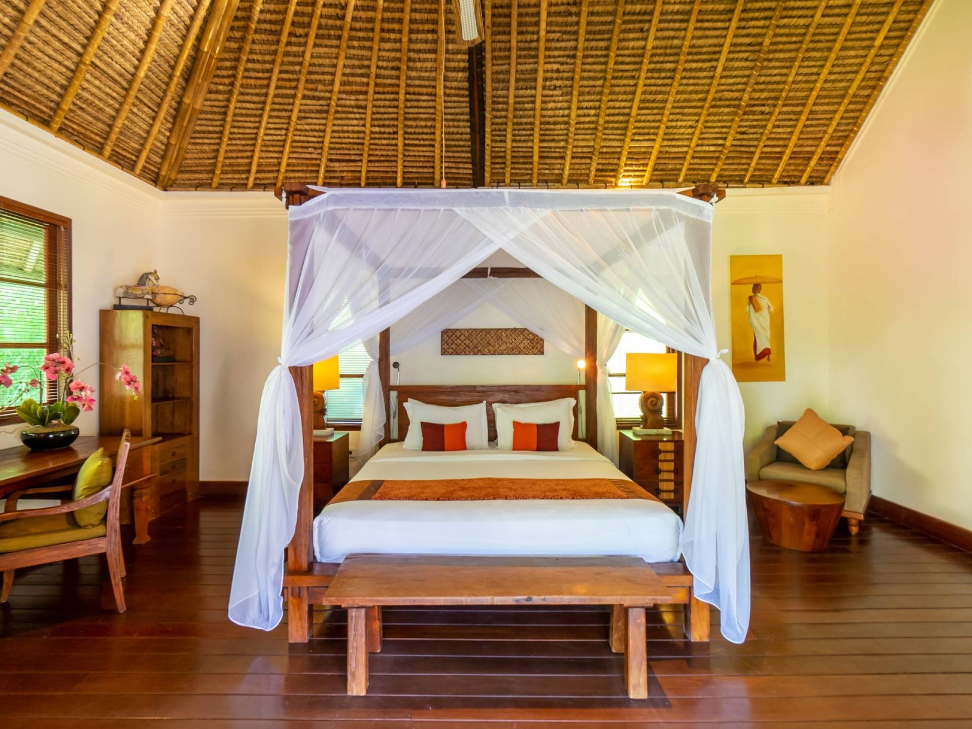 Cada una de las habitaciones tiene camas dobles, TV, aire acondicionado y está ubicada muy cerca para garantizar la máxima privacidad. Todos con baño y grandes armarios de madera, dos de los baños en la planta baja se abren a la zona del jardín exterior y el otro a un jacuzzi exterior. El dormitorio principal en el piso superior personifica la vida de lujo con una habitación separada para jacuzzi y duchas, respectivamente, y un balcón con vista al verde jardín de abajo. La decoración interior combina a la perfección el confort moderno con el toque tradicional balinés con abundante luz natural.