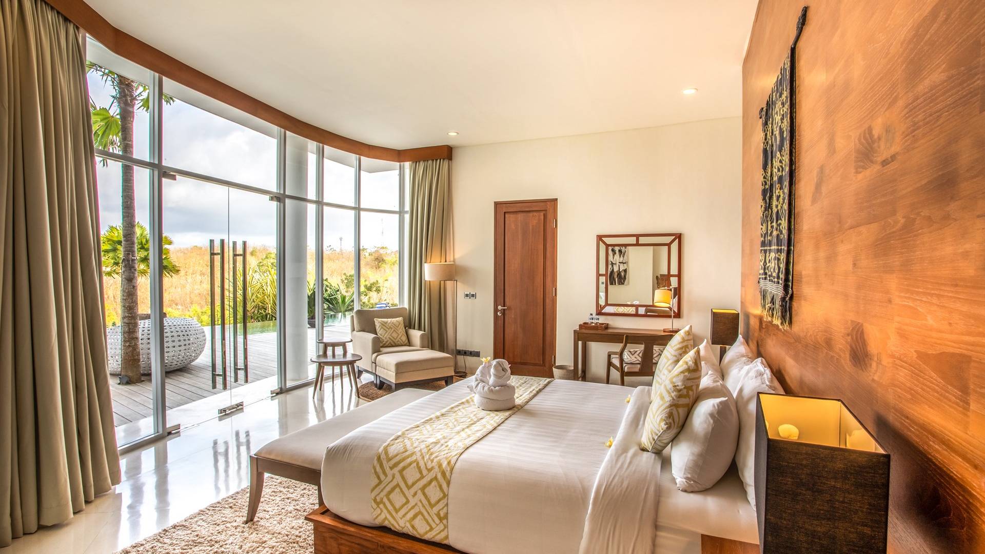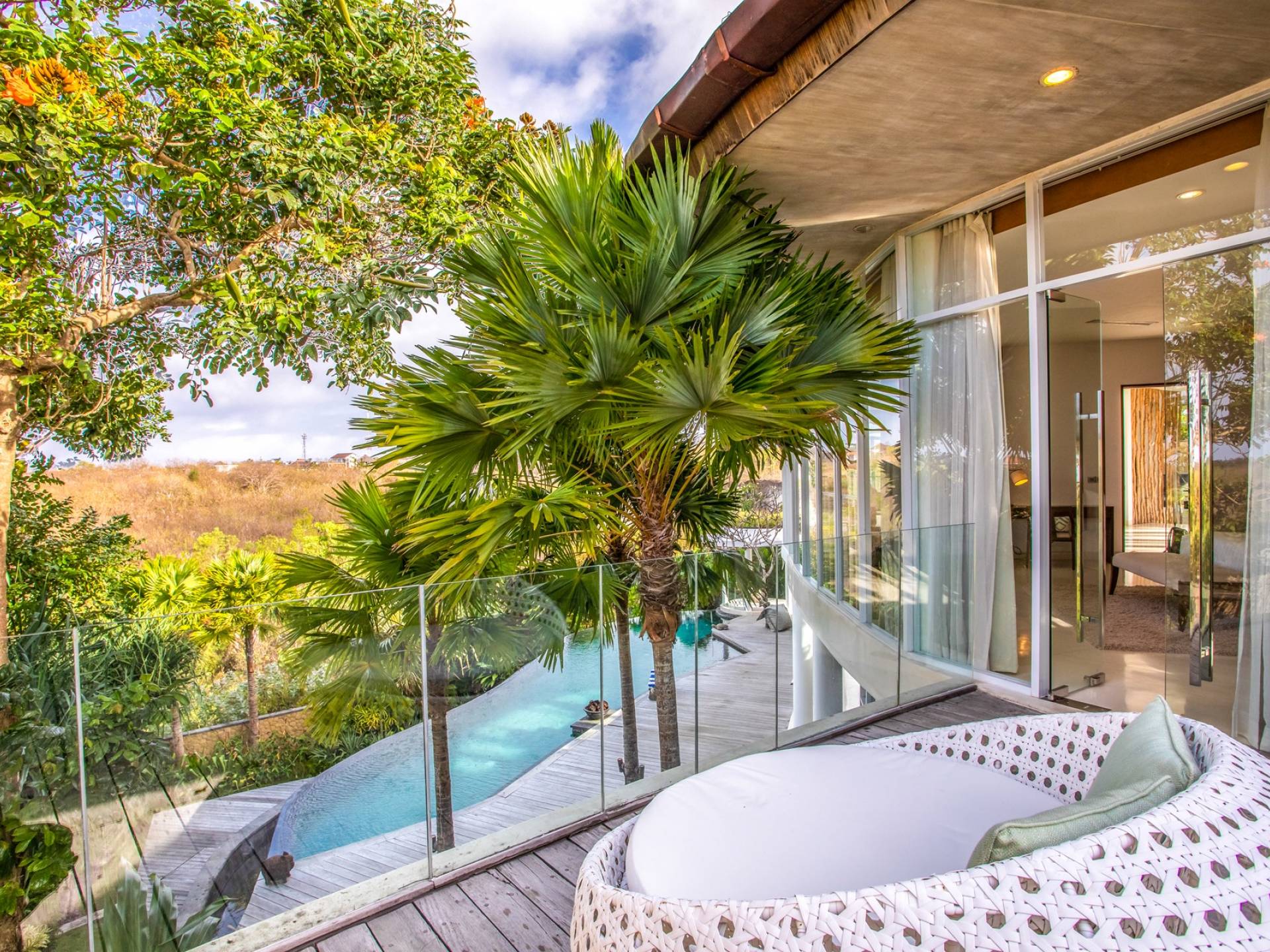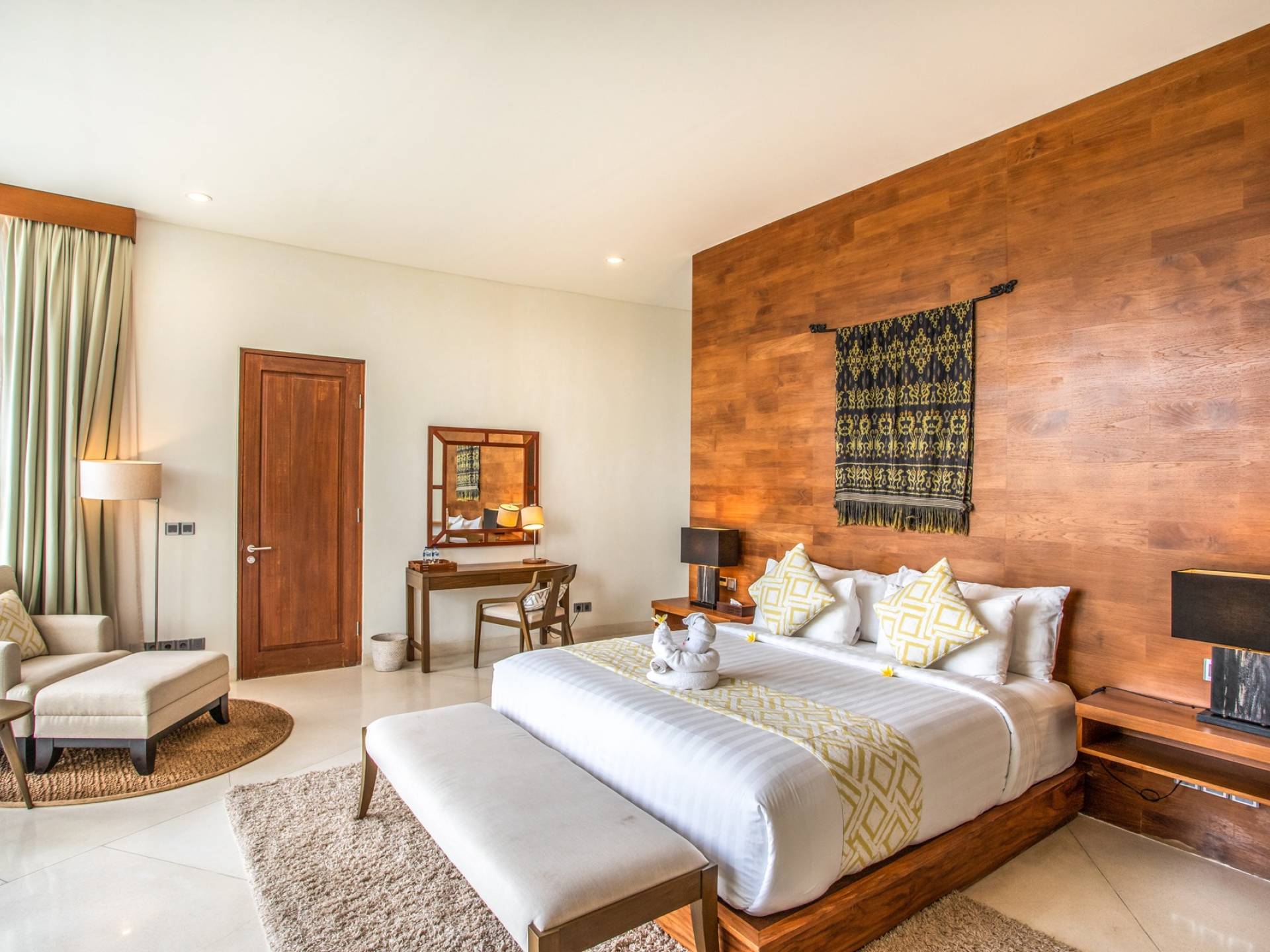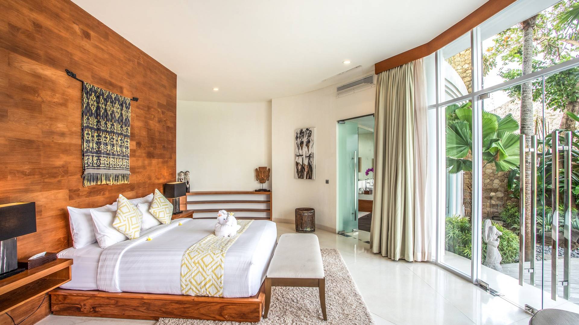 2 dormitorios se encuentran en el piso superior y 1 dormitorio en el primer piso. Todas las habitaciones cuentan con una cama tamaño king grande y cómoda, caja de seguridad, vestidor, un impresionante baño en suite y una ducha separada. En toda la villa, disfrute de la vida residencial en su máxima expresión con características y muebles modernos junto con el sentido del estilo balinés. Dayu Mirah Resort cree en hacer que el lujo sea simple y gratificante al crear experiencias únicas para los huéspedes en un entorno y diseño alucinantes. Ubicado en el borde de un acantilado con una hermosa vista al jardín, Dayu Mirah Resort tiene factores asombrosos escritos por todas partes.