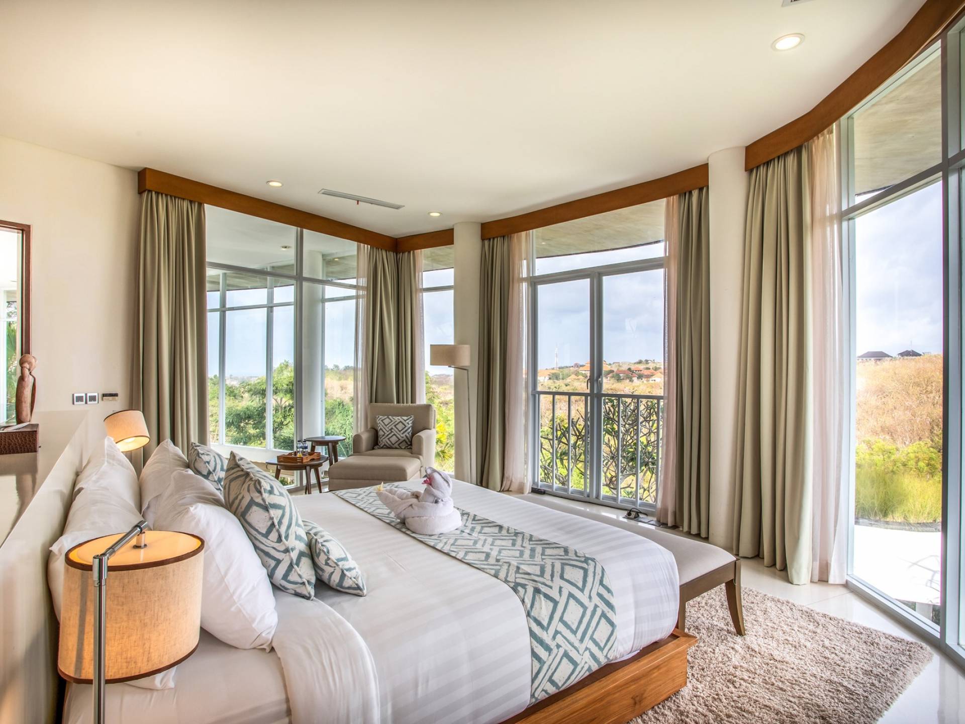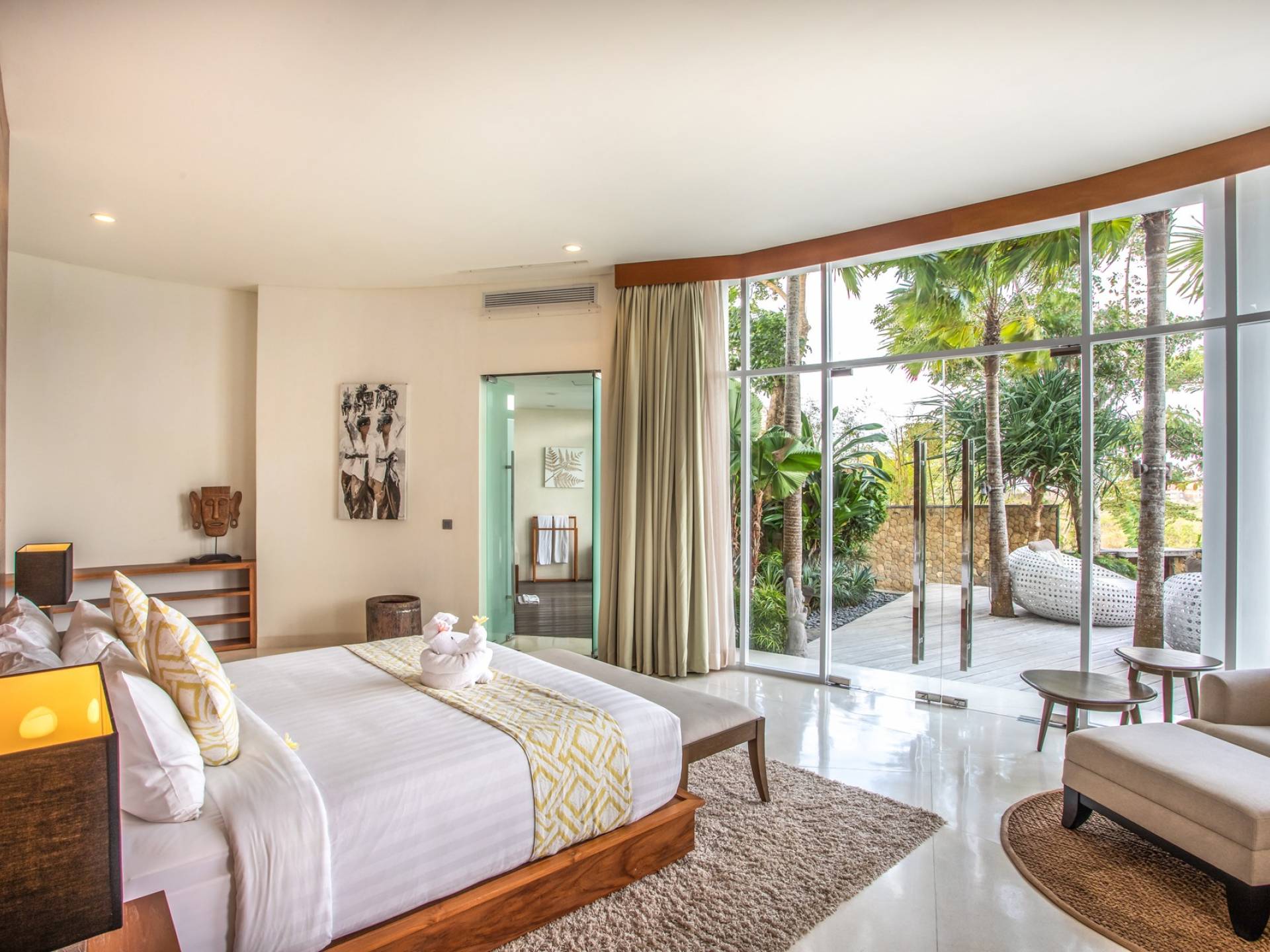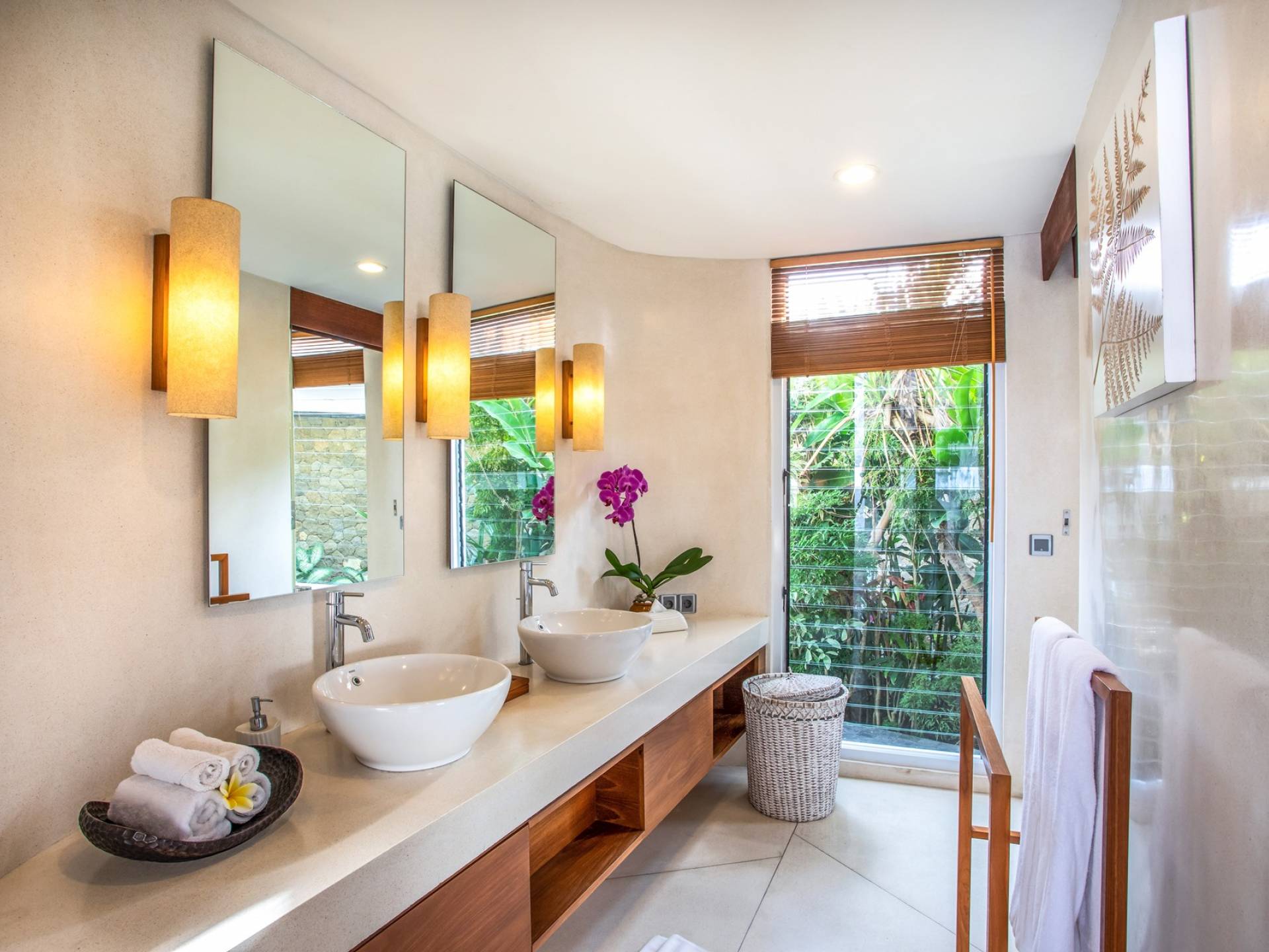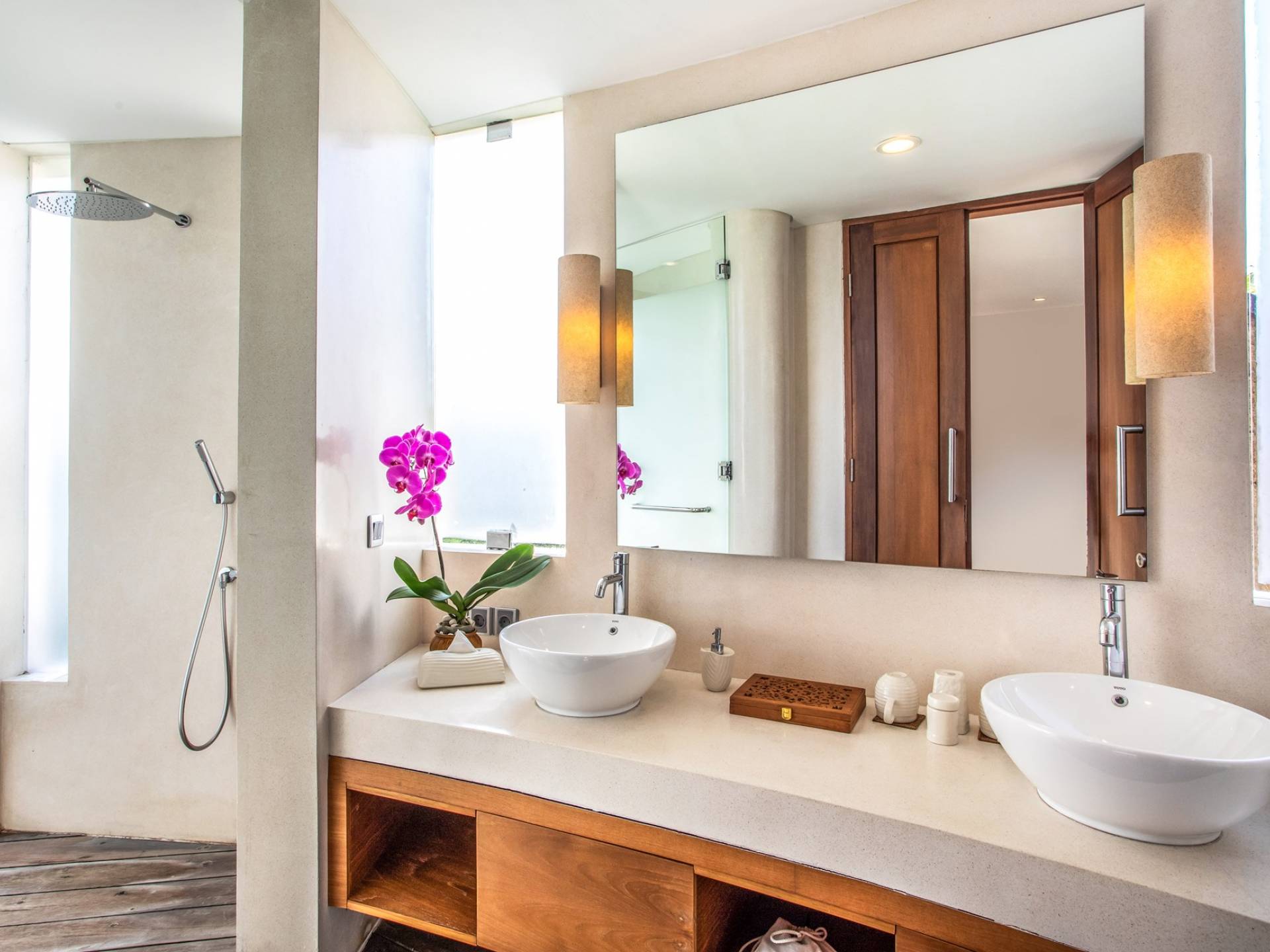 2 dormitorios se encuentran en el piso superior y 1 dormitorio en el primer piso. Todas las habitaciones cuentan con una cama tamaño king grande y cómoda, caja de seguridad, vestidor, un impresionante baño en suite y una ducha separada. En toda la villa, disfrute de la vida residencial en su máxima expresión con características y muebles modernos junto con el sentido del estilo balinés. Dayu Mirah Resort cree en hacer que el lujo sea simple y gratificante al crear experiencias únicas para los huéspedes en un entorno y diseño alucinantes. Ubicado en el borde de un acantilado con una hermosa vista al jardín, Dayu Mirah Resort tiene factores asombrosos escritos por todas partes.