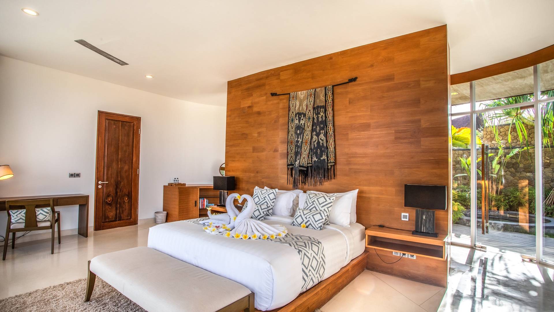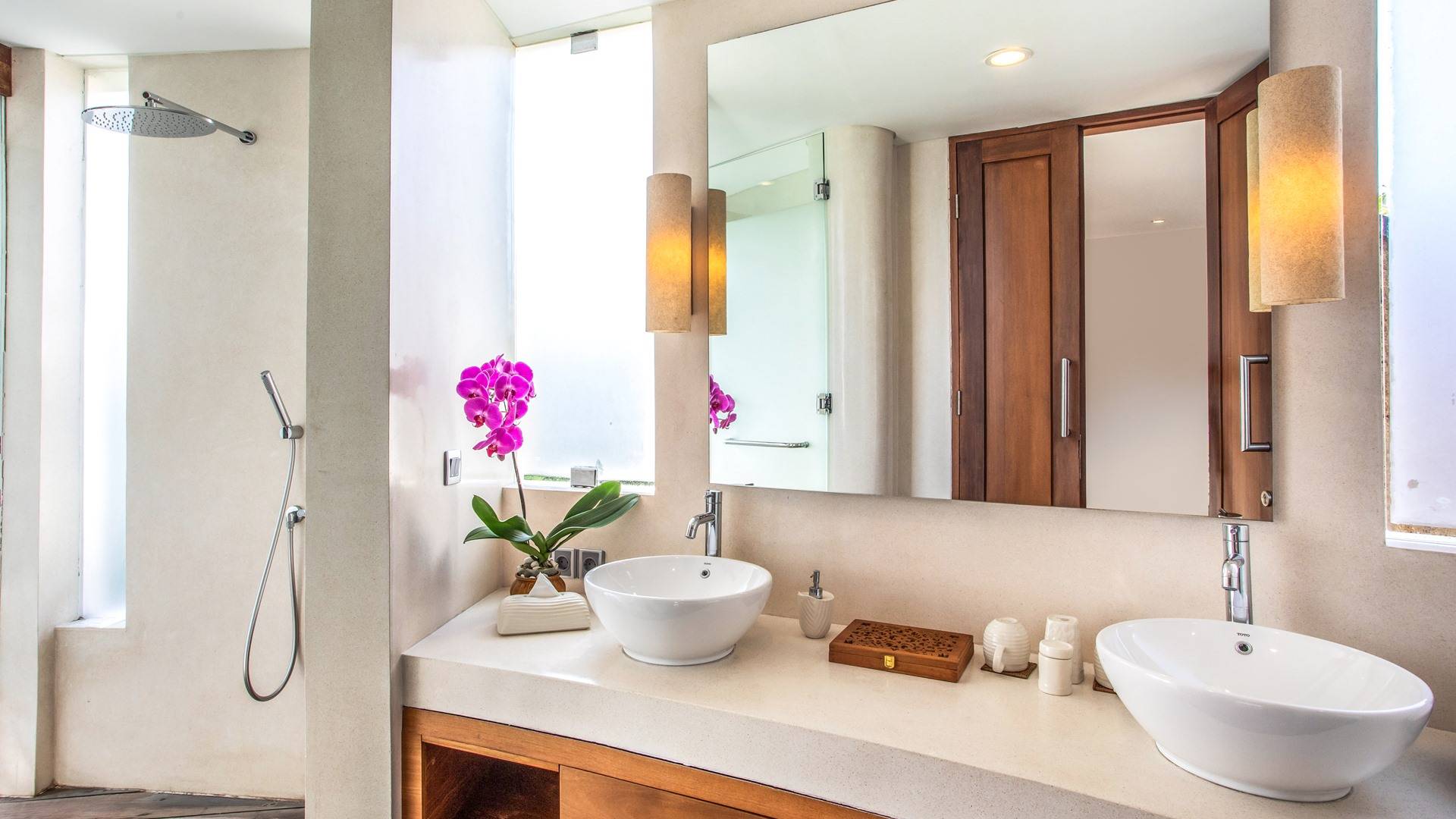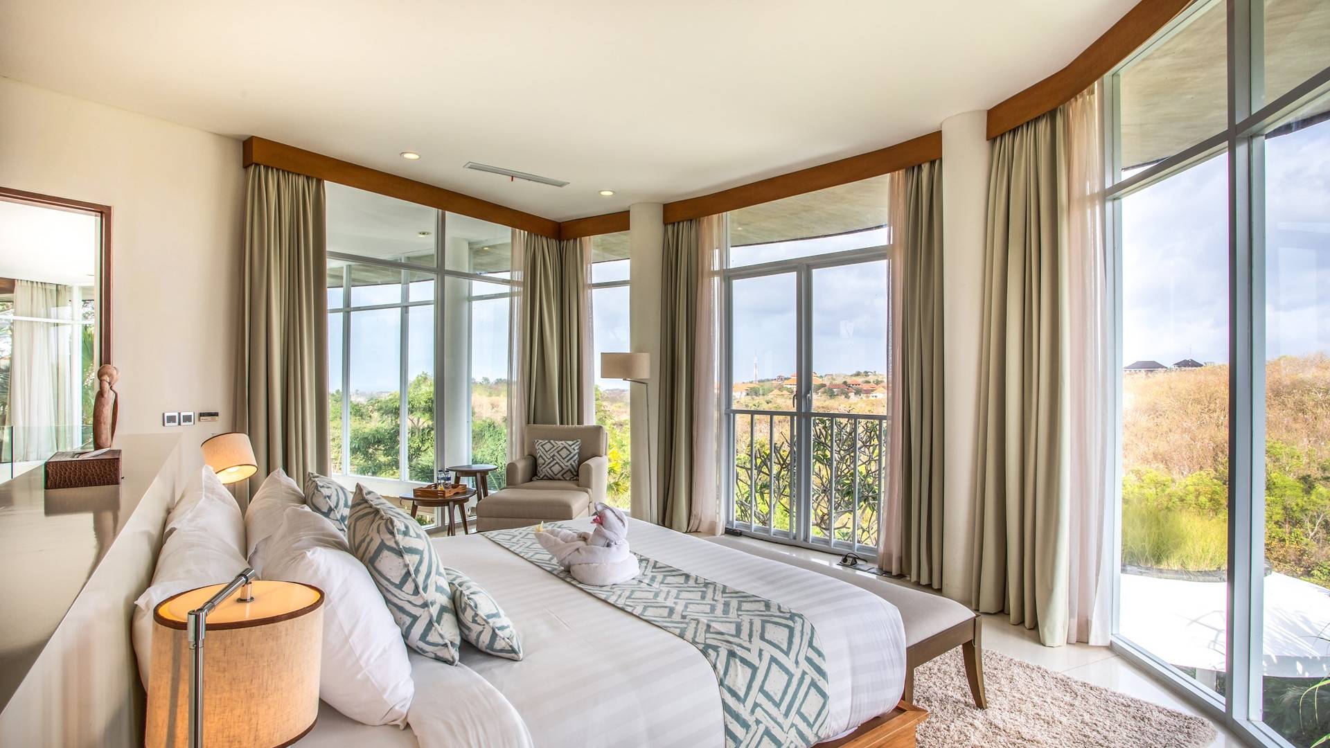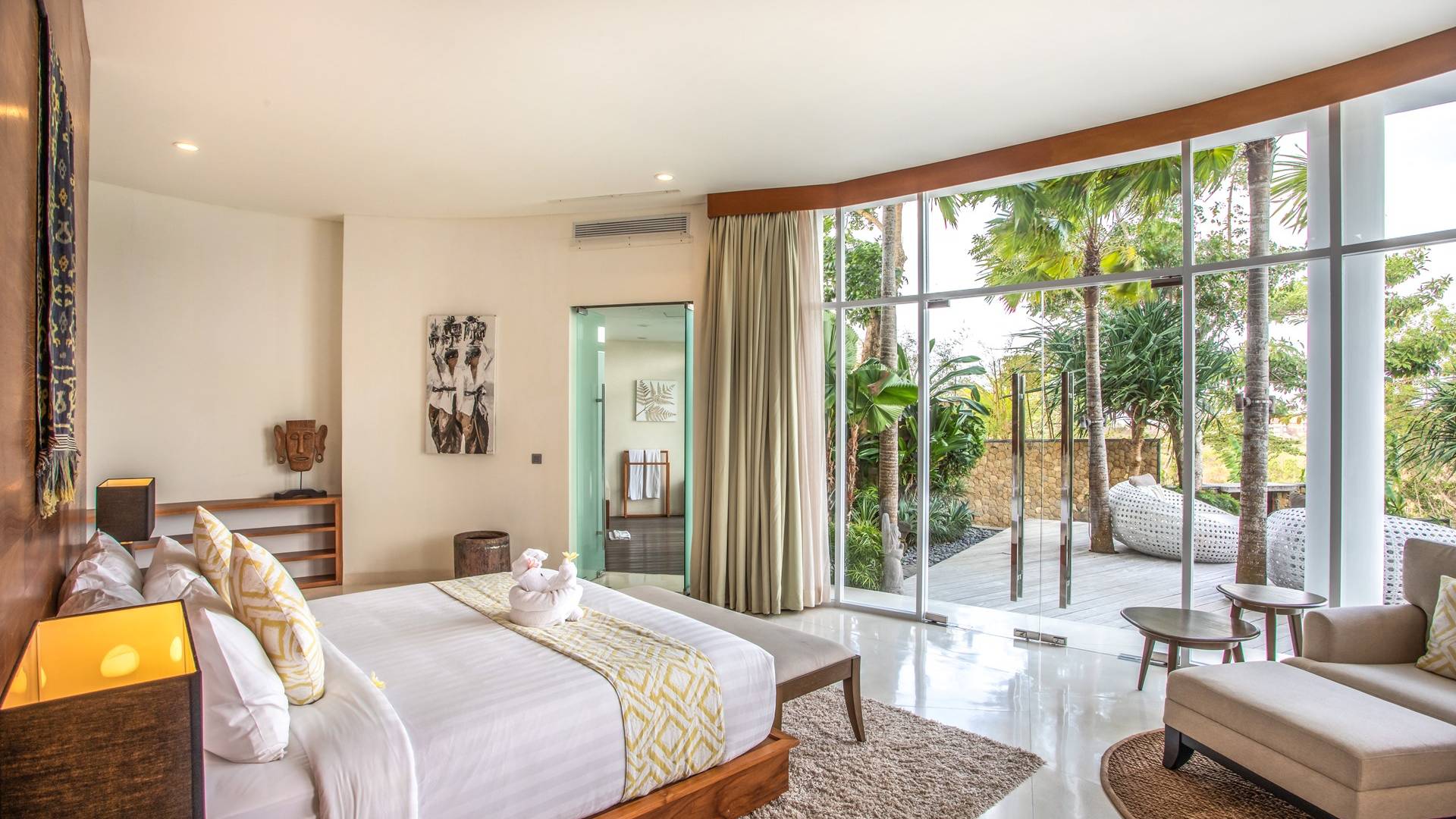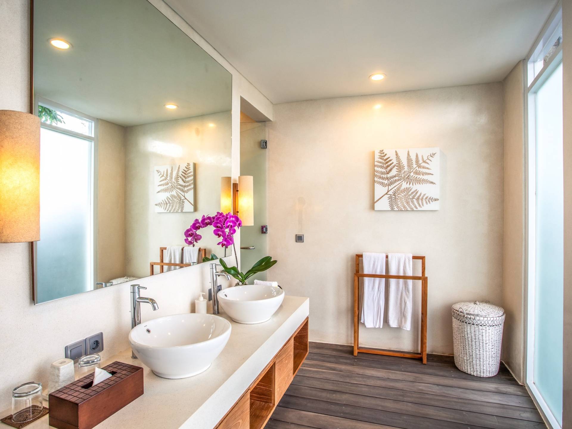 2 dormitorios se encuentran en el piso superior y 1 dormitorio en el primer piso. Todas las habitaciones cuentan con una cama tamaño king grande y cómoda, caja de seguridad, vestidor, un impresionante baño en suite y una ducha separada. En toda la villa, disfrute de la vida residencial en su máxima expresión con características y muebles modernos junto con el sentido del estilo balinés. Dayu Mirah Resort cree en hacer que el lujo sea simple y gratificante al crear experiencias únicas para los huéspedes en un entorno y diseño alucinantes. Ubicado en el borde de un acantilado con una hermosa vista al jardín, Dayu Mirah Resort tiene factores asombrosos escritos por todas partes.