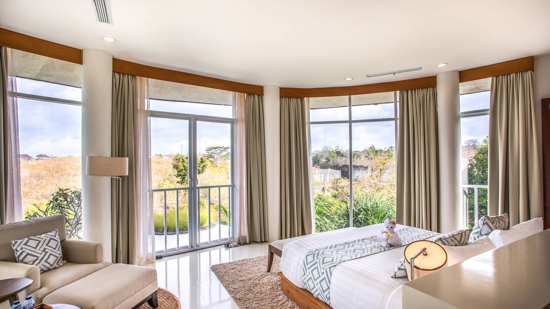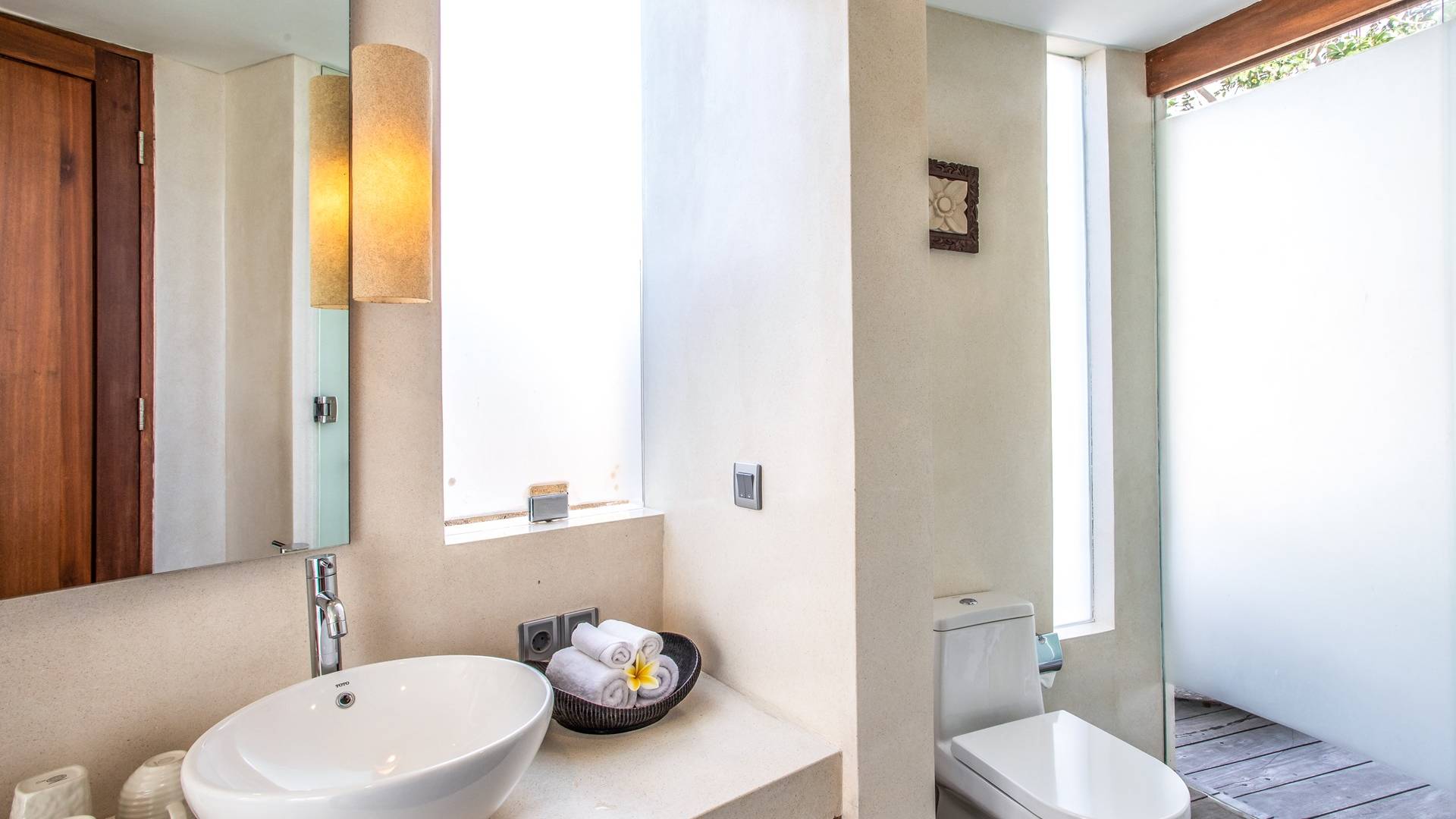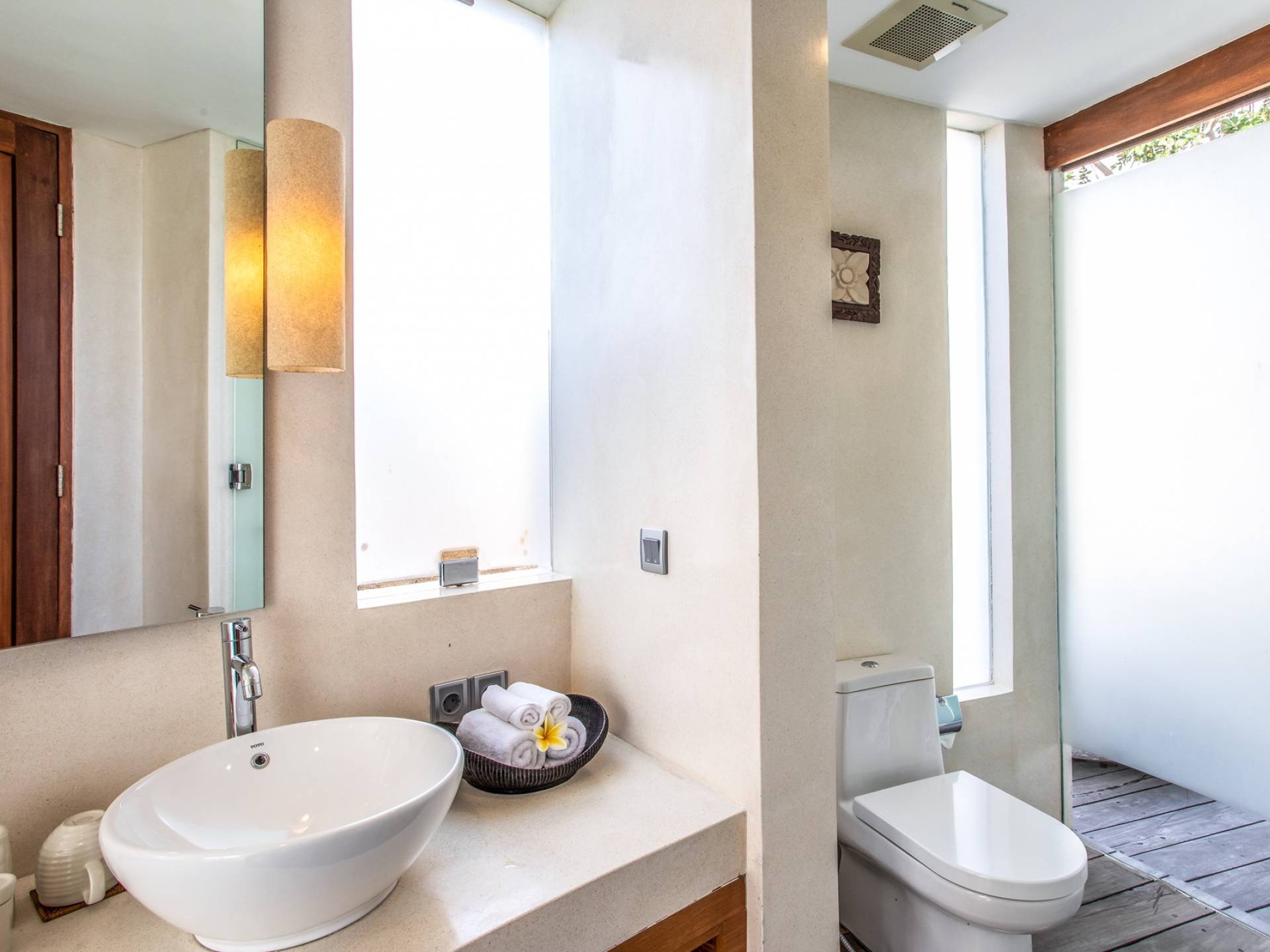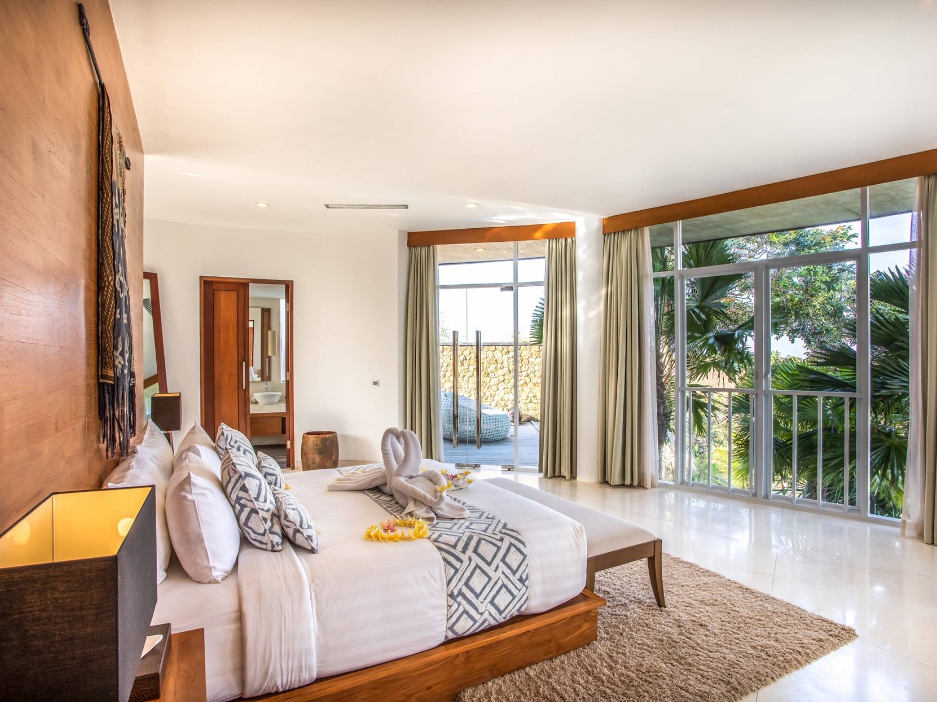 2 dormitorios se encuentran en el piso superior y 1 dormitorio en el primer piso. Todas las habitaciones cuentan con una cama tamaño king grande y cómoda, caja de seguridad, vestidor, un impresionante baño en suite y una ducha separada. En toda la villa, disfrute de la vida residencial en su máxima expresión con características y muebles modernos junto con el sentido del estilo balinés. Dayu Mirah Resort cree en hacer que el lujo sea simple y gratificante al crear experiencias únicas para los huéspedes en un entorno y diseño alucinantes. Ubicado en el borde de un acantilado con una hermosa vista al jardín, Dayu Mirah Resort tiene factores asombrosos escritos por todas partes.