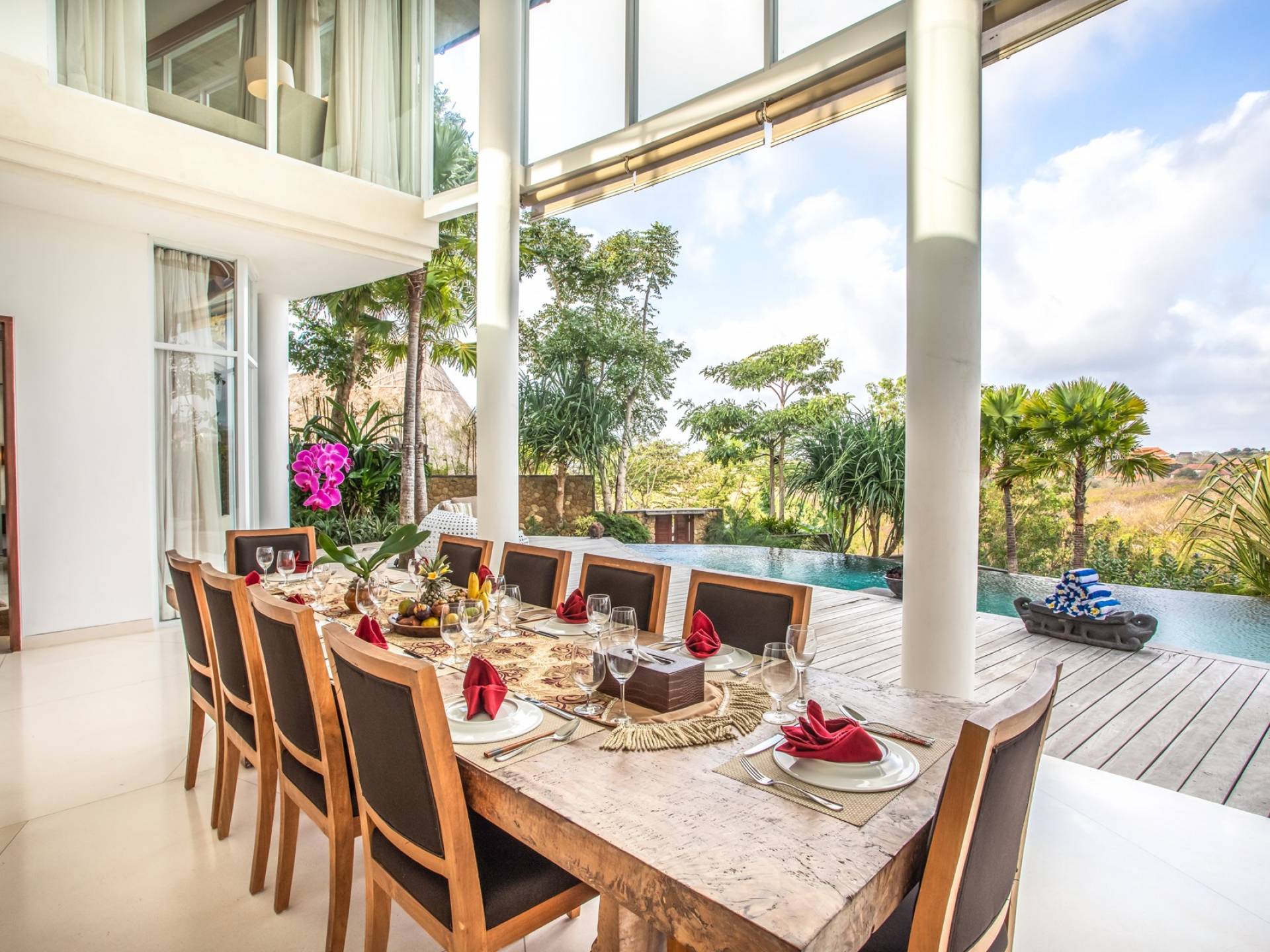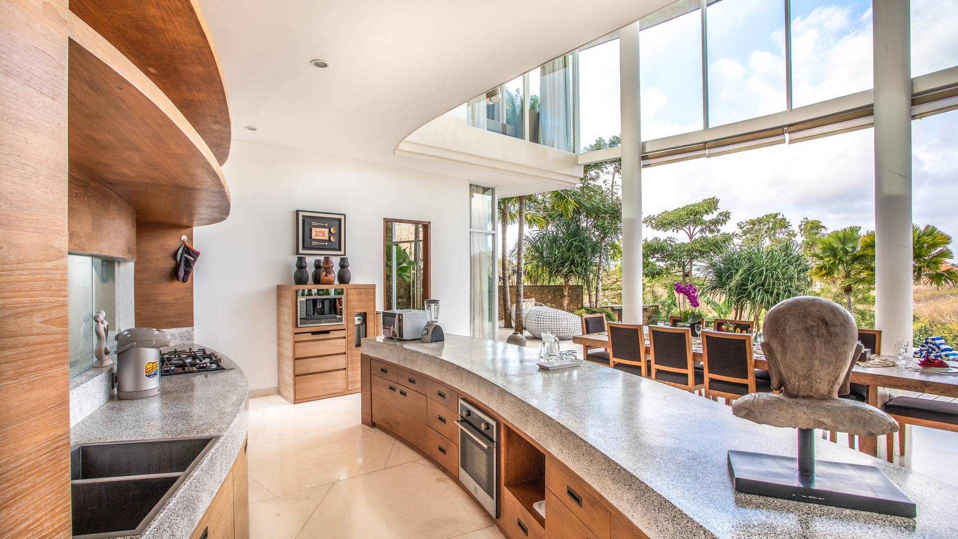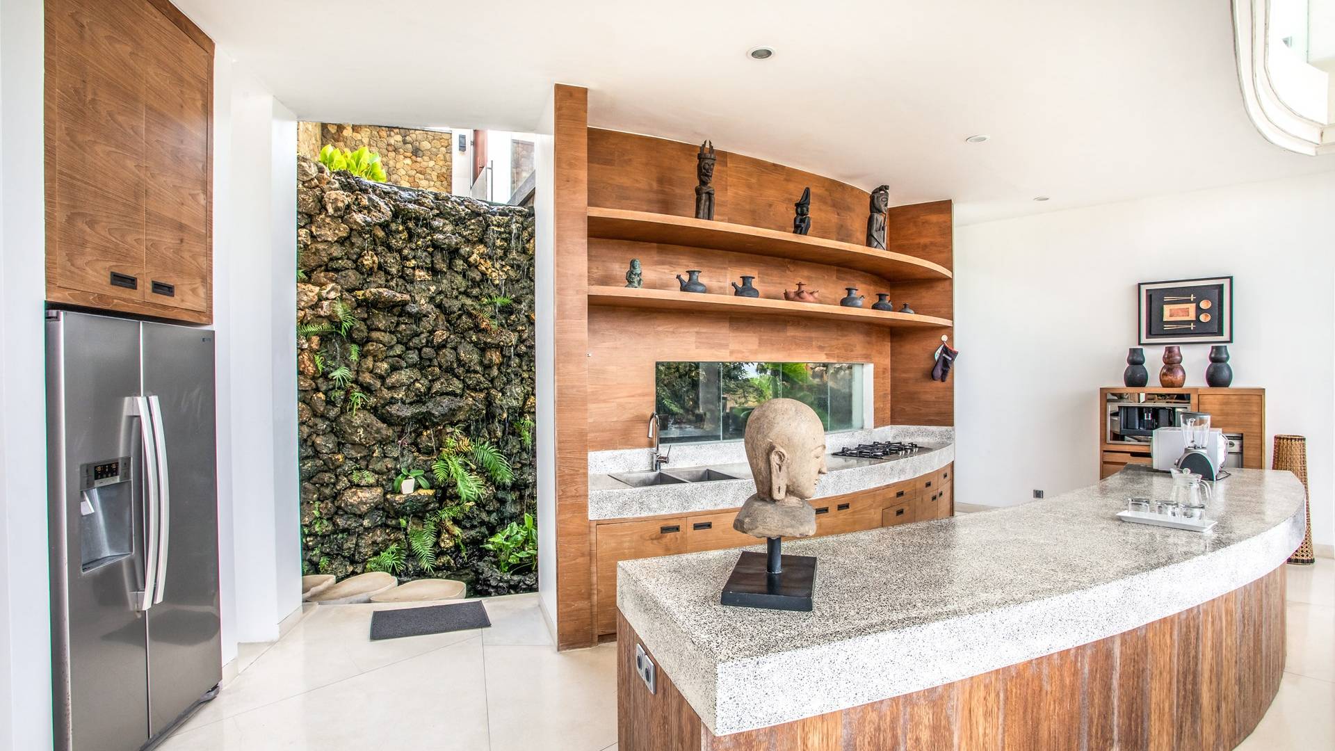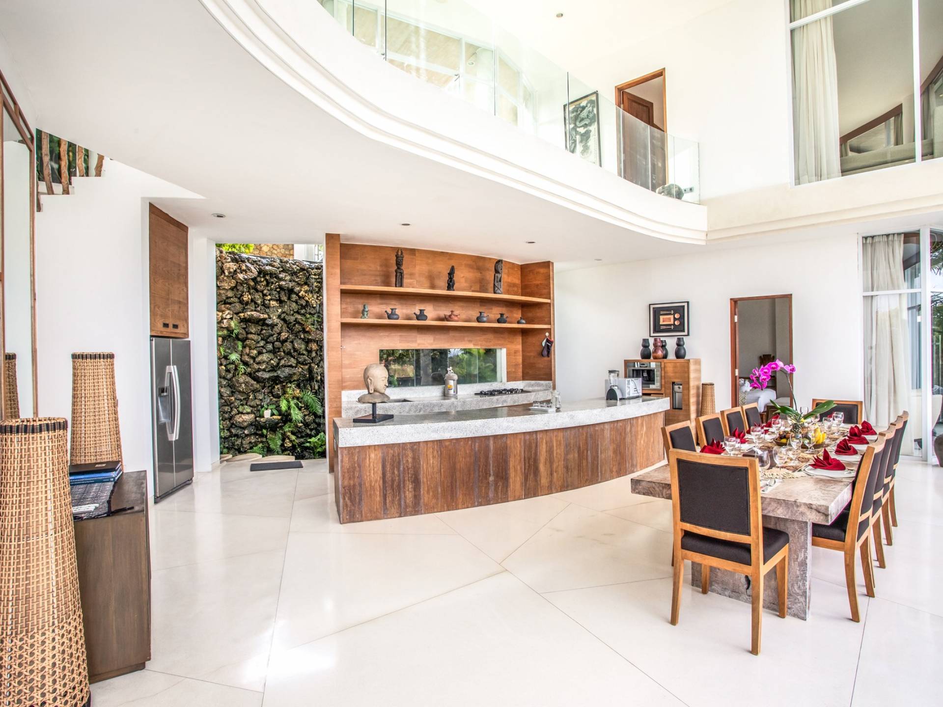 Villa Pancaloka cuenta con una villa con piscina de tres dormitorios perfectamente diseñada para familias. La amplia sala de estar y la zona de cocina abierta de la villa en el primer piso tienen vistas a los jardines y a la espectacular piscina infinita. La sala de estar cuenta con amplios y cómodos sofás, elementos de interior y equipo de karaoke. La terraza abierta le invita a relajarse y disfrutar de su noche bajo las estrellas. La cocina moderna totalmente equipada tiene un refrigerador grande, congelador y cafetera.