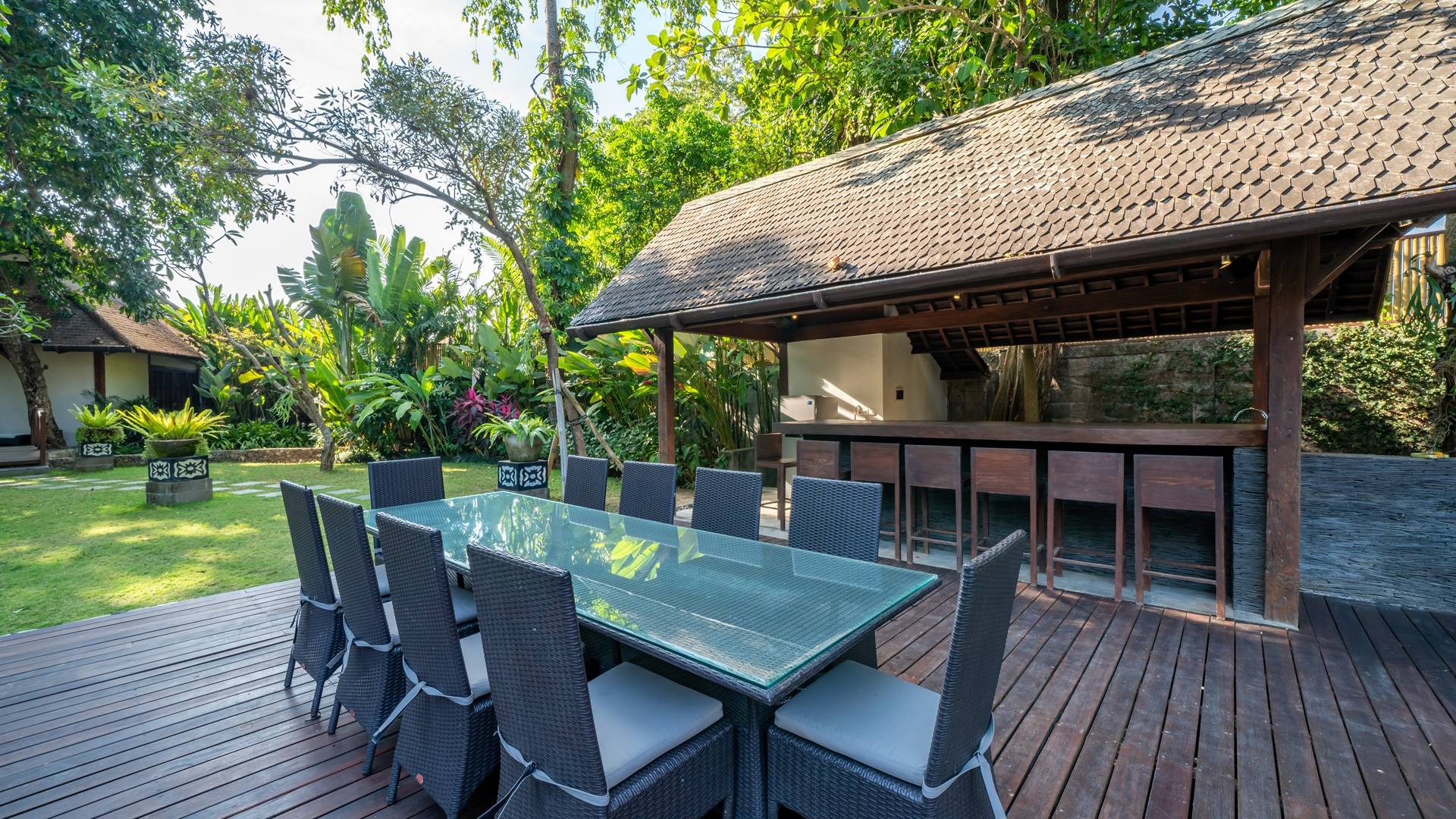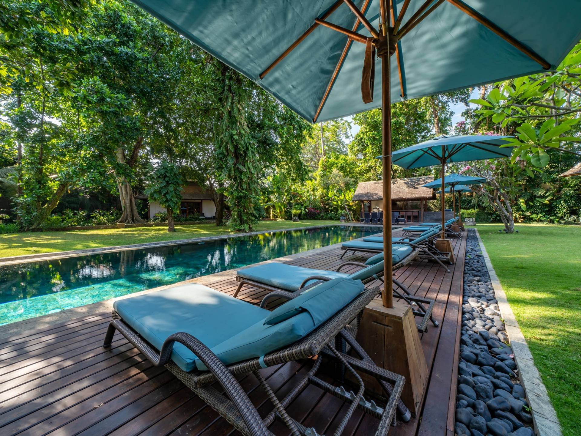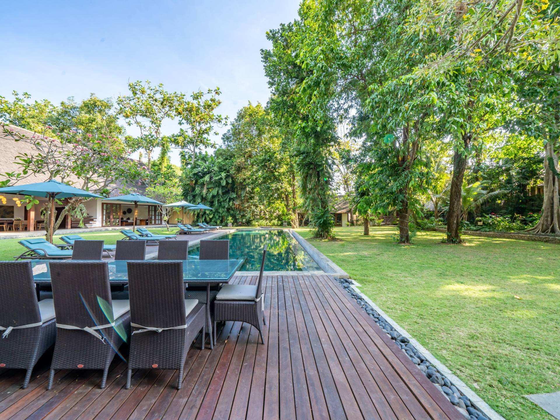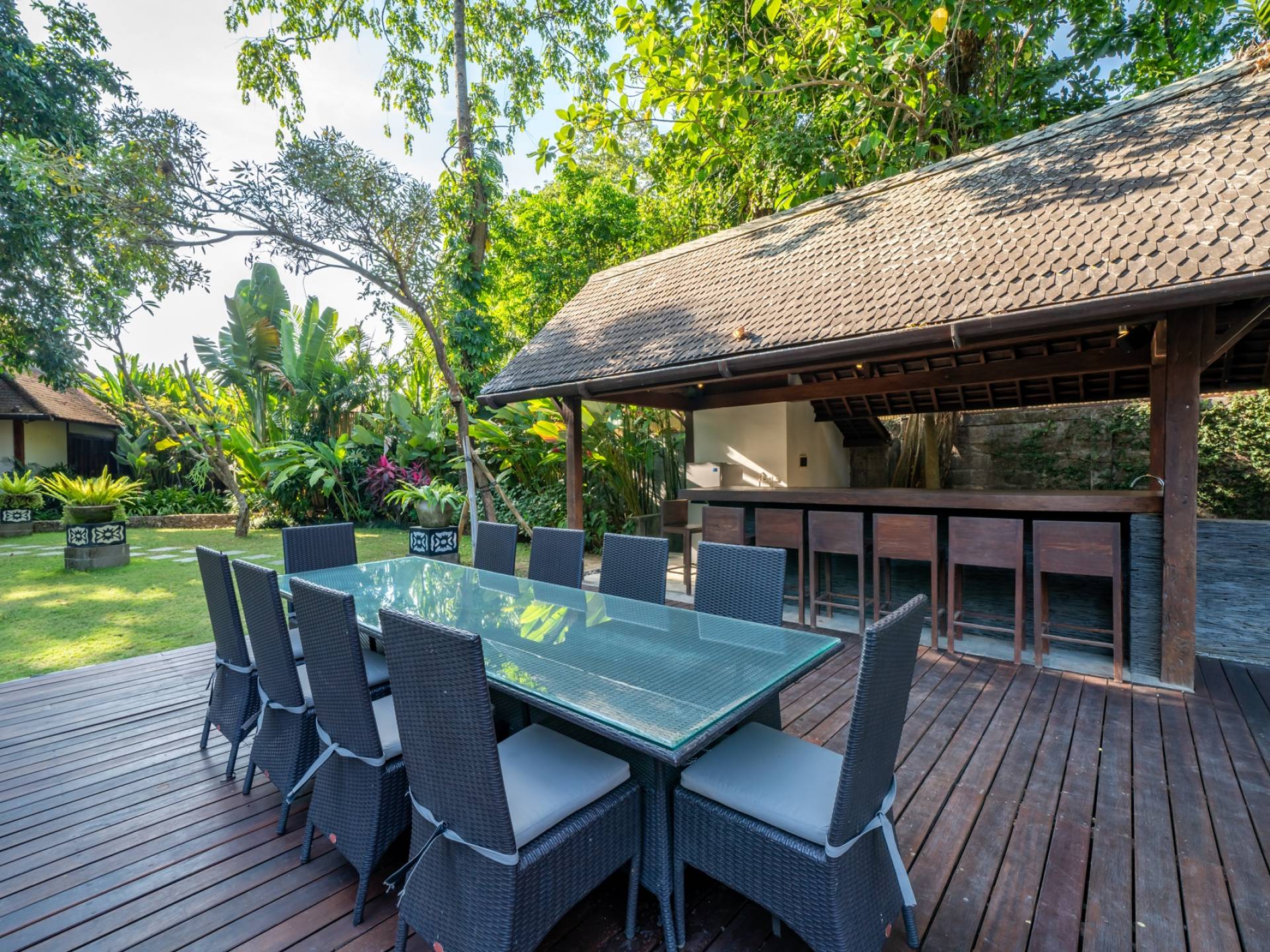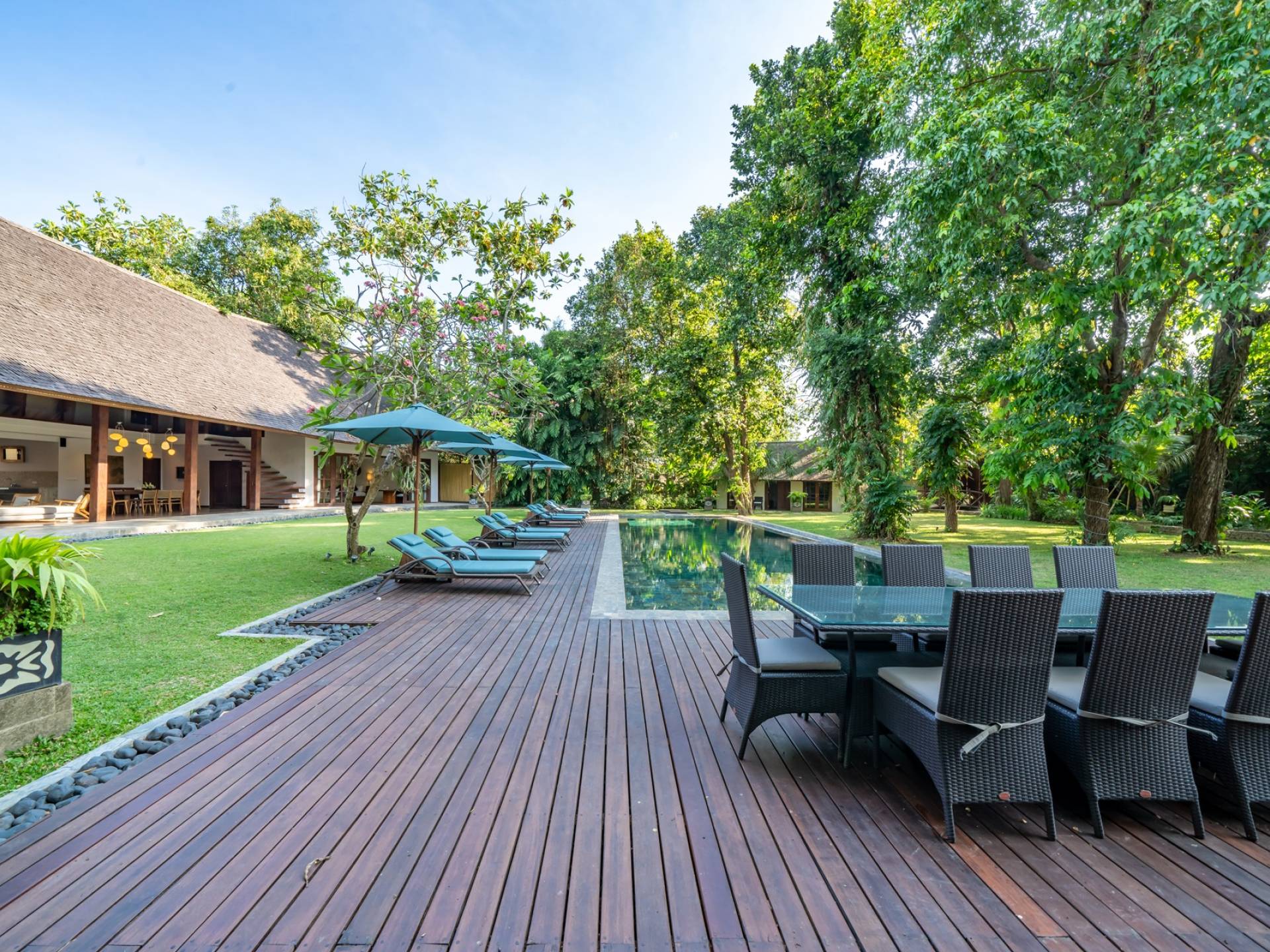 ¡Los jardines recién cuidados dan la bienvenida a los huéspedes para organizar fiestas de barbacoa en el jardín! Frente a la cual se encuentra la piscina privada de 25 metros de la villa que se extiende sobre los verdes pastos del exterior del complejo. Mientras sus aguas color aguamarina brillan bajo el sol tropical, los huéspedes pueden descansar en 8 tumbonas en tonos camel y sombrillas junto a la piscina. Al lado de la piscina hay un comedor al aire libre para 10 personas, que permite a los huéspedes supervisar chapoteos mientras disfrutan de un desayuno recién batido. Mientras te das un chapuzón en la piscina de azulejos verde azulado, puedes disfrutar de un refrigerio ligero mientras disfrutas del cielo azul despejado.