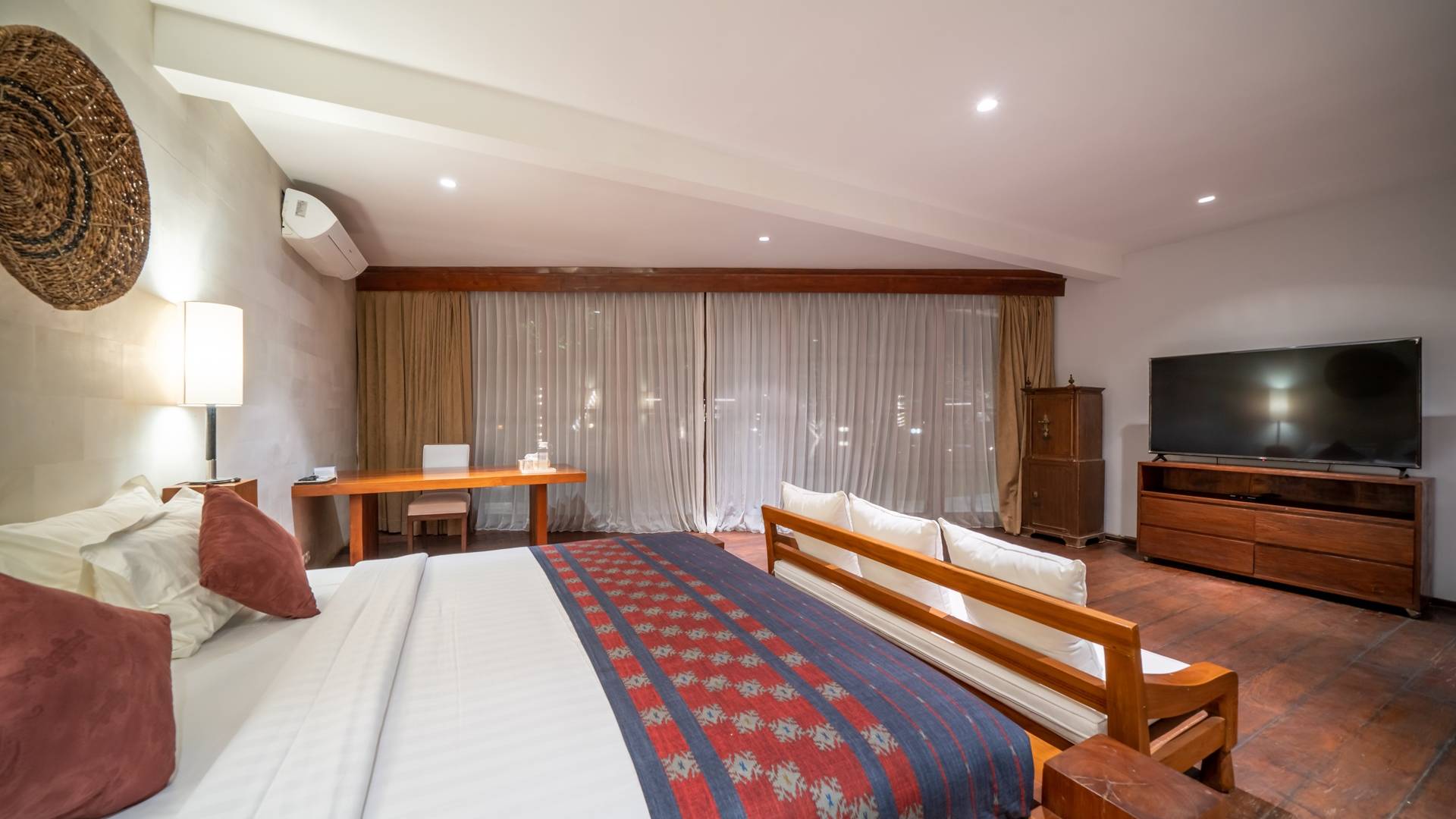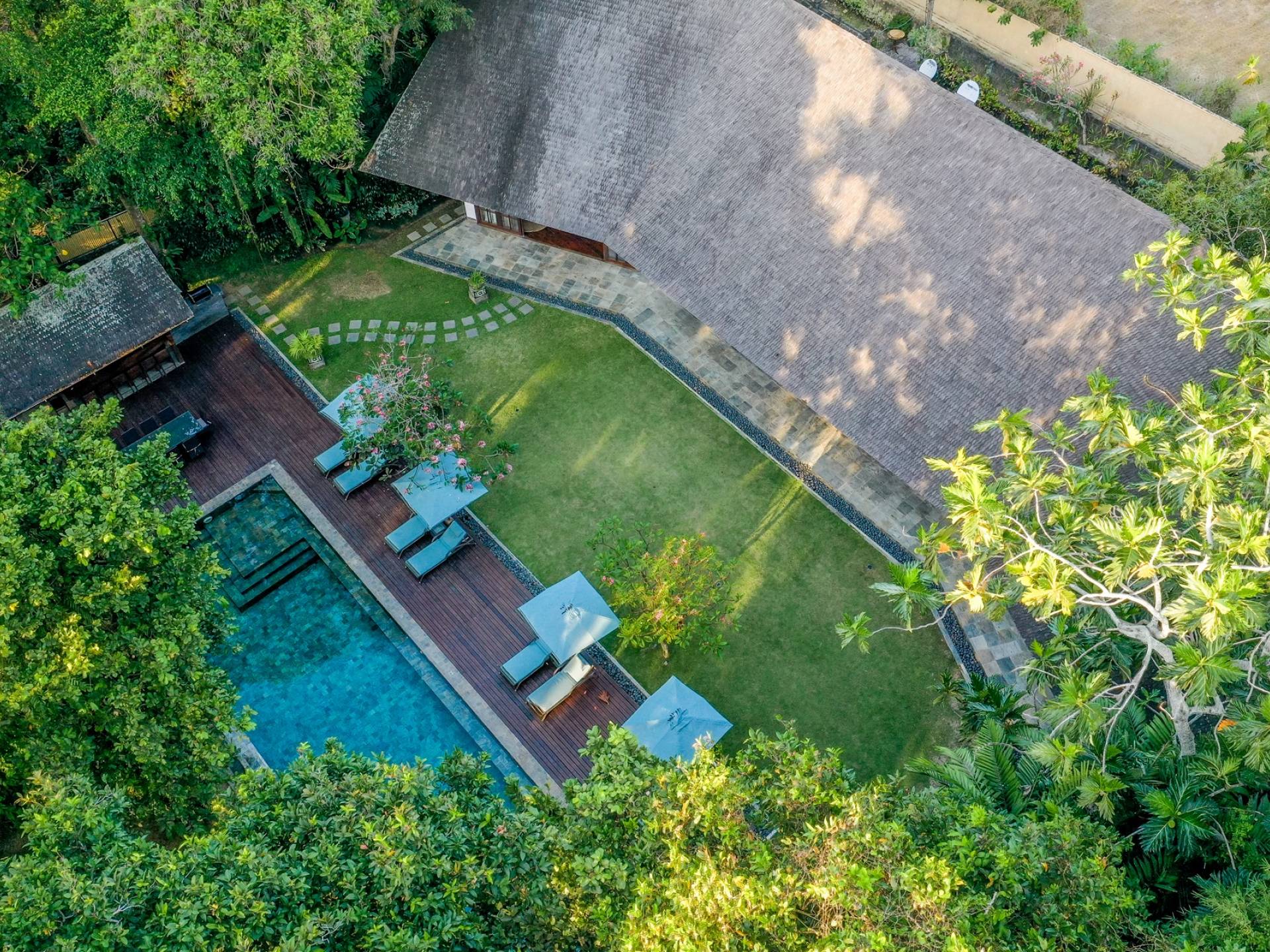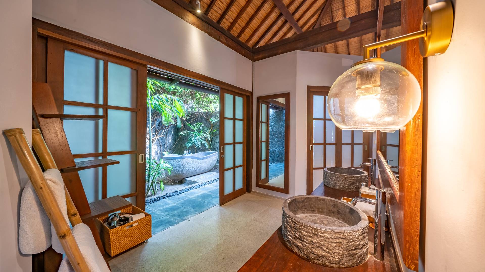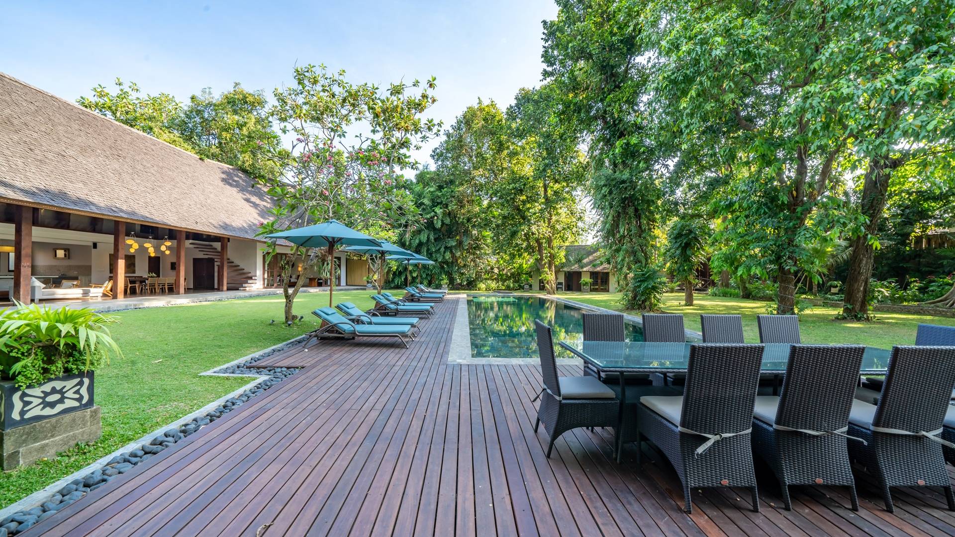 Escondida entre los arrozales de Kerobokan, Villa Tirtadari es una mansión privada con todo el personal que se extiende sobre un terreno de 2800 metros cuadrados. Con 7 amplios dormitorios en los pabellones con temática de Joglo, esta casa isleña tiene capacidad para grandes grupos de 14. El entorno se caracteriza por sus paneles de madera con tintes oscuros, escaleras flotantes, elegante diseño contemporáneo y al aire libre. Los espacios iluminados con luz dorada supervisan la reluciente piscina privada de 25 metros y el césped recién cuidado.