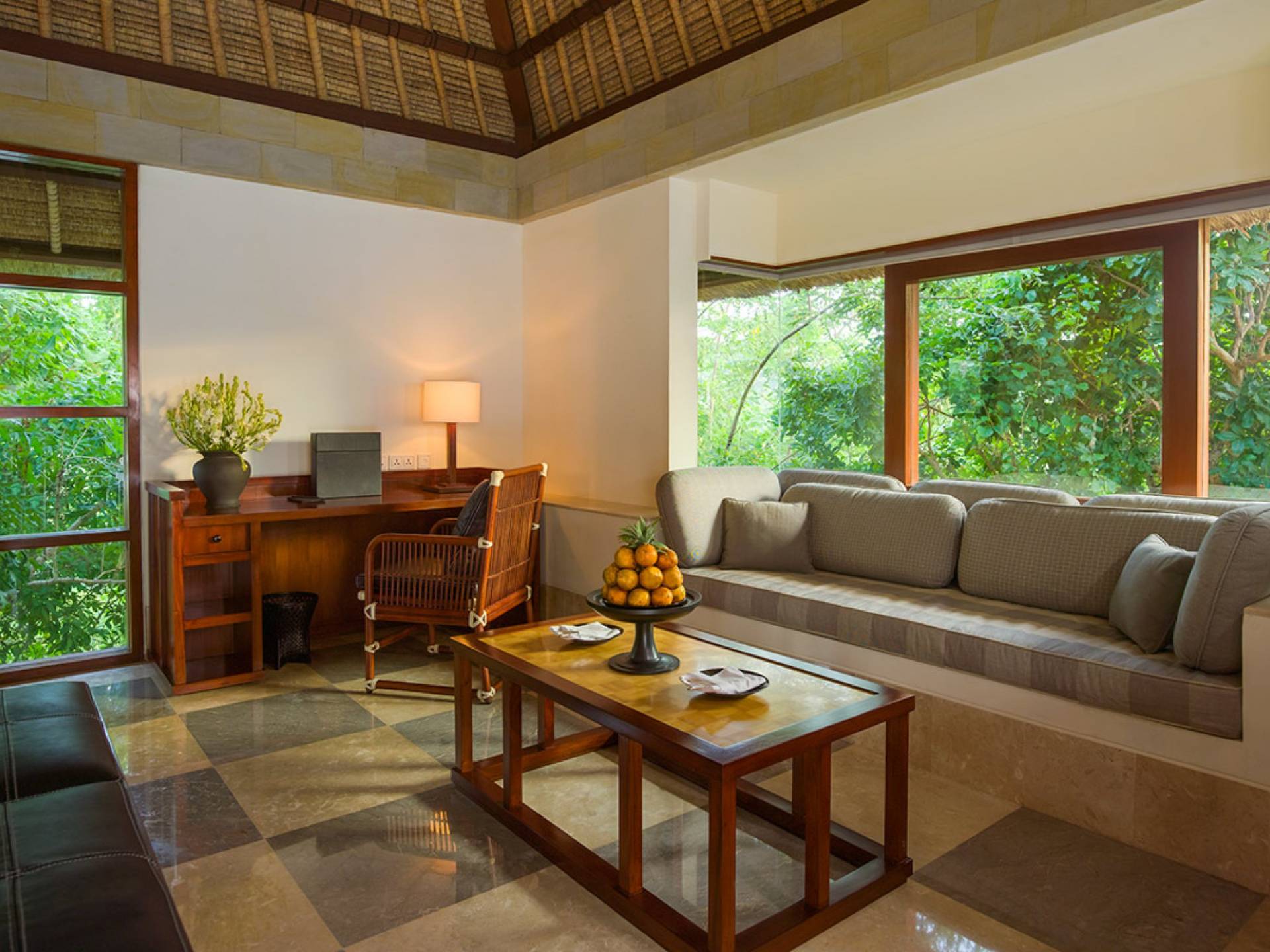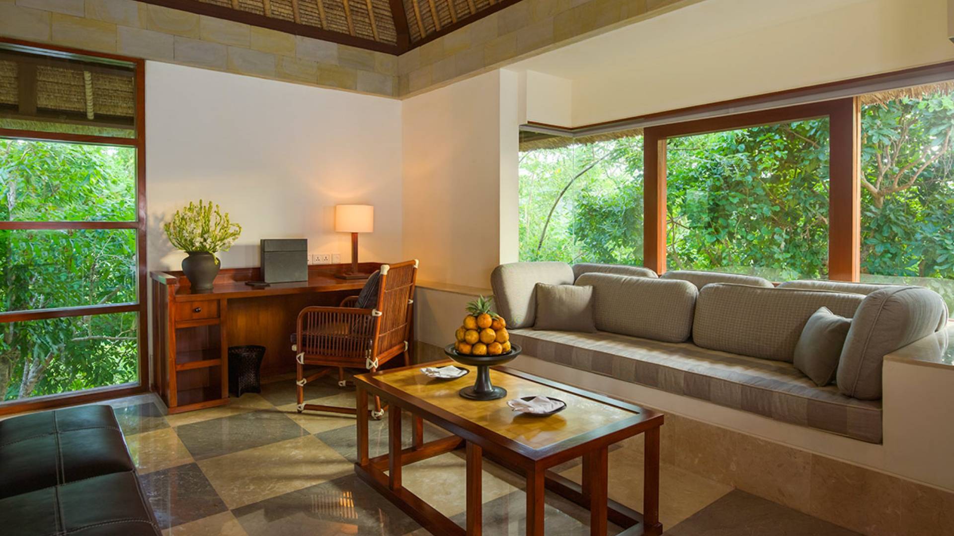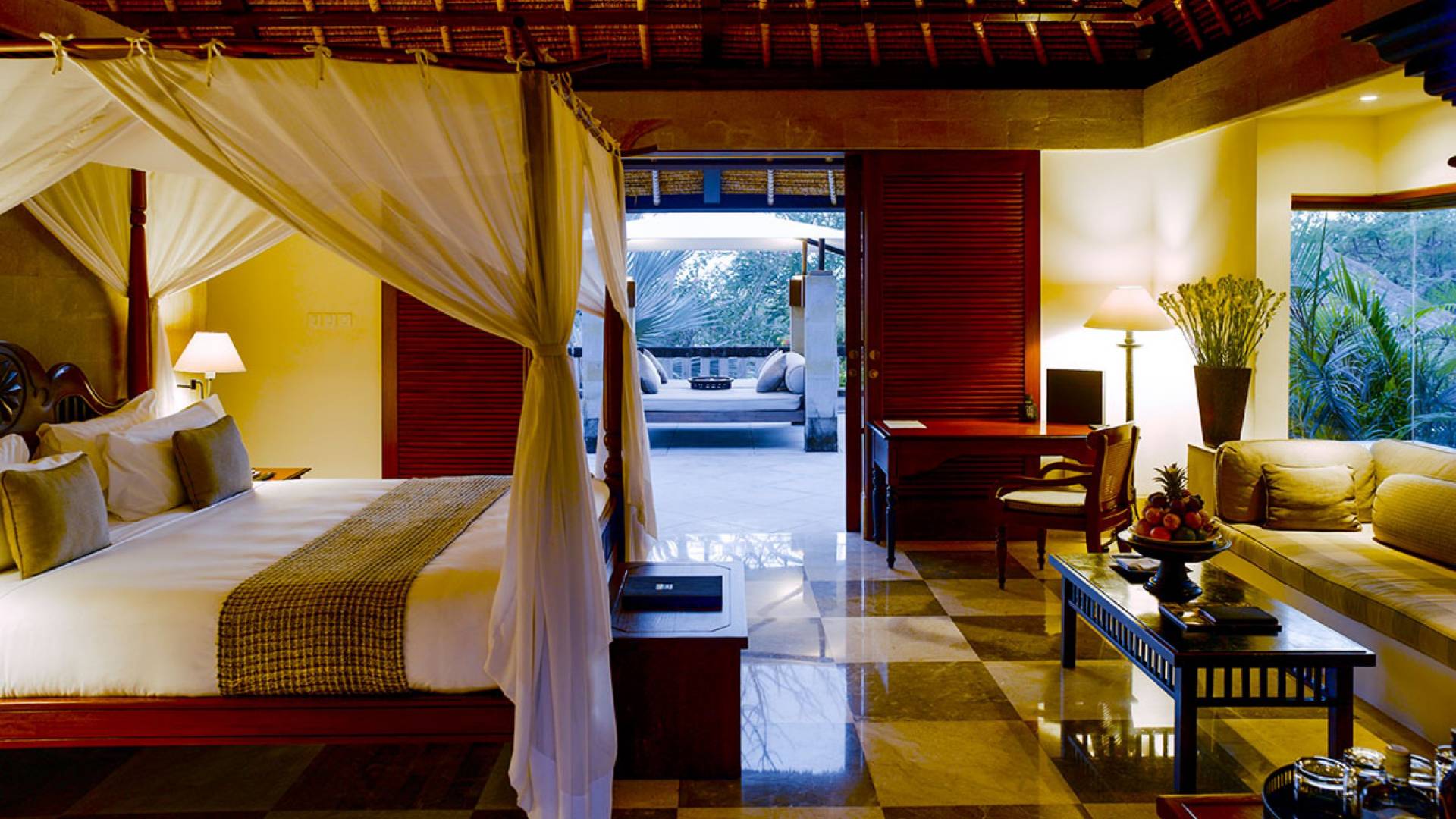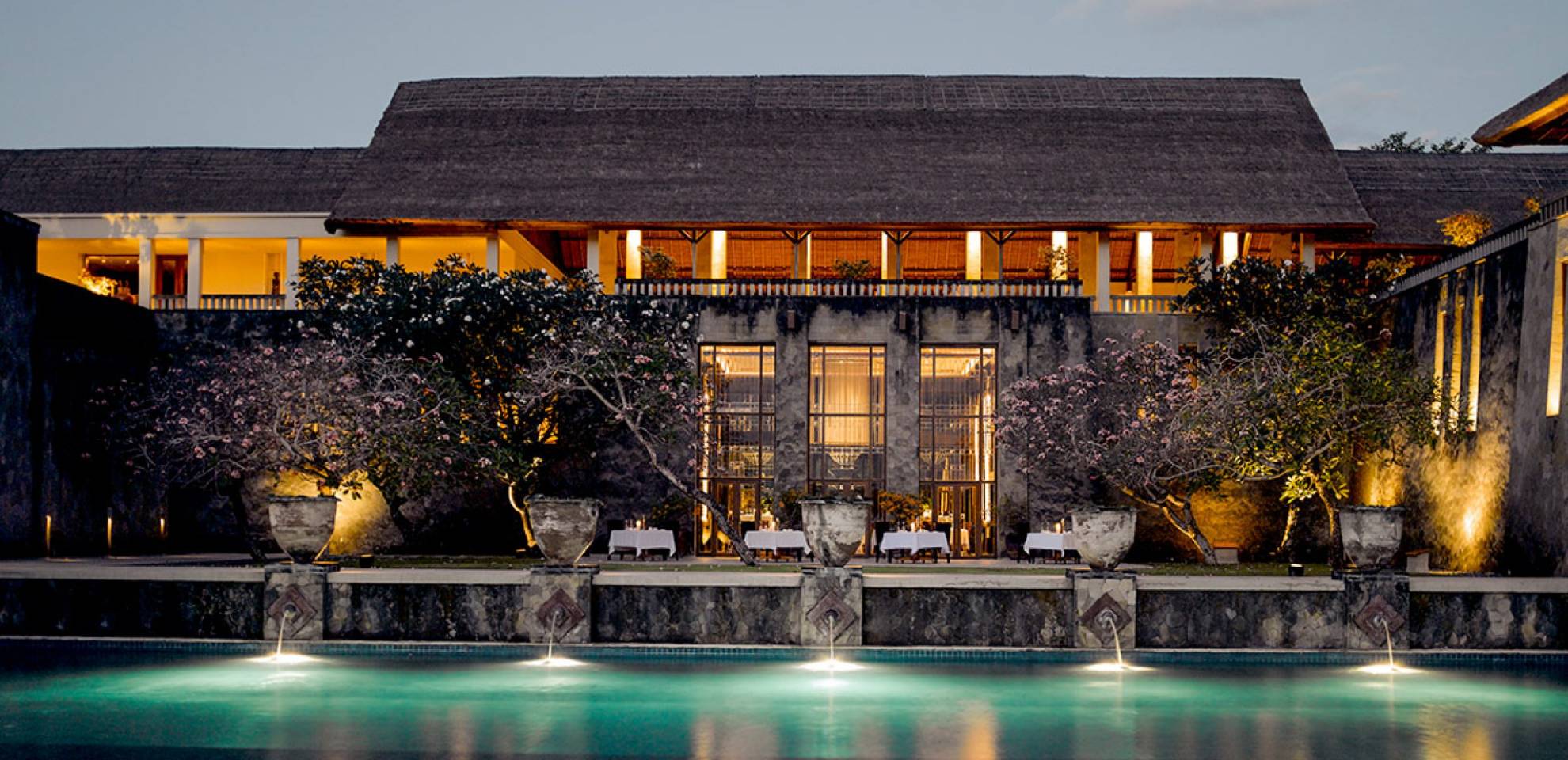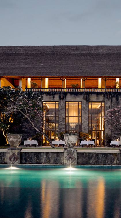 Refugios tranquilos ubicados en la península más al sur de Bali, las Aman Villas at Nusa Dua se encuentran dentro de terrenos y jardines bordeados de palmeras, con piscinas flanqueadas por aromáticos árboles frangipani. Siguiendo el modelo de diseños balineses tradicionales que utilizan madera y piedra locales, la arquitectura se compensa con las obras de artistas locales.