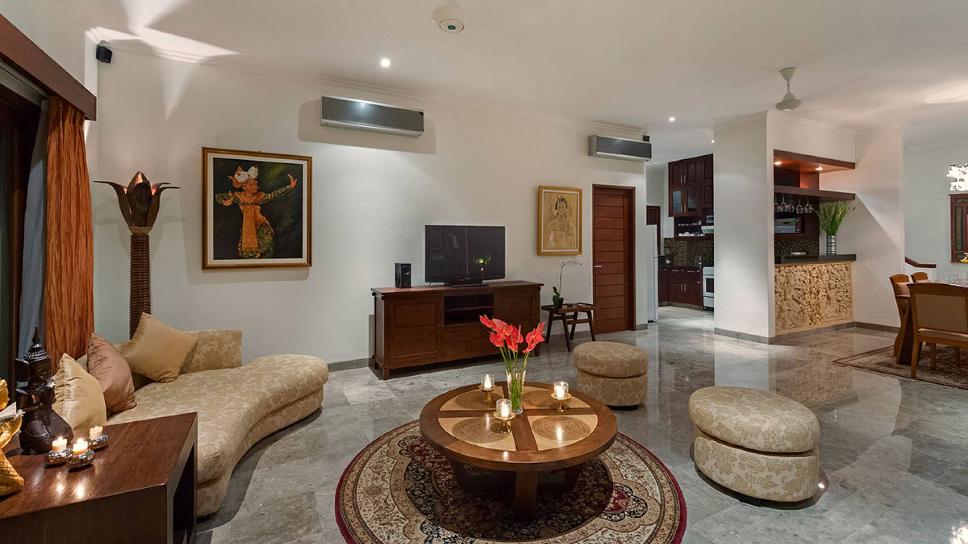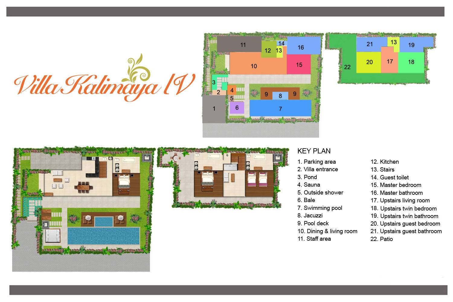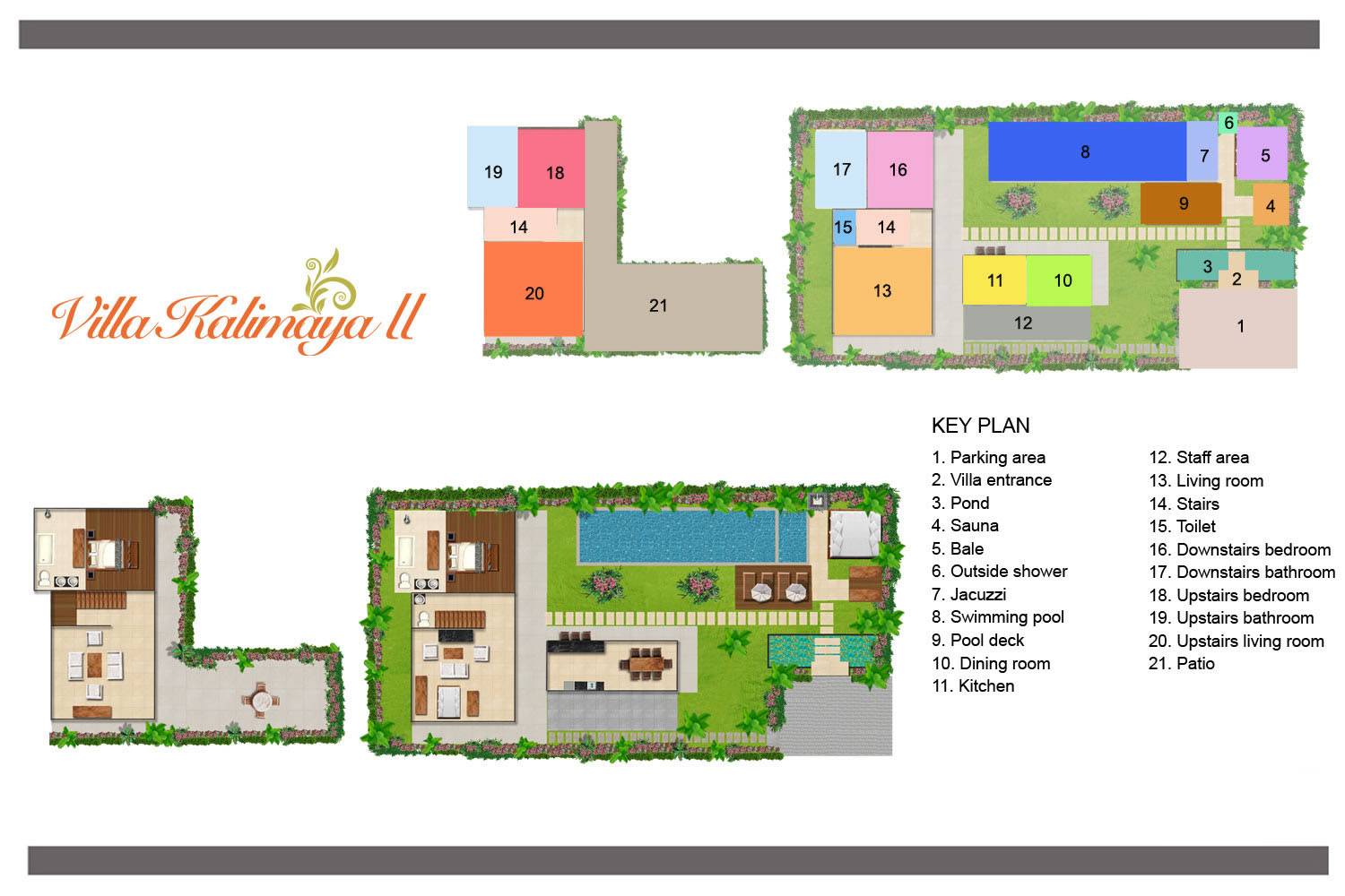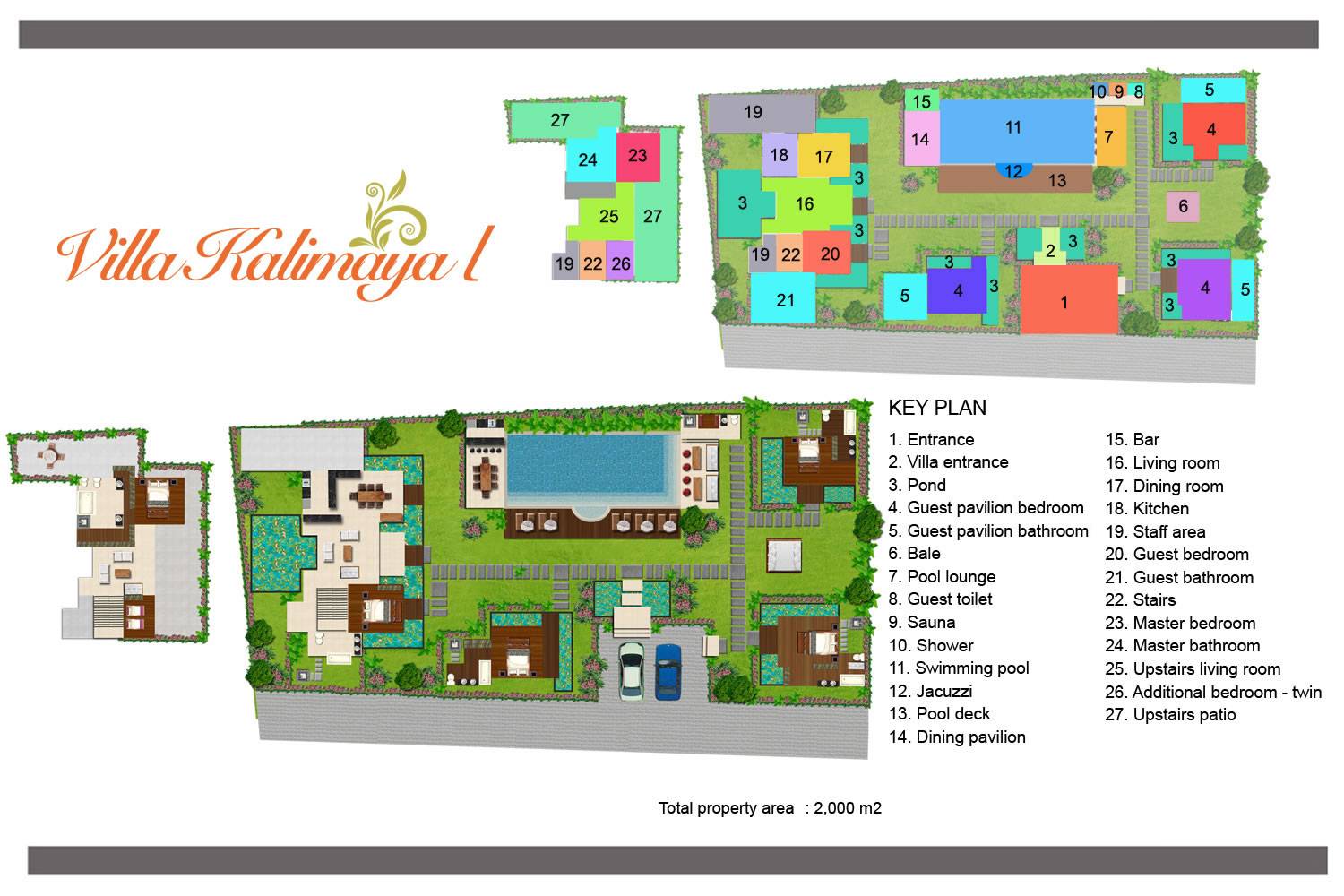 Kalimaya Estate Seminyak es un complejo de cuatro villas ubicadas en Seminyak, Bali. Este alquiler de vacaciones es ideal para familias numerosas, grupos de amigos y eventos especiales, ya que cuenta con 13 habitaciones y comodidades de lujo. WiFi está disponible en todo, al igual que bases para iPod, televisores de plasma y reproductores de DVD. Un equipo altamente capacitado de personal profesional captura la esencia de la hospitalidad balinesa y un chef experimentado prepara comida con la calidad de un restaurante.