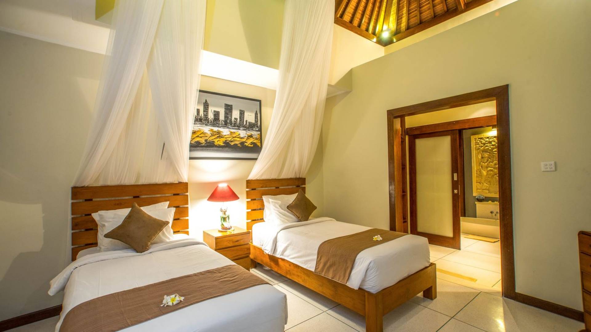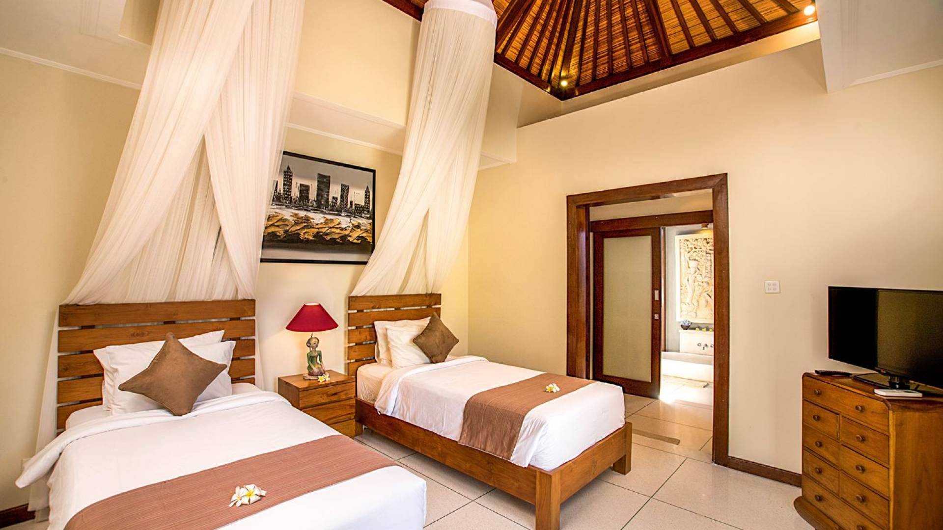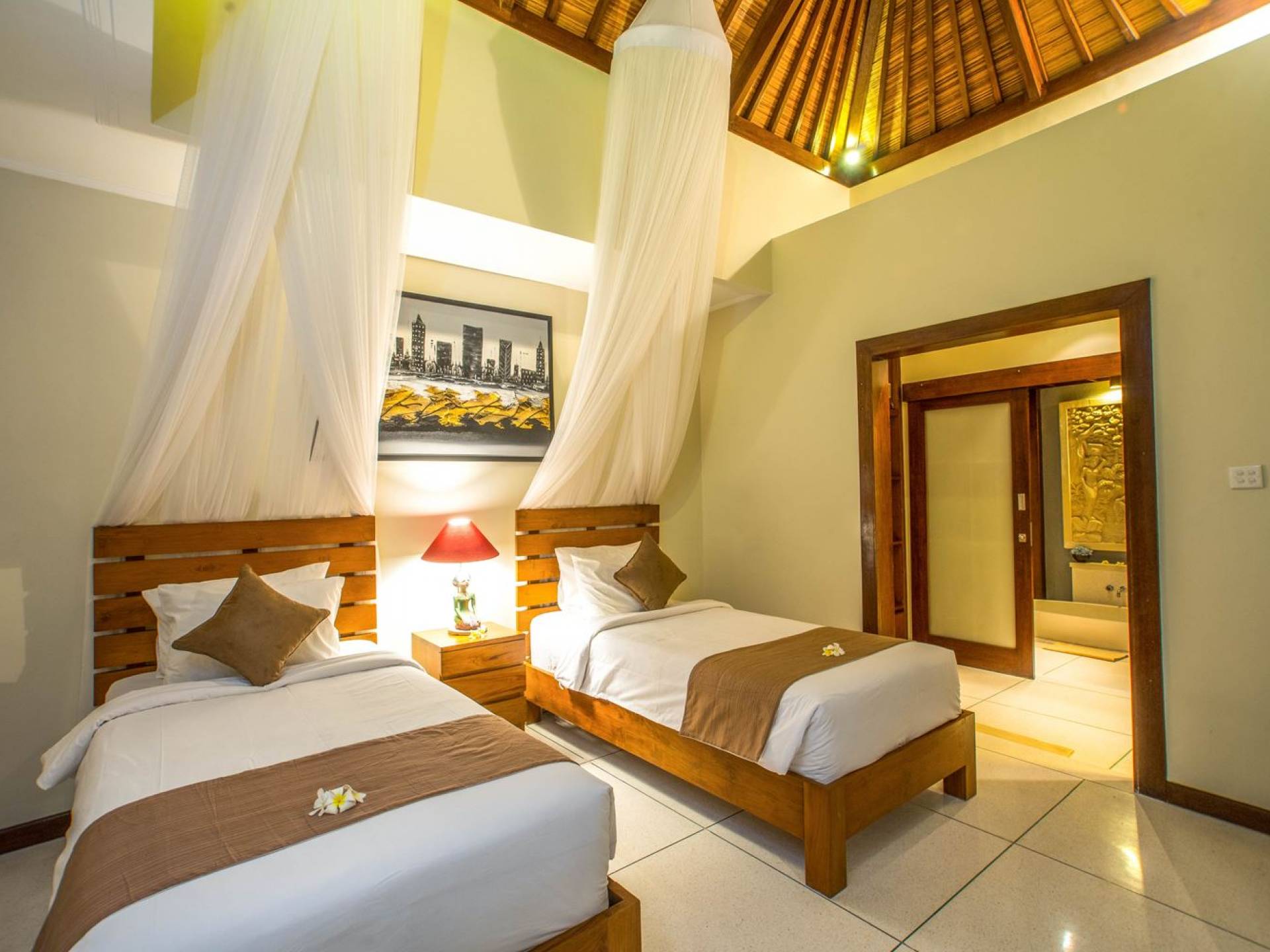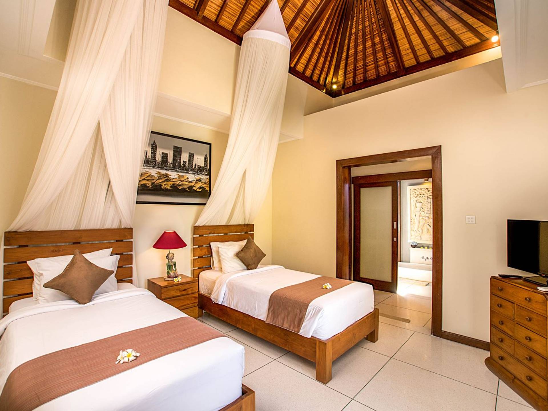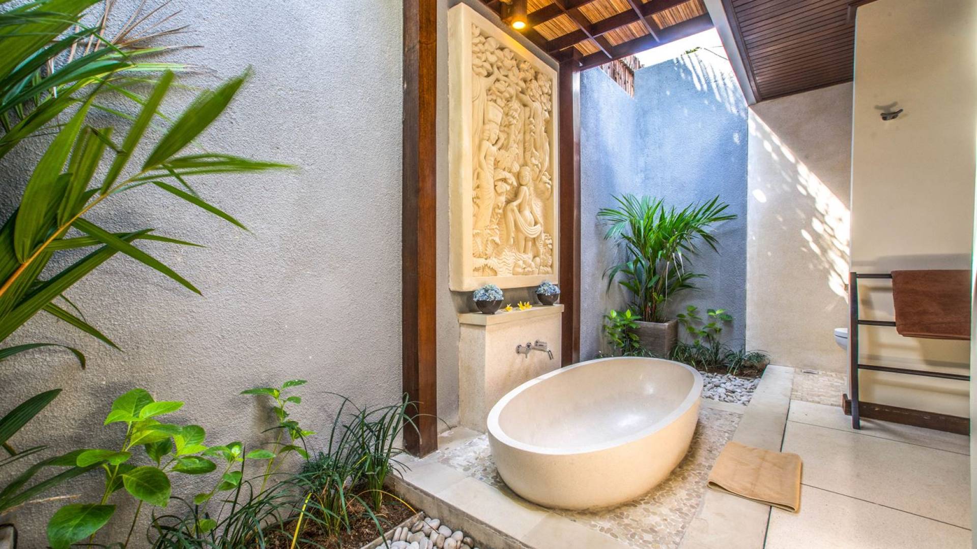 MD Villa Seminyak es una villa de lujo en alquiler con 3 dormitorios y una piscina privada. MD Villa ofrece un exuberante jardín tropical, ubicado en el centro de Seminyak. 2 de las recámaras con cama king-size y la otra con cama twin tienen mosquitero, aire acondicionado, TV por cable y caja de seguridad. Todas las habitaciones cuentan con un baño al aire libre con ducha y bañera. Se proporcionan tiendas y champú.