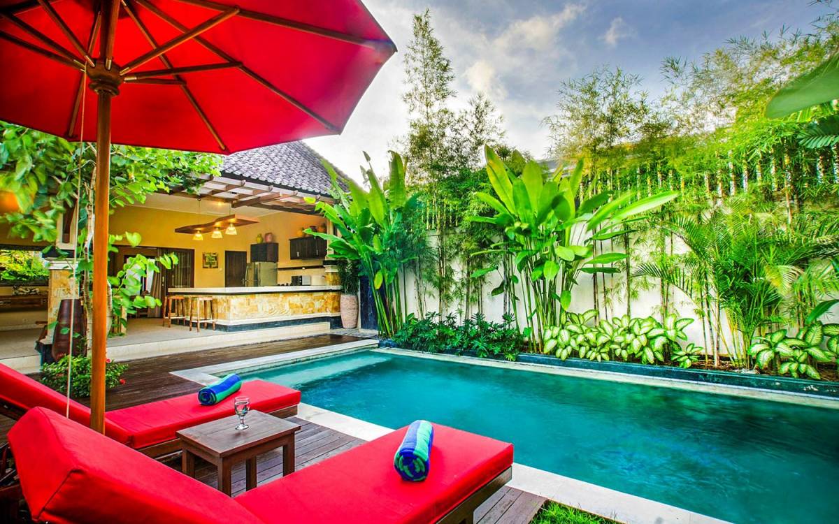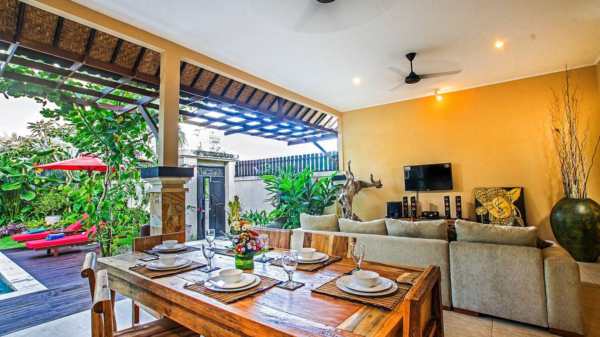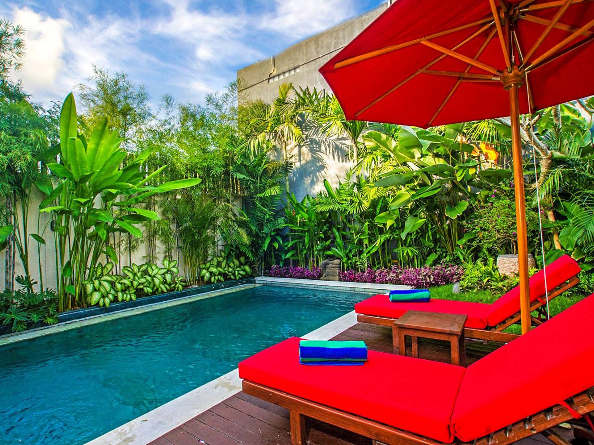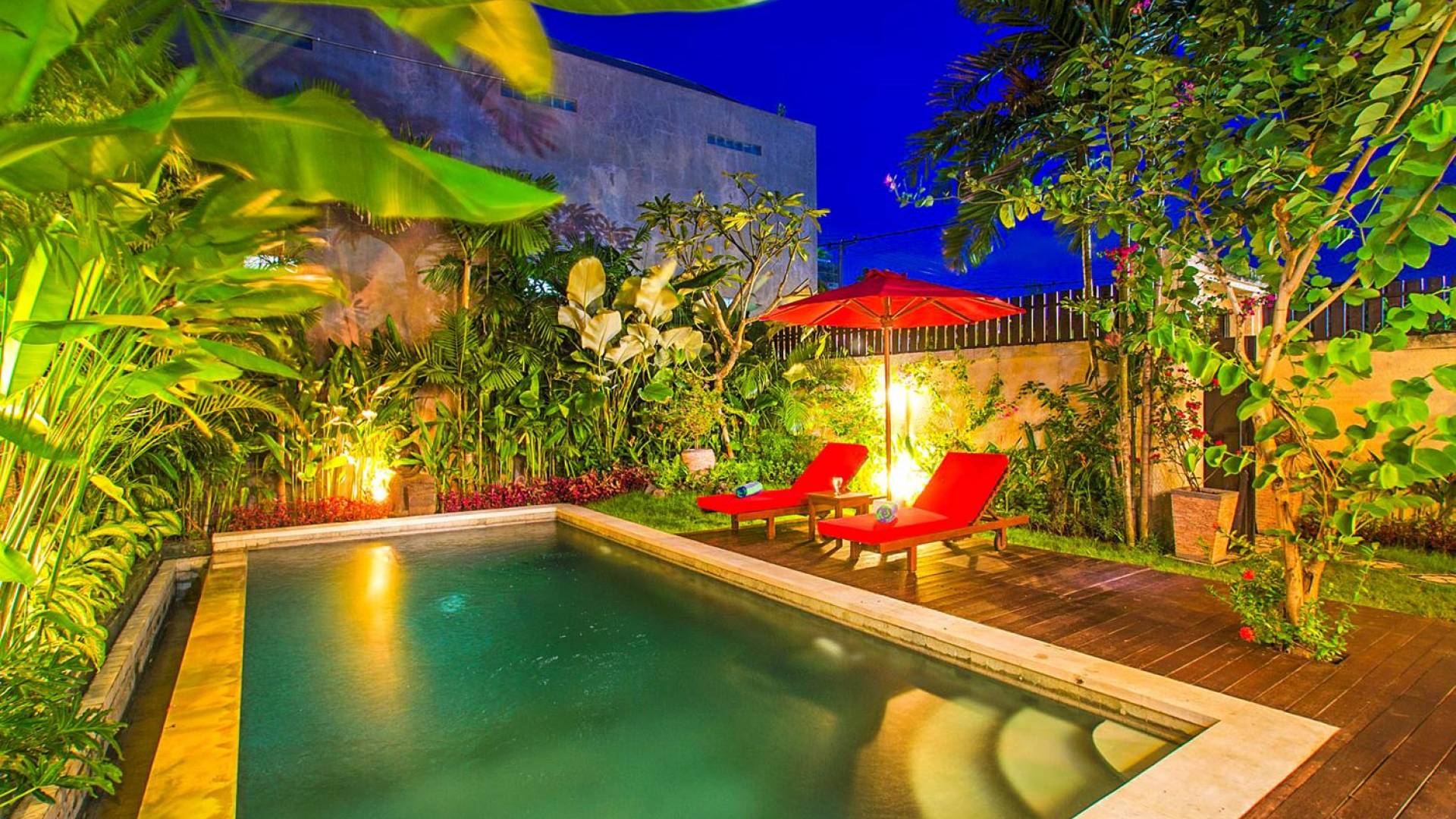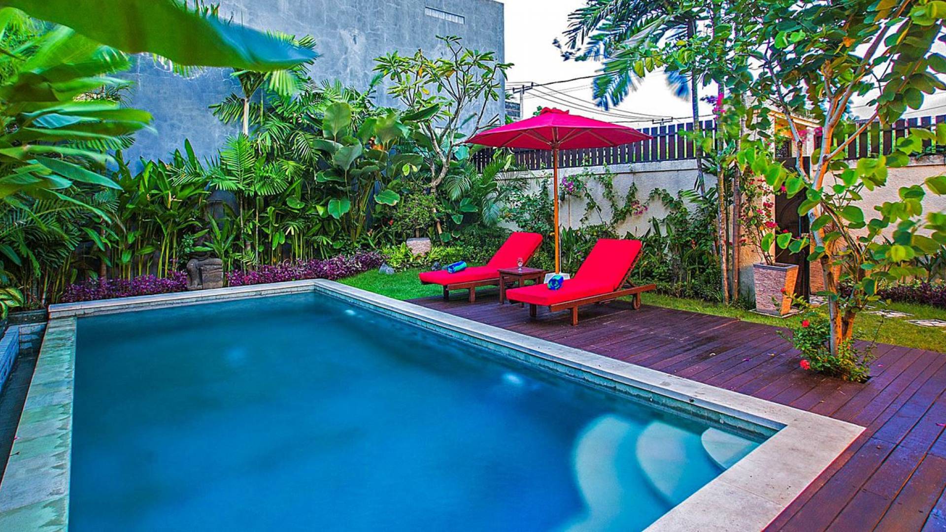 Villa Ashira Seminyak es una villa de lujo en alquiler con 2 dormitorios y piscina privada. Con una ubicación ideal en el centro de Seminyak, Villa Ashira ofrece una encantadora villa tradicional de estilo balinés equipada con comodidades modernas. La propiedad cuenta con 2 dormitorios, sala de estar al aire libre contigua al comedor e incluye una cocina moderna equipada con taburetes de bar. En el exterior, el verde rodea una piscina privada con tumbonas junto a la piscina.