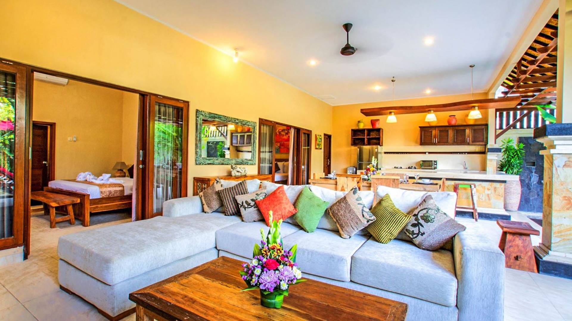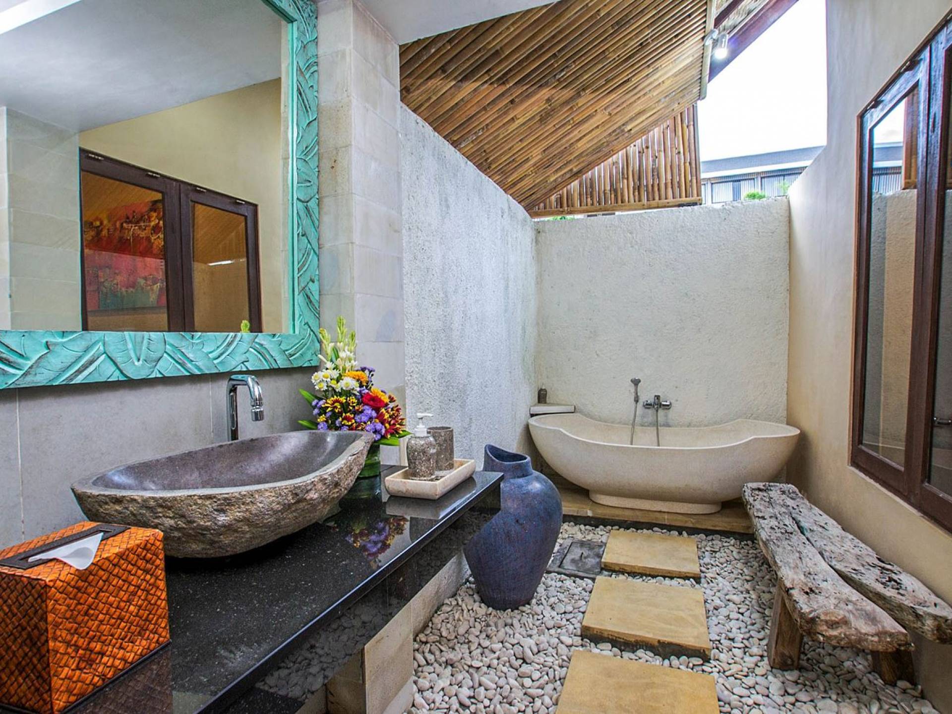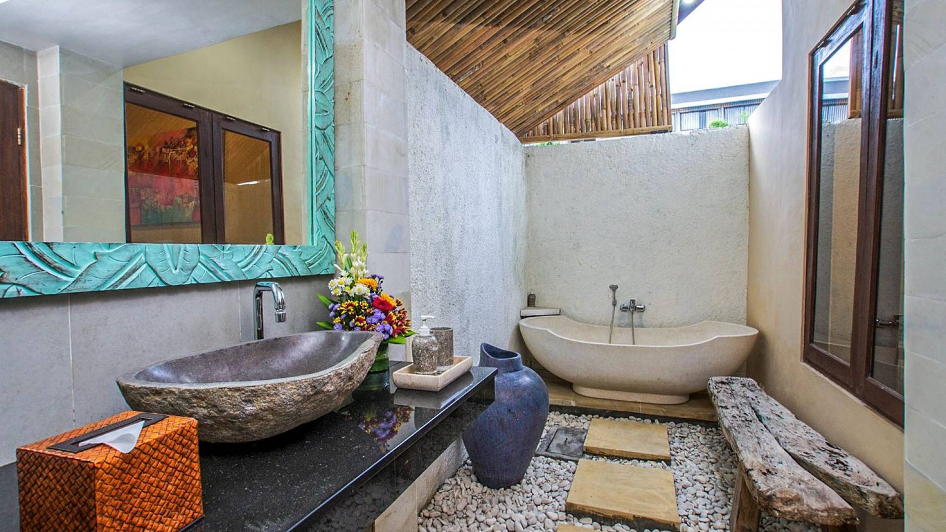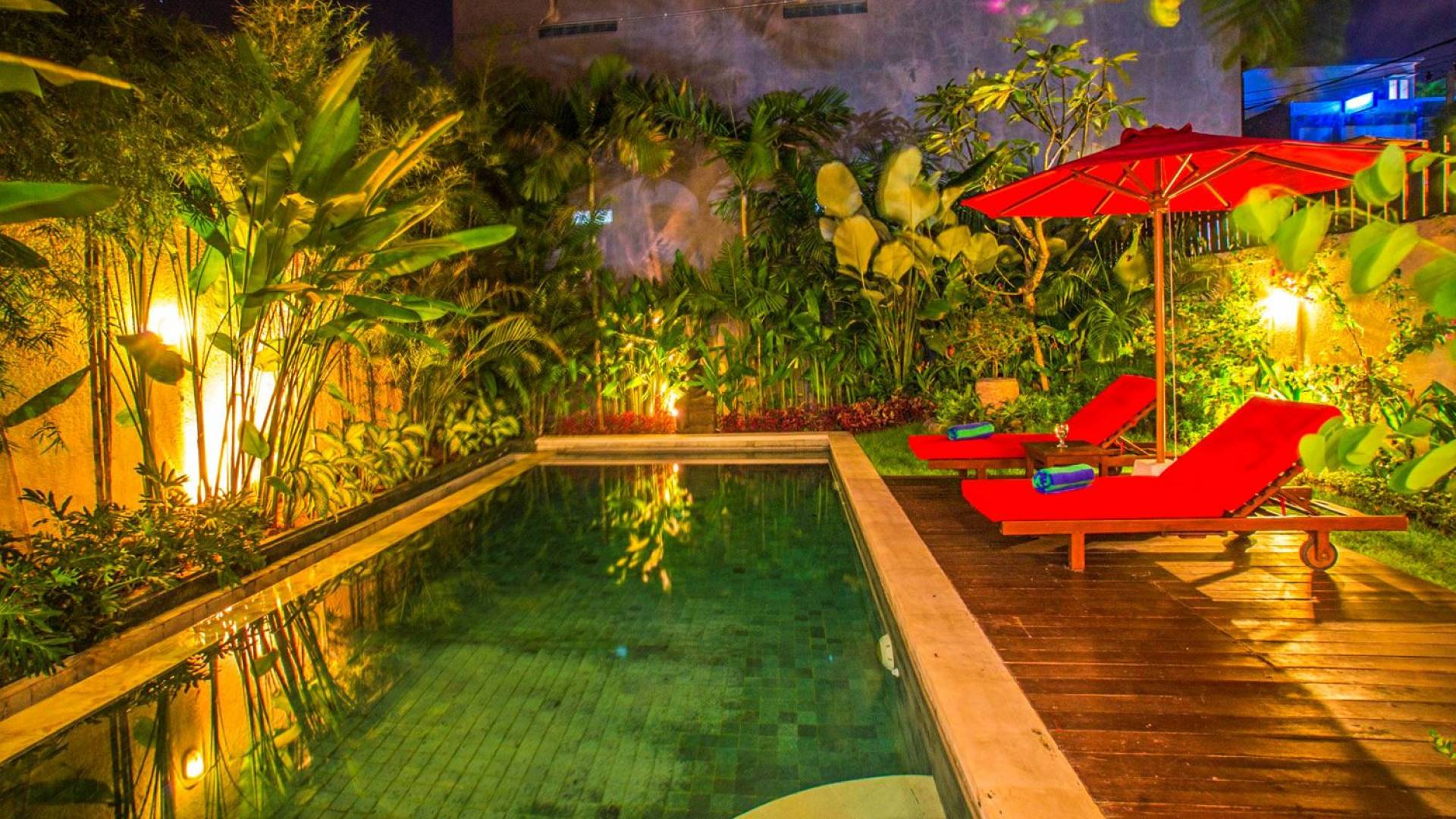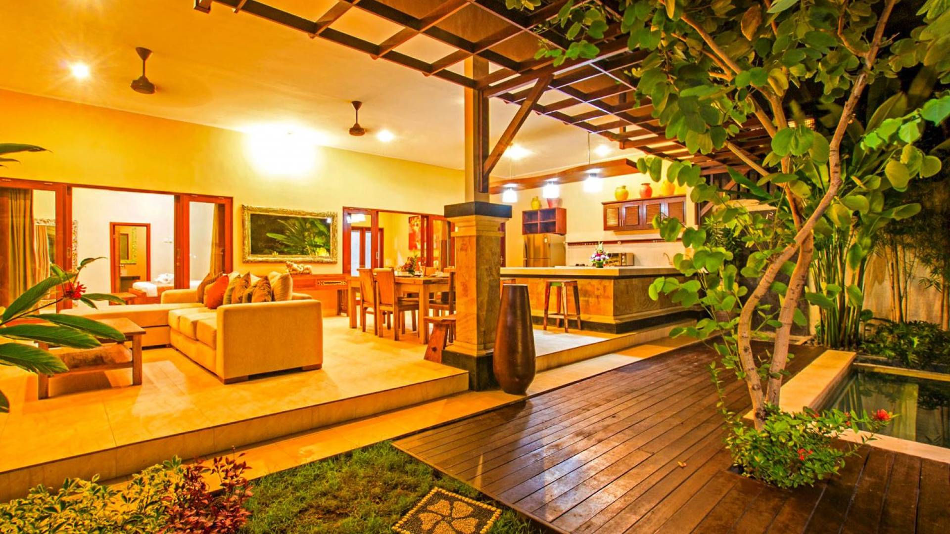 Villa Ashira Seminyak es una villa de lujo en alquiler con 2 dormitorios y piscina privada. Con una ubicación ideal en el centro de Seminyak, Villa Ashira ofrece una encantadora villa tradicional de estilo balinés equipada con comodidades modernas. La propiedad cuenta con 2 dormitorios, sala de estar al aire libre contigua al comedor e incluye una cocina moderna equipada con taburetes de bar. En el exterior, el verde rodea una piscina privada con tumbonas junto a la piscina.