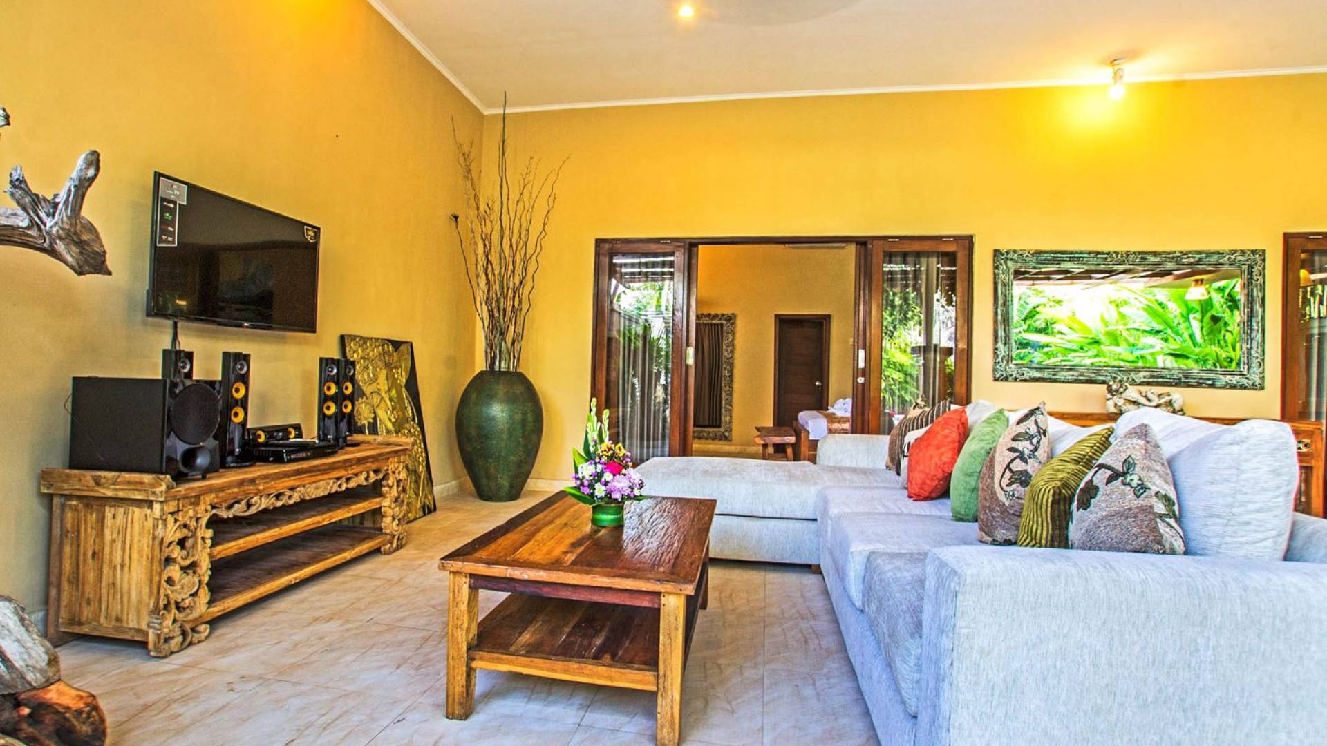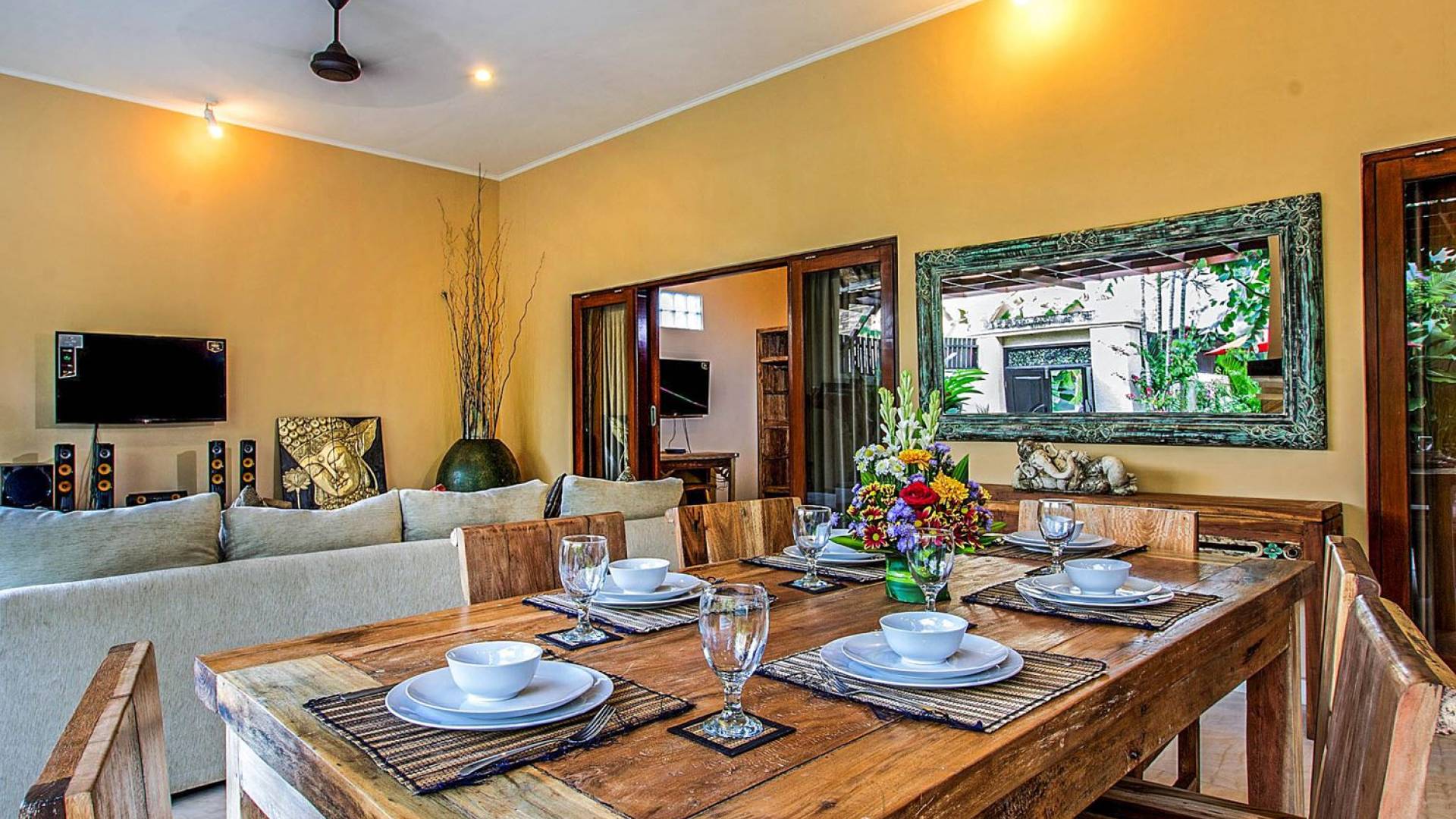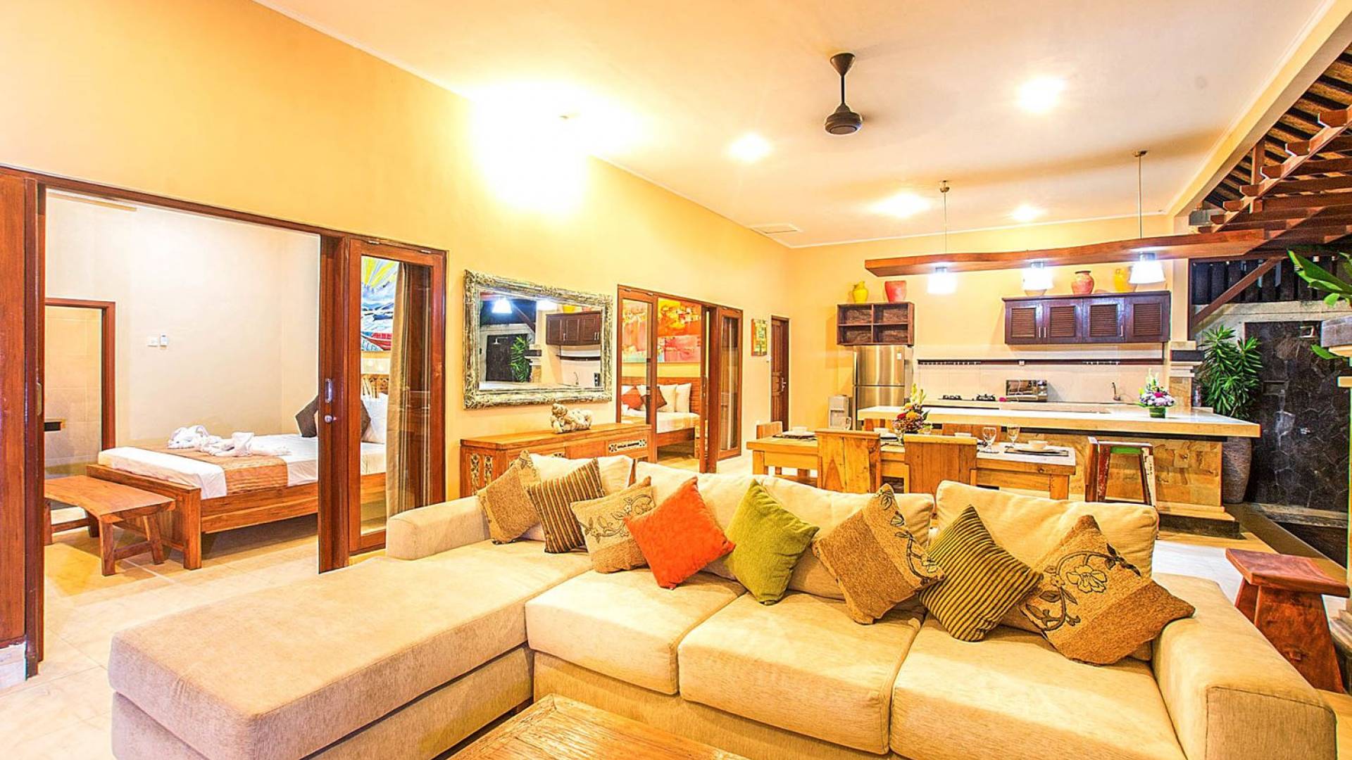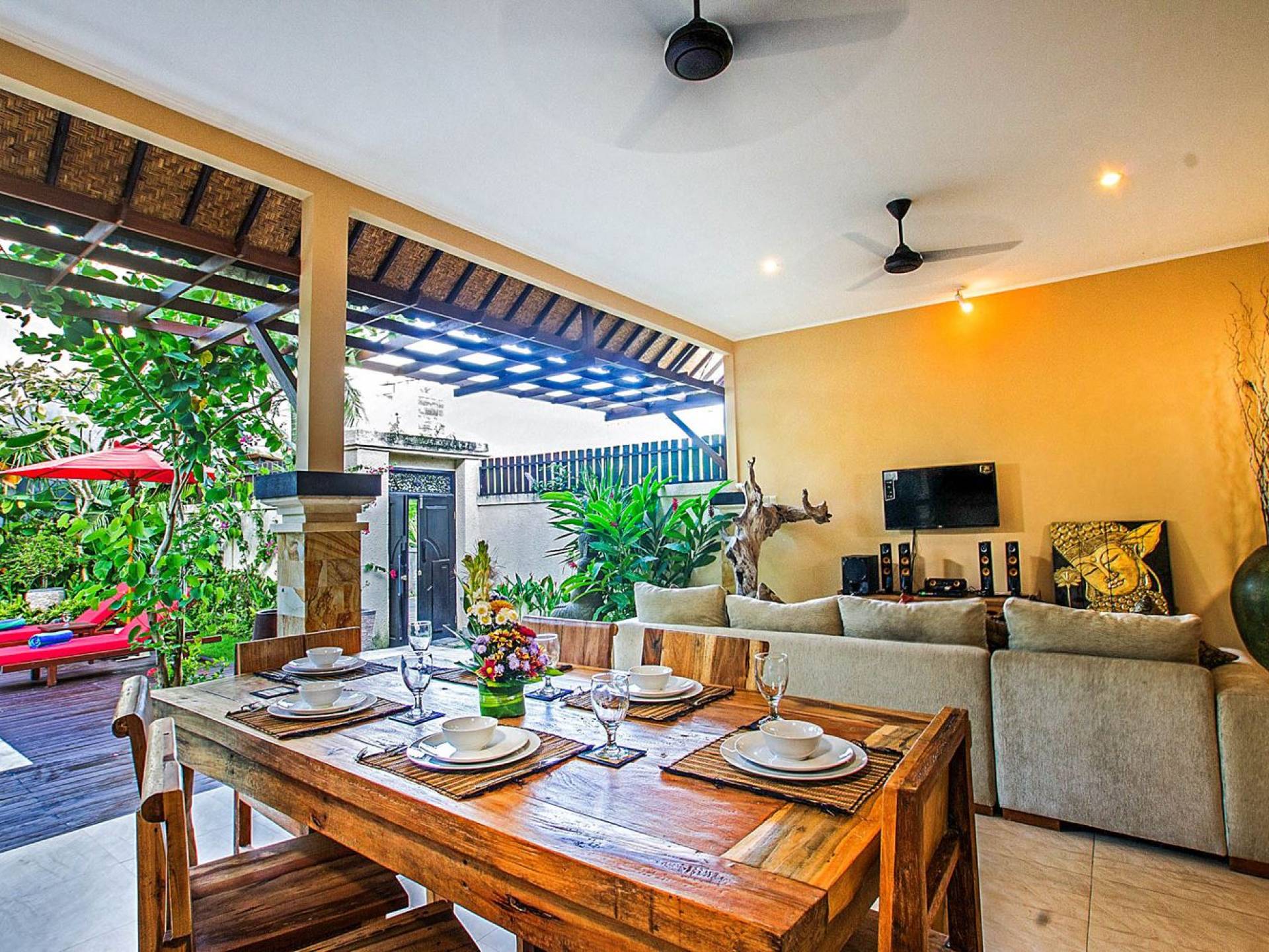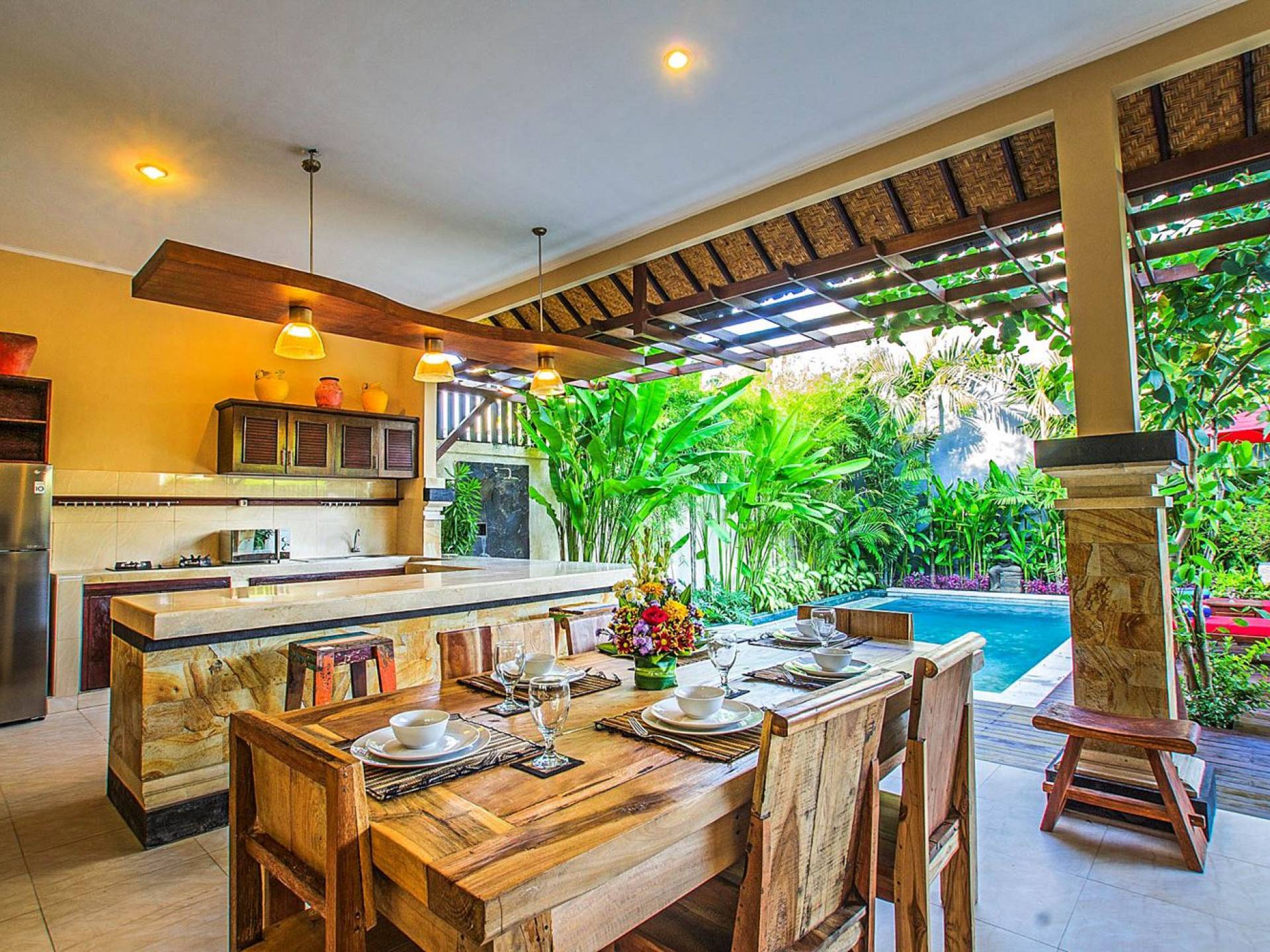 Villa Ashira Seminyak es una villa de lujo en alquiler con 2 dormitorios y piscina privada. Con una ubicación ideal en el centro de Seminyak, Villa Ashira ofrece una encantadora villa tradicional de estilo balinés equipada con comodidades modernas. La propiedad cuenta con 2 dormitorios, sala de estar al aire libre contigua al comedor e incluye una cocina moderna equipada con taburetes de bar. En el exterior, el verde rodea una piscina privada con tumbonas junto a la piscina.