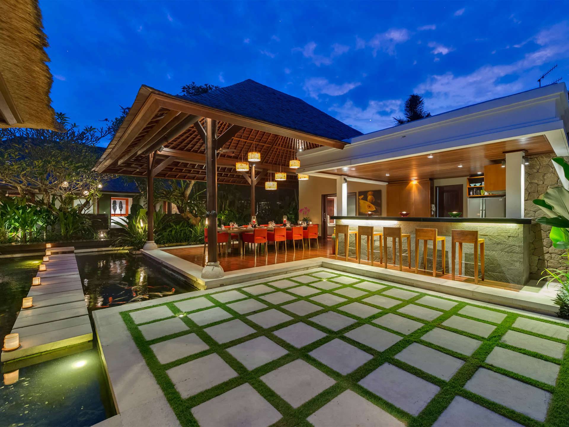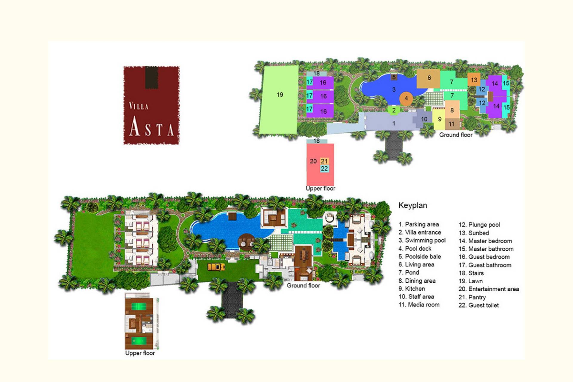 La enorme sala de juegos del piso superior tiene una mesa de billar, tenis de mesa, un sistema de cine en casa y una computadora. Detrás de la sala de juegos, se puede encontrar una cancha de bádminton - voleibol, todo al servicio de los niños que tienen sus propios tres dormitorios dobles que se pueden cambiar a reyes para los adultos. Los pabellones de dos dormitorios principales se encuentran en el otro extremo de la villa con su propia piscina grande para privacidad y relajación. La lujosa Villa Asta tiene su propio personal profesional, entre ellos un chef excepcional para las delicias locales de Bali. Consejo adicional: todos los huéspedes de la villa disfrutan de la membresía del Canguu Club y la playa Batubelig a poca distancia, mientras que Seminyak está a solo un corto trayecto en coche.