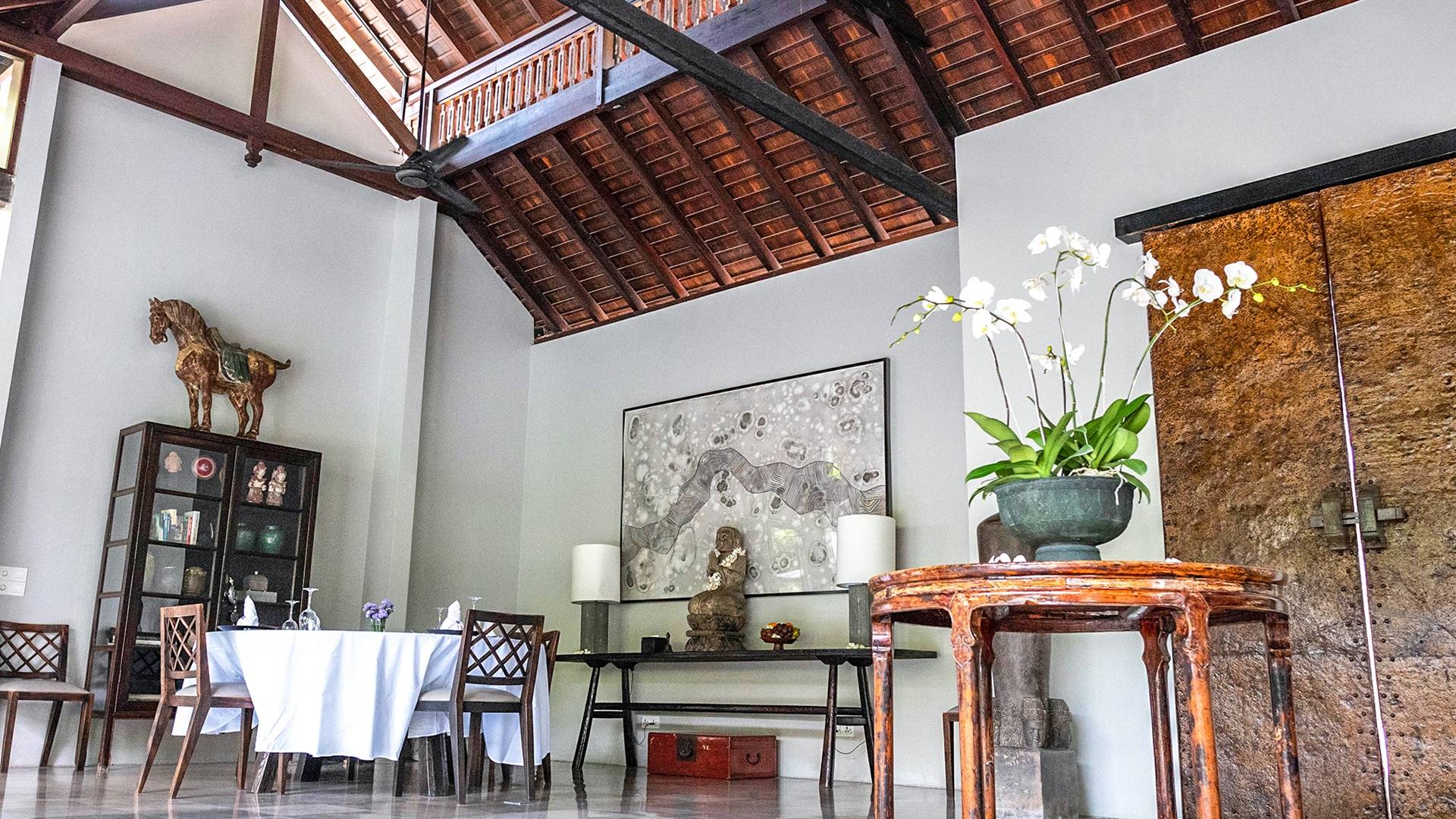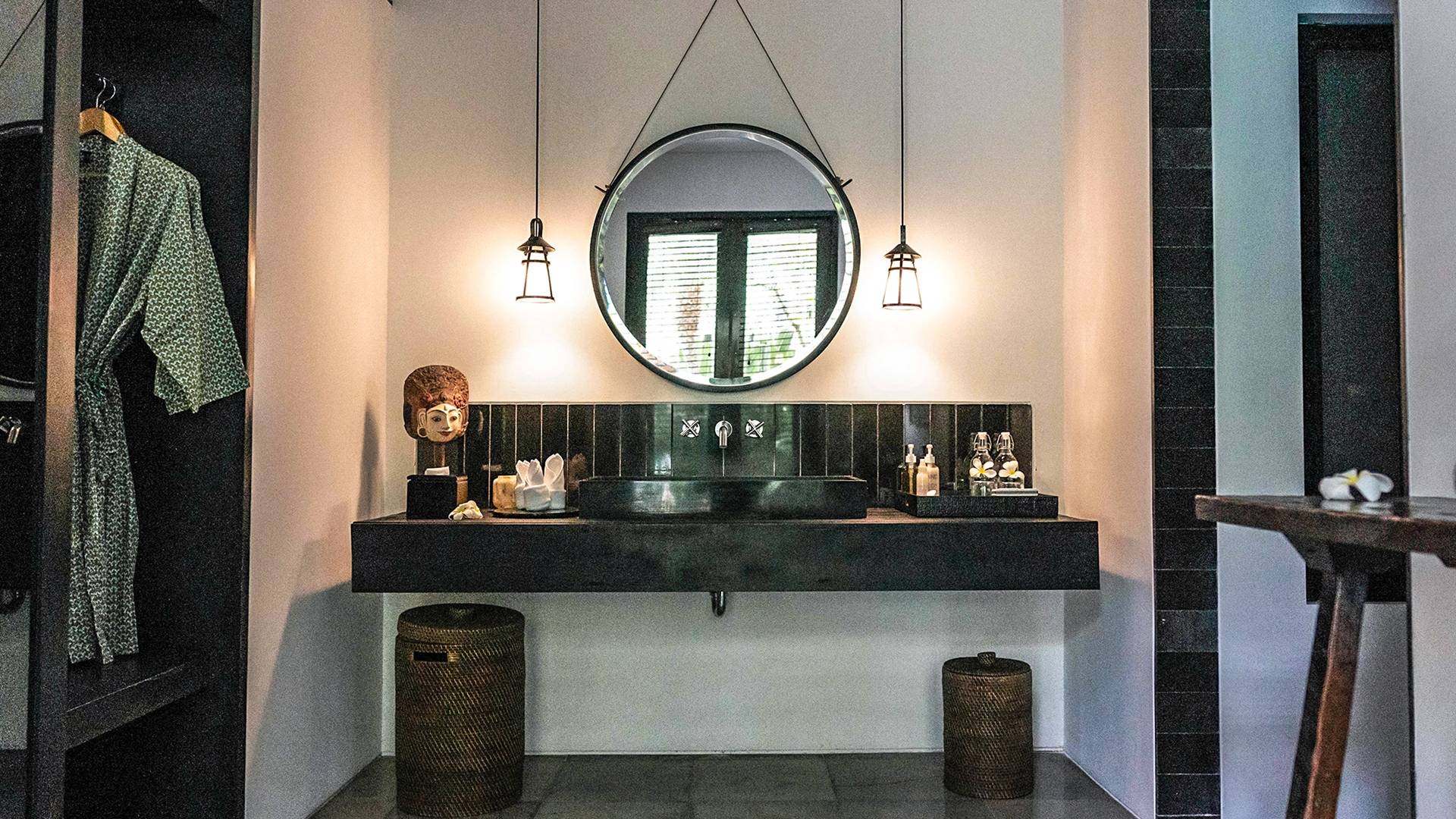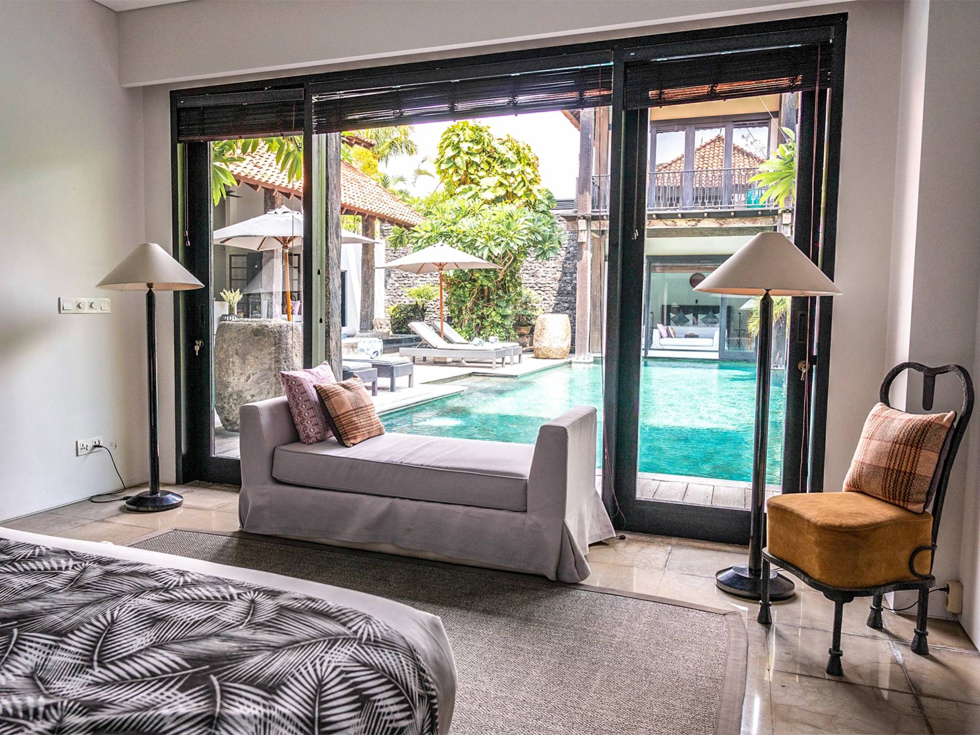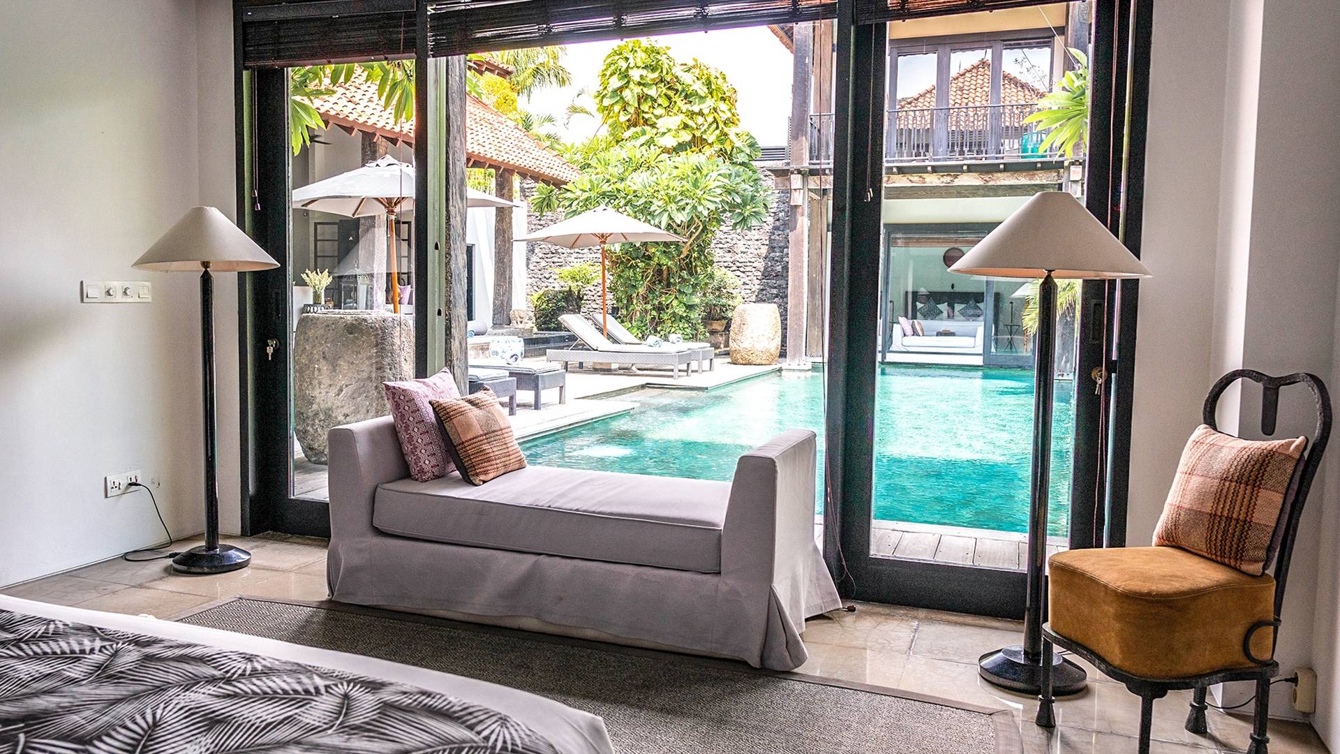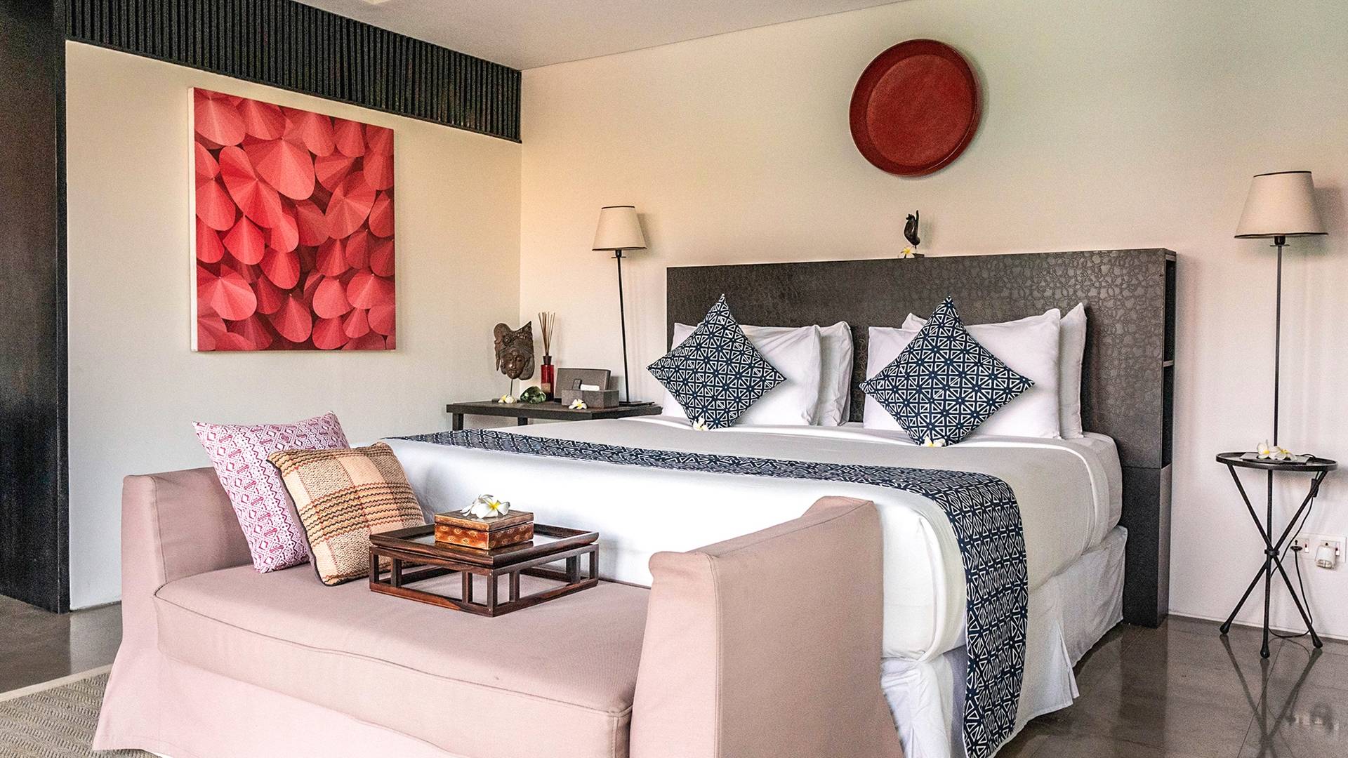 Rústica pero refinada, Villa De Suma insinúa la gracia y el romance de una época pasada, con sus majestuosos pilares de madera de hierro reciclado, antigüedades orientales y curiosidades indonesias. Sin embargo, hay muchas comodidades para garantizar las vacaciones más lujosas, incluidos muebles personalizados, WiFi, parlantes Bose y TV LCD vía satélite en todas partes. La piscina tropical de 12 metros da a un jardín vertical repleto de follaje tropical, mientras que una amplia terraza para tomar el sol tiene tumbonas y tumbonas incorporadas. Las cuatro espaciosas habitaciones son de estilo contemporáneo, con vestidores grandes y baños elegantes y relucientes con azulejos de granito negro y equipados con duchas de efecto lluvia.