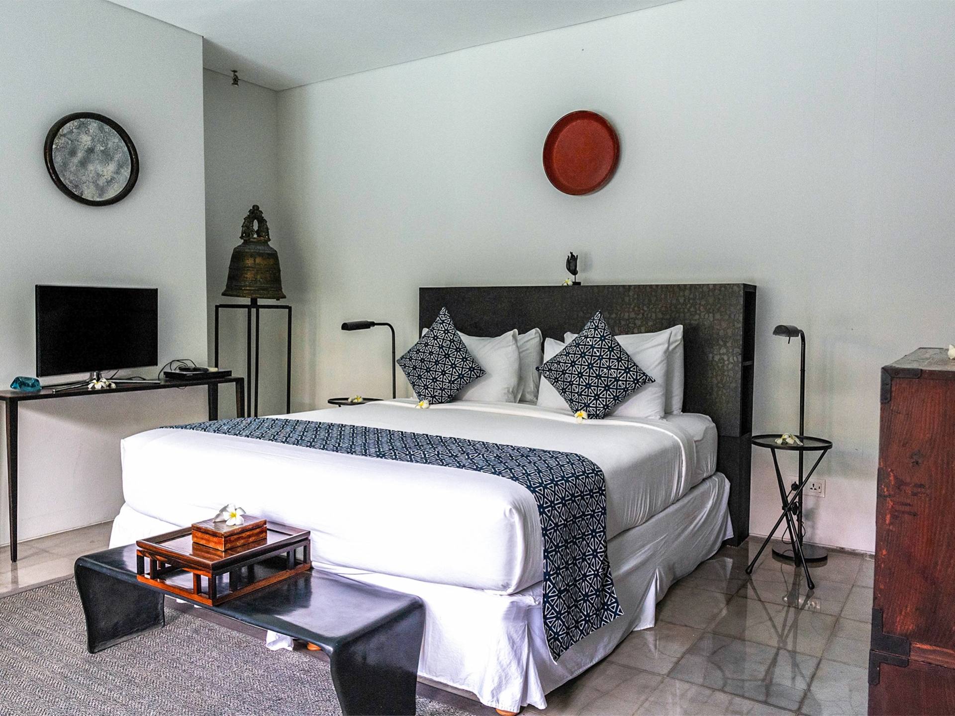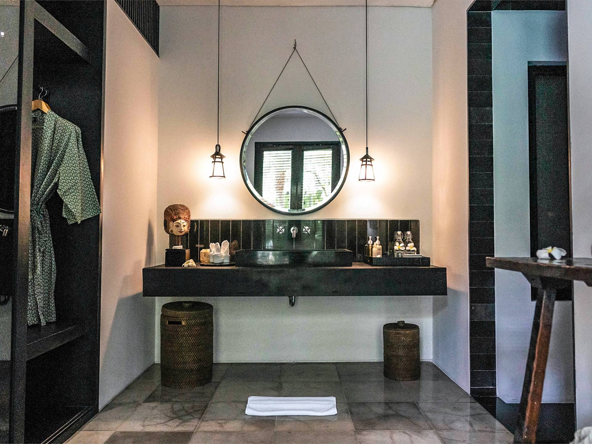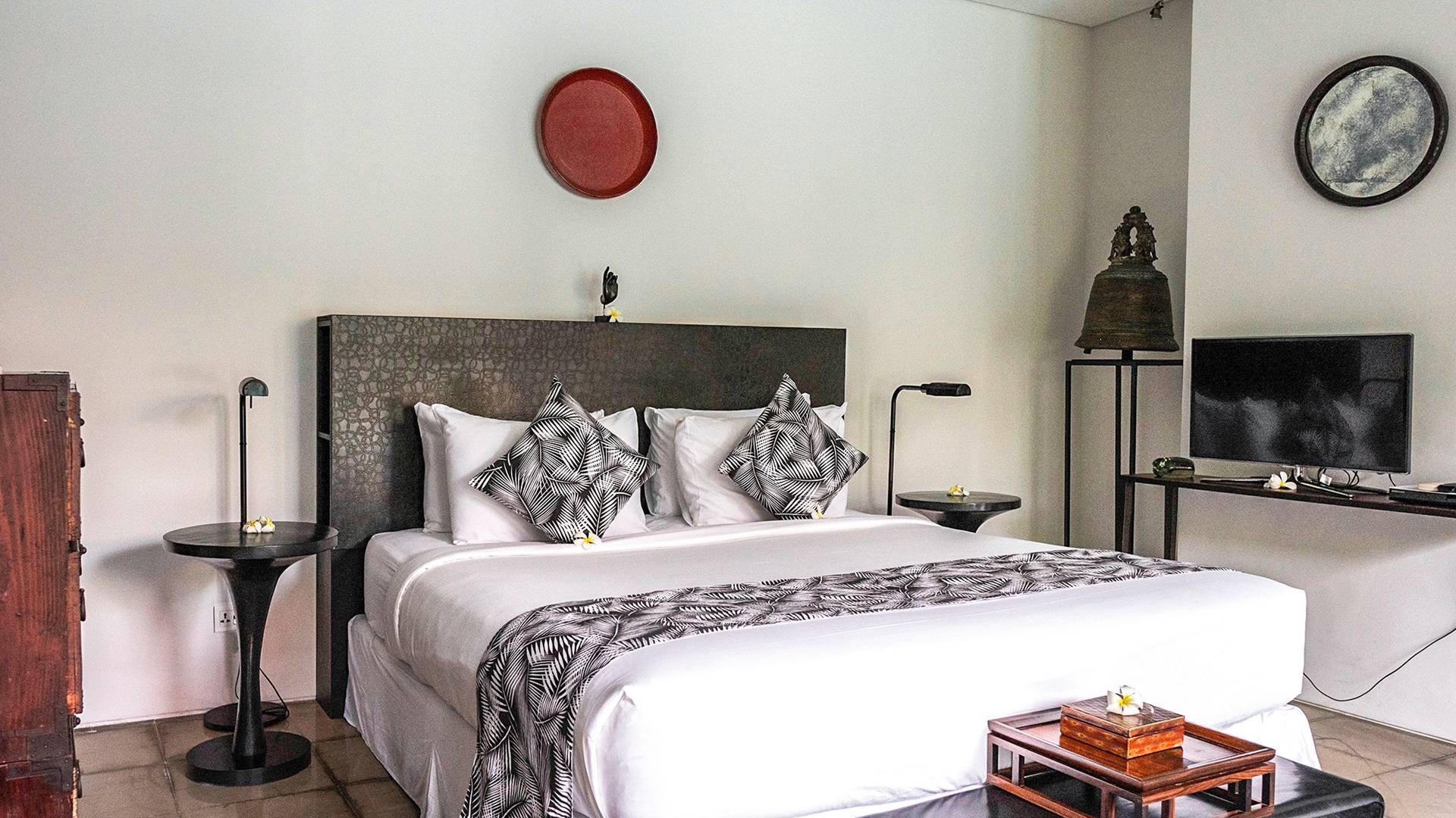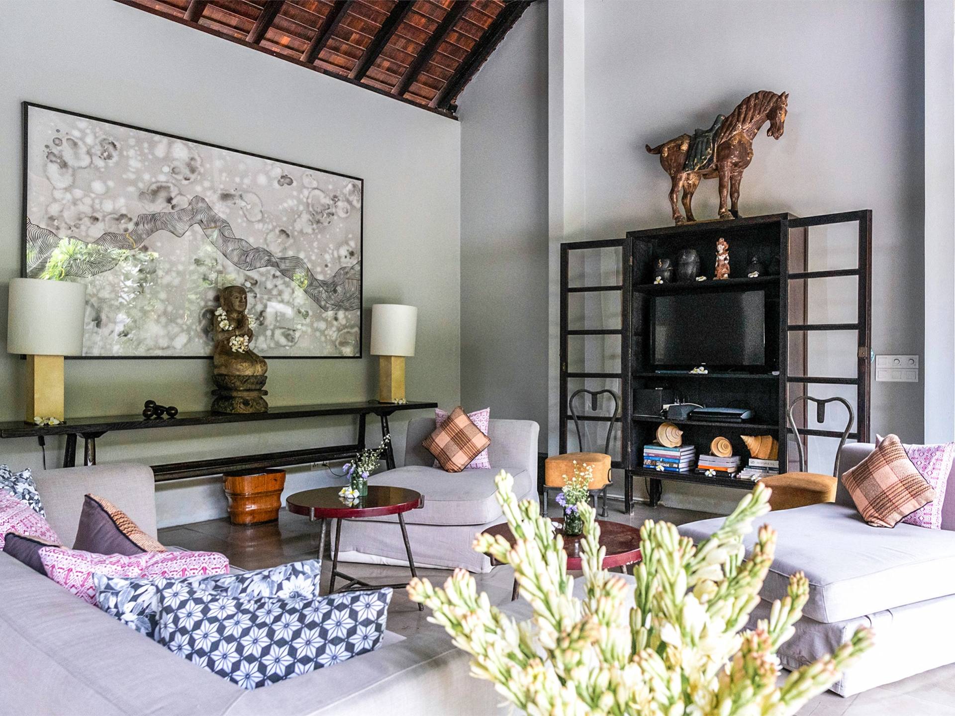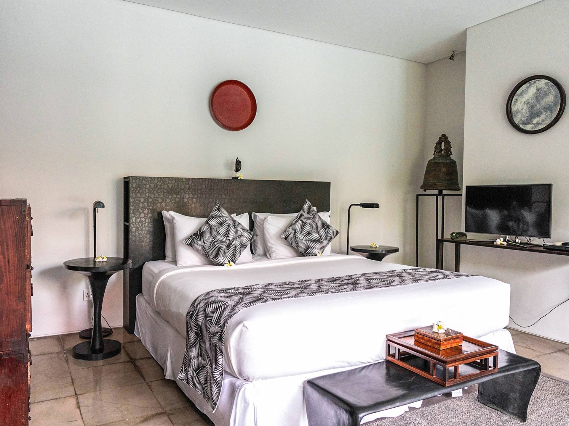 Rústica pero refinada, Villa De Suma insinúa la gracia y el romance de una época pasada, con sus majestuosos pilares de madera de hierro reciclado, antigüedades orientales y curiosidades indonesias. Sin embargo, hay muchas comodidades para garantizar las vacaciones más lujosas, incluidos muebles personalizados, WiFi, parlantes Bose y TV LCD vía satélite en todas partes. La piscina tropical de 12 metros da a un jardín vertical repleto de follaje tropical, mientras que una amplia terraza para tomar el sol tiene tumbonas y tumbonas incorporadas. Las cuatro espaciosas habitaciones son de estilo contemporáneo, con vestidores grandes y baños elegantes y relucientes con azulejos de granito negro y equipados con duchas de efecto lluvia.