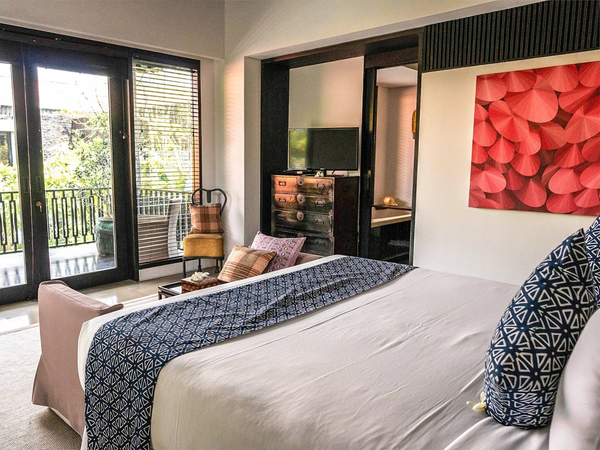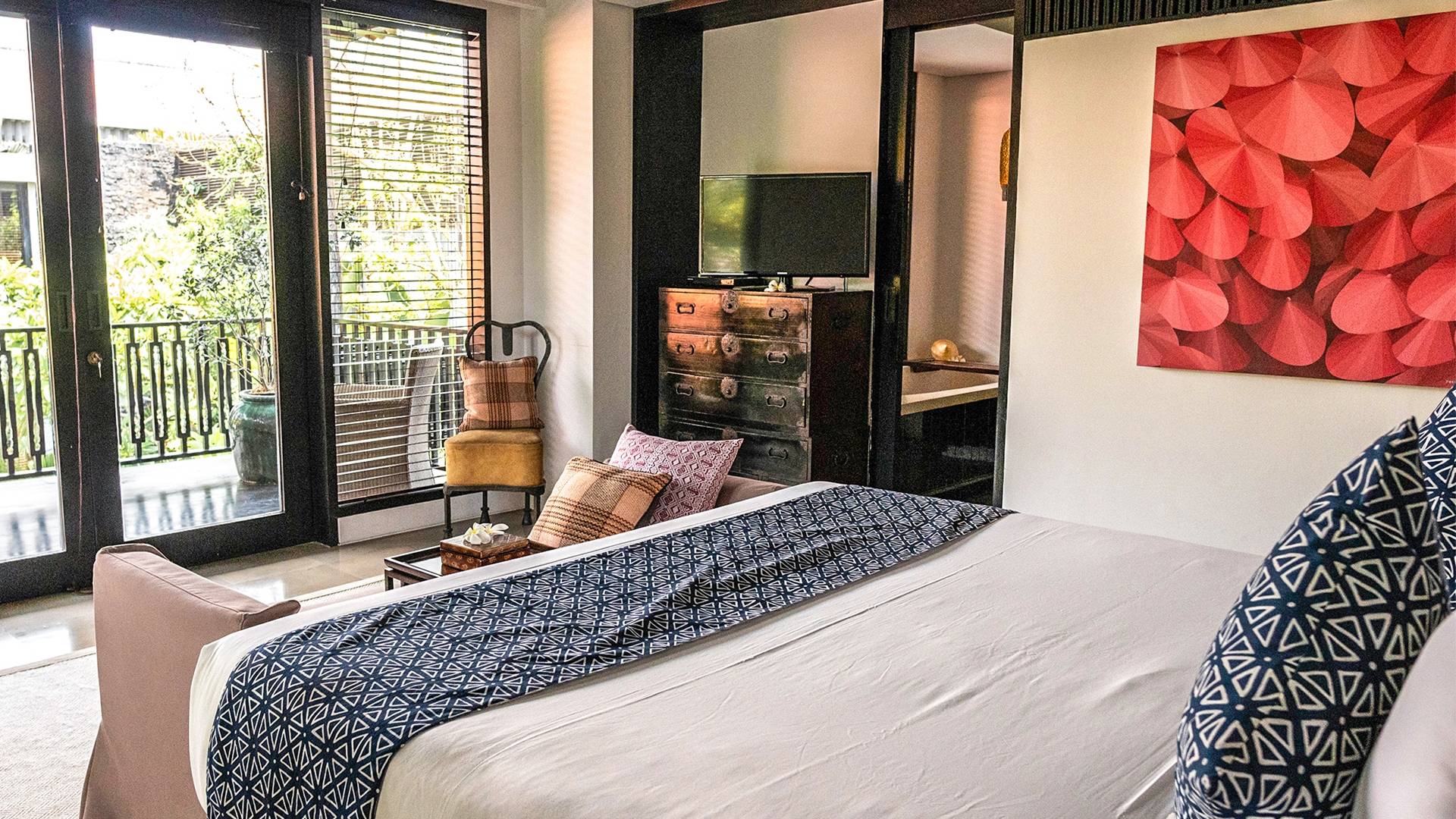 La ubicación de Villa De Suma la hace perfecta para grupos que deseen pintar la ciudad de rojo, pero la ubicación segura de la propiedad y el personal amable hacen que sea igualmente adecuada para familias. Hay docenas de restaurantes a poca distancia a pie, pero si desea quedarse, un chef privado está disponible (disponible con cargo adicional) para preparar una generosa cocina occidental, indonesia y asiática a partir de un menú de sugerencias.