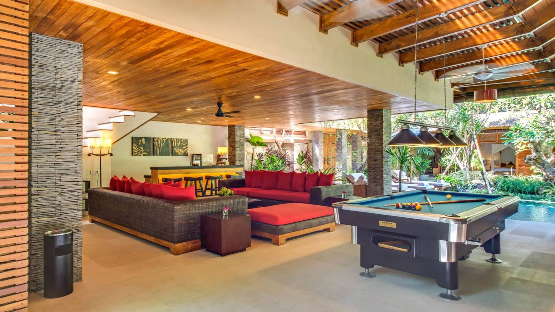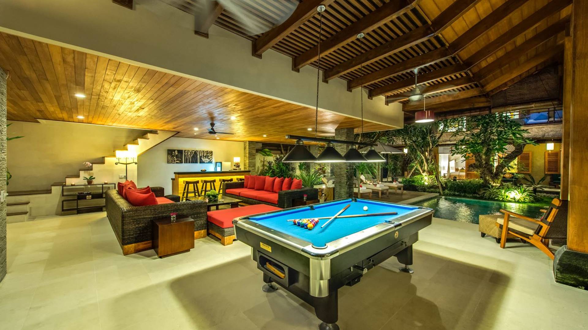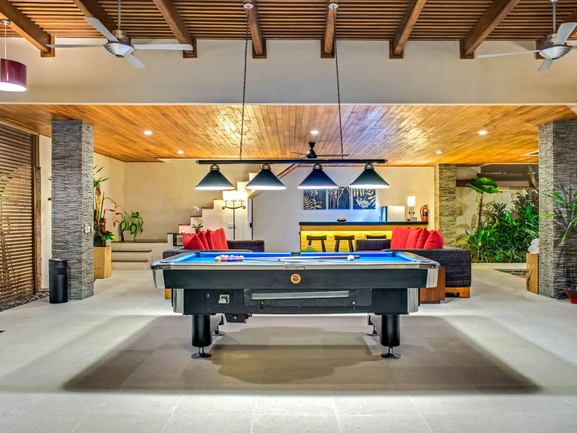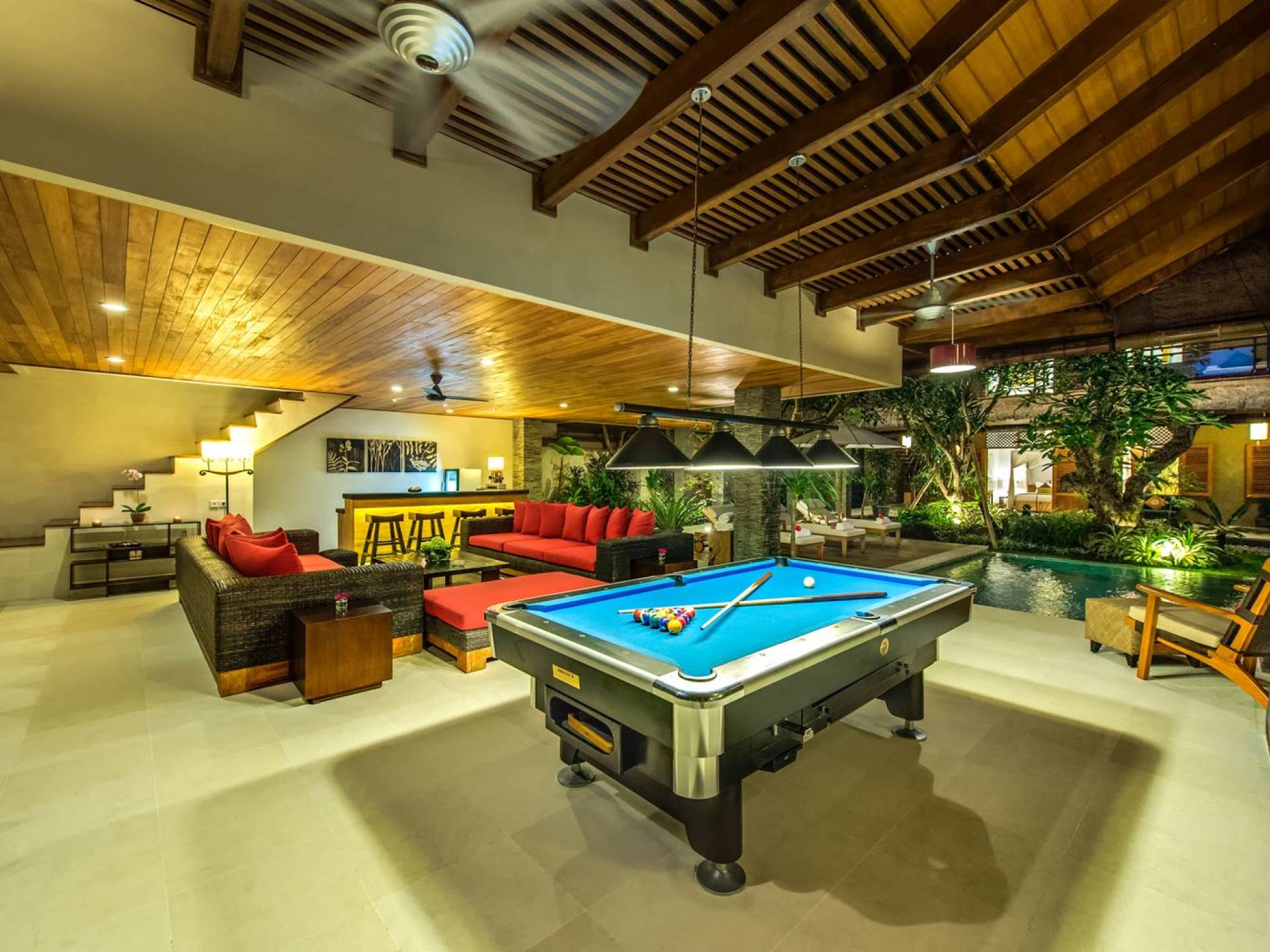 En Bali, una villa se define verdaderamente por sus áreas al aire libre. Villa Kinaree ofrece impresionantes espacios cubiertos al aire libre completos con áreas de bar, sofás enormes y profundos y una mesa de billar con cama de pizarra. Para los amantes del sol, hay tumbonas y una hermosa piscina de agua salada enmarcada por una cascada y jardines vírgenes.
