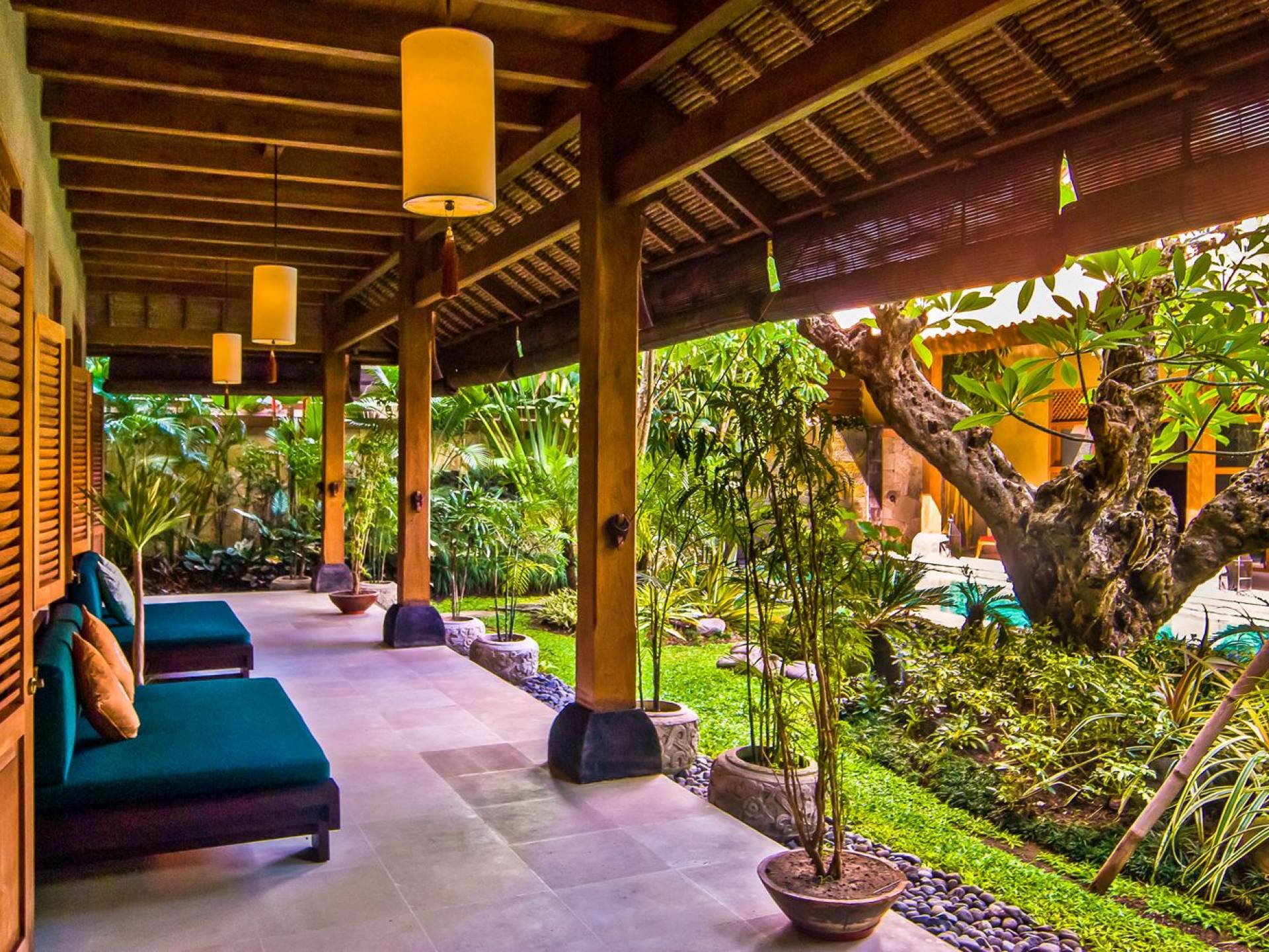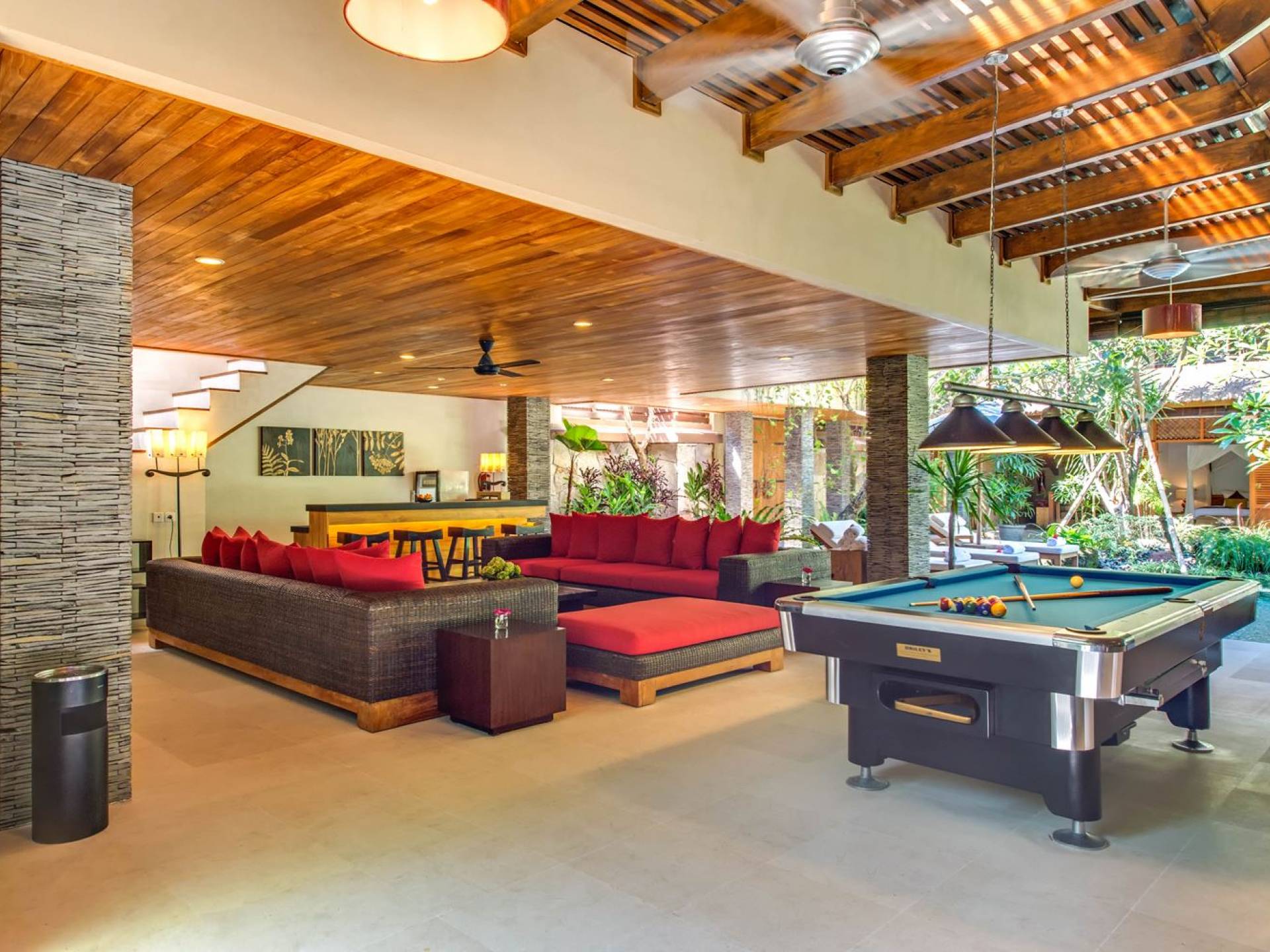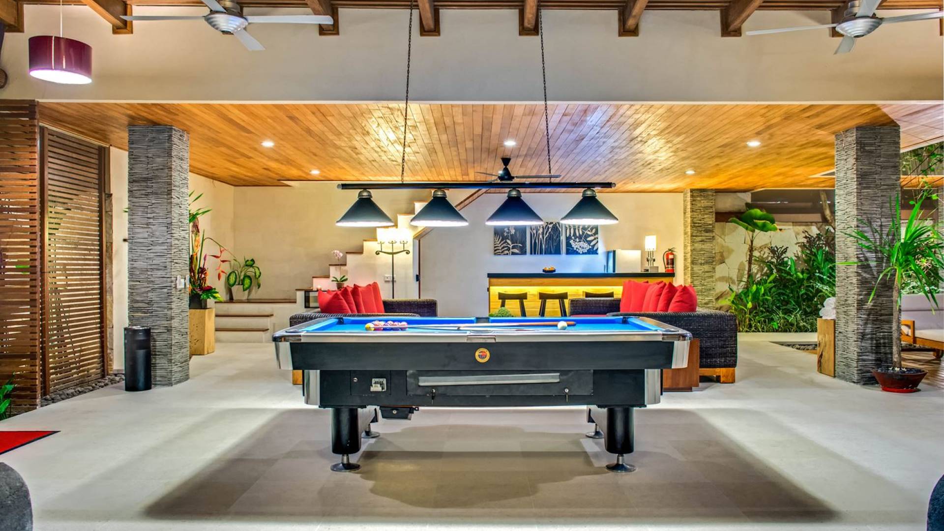 En Bali, una villa se define verdaderamente por sus áreas al aire libre. Villa Kinaree ofrece impresionantes espacios cubiertos al aire libre completos con áreas de bar, sofás enormes y profundos y una mesa de billar con cama de pizarra. Para los amantes del sol, hay tumbonas y una hermosa piscina de agua salada enmarcada por una cascada y jardines vírgenes.