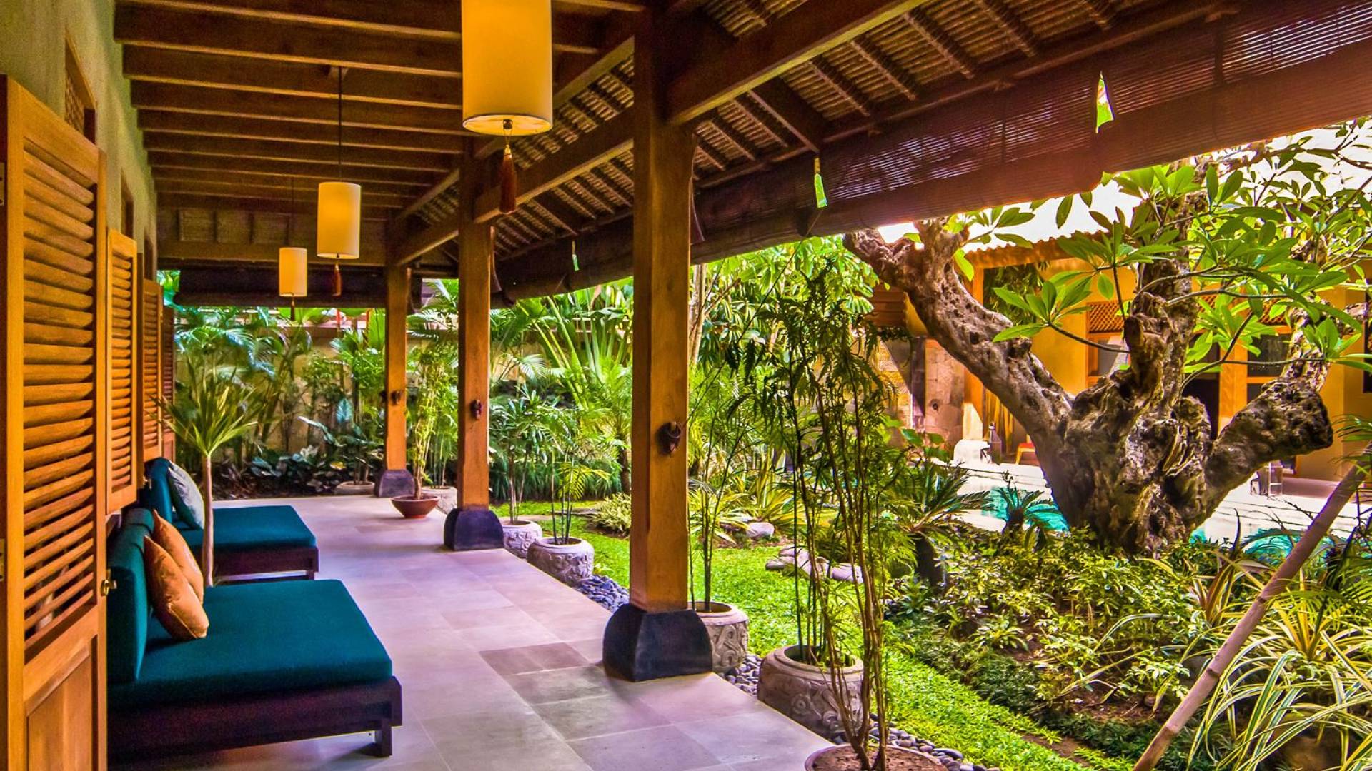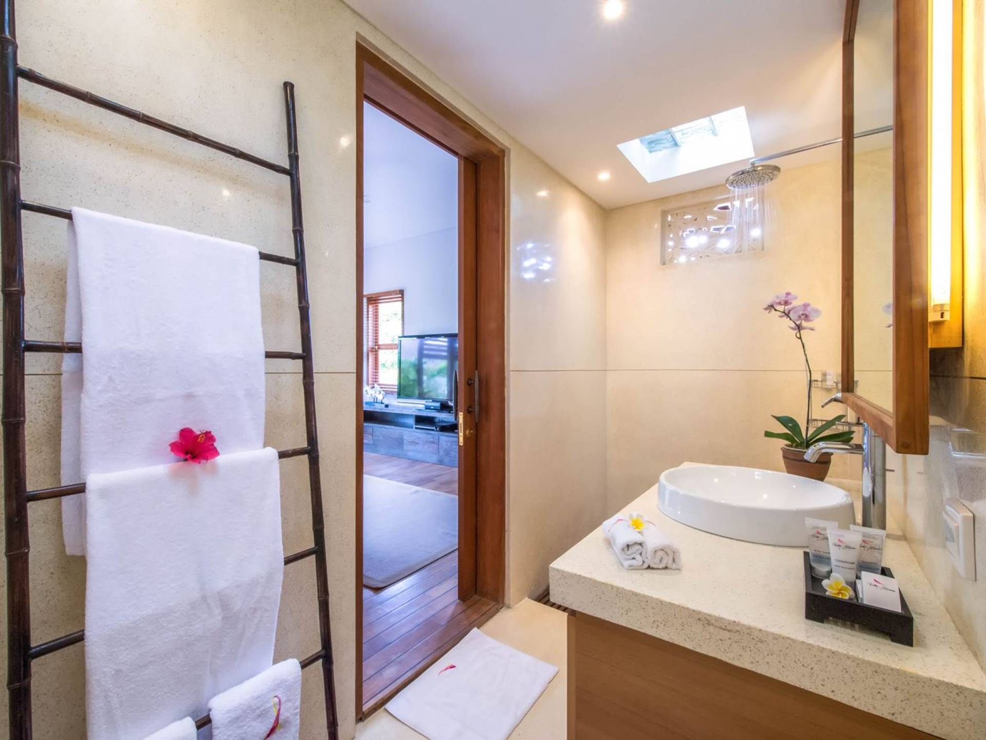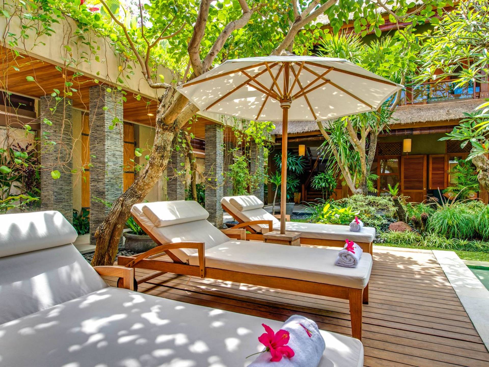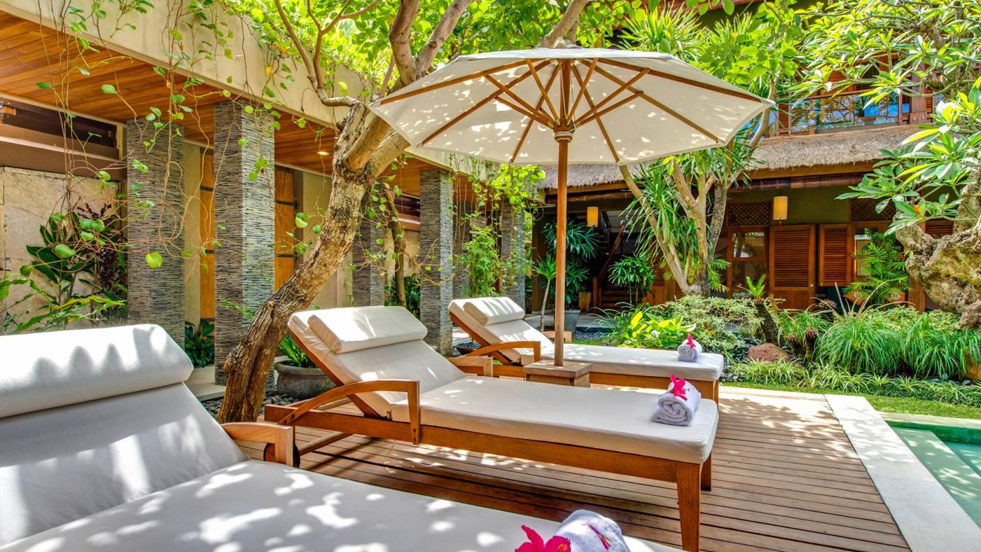 En Bali, una villa se define verdaderamente por sus áreas al aire libre. Villa Kinaree ofrece impresionantes espacios cubiertos al aire libre completos con áreas de bar, sofás enormes y profundos y una mesa de billar con cama de pizarra. Para los amantes del sol, hay tumbonas y una hermosa piscina de agua salada enmarcada por una cascada y jardines vírgenes.