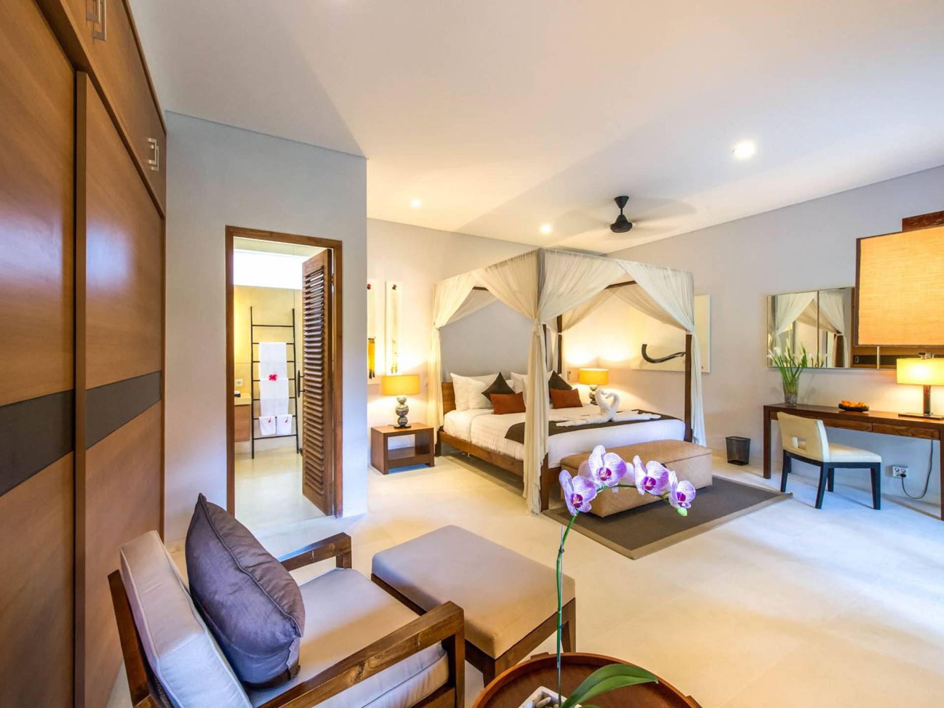 Villa Kinaree combina la belleza de la arquitectura tradicional balinesa con increíbles niveles de comodidad y servicios. La belleza estética de los acabados de madera de teca, los techos de paja y de tejas junto a los impresionantes jardines paisajísticos en una propiedad completamente privada que da al interior se sienta cómodamente junto al lujo con aire acondicionado de las amplias salas de estar/comedor y las hermosas y maravillosamente relajantes suites de dormitorio. cada uno de los cuales se beneficia de un magnífico baño en suite, amplios armarios y una zona de estar al aire libre, ideal para la contemplación tranquila.