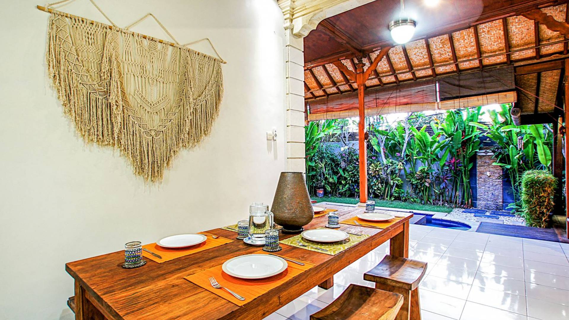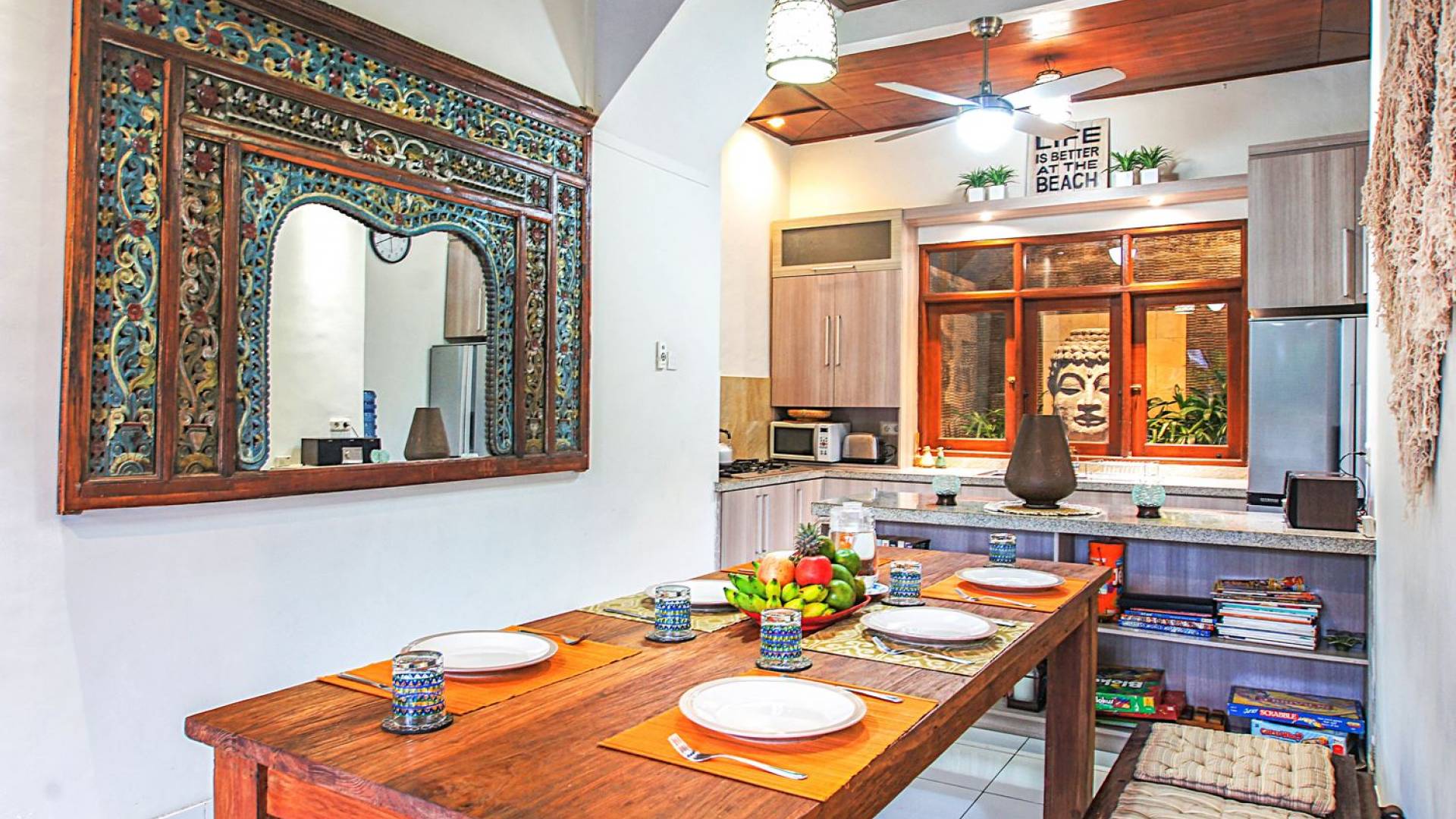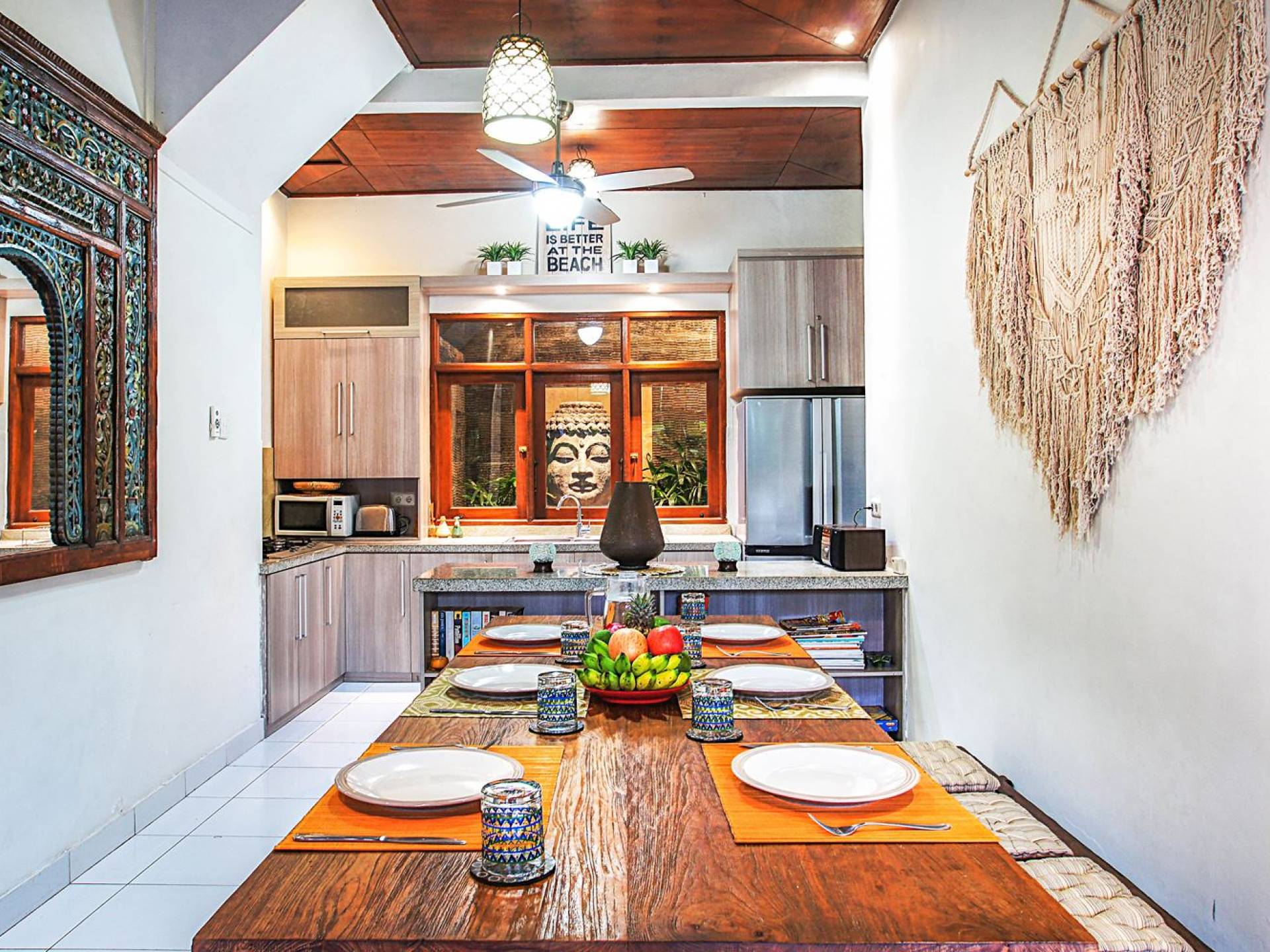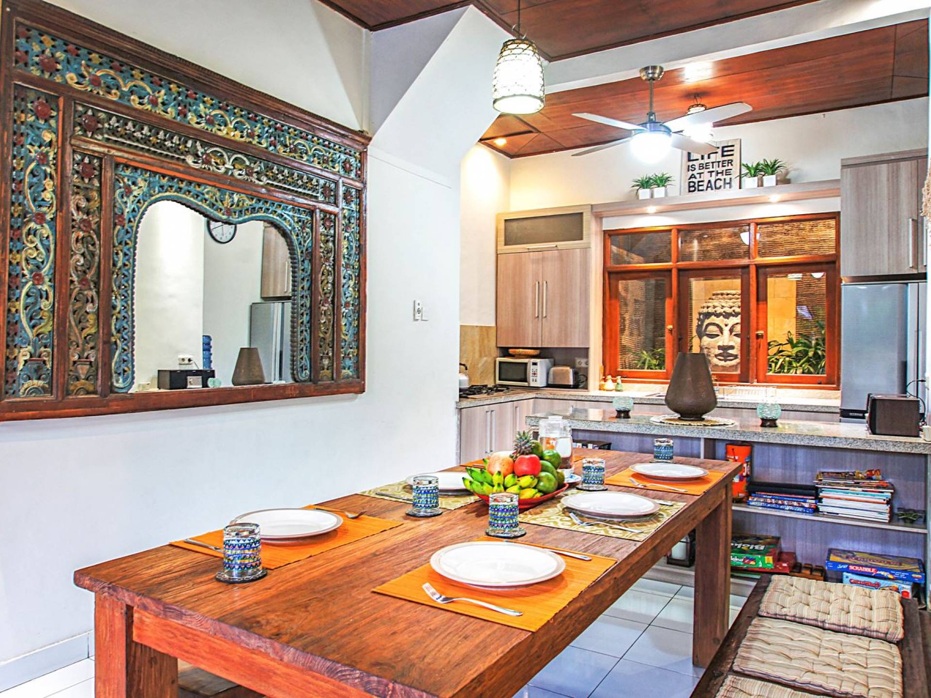 Una sala de estar al aire libre contigua a un espacio de comedor para hasta 8 personas e incluye una cocina bien equipada. Afuera cuenta con verde que rodea una piscina privada con tumbonas junto a la piscina. La villa es la elección perfecta para una familia que busca la auténtica vida balinesa sin alejarse del distrito más cosmopolita de Bali. Estratégicamente ubicada en el centro de Seminyak, Villa Litan se encuentra a poca distancia de muchas tiendas/boutiques de ropa, tiendas convenientes, restaurantes, cafeterías y la playa de Seminyak.