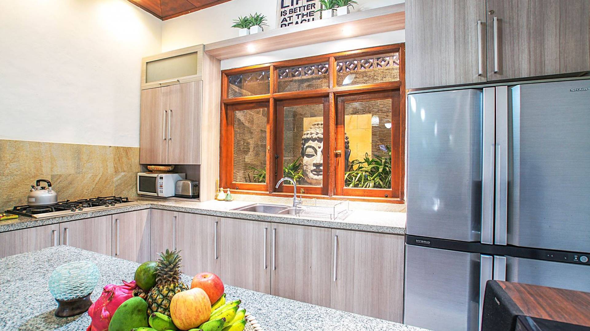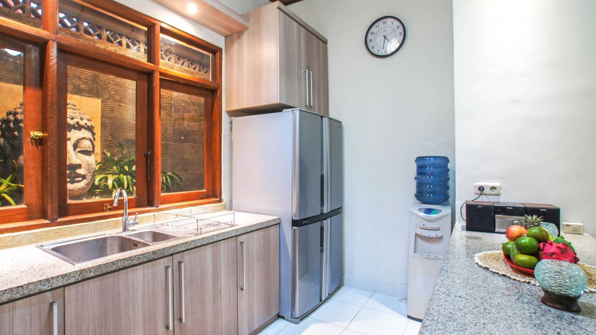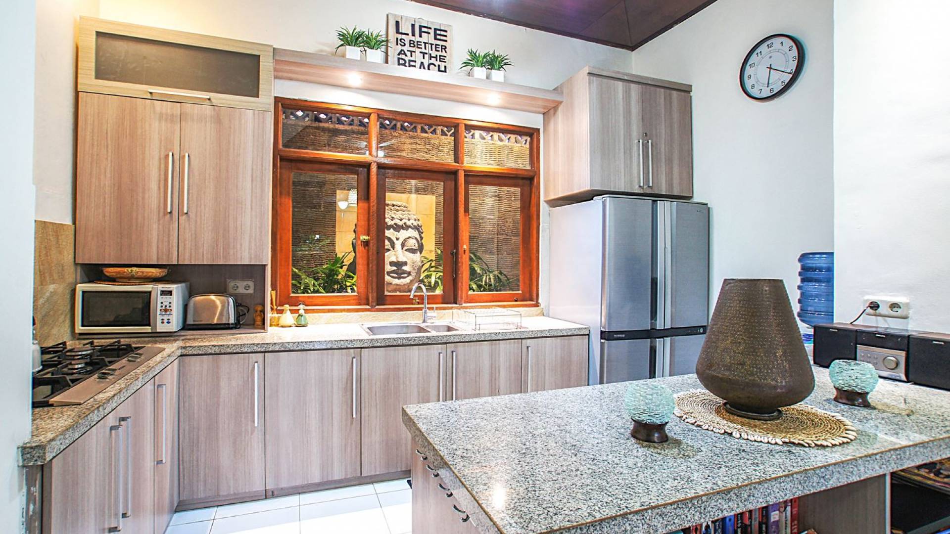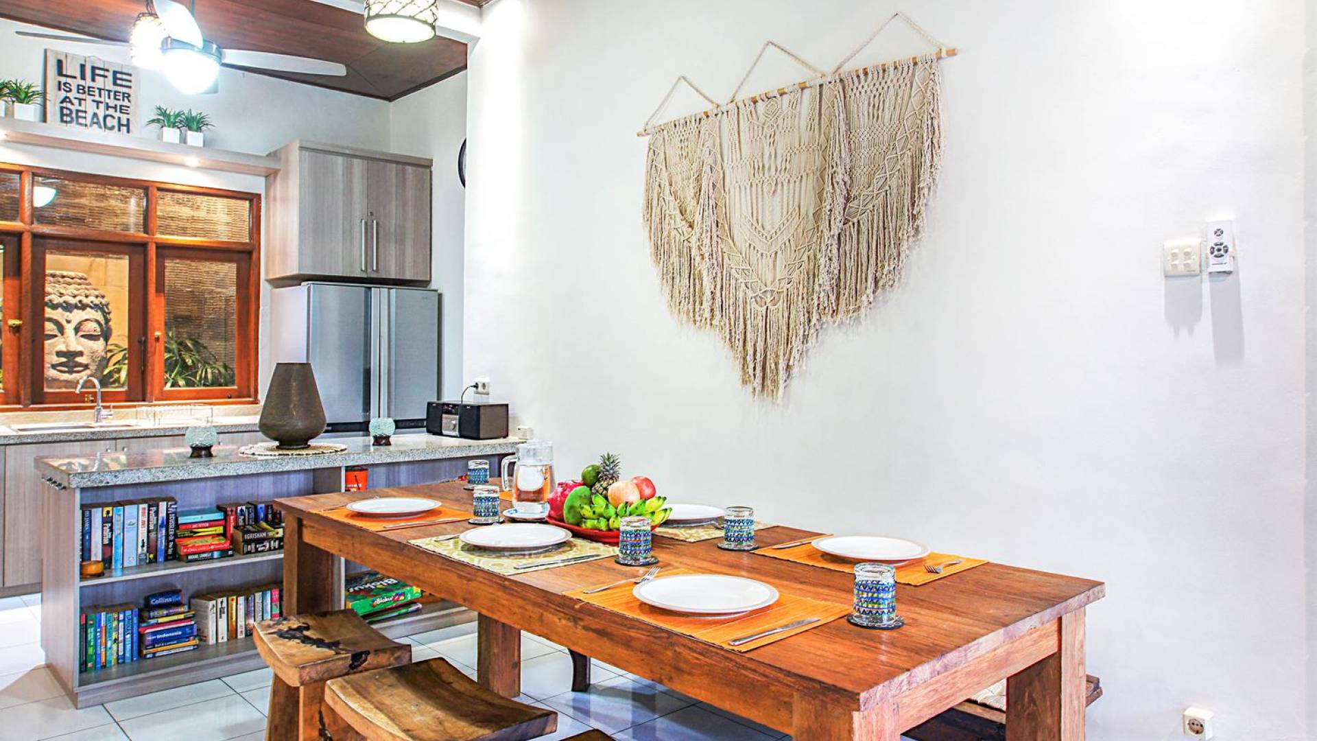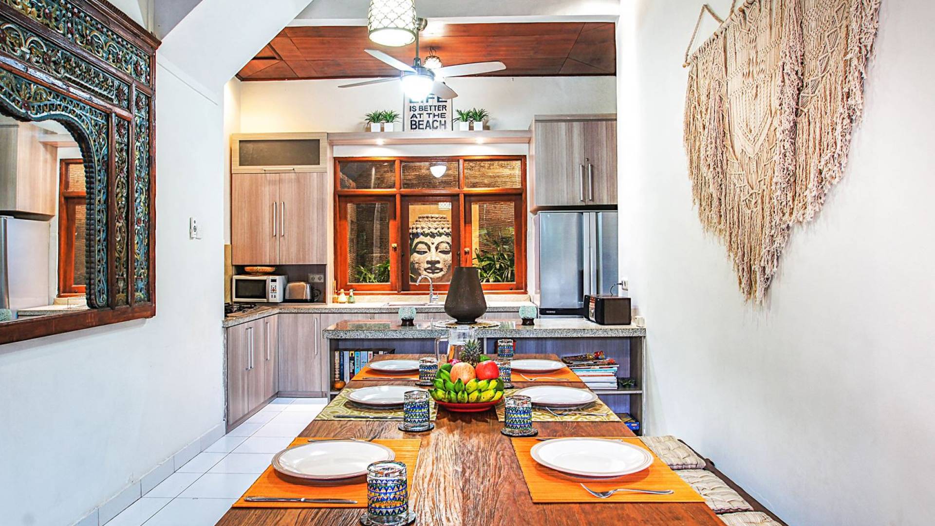 Una sala de estar al aire libre contigua a un espacio de comedor para hasta 8 personas e incluye una cocina bien equipada. Afuera cuenta con verde que rodea una piscina privada con tumbonas junto a la piscina. La villa es la elección perfecta para una familia que busca la auténtica vida balinesa sin alejarse del distrito más cosmopolita de Bali. Estratégicamente ubicada en el centro de Seminyak, Villa Litan se encuentra a poca distancia de muchas tiendas/boutiques de ropa, tiendas convenientes, restaurantes, cafeterías y la playa de Seminyak.