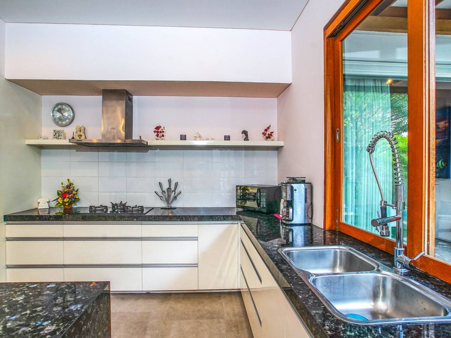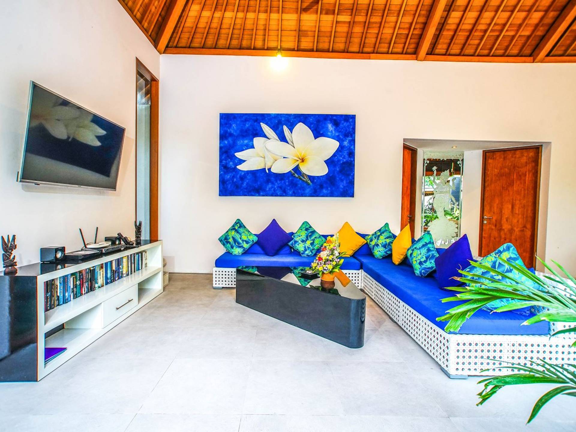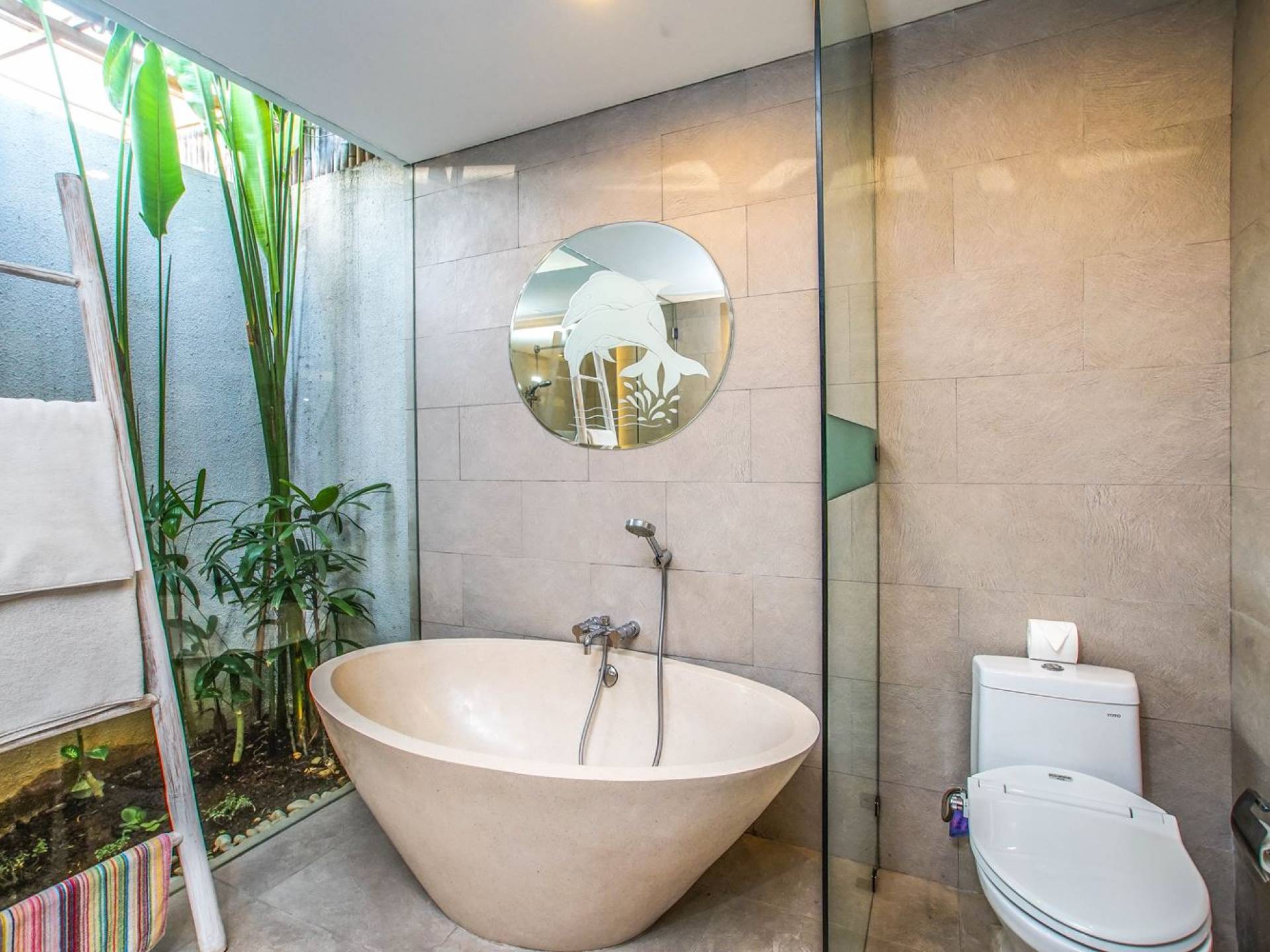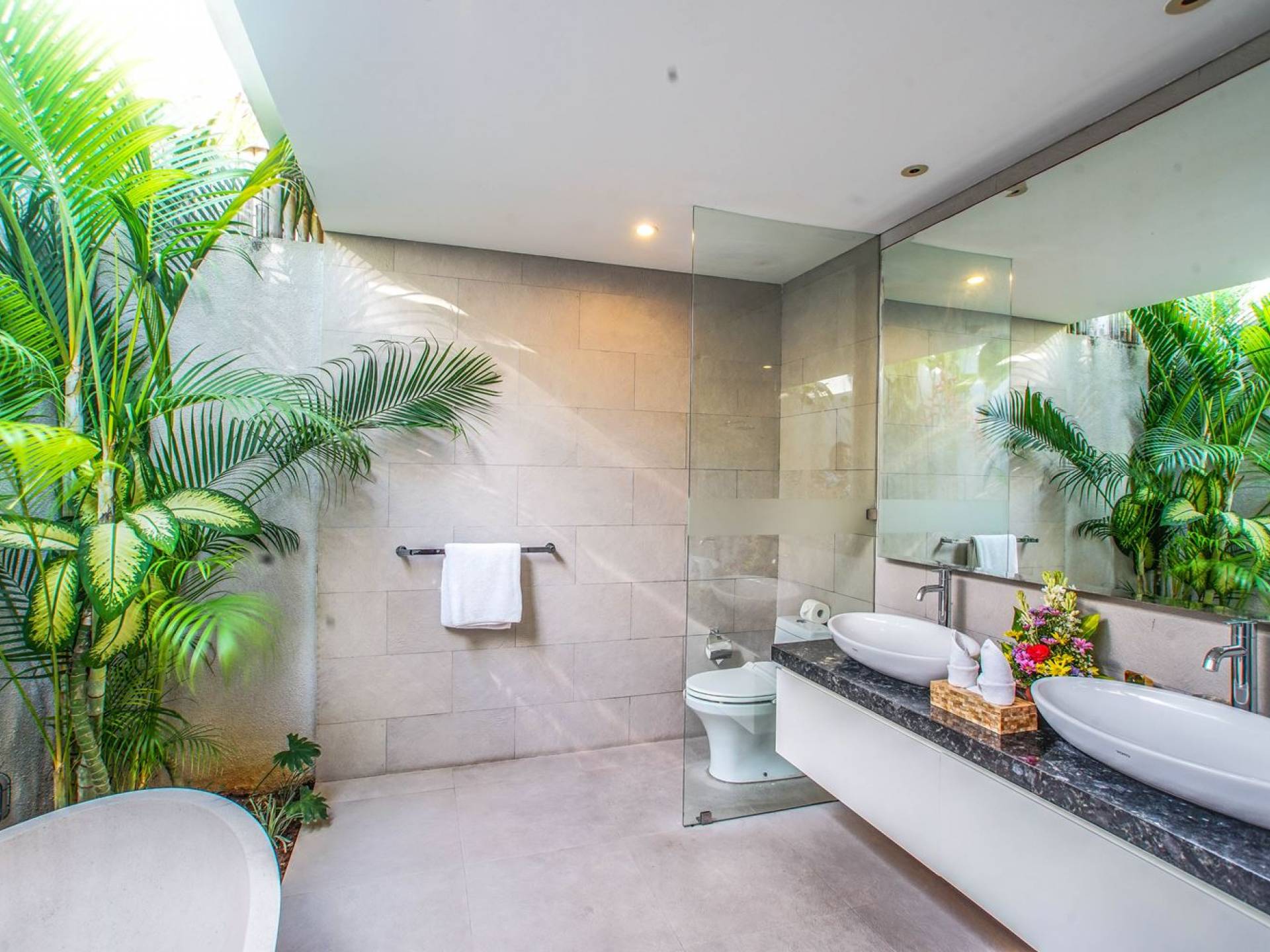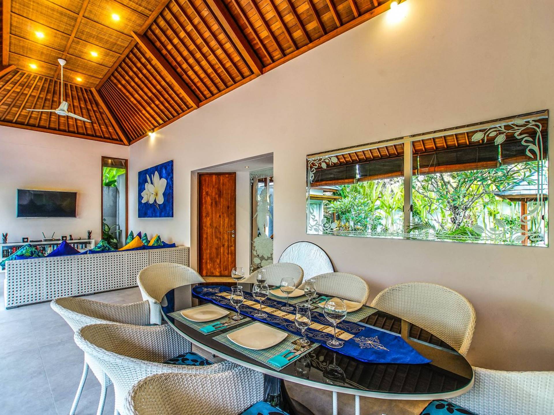 Afuera cuenta con un jardín bien cuidado que rodea una piscina privada con tumbonas junto a la piscina y un cenador/fardo. Al hospedarse en nuestra villa, disfrutará de una variedad de espacios relajantes con total privacidad. Puede relajarse junto a la piscina, solicitar servicios de spa y masajes en la villa, disfrutar de su personal personal y más servicios exclusivos de nuestro equipo profesional.