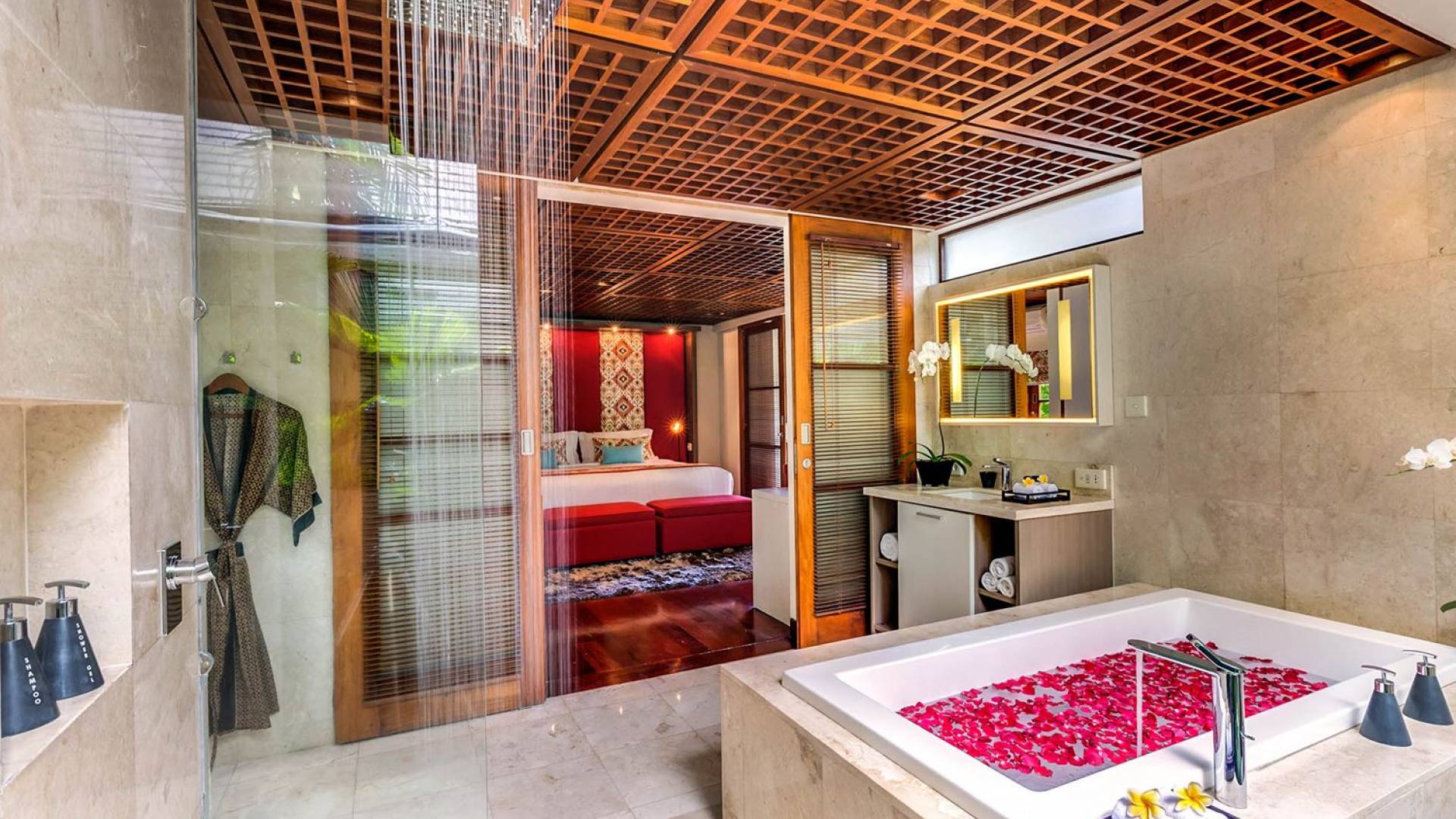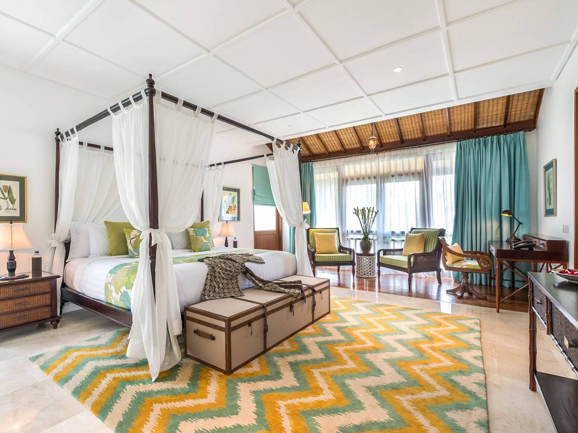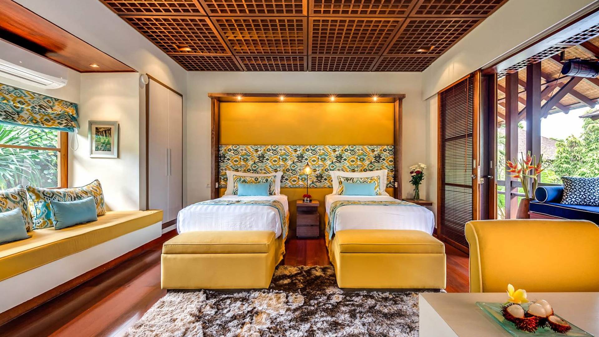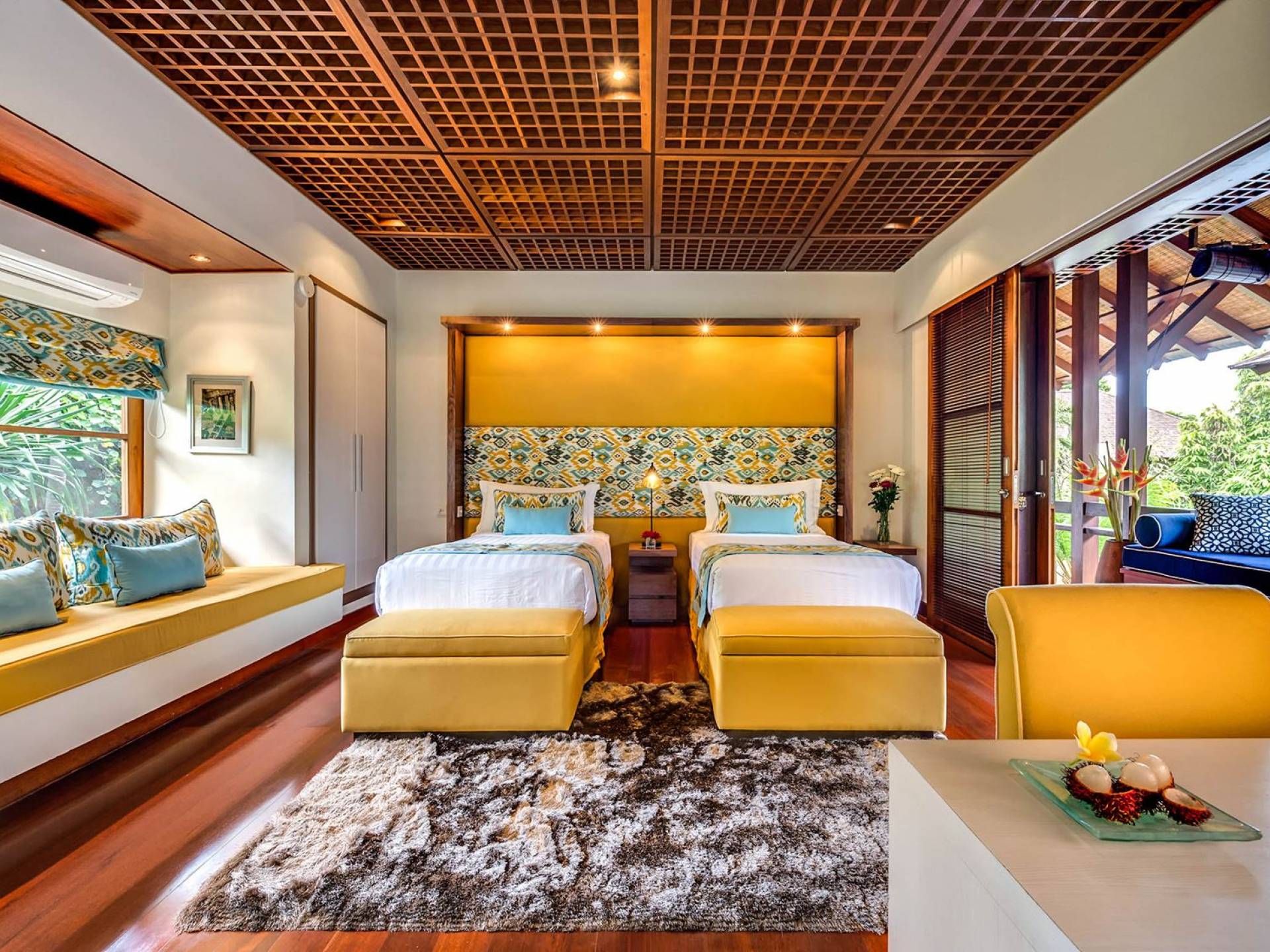 De las seis suites amplias y luminosas con baño privado, cuatro cuentan con camas tradicionales con dosel, mientras que las otras ofrecen la opción de camas tamaño king, gemelas o camas individuales. Las comodidades de Villa Windu Asri incluyen una sala multimedia, una cocina moderna totalmente equipada y un gimnasio bien equipado.