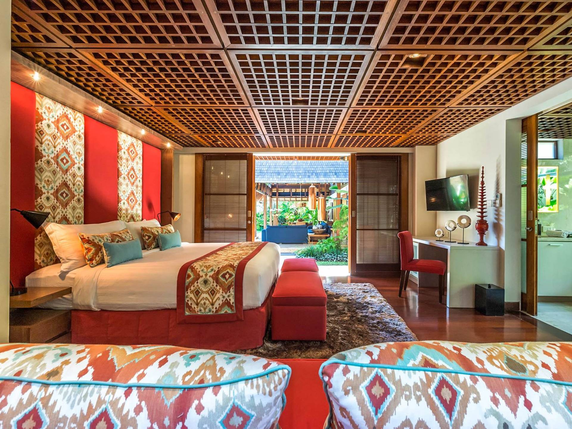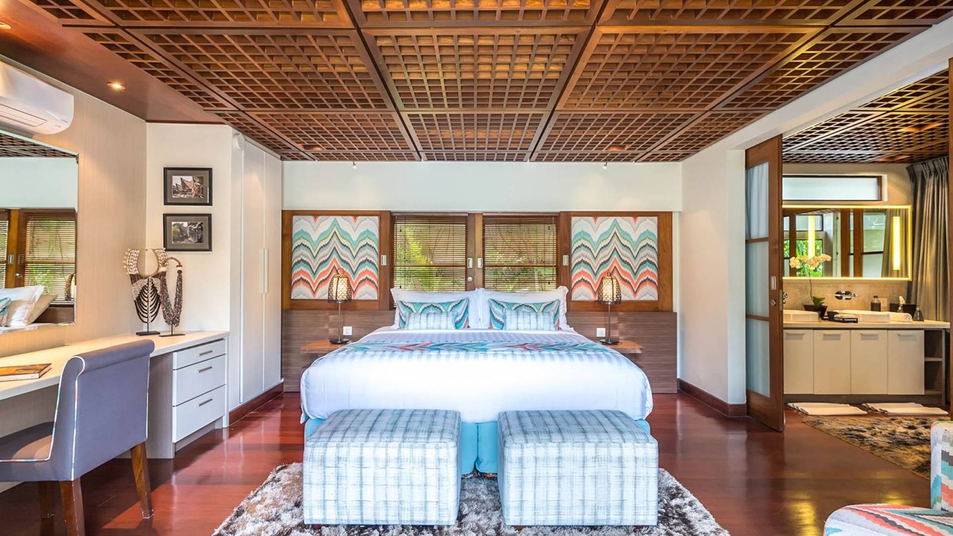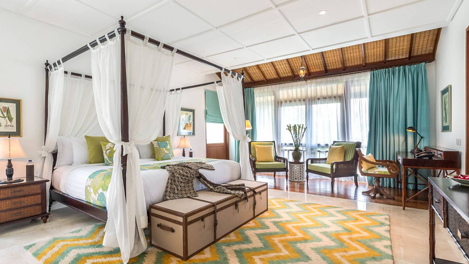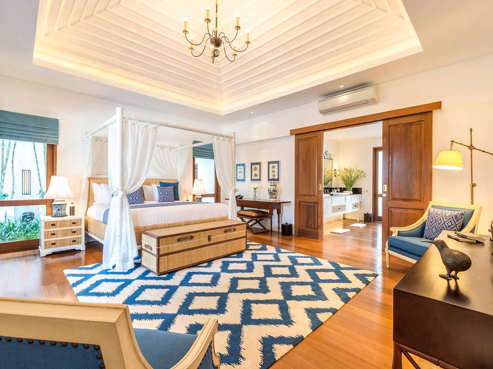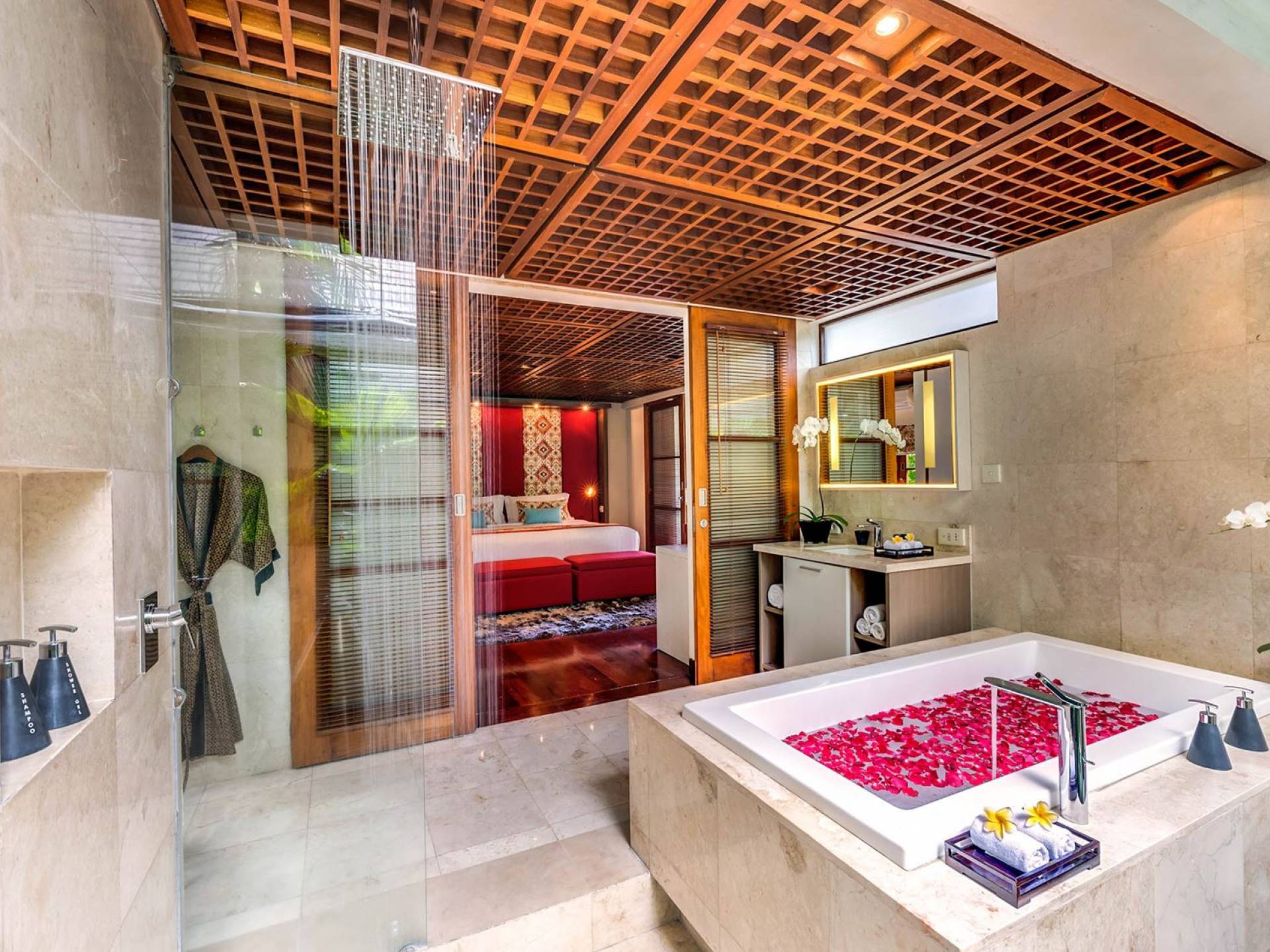 De las seis suites amplias y luminosas con baño privado, cuatro cuentan con camas tradicionales con dosel, mientras que las otras ofrecen la opción de camas tamaño king, gemelas o camas individuales. Las comodidades de Villa Windu Asri incluyen una sala multimedia, una cocina moderna totalmente equipada y un gimnasio bien equipado.