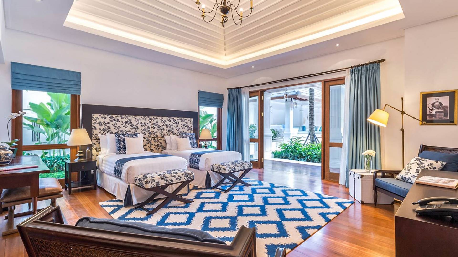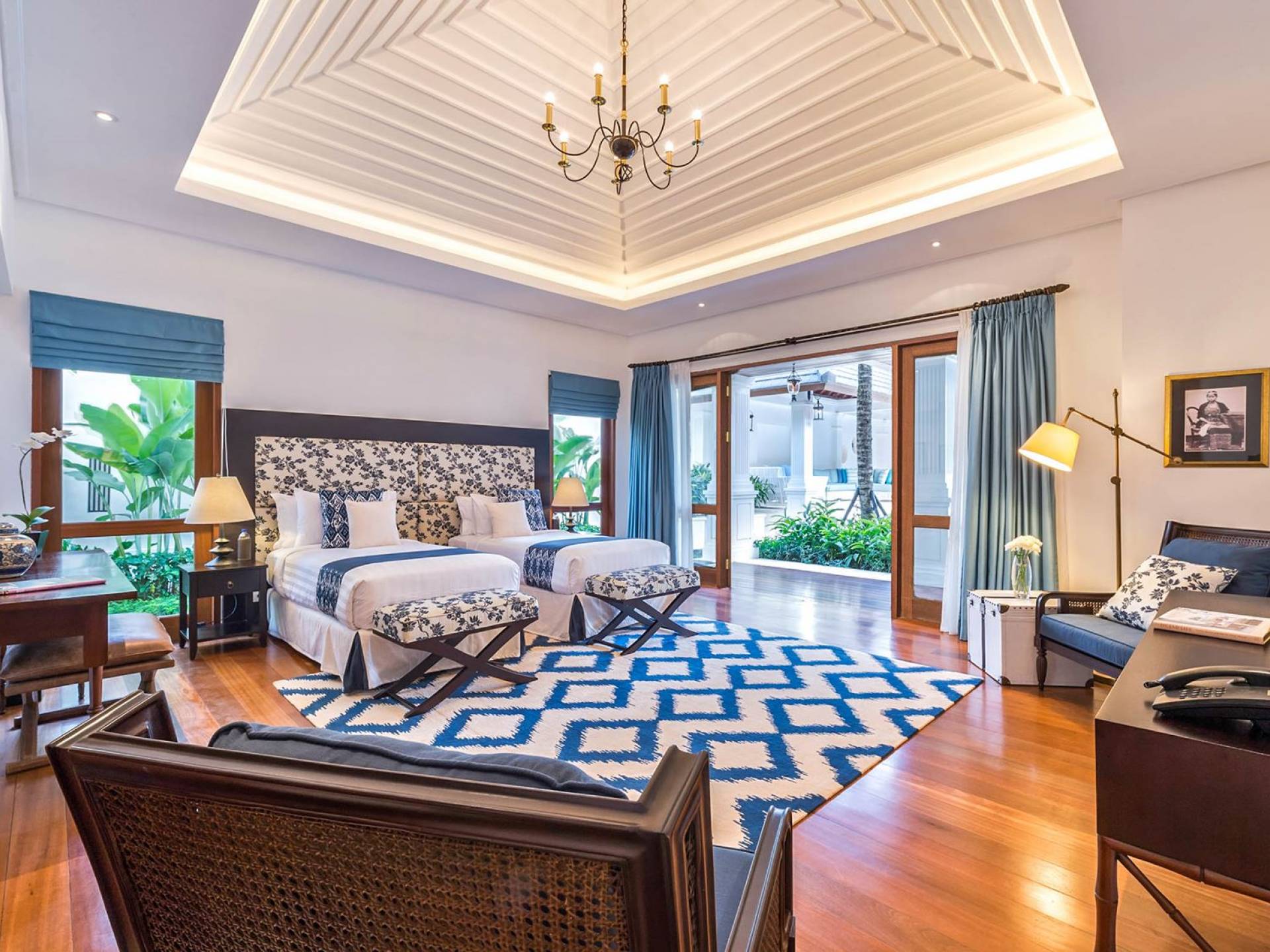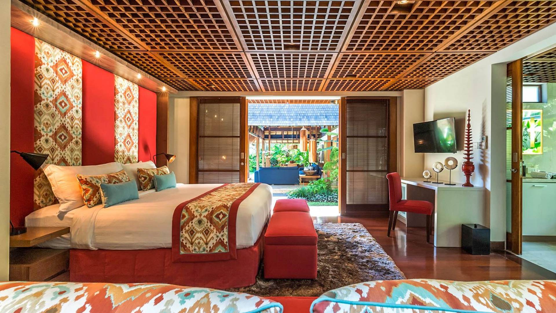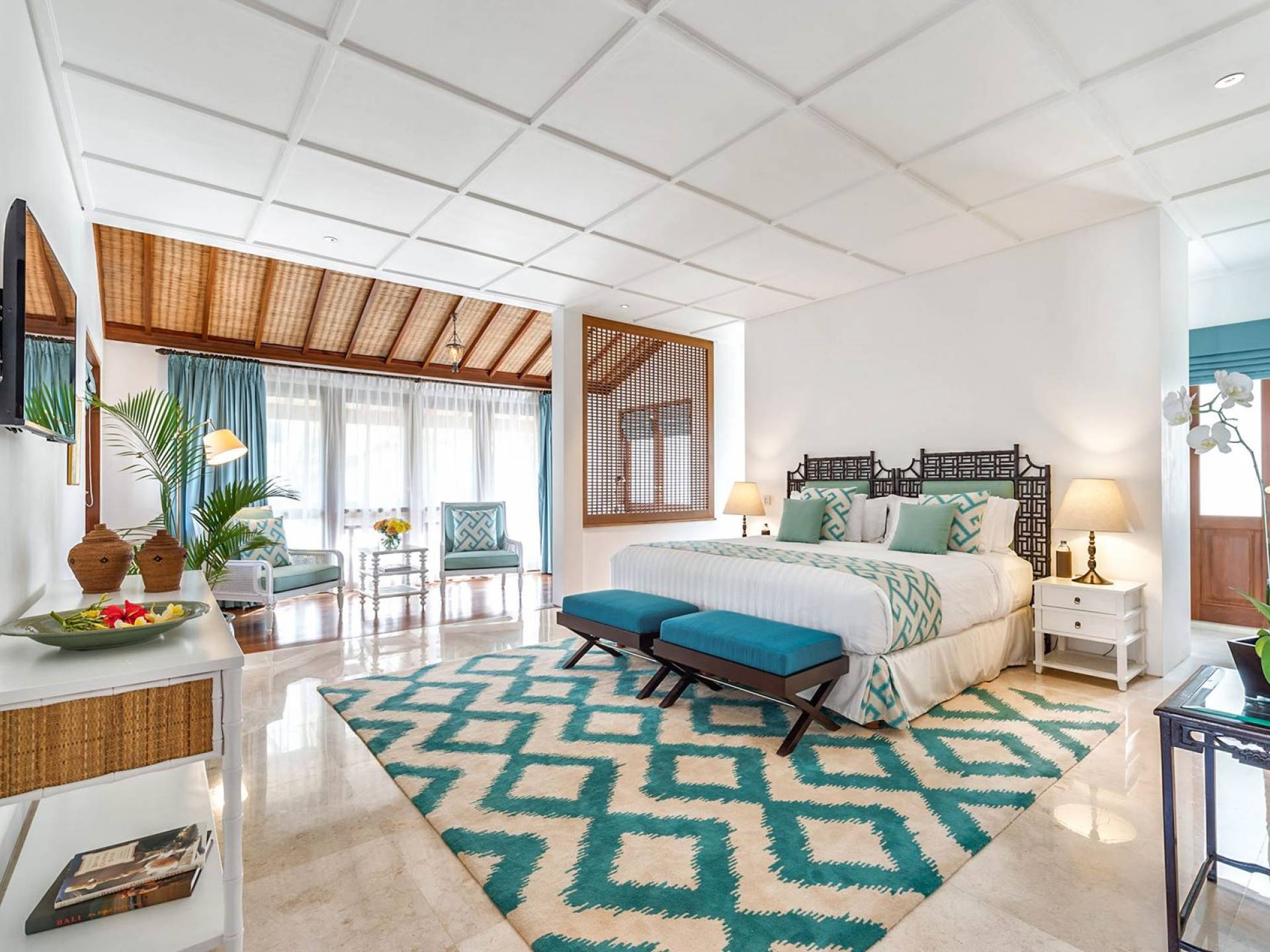 De las seis suites amplias y luminosas con baño privado, cuatro cuentan con camas tradicionales con dosel, mientras que las otras ofrecen la opción de camas tamaño king, gemelas o camas individuales. Las comodidades de Villa Windu Asri incluyen una sala multimedia, una cocina moderna totalmente equipada y un gimnasio bien equipado.