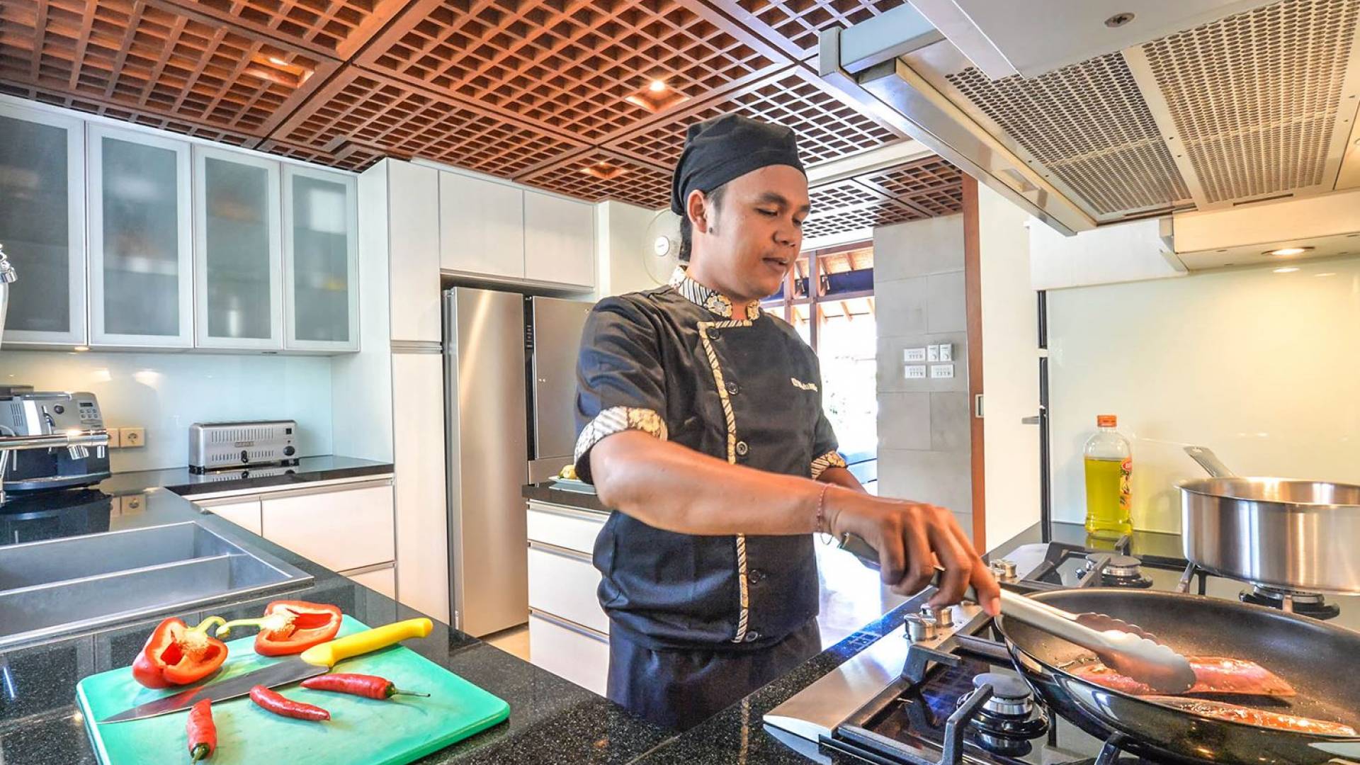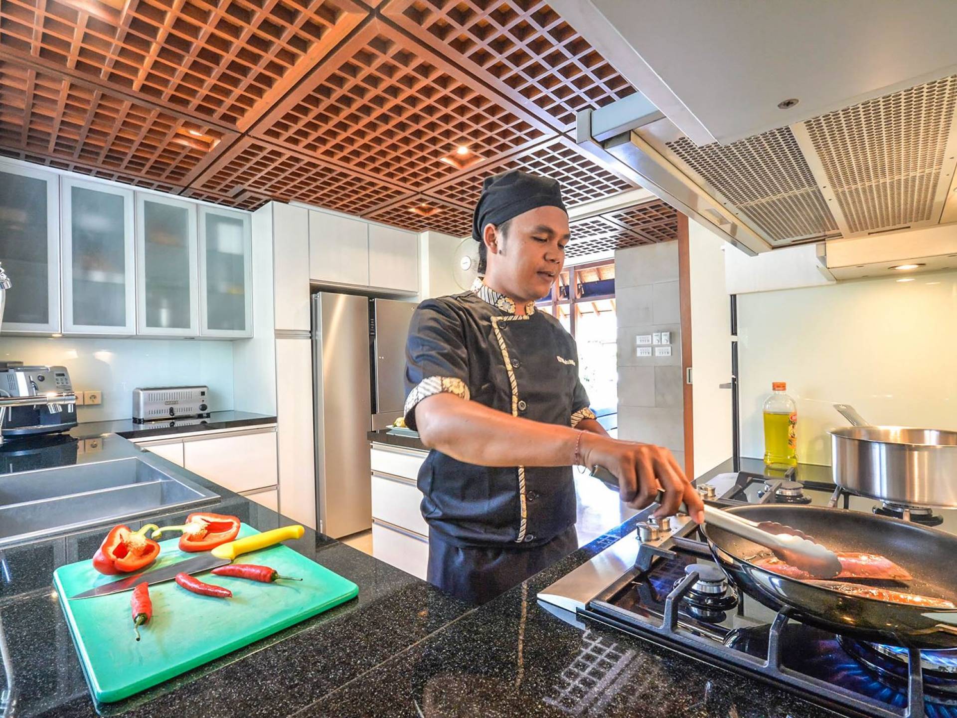 Villa Windu Asri Seminyak tiene un gerente, mayordomos y un chef profesional. Relájese en los acogedores salones y prepárese para una explosión de pura belleza y tranquilidad que deleitará sus sentidos.