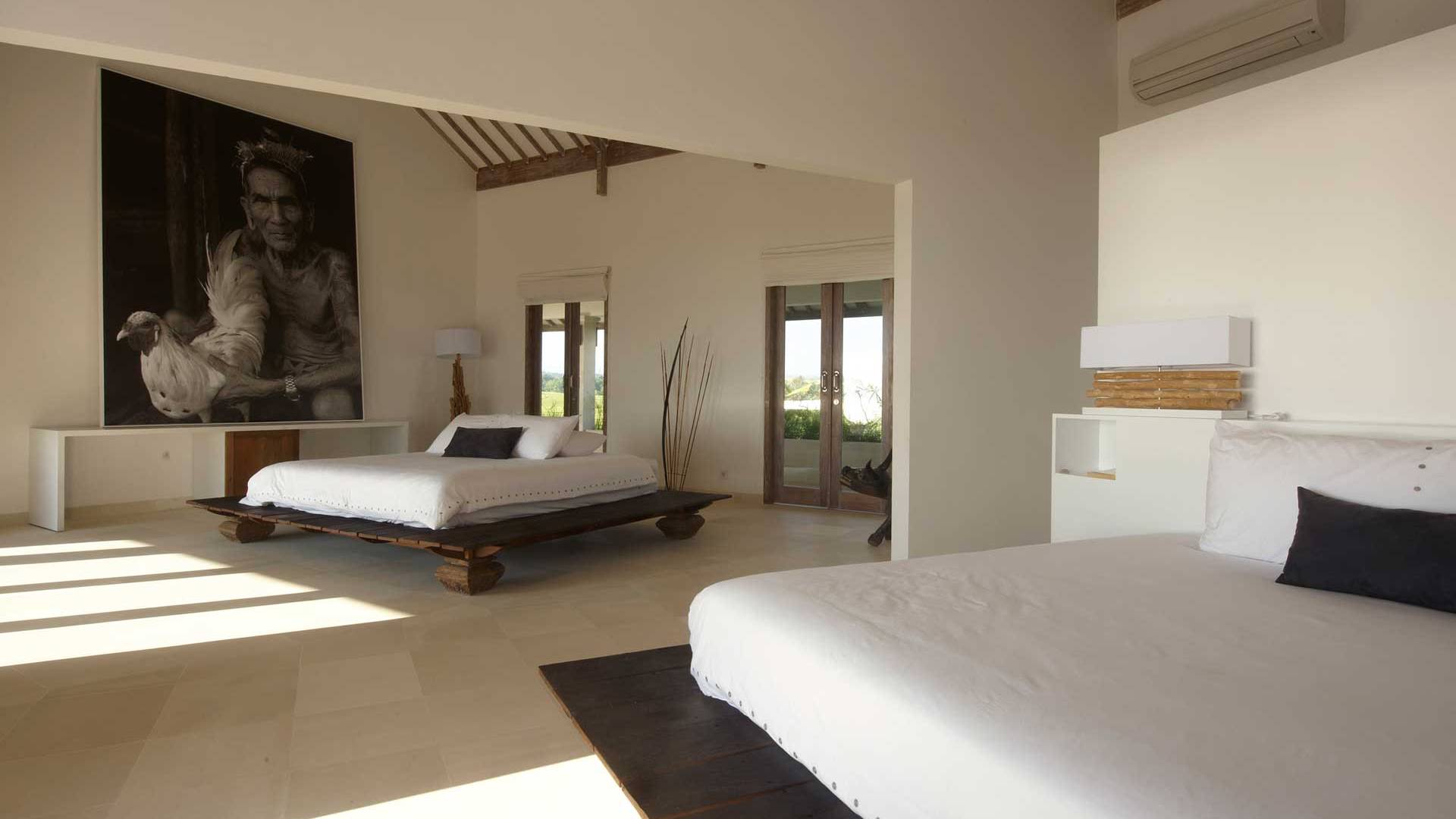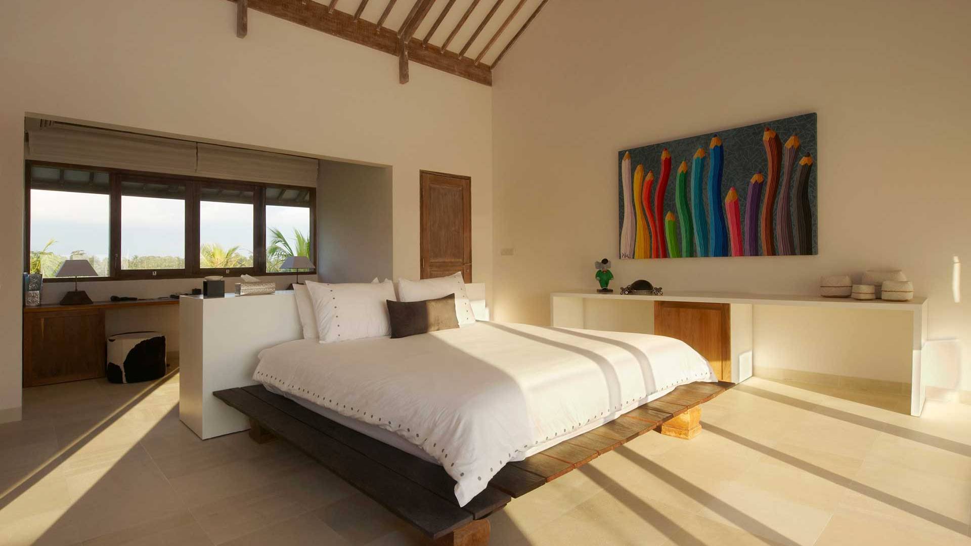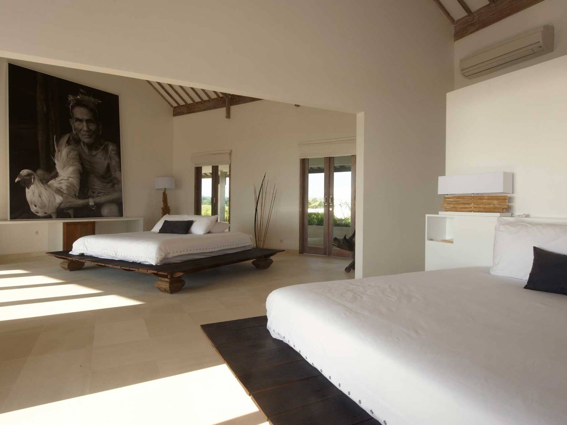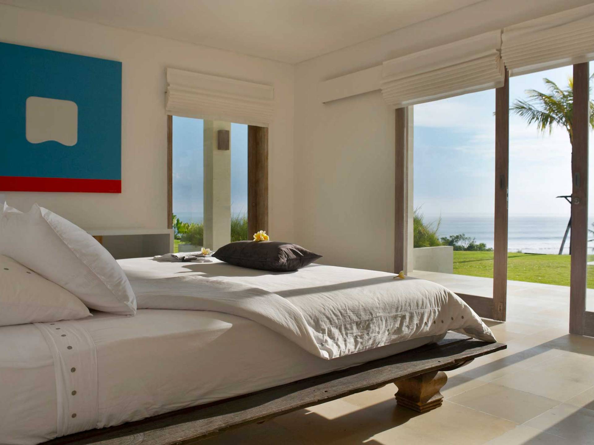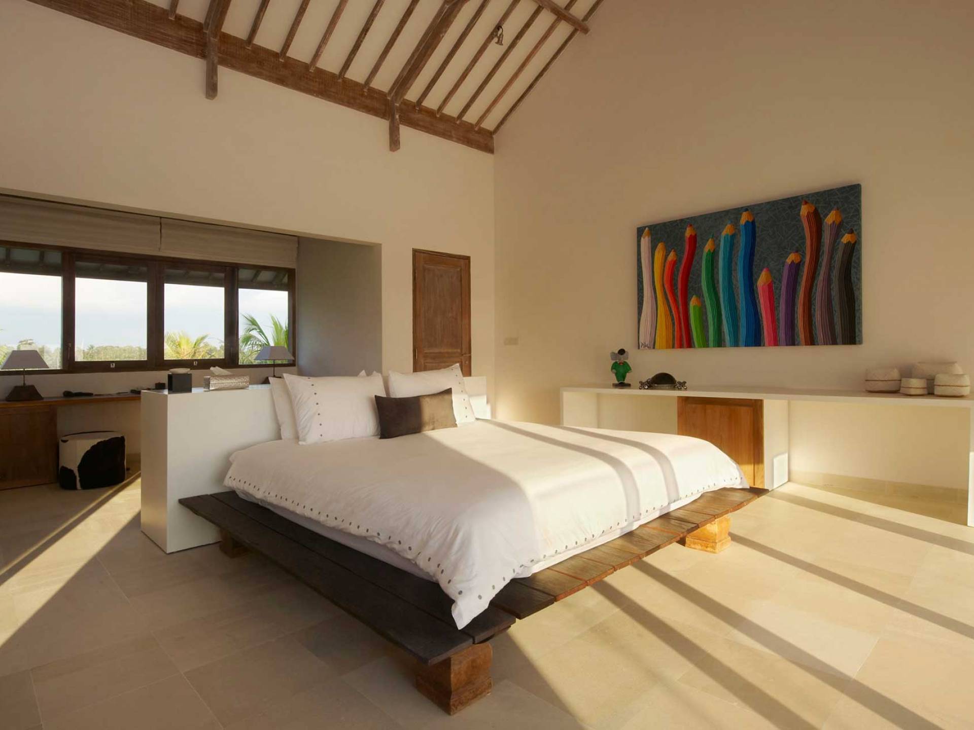 Hay seis habitaciones con aire acondicionado en Villa Babar, incluido el suntuoso dormitorio principal. Cada habitación está equipada con una caja de seguridad y una base para iPod, y cada una tiene un baño privado. Todas las habitaciones están bendecidas con magníficas vistas de la costa, el océano y los jardines, o las montañas y los campos de arroz o, en el caso de la habitación principal, una vista panorámica en todas las direcciones. Si bien todas las habitaciones cuentan con paredes blancas y muebles sencillos, cada una presenta un tema inspirado en la cultura indonesia. Donde sea que elijas dormir, la melodía de las olas te arrullará hasta quedarte dormido.