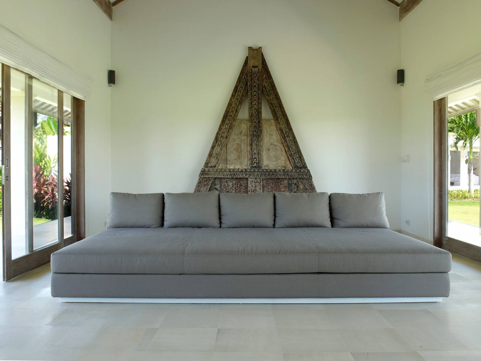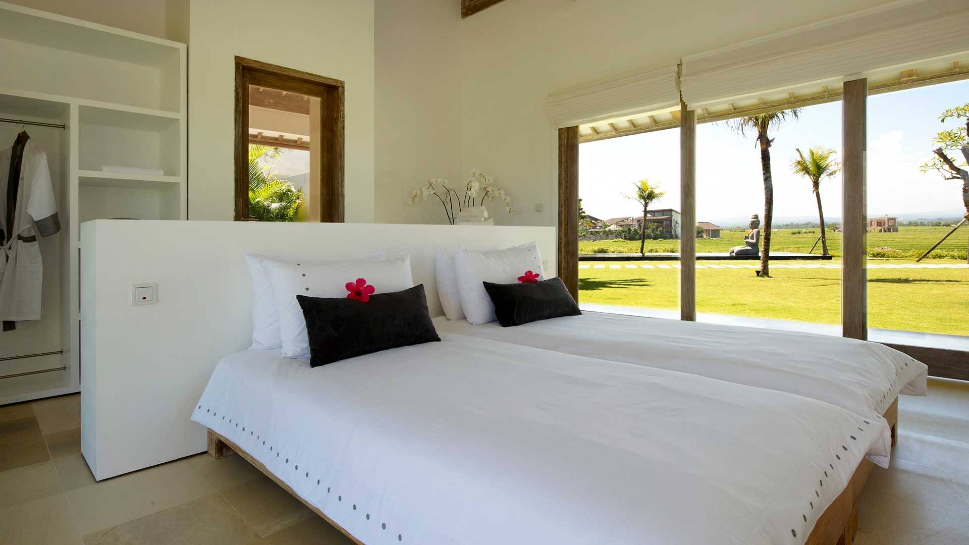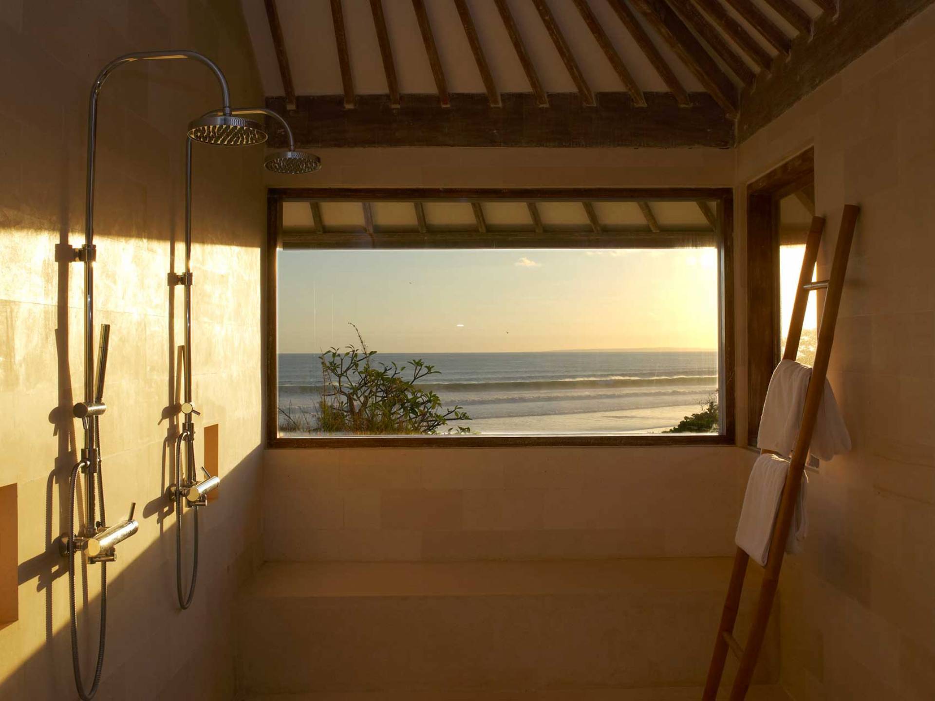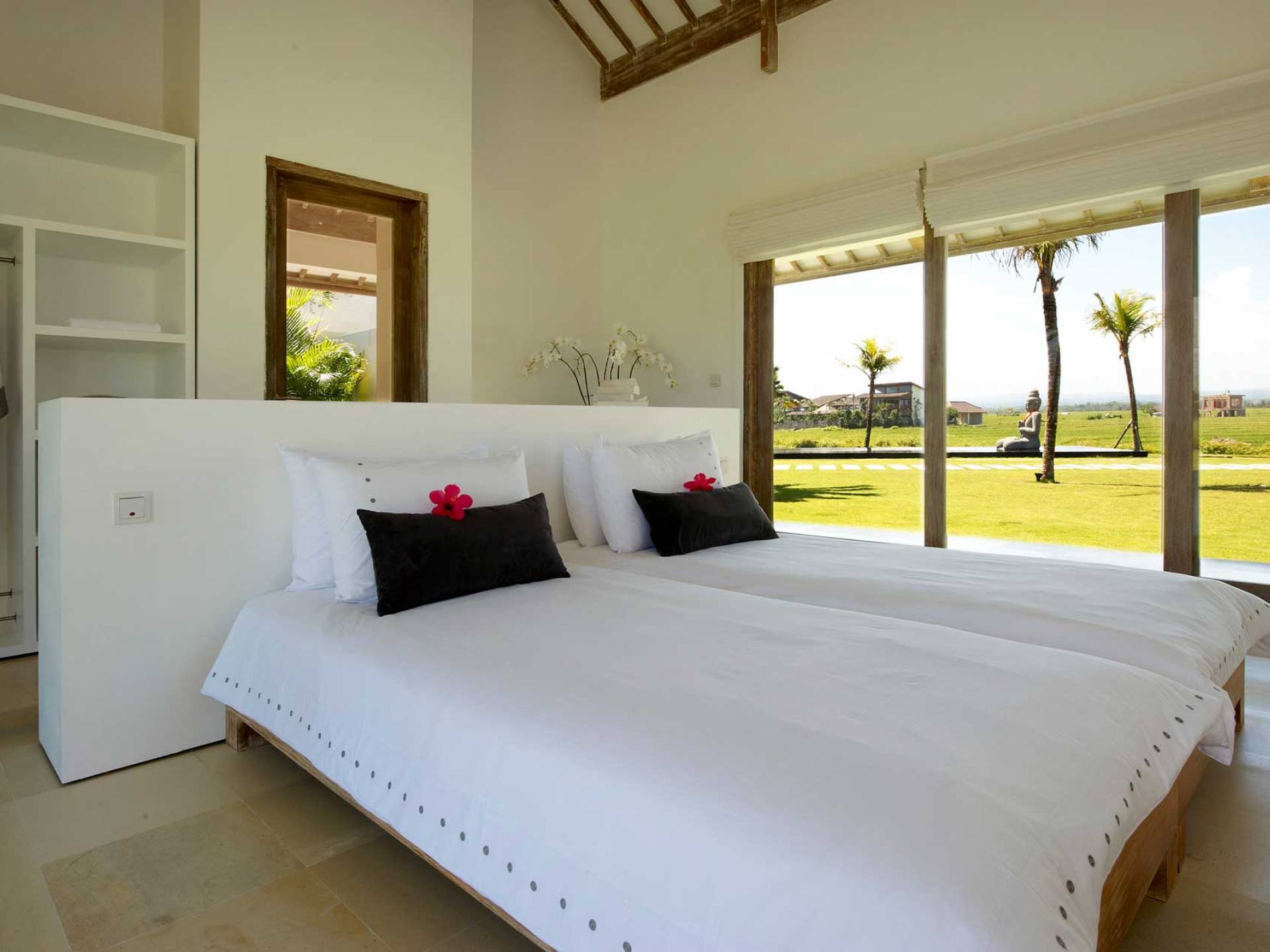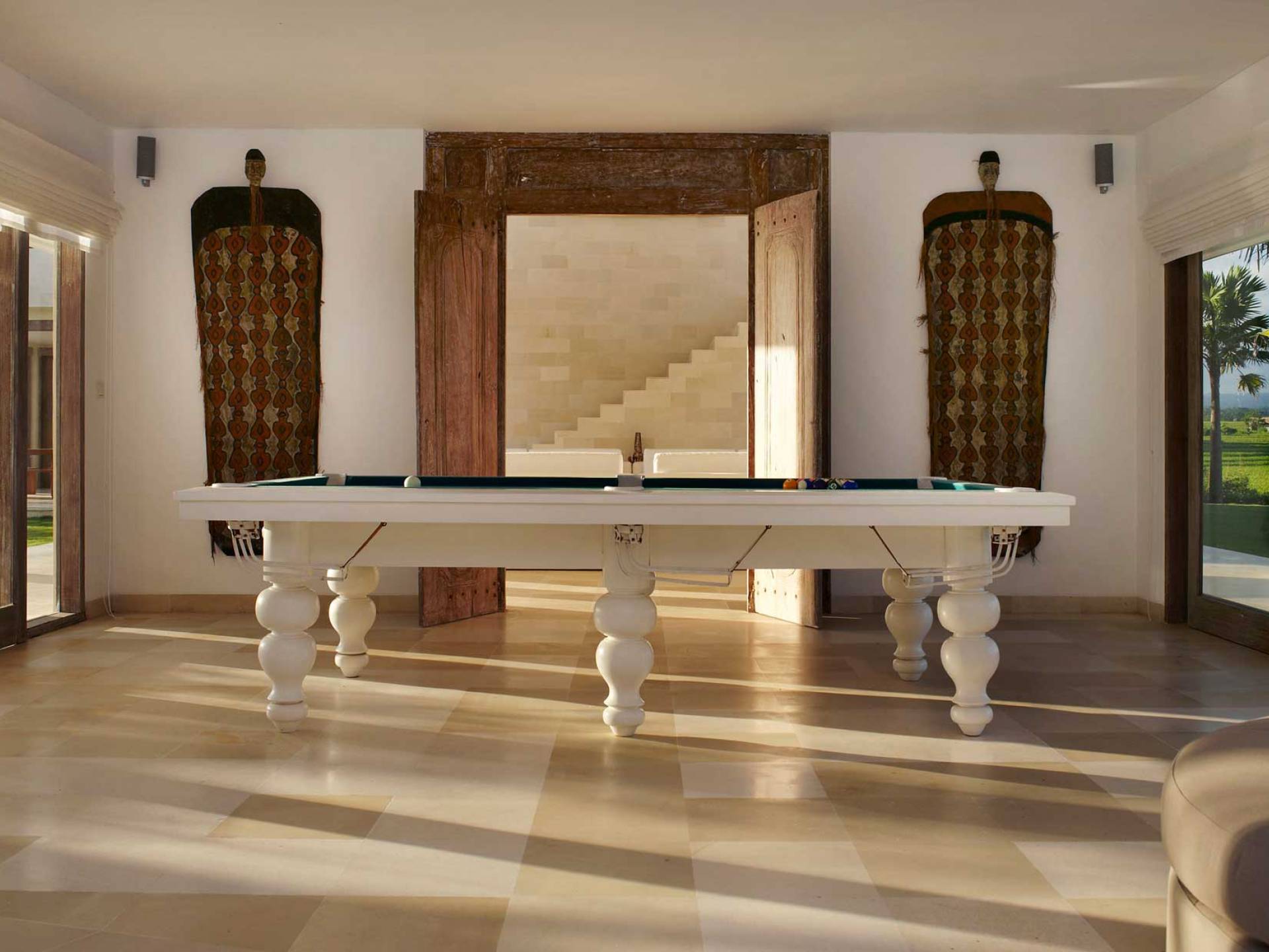 Hay seis habitaciones con aire acondicionado en Villa Babar, incluido el suntuoso dormitorio principal. Cada habitación está equipada con una caja de seguridad y una base para iPod, y cada una tiene un baño privado. Todas las habitaciones están bendecidas con magníficas vistas de la costa, el océano y los jardines, o las montañas y los campos de arroz o, en el caso de la habitación principal, una vista panorámica en todas las direcciones. Si bien todas las habitaciones cuentan con paredes blancas y muebles sencillos, cada una presenta un tema inspirado en la cultura indonesia. Donde sea que elijas dormir, la melodía de las olas te arrullará hasta quedarte dormido.