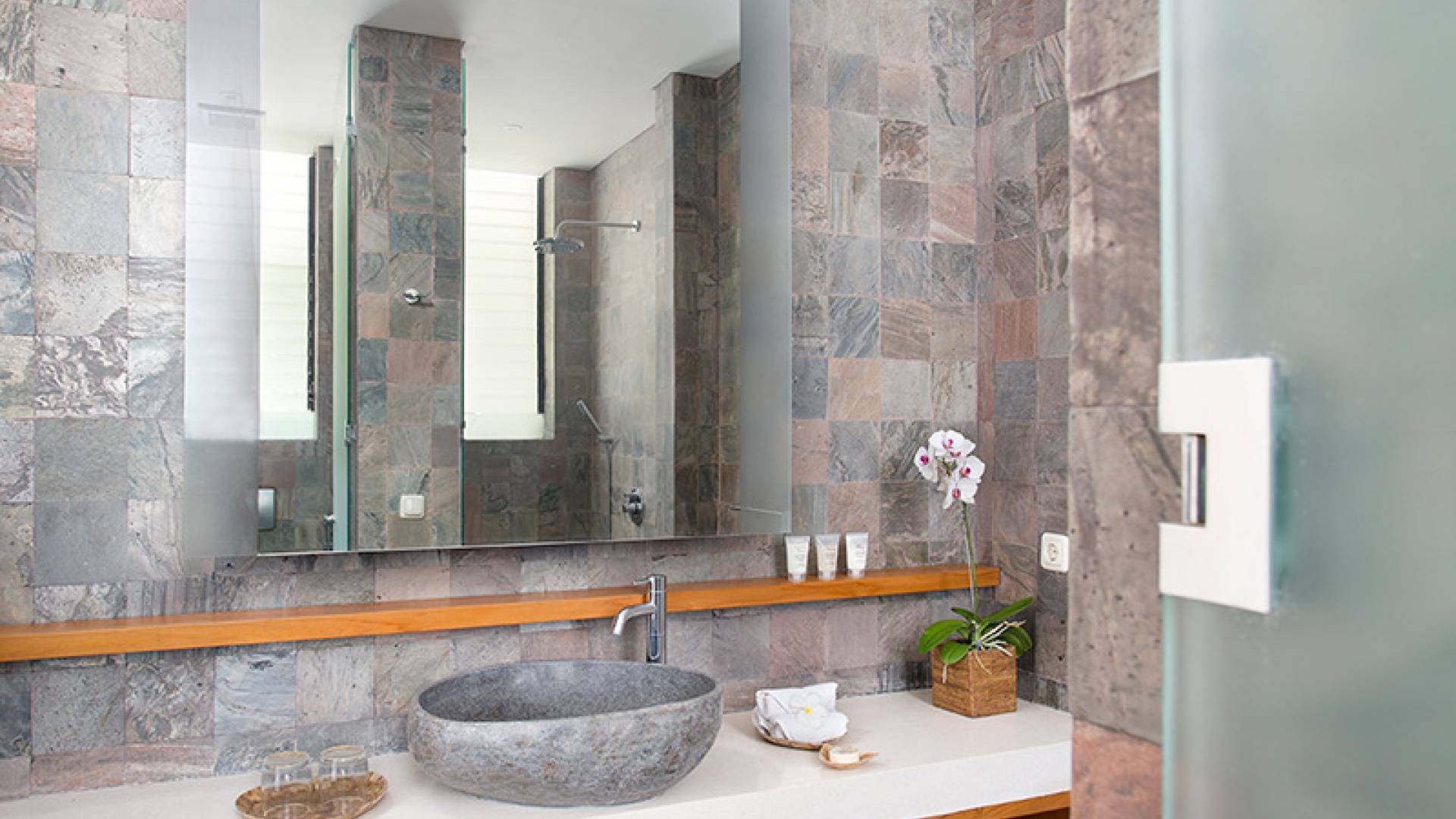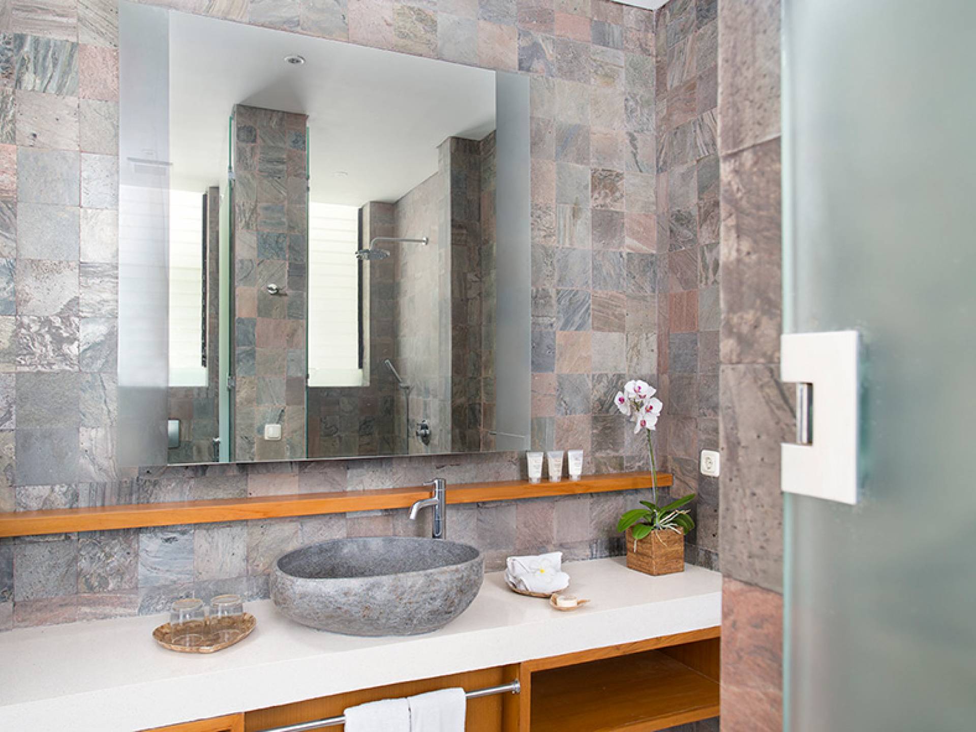 Magníficas áreas de estar y comedor interiores y exteriores, baños enormes pero glamorosos, un bar al aire libre y una hermosa piscina de 15 metros harán que su estadía sea inolvidable. El diseño arquitectónico se integra con las características naturales del agua, mientras que las elegantes estructuras, los techos y la terraza se combinan de forma natural con los baños de pizarra metálica y las bañeras de piedra de río que reflejan la belleza del entorno.