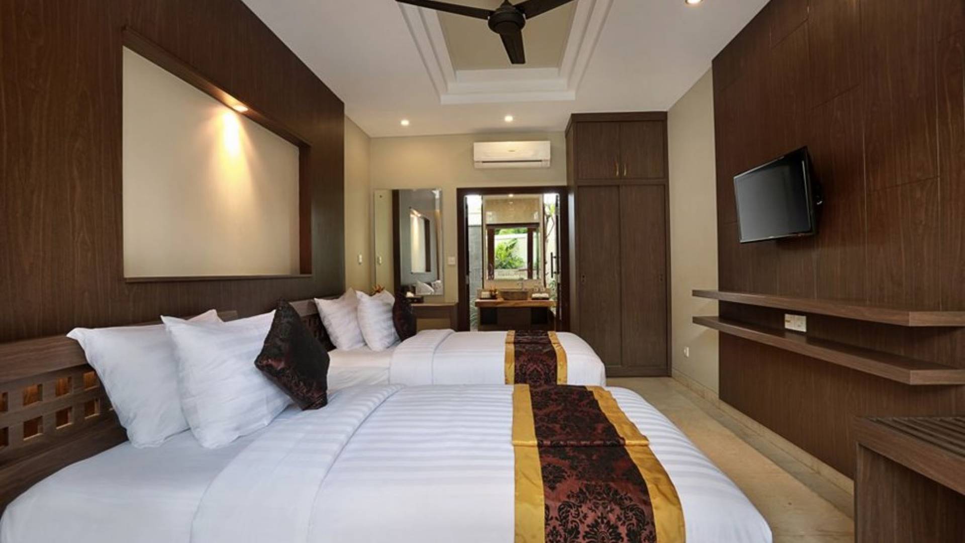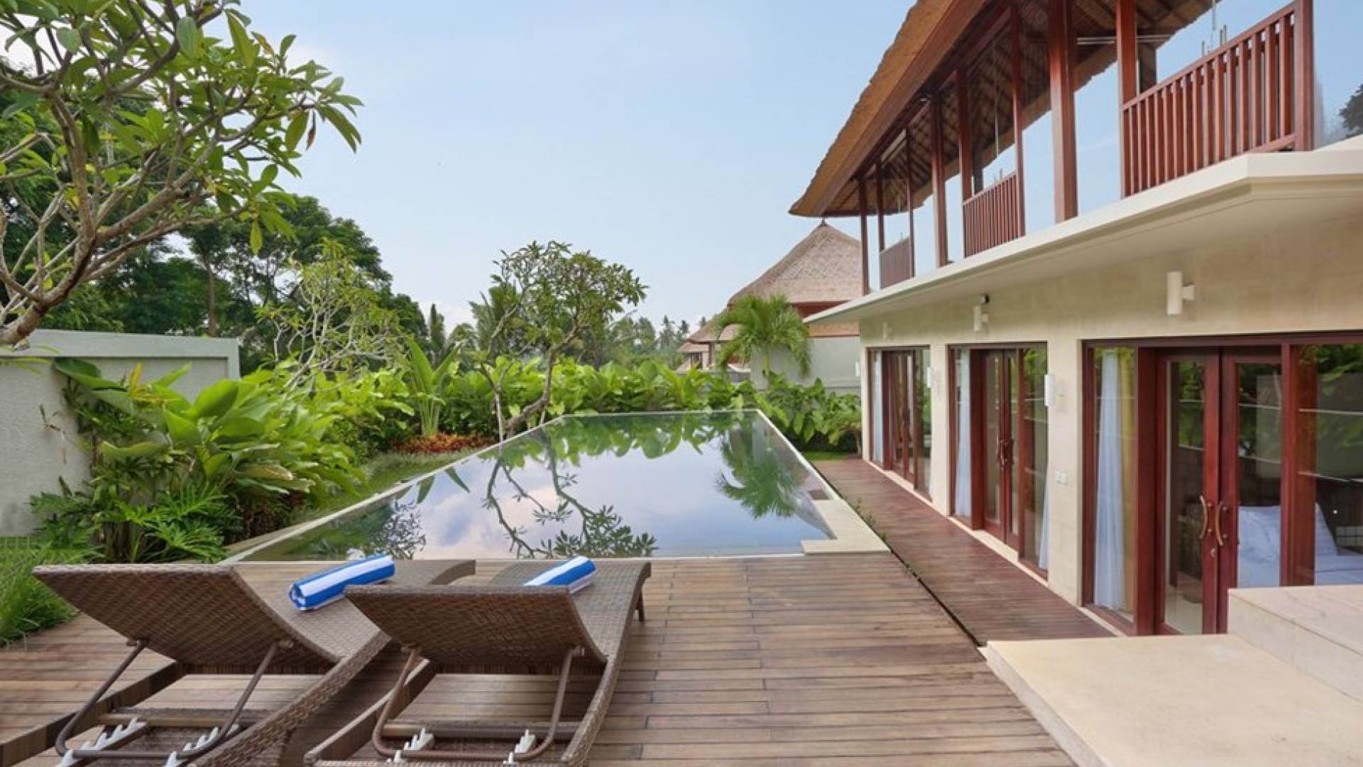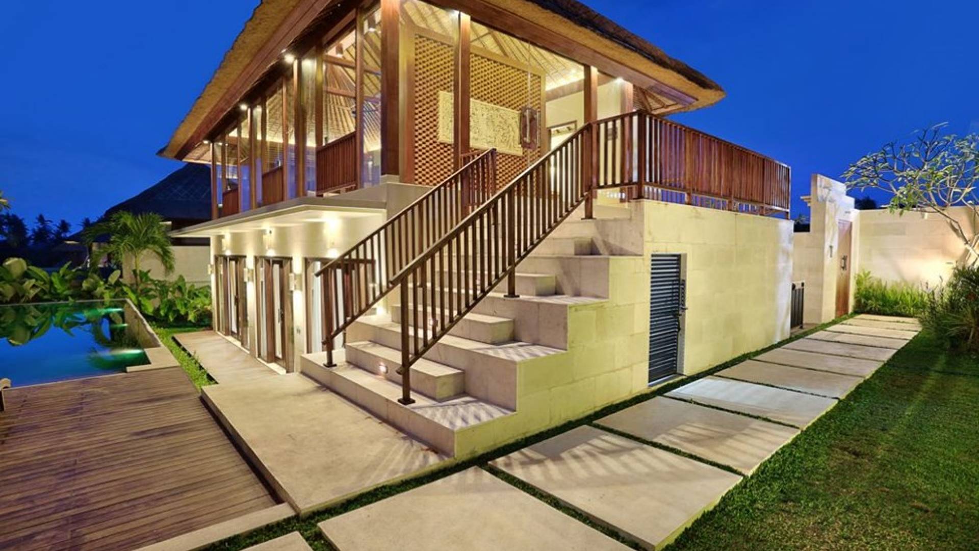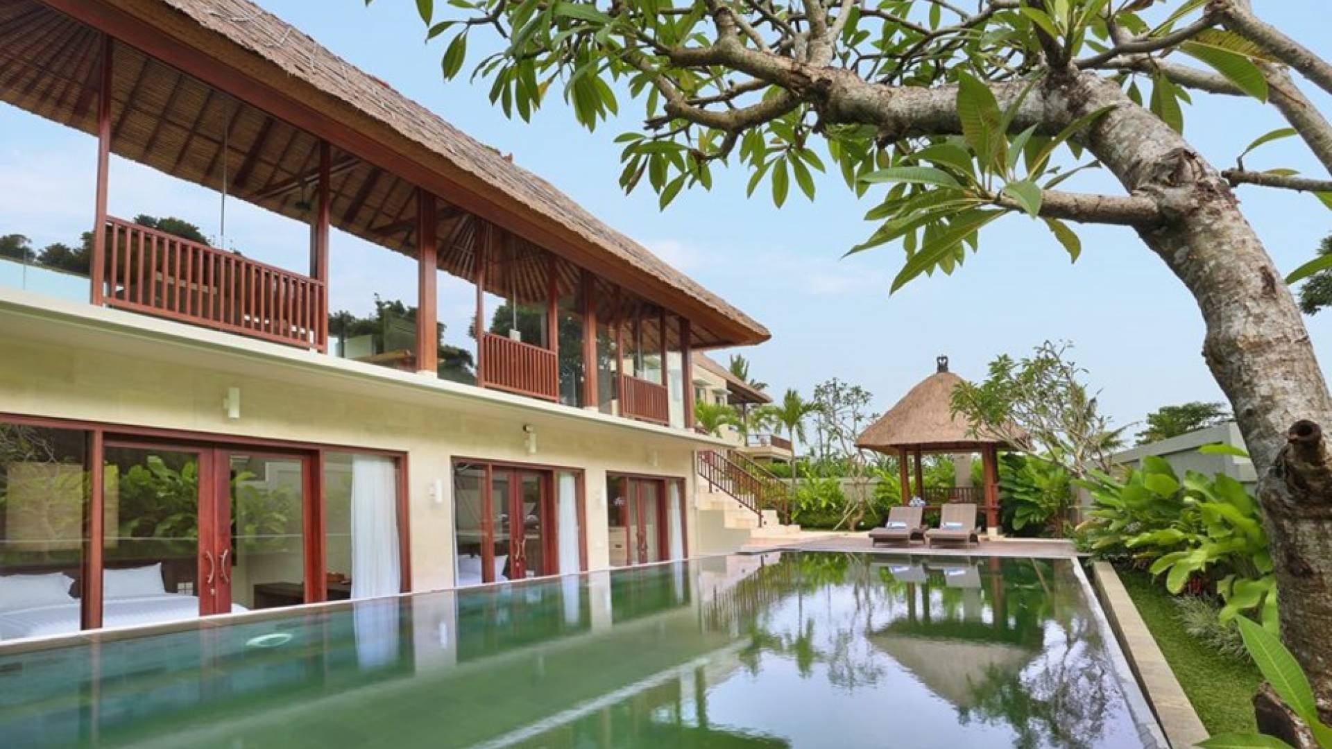 Este íntimo resort boutique ofrece una colección exclusiva de seis unidades de lujo dentro de un complejo seguro, que consta de lujosas villas con piscina de 2 y 3 dormitorios con toques artísticos balineses. Cada villa se presenta cuidadosamente a la perfección, con un baño en suite con acabados de mármol y comodidades de lujo. Las ventanas de vidrio del piso al techo rodean la sala de estar y el comedor, lo que le permite disfrutar de la vista ininterrumpida del hermoso paisaje alrededor de la villa.