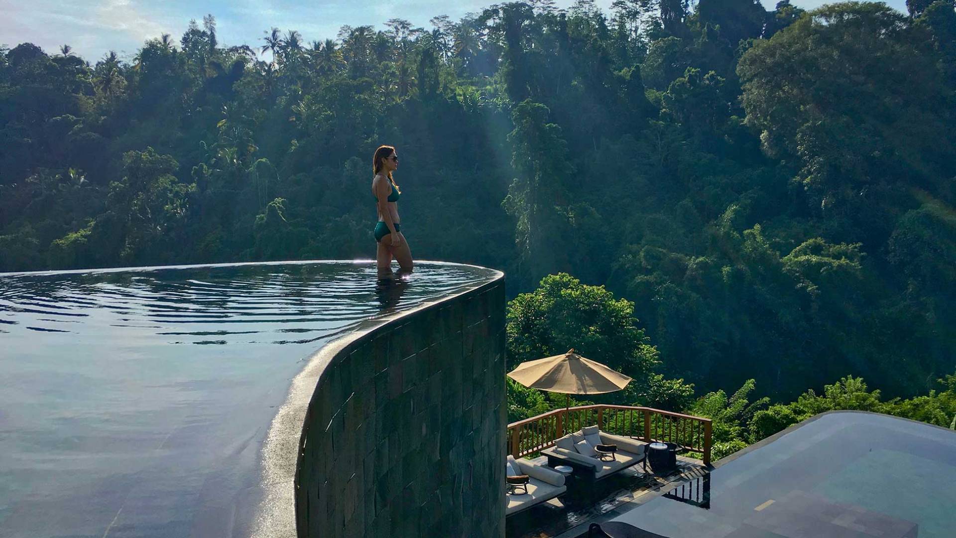 En el epicentro geográfico y el núcleo espiritual, se encuentra la piscina más notable del mundo. Es sin duda una de las piscinas más fotografiadas y tiene la distinción única de ser nombrada “La mejor piscina del mundo” por Condé Nast Traveler y número uno en la lista de Trip Advisor. Diseñado por un arquitecto especialista, la llamativa formación está suspendida sobre la densa selva tropical, dando a los nadadores la sensación única de flotar sobre las copas de los árboles.
