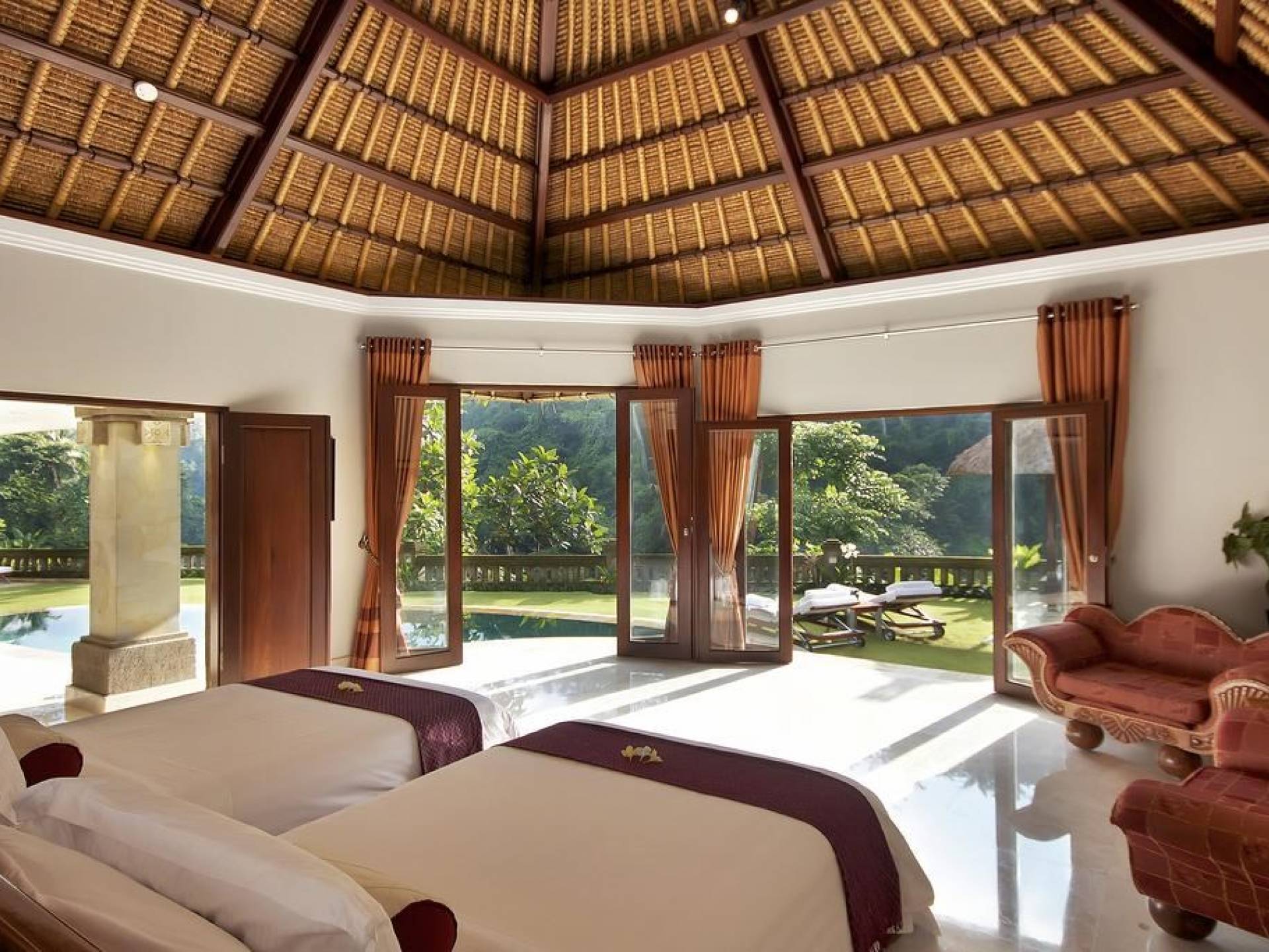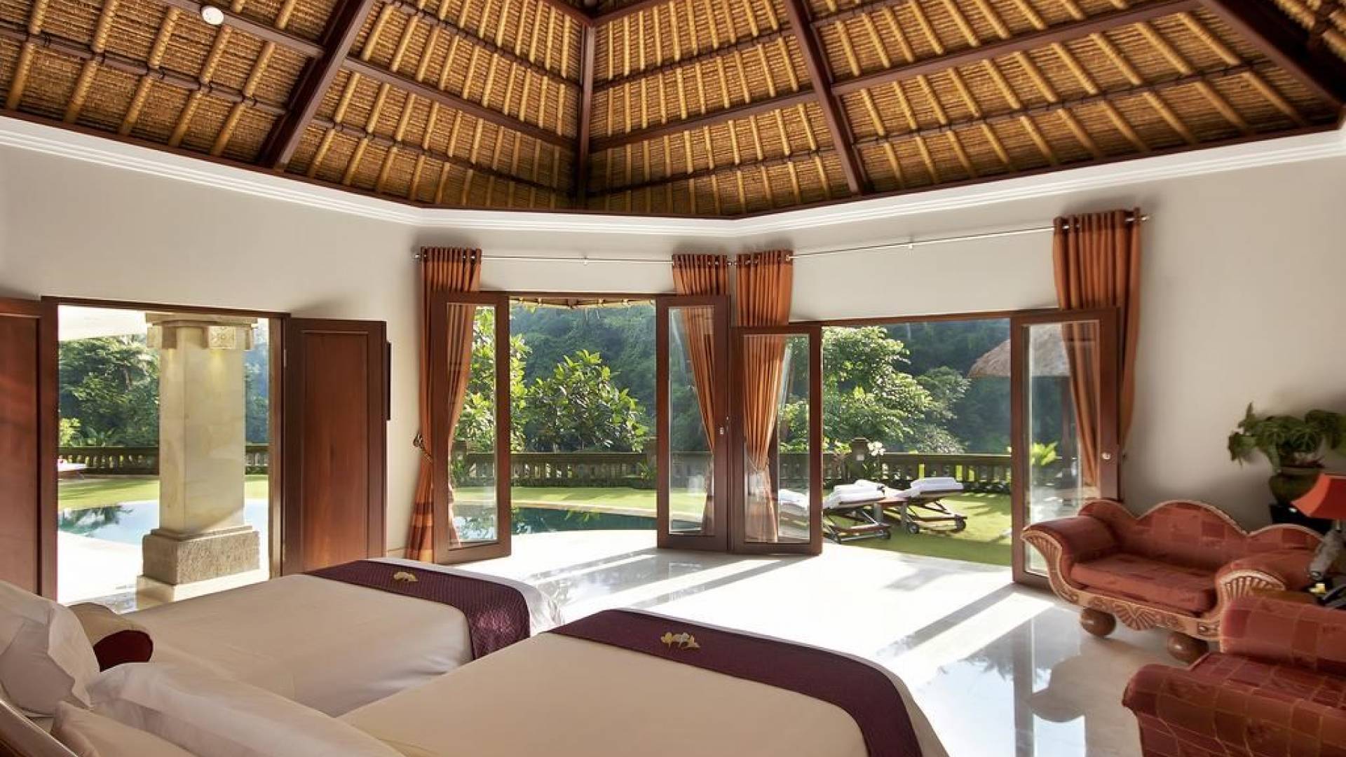 La Villa Virrey es la villa presidencial en nombre y opulencia. Es la mejor villa de Bali para parejas de luna de miel. Esta amplia villa de 2 dormitorios tiene dos dormitorios principales con lujosos baños en suite de mármol, separados por una sala de estar y un comedor comunes semi al aire libre adornados por un techo de paja de dos niveles. Ambos dormitorios dan a la piscina climatizada de 15 metros y al jardín de césped; con el espectacular valle frondoso como telón de fondo.