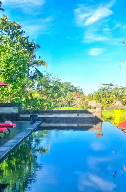 Ubicada en medio de los arrozales, la Villa Pasión es un sereno encanto. La villa se encuentra a 1h30 del aeropuerto, a 1h del mar ya solo 15 minutos del centro de UBUD, el corazón artístico de la isla y famoso por sus galerías de arte, museos, restaurantes y tiendas de moda. La villa puede alojar hasta 2 personas en busca de expatriación y tranquilidad, en un entorno lujoso y refinado. La villa está ubicada en un hermoso pueblo tradicional y rodeada de arrozales en terrazas, cocoteros y una exuberante vegetación. Su posición es central para todas las excursiones y visitas. Todo está planeado para vivir un momento de pura felicidad…. Villa Passion cuenta con una amplia terraza, combinando sala, comedor, bar, cocina americana, todo ello rodeado por una enorme piscina infinity realizada con piedra natural, en armonía con el entorno.