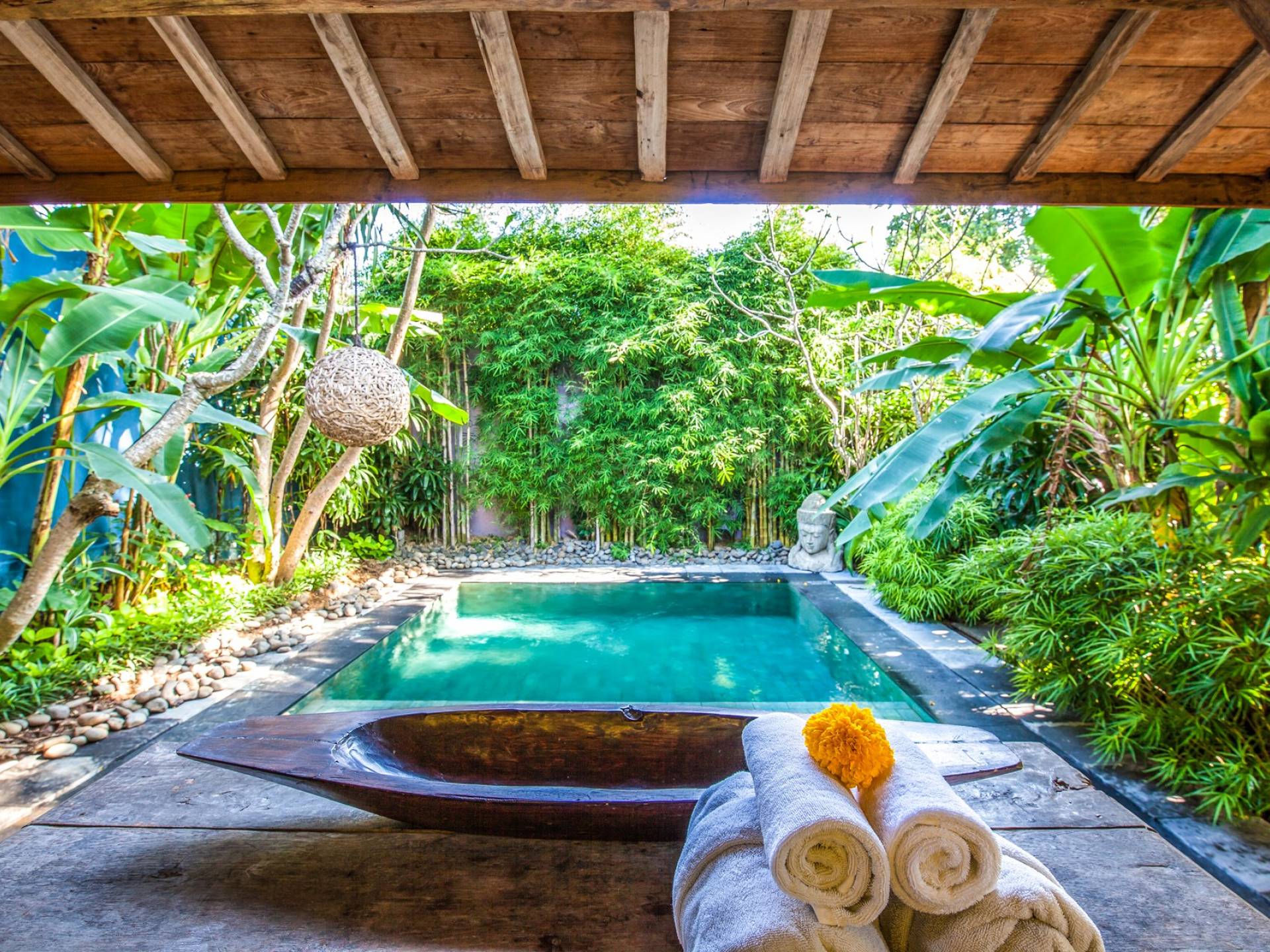 Las tres Villas Étnicas de Blue Karma en Umalas descansan poéticamente al final de un estrecho camino rural; ubicado impecablemente en medio de la vibrante región de Seminyak, Canggu y Oberoi.