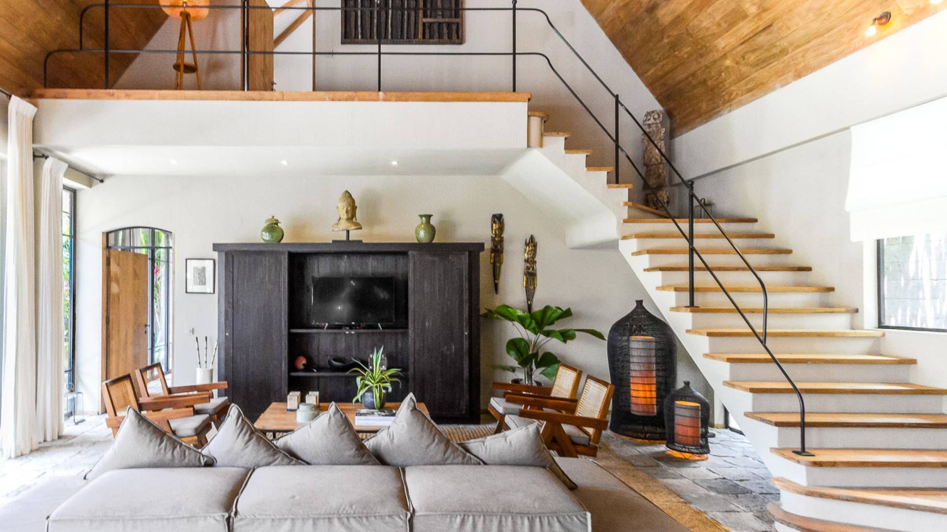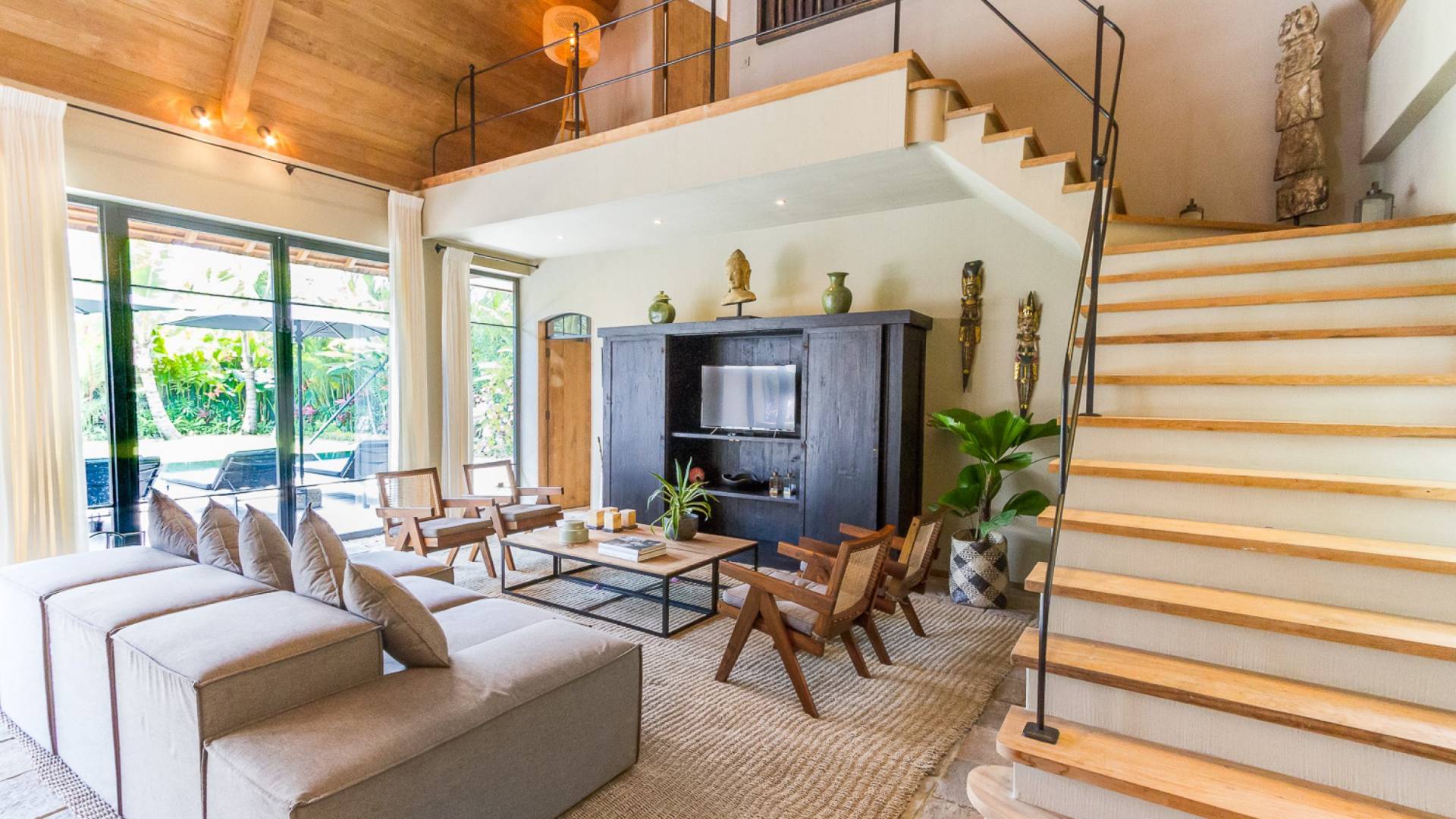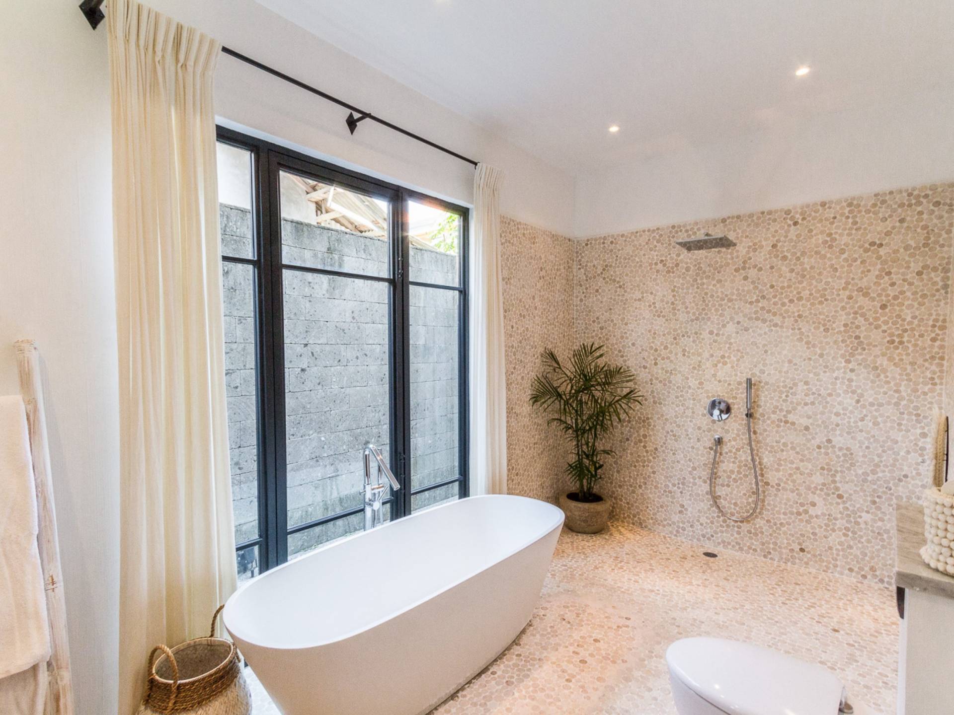 Esta maravillosa villa cuenta con 5 baños en suite y baños para invitados. Está completamente amueblado y equipado con muebles y decoración de la mejor calidad, lo que proporciona una gran cantidad de lujo, comodidad y estilo. Villa Nehal Bali ofrece generosamente una sala de lavandería, 2 niveles, un hermoso jardín verde exuberante, aire acondicionado, amplia sala de estar, comedor, cocina, piscina, almacenamiento, internet en toda la casa y una gran área de estacionamiento.
