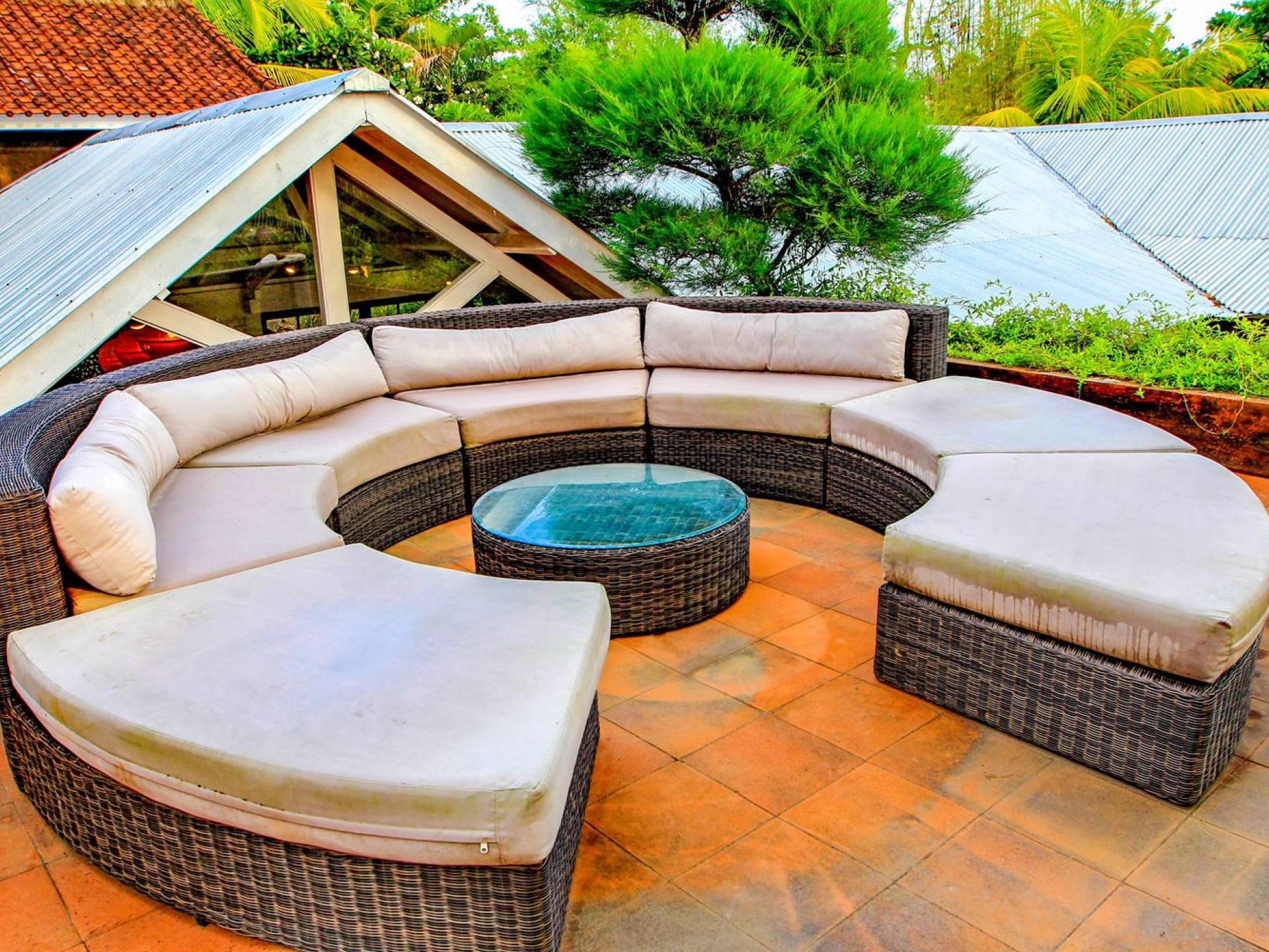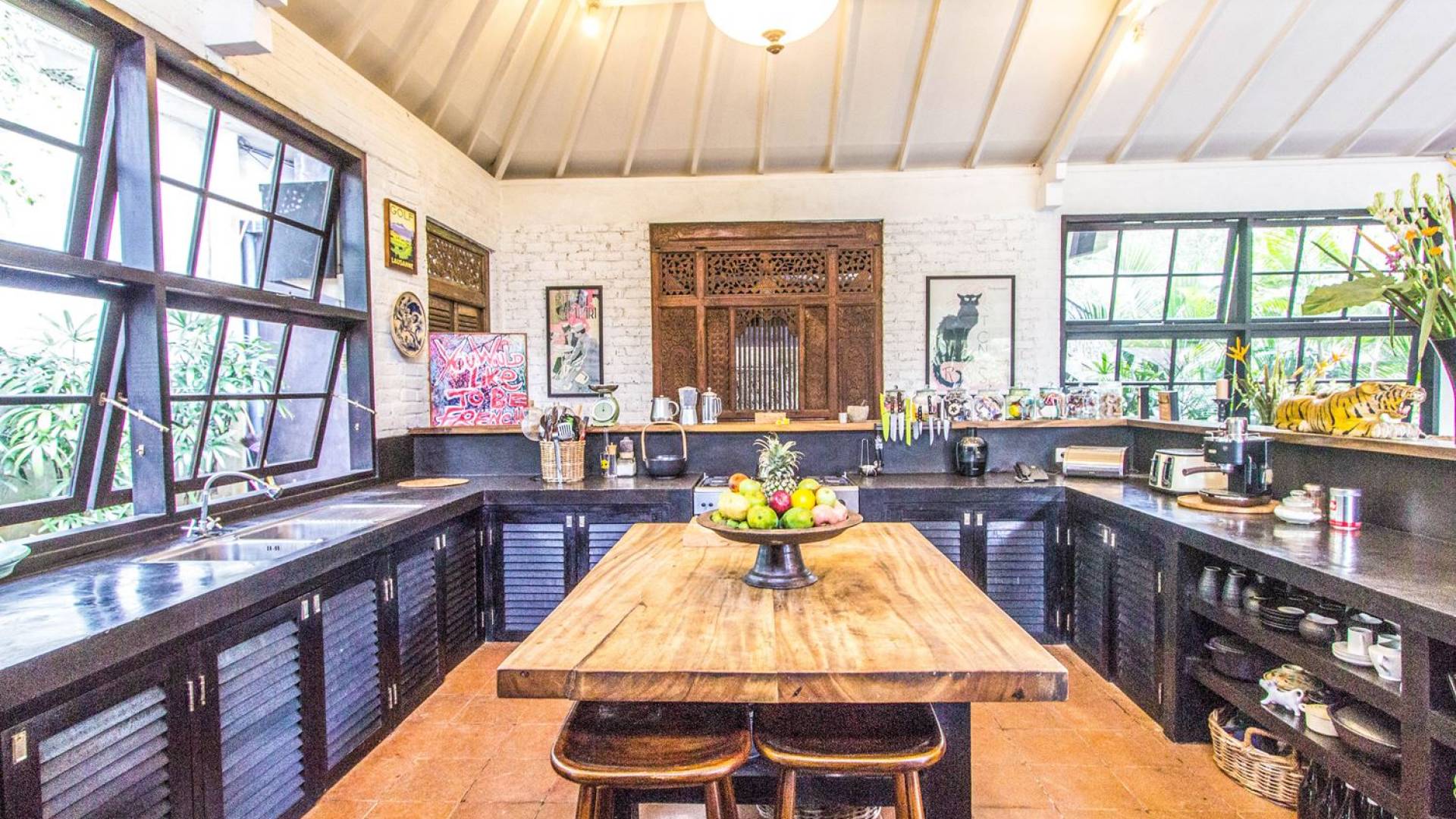 Enorme sala de estar (120 m2) con cocina abierta totalmente equipada, ambas con vistas a la piscina privada, al exuberante jardín tropical y... a los campos de arroz. Obtenga una sensación auténtica del verdadero Bali con esta villa, pero con un alto nivel de confort.