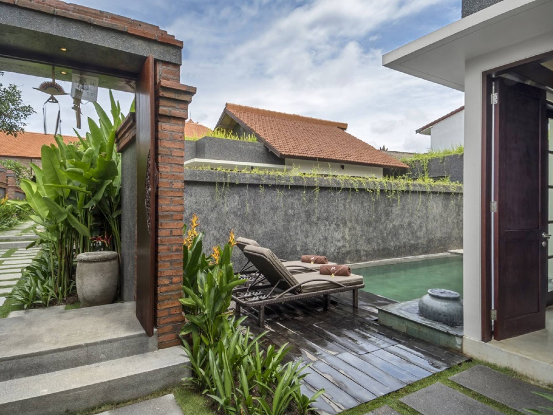 Una exuberante vegetación tropical crece sobre las altas paredes de piedra del jardín, lo que brinda una gran sensación de privacidad. La piscina de 7 x 3 metros está embaldosada con piedras naturales y no podría parecer más atractiva. Después de un baño en la piscina, se broncea en una de las dos tumbonas junto a la piscina. Toma unos cócteles, pon algo de música y pasa el día en compañía de la persona que más amas.