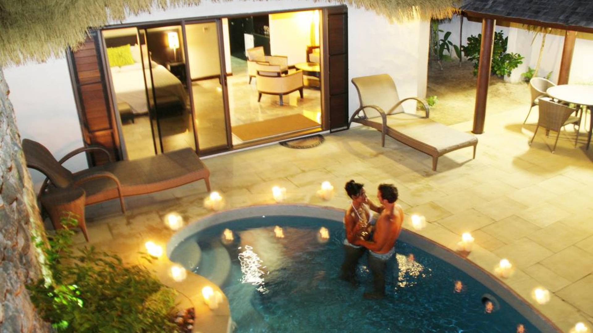 Si busca aislamiento, estas suites muy privadas ofrecen un lujo espacioso en todos los sentidos, desde las altas paredes de piedra, el cenador al aire libre, su propia piscina privada, muebles de alta calidad y más ... pero solo un salto -salto desde la playa de arena y laguna turquesa. Las suites cuentan con una cama king-size, sala de estar con centro de entretenimiento, cocineta y un elegante baño con su propia bañera con patas y ducha de lluvia doble monzón. Altos muros de piedra, jardines tropicales, una piscina privada y un cenador para comer al aire libre rodean un gran patio abierto. Nuestras suites ofrecen la máxima privacidad y son perfectas para lunas de miel y amantes.