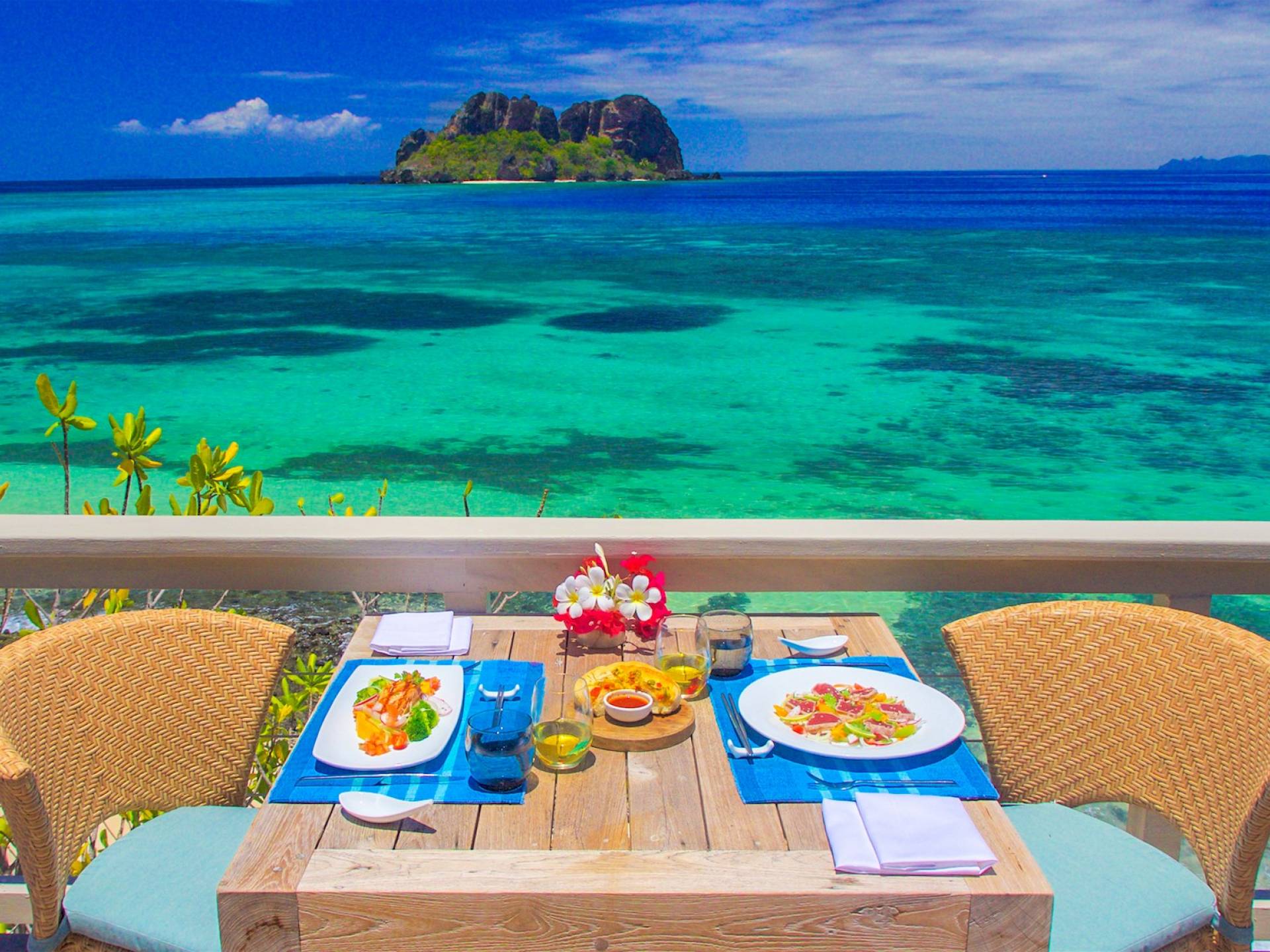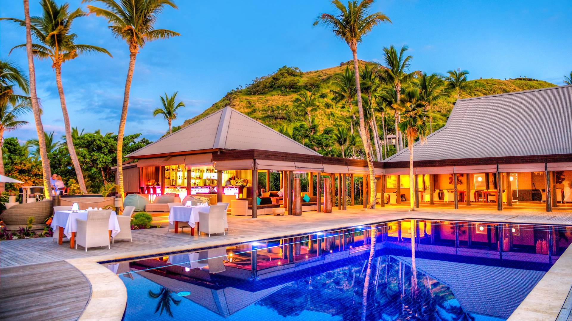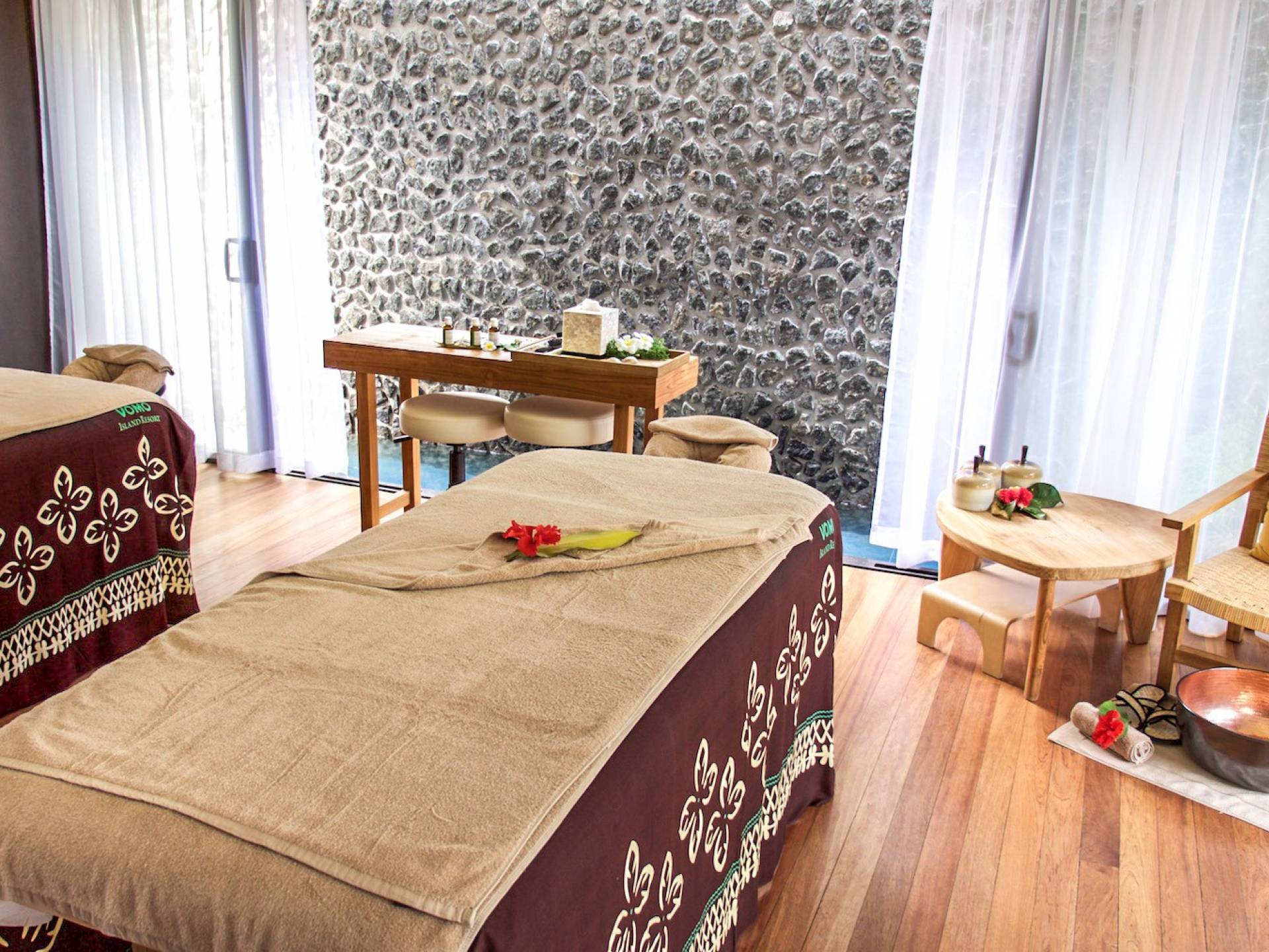 La exquisita isla de Vomo tiene 225 acres y un viaje en helicóptero de 15 minutos desde el Aeropuerto Internacional Nadi de Fiji. Playas de arena blanca y suave rodean la isla, que está rodeada de campos cuidados y exuberante vegetación natural.