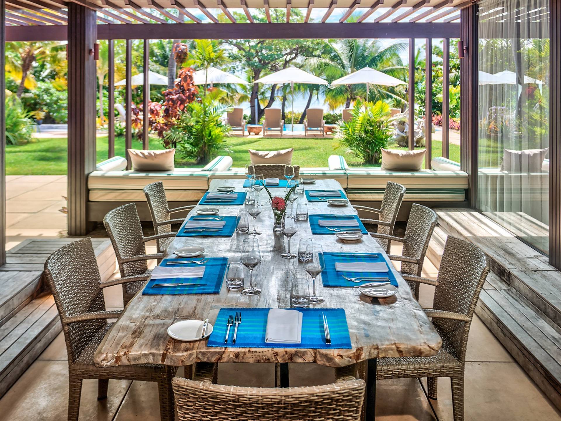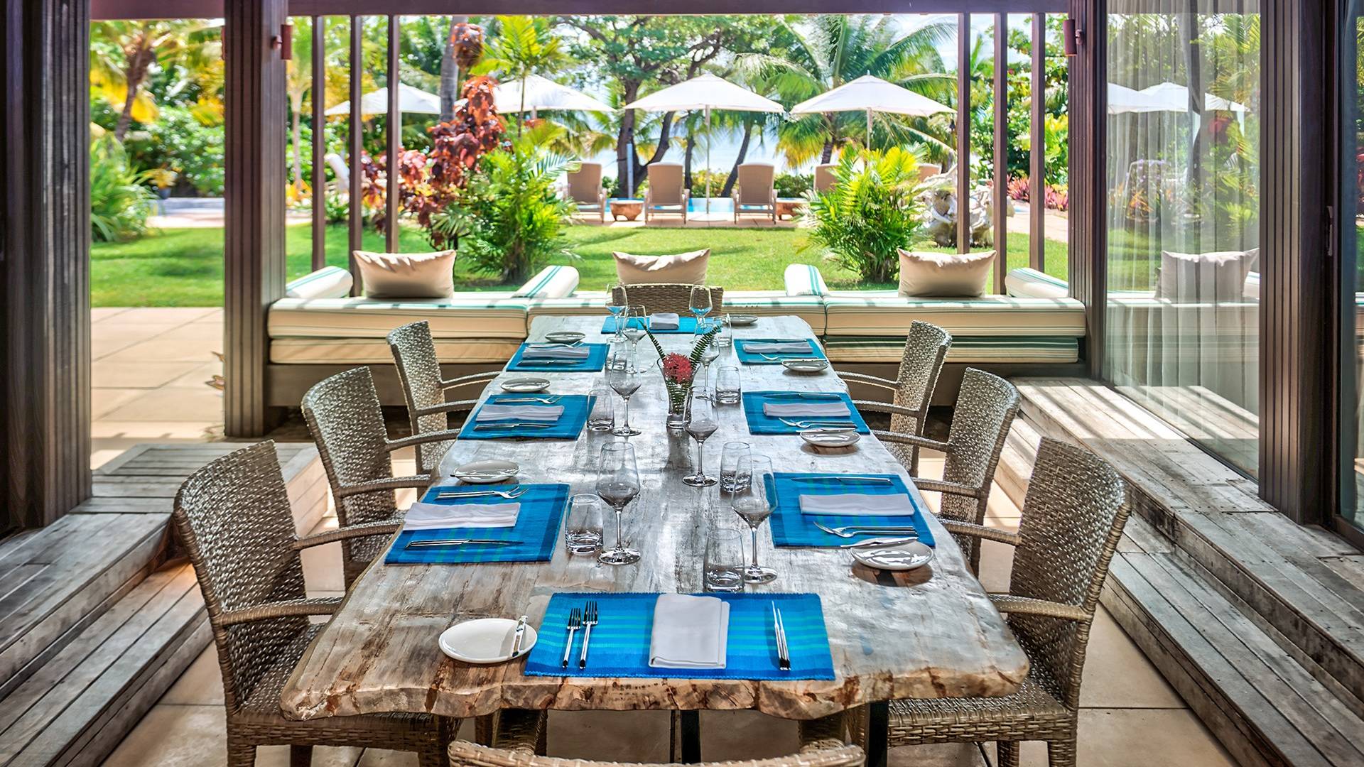 Ubicada en la playa y distribuida en tres pabellones, The Residence brinda a hasta ocho huéspedes la oportunidad de experimentar lo último en privacidad y la sofisticada vida isleña en su propio complejo. Hay 4 dormitorios, con baños en suite. Con muebles cómodos y amplias salas de estar de planta abierta, The Residence también incluye una cocina completa para catering en el lugar, servicios de conserjería de villa de guardia, sala de estar, áreas de comedor interior y exterior y su piscina privada con altavoces de música al aire libre, tumbonas, y sombrillas, brindando el lugar perfecto para relajarse y disfrutar de la vida de lujo en la isla.