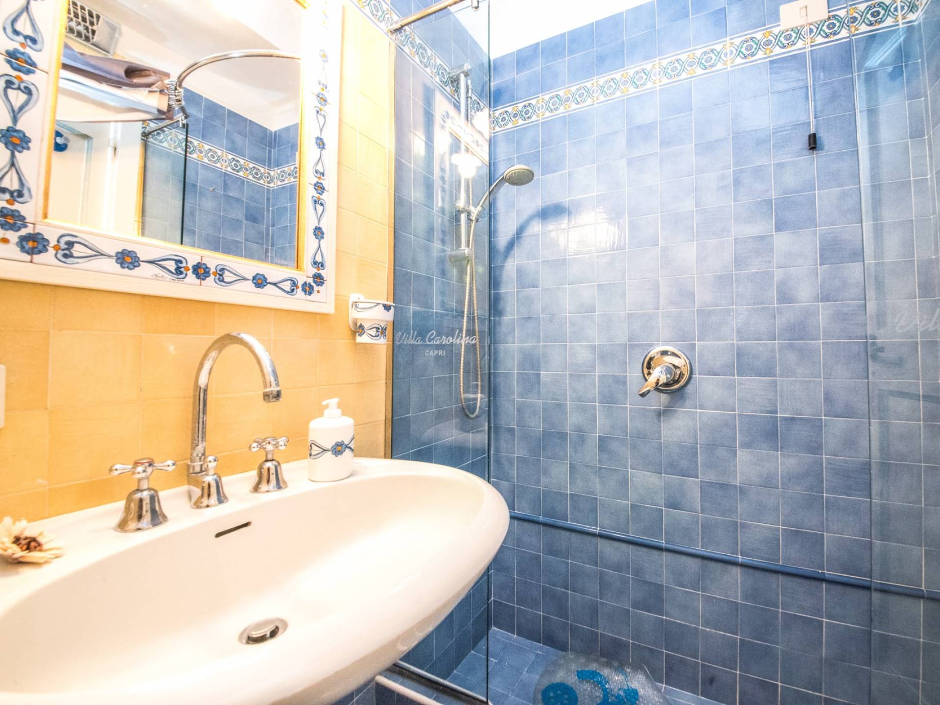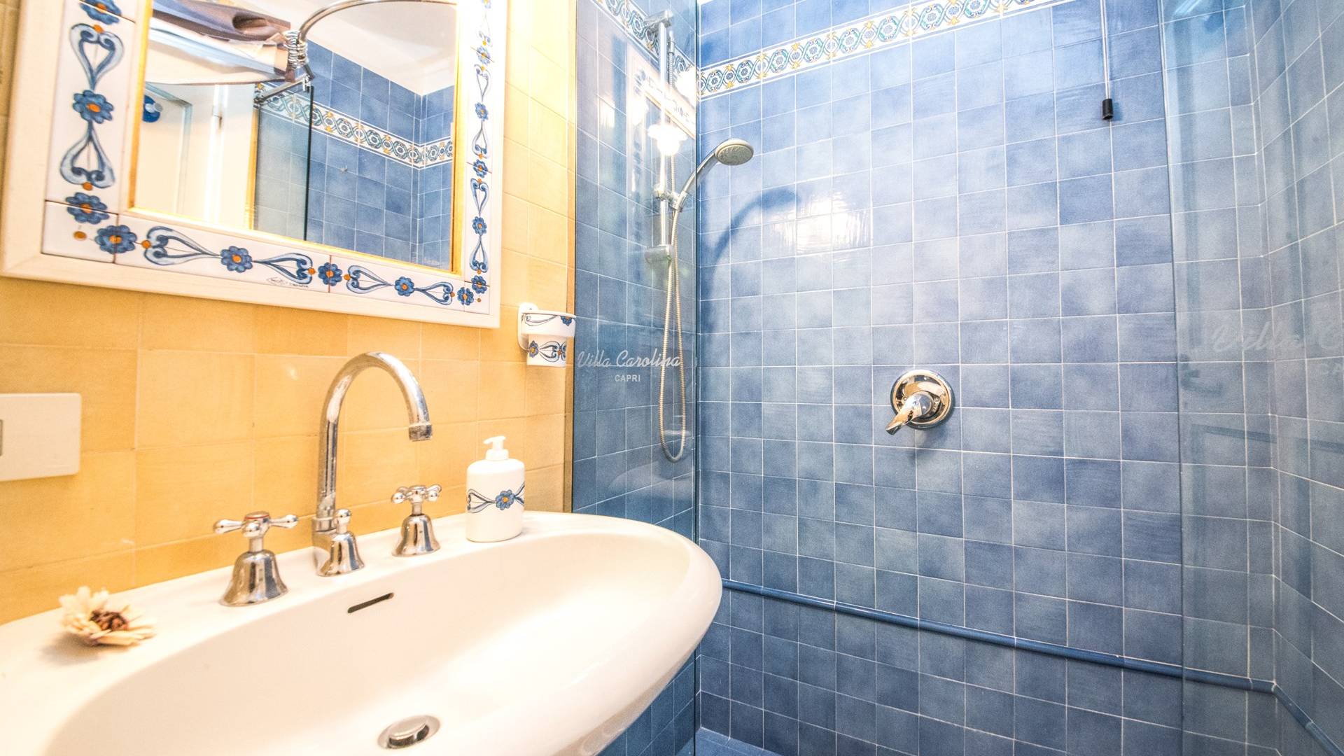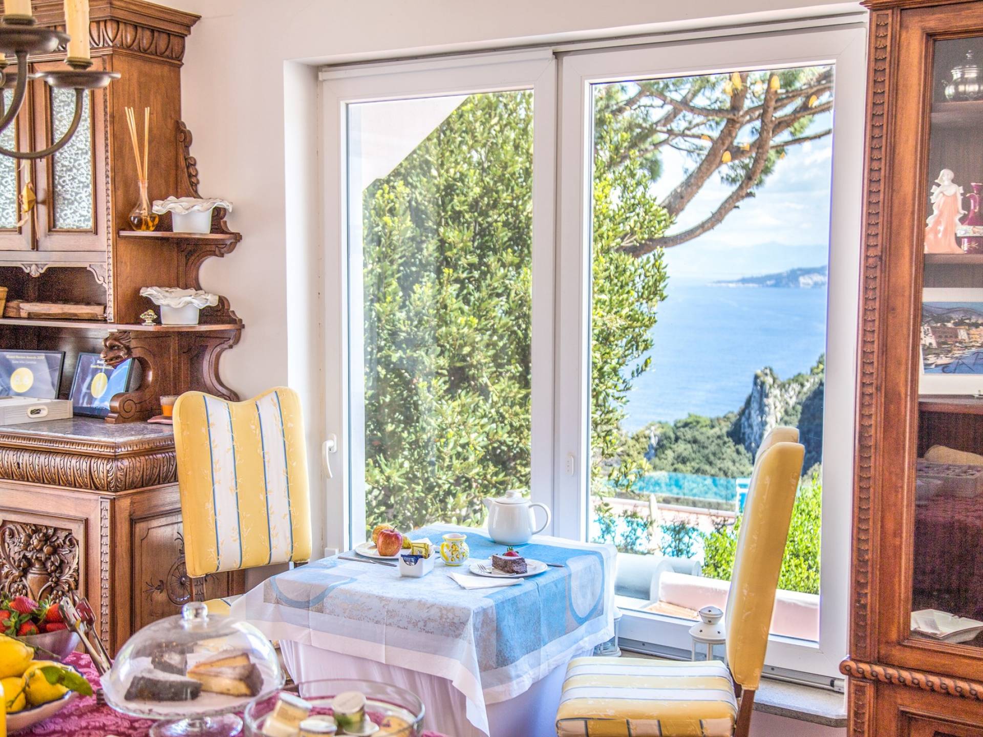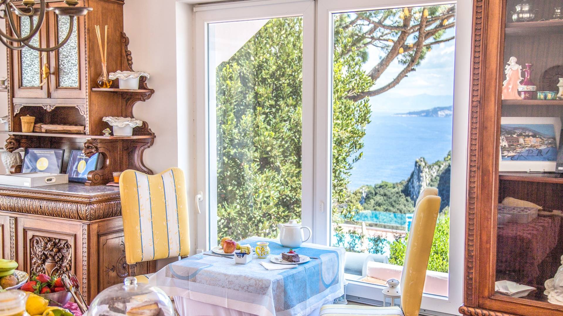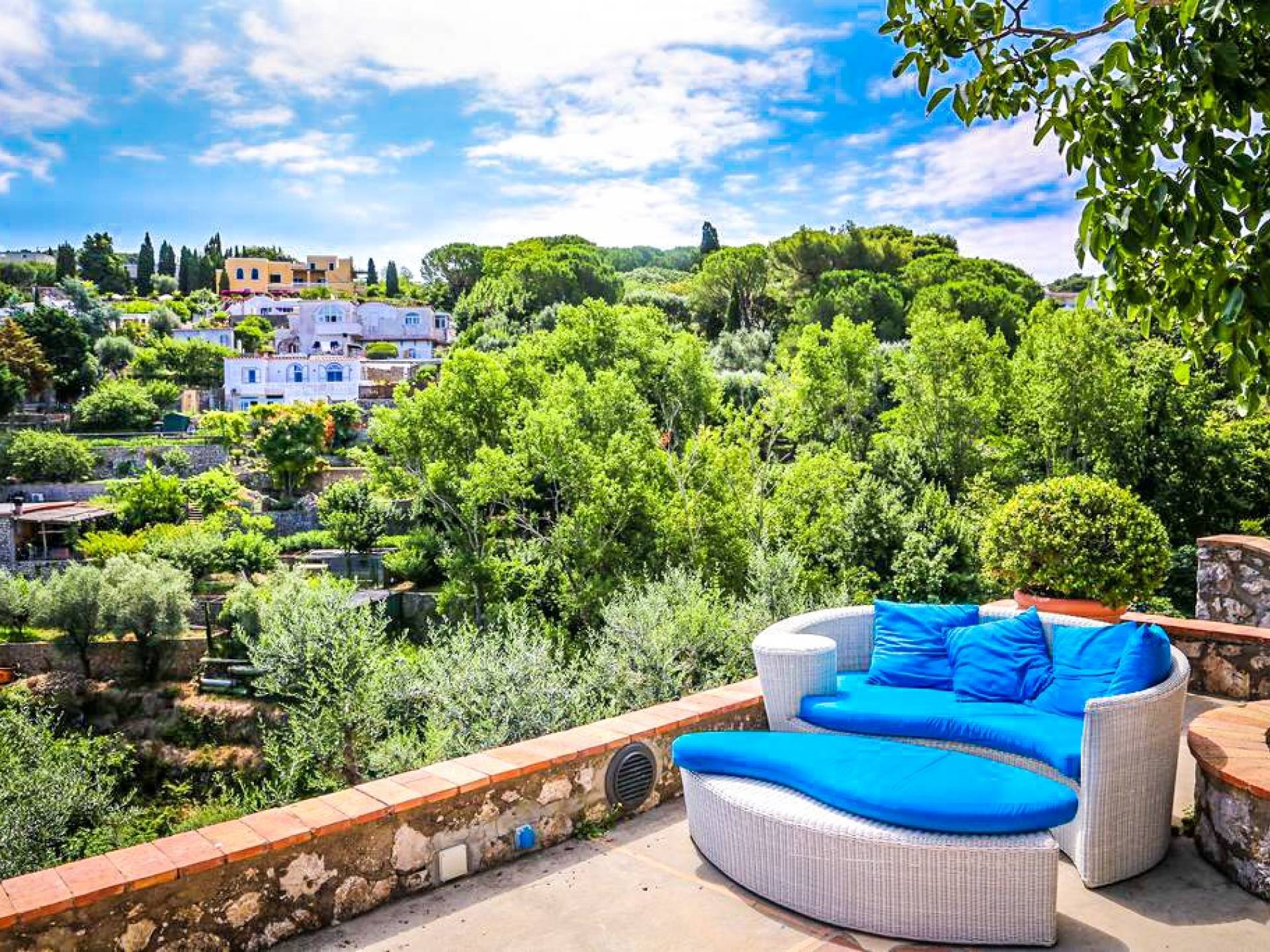 Ubicada dentro de la encantadora isla de Capri, ubicada en un punto alto, la casa de tres niveles ofrece vistas del paisaje escénico desde casi todos los ángulos: desde la famosa Piazzetta, caminando por la pintoresca Via Le Botteghe, se puede caminar hasta la villa son unos 18 minutos, con una vista impresionante, varias pequeñas tiendas típicas y calles típicas de Capri en el camino.