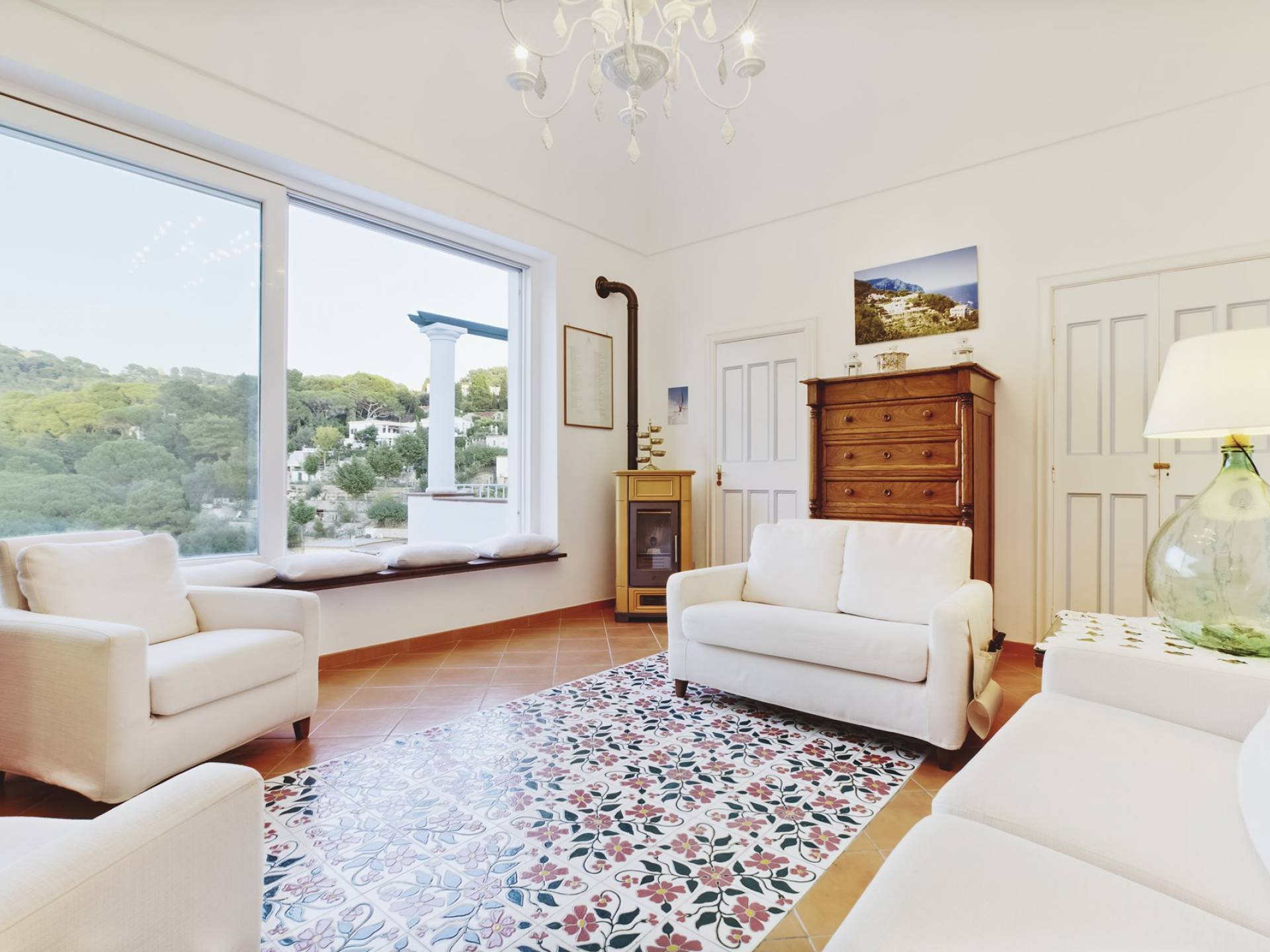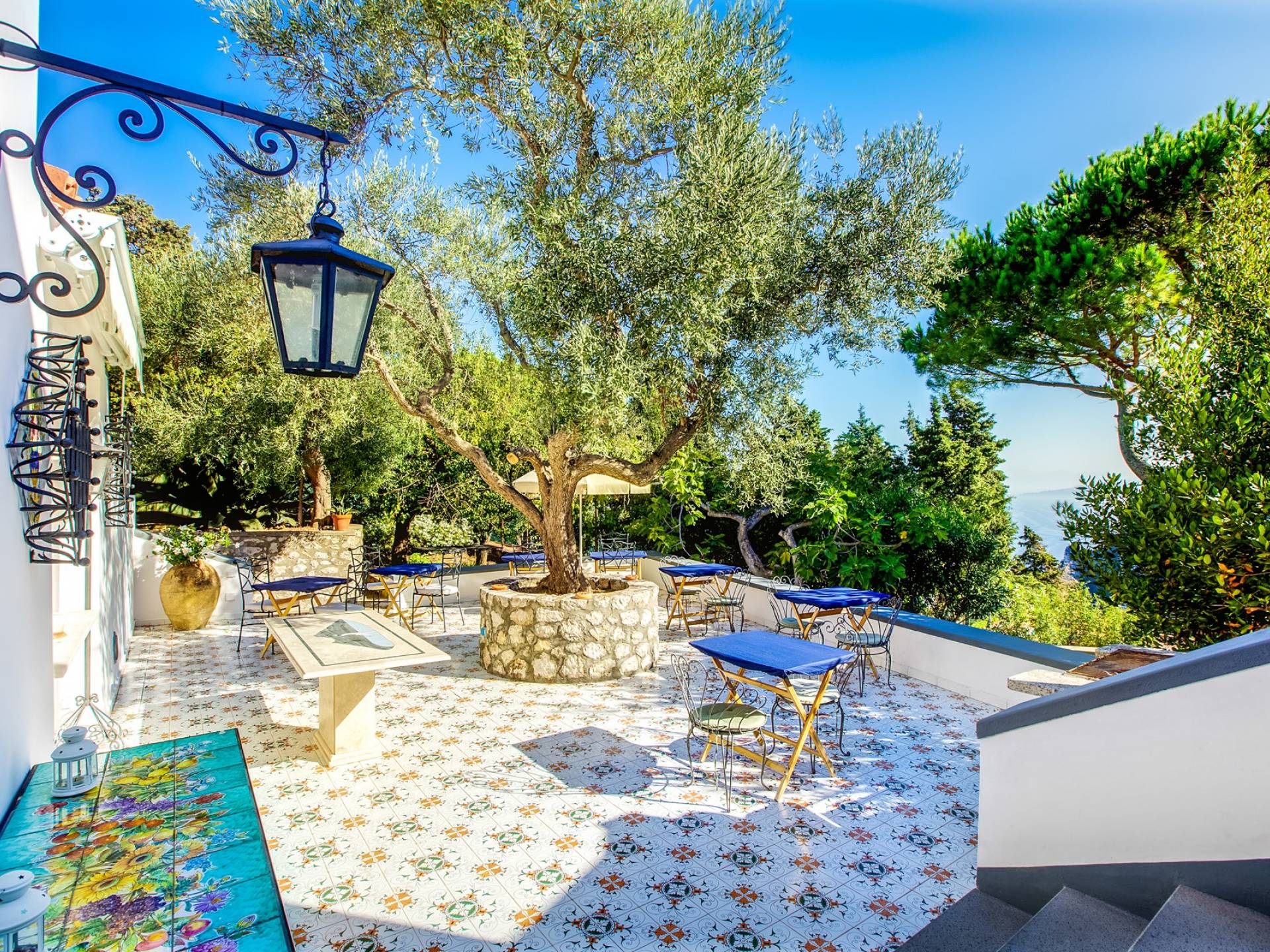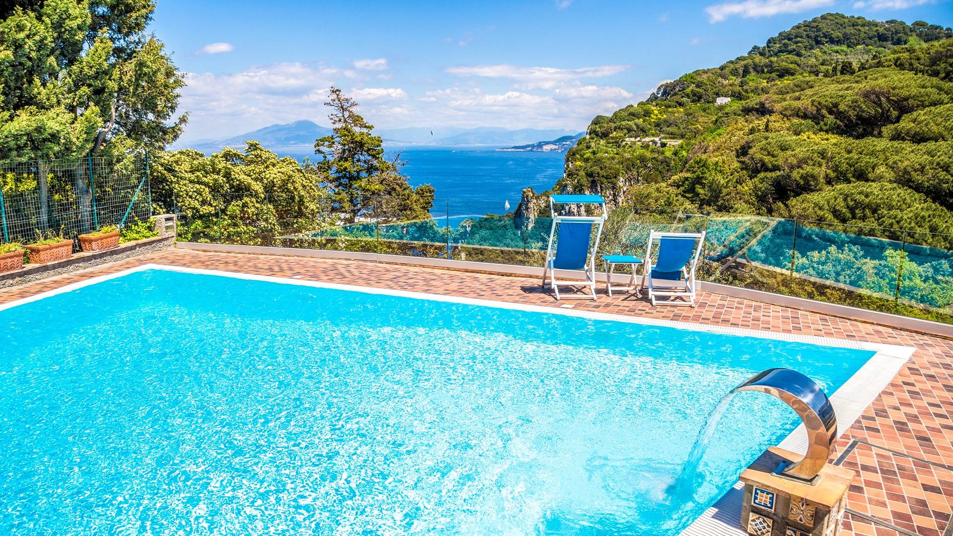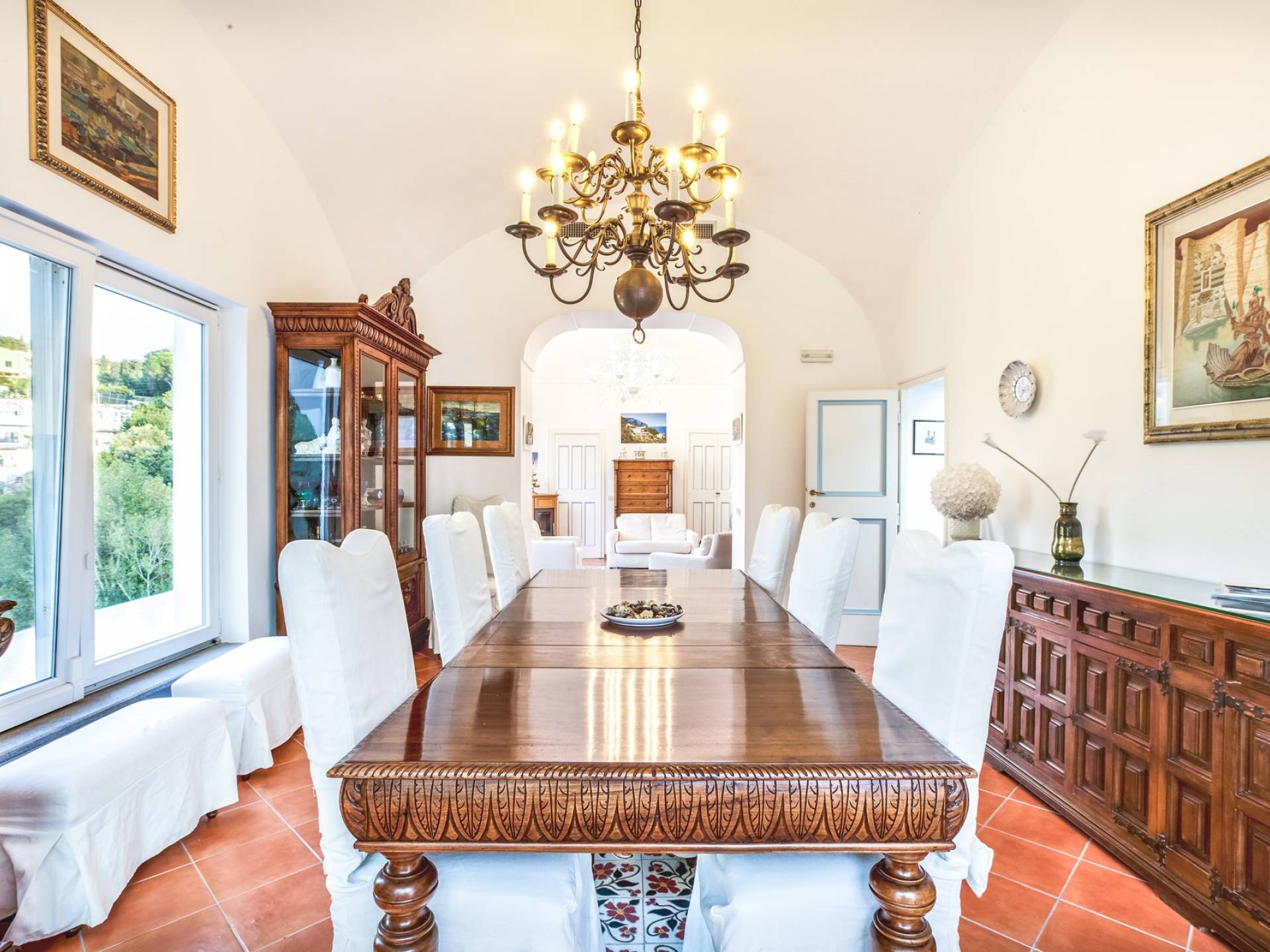 En una terraza de terracota, hay una piscina exterior desde donde se pueden divisar el Vesubio y el Golfo de Nápoles, un solárium y un jacuzzi exterior de 4 plazas. Escondida, pero muy cerca del centro de la ciudad, esta finca ofrece cinco habitaciones decoradas con un estilo elegante con paredes, telas contemporáneas y varios muebles a medida de artesanos italianos locales. La propiedad incluye 2.500 metros cuadrados de jardines privados. El interior de la propiedad mide 400 metros cuadrados y tiene capacidad para un total de 10 adultos y 4 amigos o empleados adicionales en sofás cama. Se usa mejor para 10 personas, en total. El diseño de la vivienda, abordado con la investigación en el contexto histórico, da como resultado un estilo clásico con baldosas cerámicas. Residencia de finales del siglo XIX en estilo mediterráneo clásico recientemente restaurada, la villa ha conservado su característica arquitectura caprese agregando las comodidades que ofrece la tecnología moderna, como la piscina infinita con vista al mar, la sauna y el jacuzzi, así como una colección de arte. y libros de ficción. Moderno pero muy cómodo, este es un refugio contemporáneo lleno de luz y un ambiente acogedor.