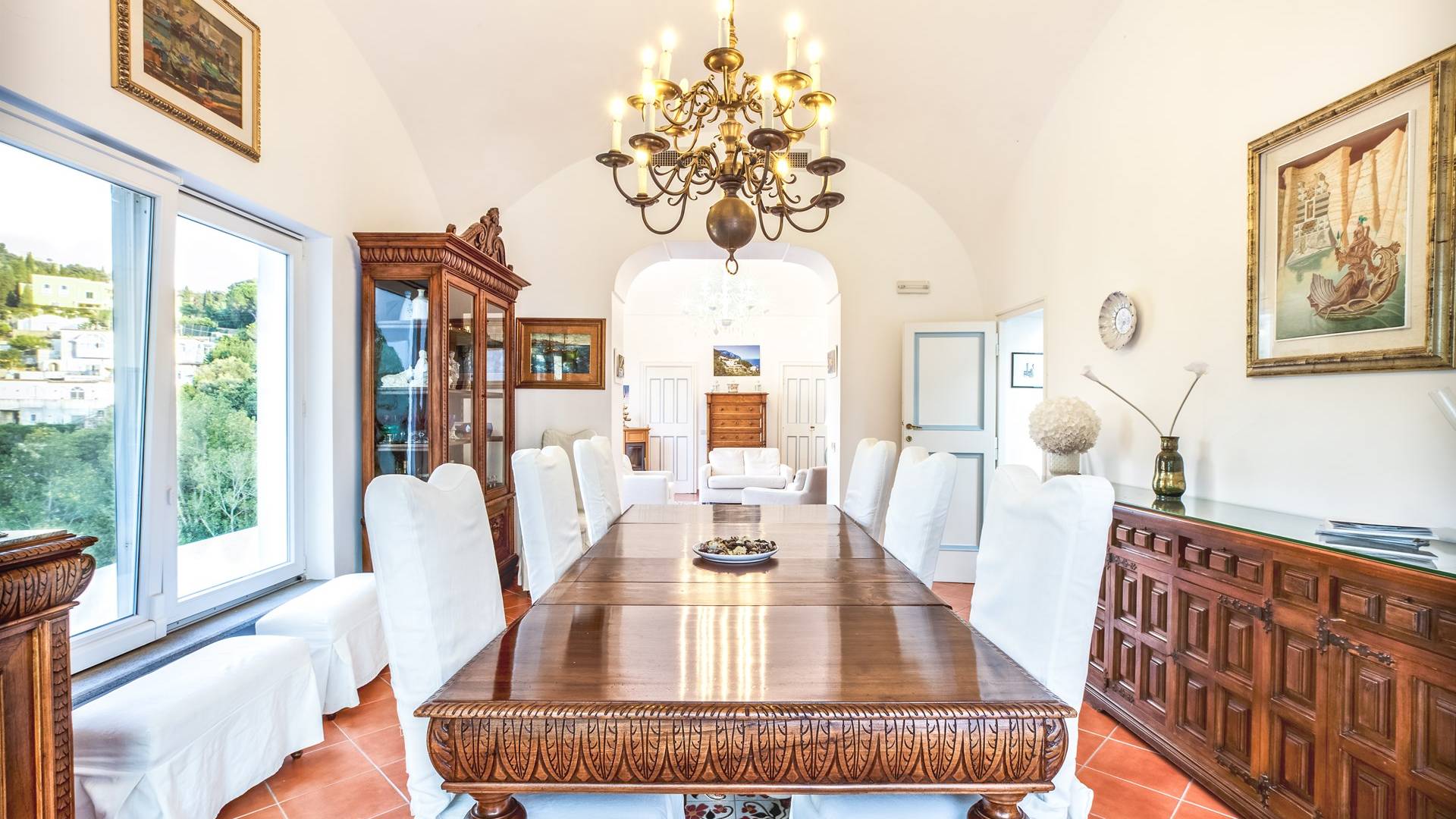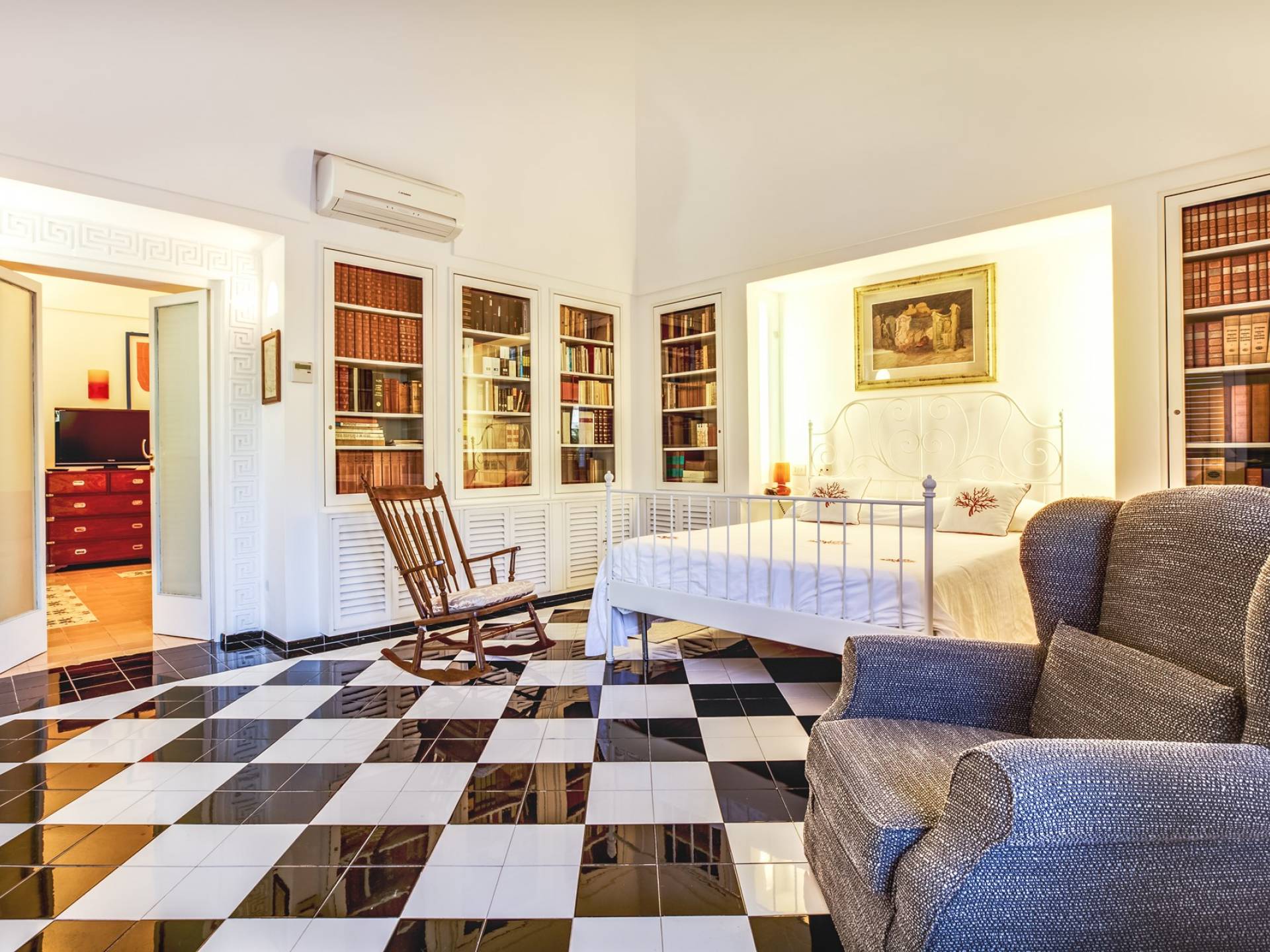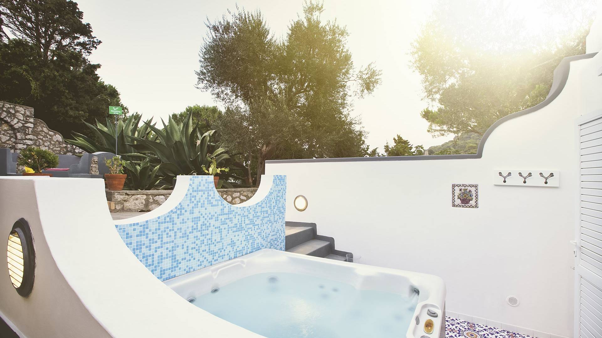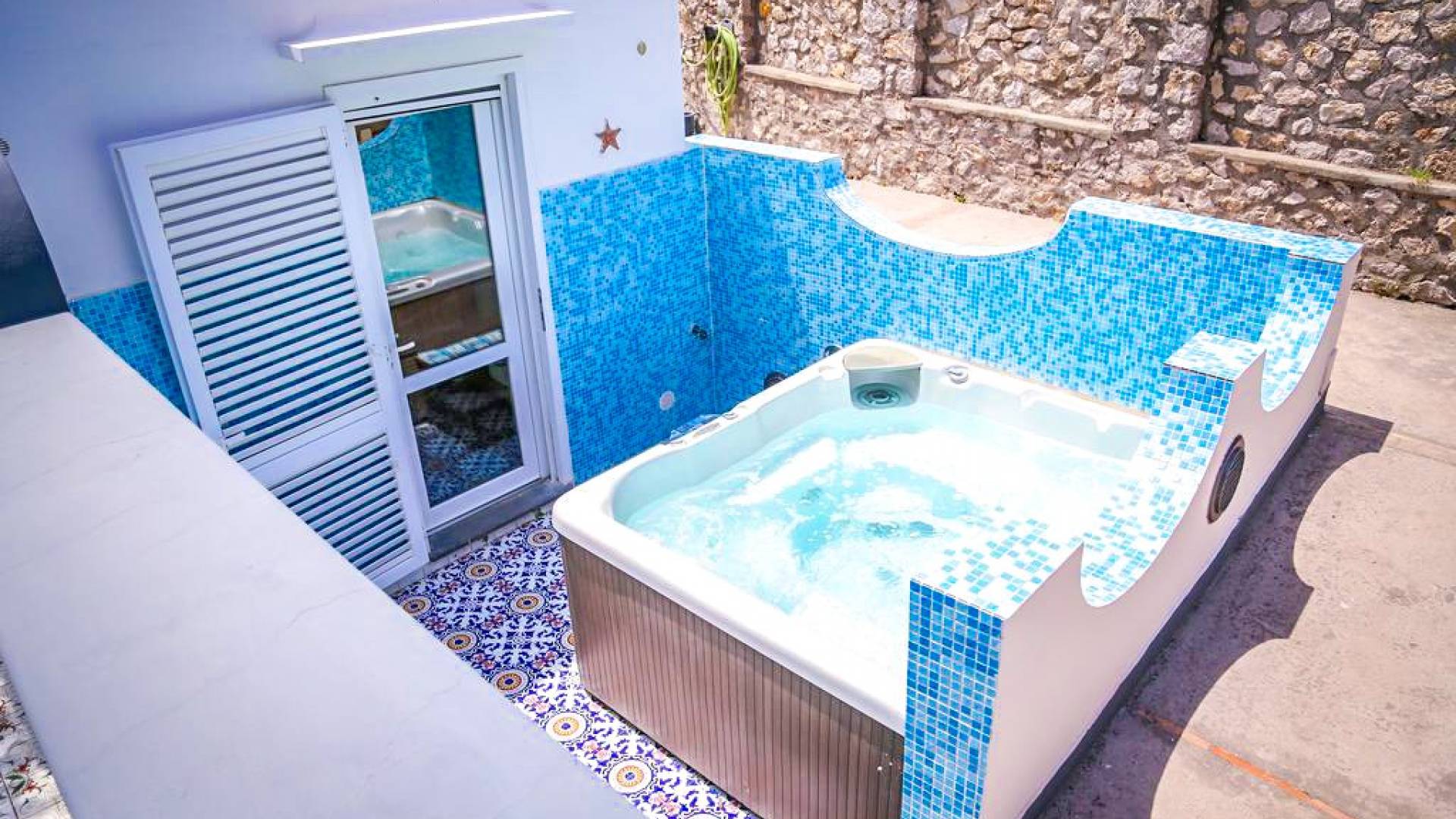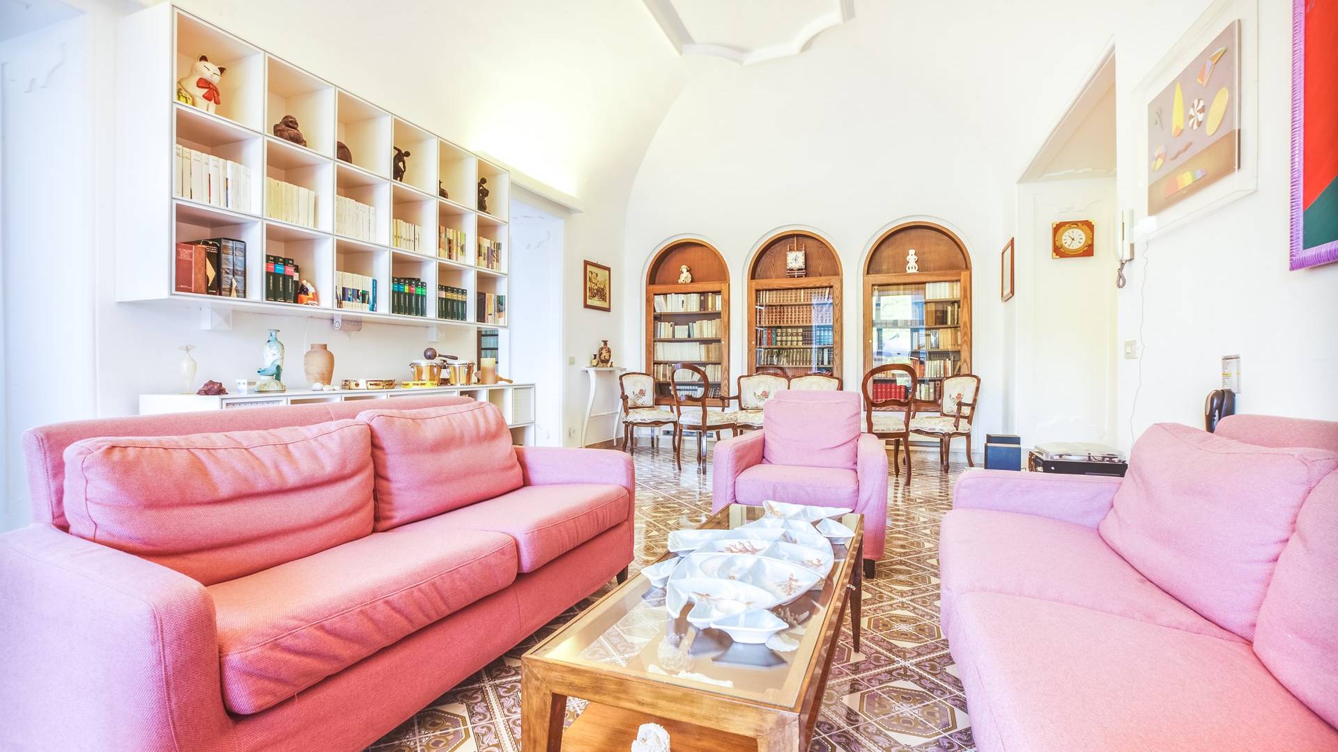 En una terraza de terracota, hay una piscina exterior desde donde se pueden divisar el Vesubio y el Golfo de Nápoles, un solárium y un jacuzzi exterior de 4 plazas. Escondida, pero muy cerca del centro de la ciudad, esta finca ofrece cinco habitaciones decoradas con un estilo elegante con paredes, telas contemporáneas y varios muebles a medida de artesanos italianos locales. La propiedad incluye 2.500 metros cuadrados de jardines privados. El interior de la propiedad mide 400 metros cuadrados y tiene capacidad para un total de 10 adultos y 4 amigos o empleados adicionales en sofás cama. Se usa mejor para 10 personas, en total. El diseño de la vivienda, abordado con la investigación en el contexto histórico, da como resultado un estilo clásico con baldosas cerámicas. Residencia de finales del siglo XIX en estilo mediterráneo clásico recientemente restaurada, la villa ha conservado su característica arquitectura caprese agregando las comodidades que ofrece la tecnología moderna, como la piscina infinita con vista al mar, la sauna y el jacuzzi, así como una colección de arte. y libros de ficción. Moderno pero muy cómodo, este es un refugio contemporáneo lleno de luz y un ambiente acogedor.