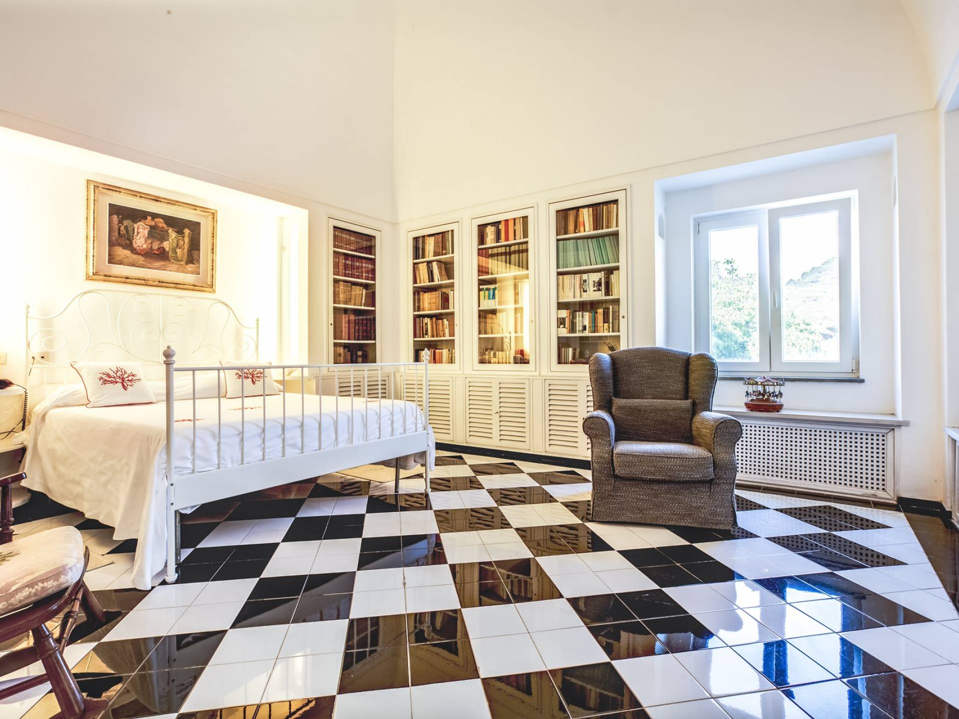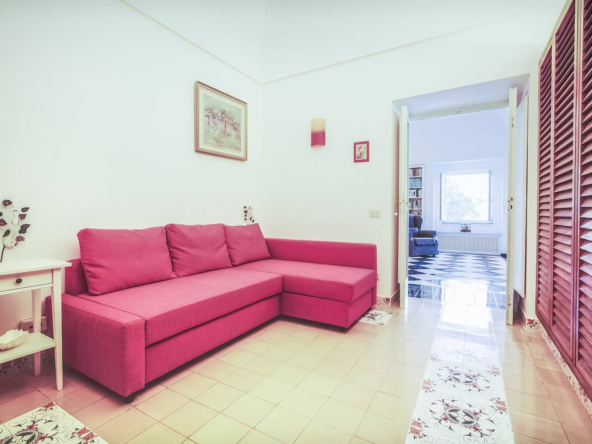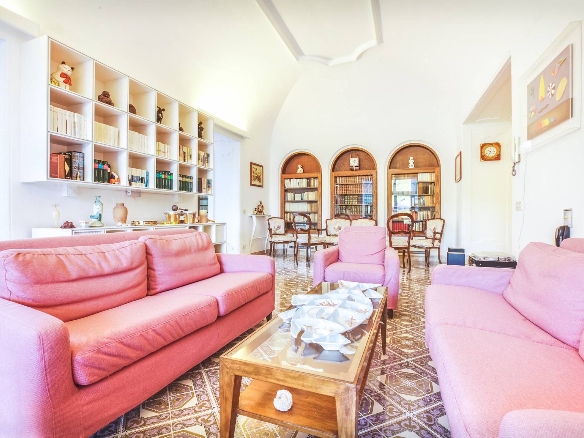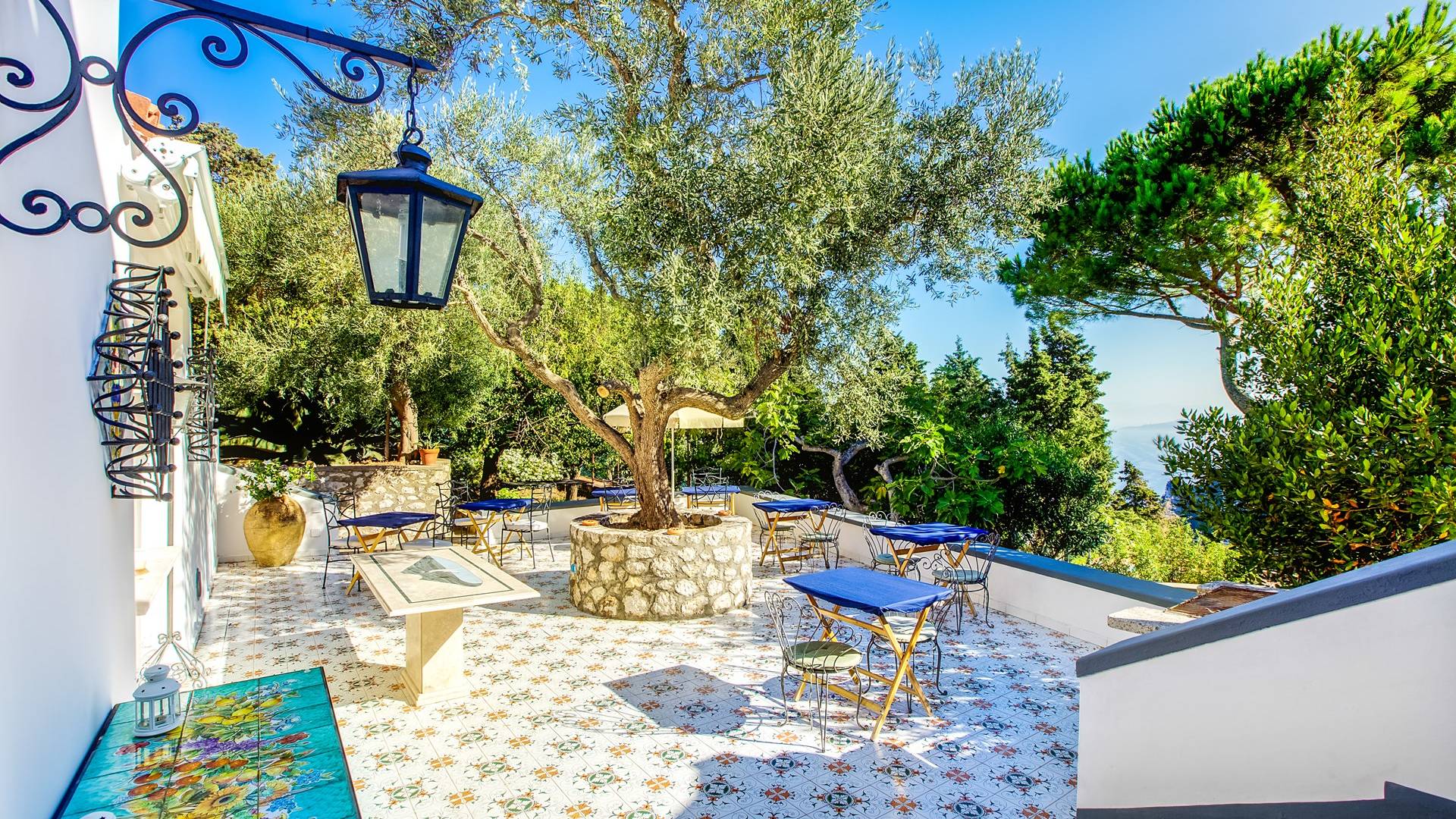 En una terraza de terracota, hay una piscina exterior desde donde se pueden divisar el Vesubio y el Golfo de Nápoles, un solárium y un jacuzzi exterior de 4 plazas. Escondida, pero muy cerca del centro de la ciudad, esta finca ofrece cinco habitaciones decoradas con un estilo elegante con paredes, telas contemporáneas y varios muebles a medida de artesanos italianos locales. La propiedad incluye 2.500 metros cuadrados de jardines privados. El interior de la propiedad mide 400 metros cuadrados y tiene capacidad para un total de 10 adultos y 4 amigos o empleados adicionales en sofás cama. Se usa mejor para 10 personas, en total. El diseño de la vivienda, abordado con la investigación en el contexto histórico, da como resultado un estilo clásico con baldosas cerámicas. Residencia de finales del siglo XIX en estilo mediterráneo clásico recientemente restaurada, la villa ha conservado su característica arquitectura caprese agregando las comodidades que ofrece la tecnología moderna, como la piscina infinita con vista al mar, la sauna y el jacuzzi, así como una colección de arte. y libros de ficción. Moderno pero muy cómodo, este es un refugio contemporáneo lleno de luz y un ambiente acogedor.