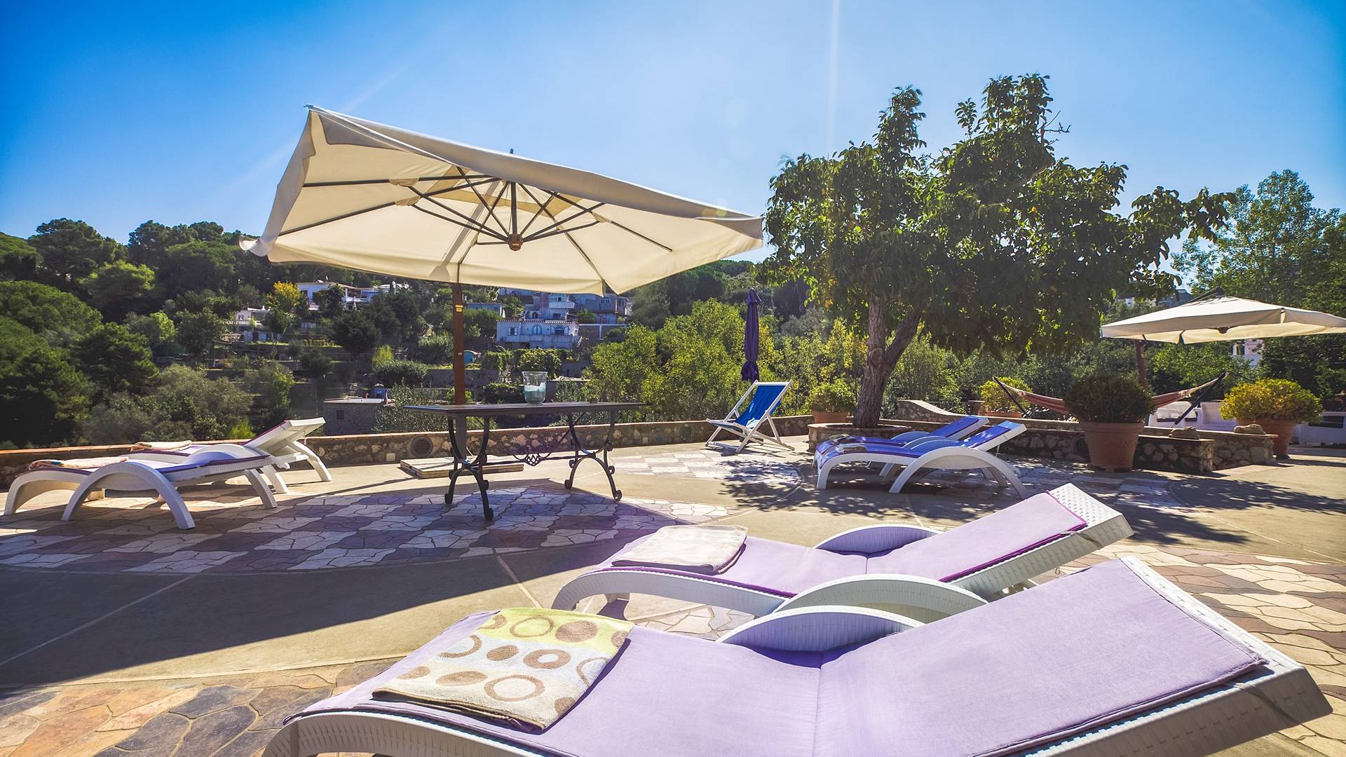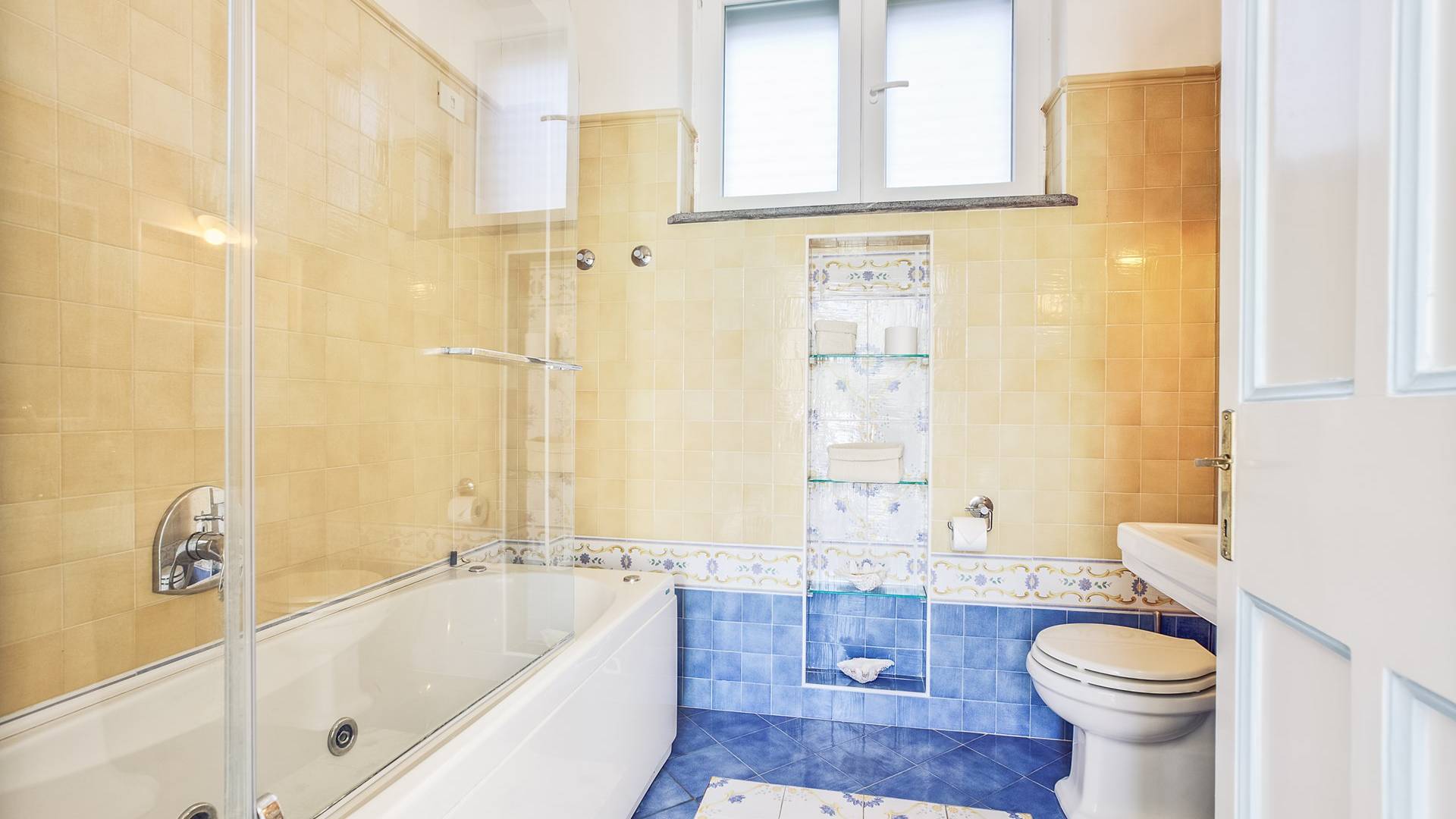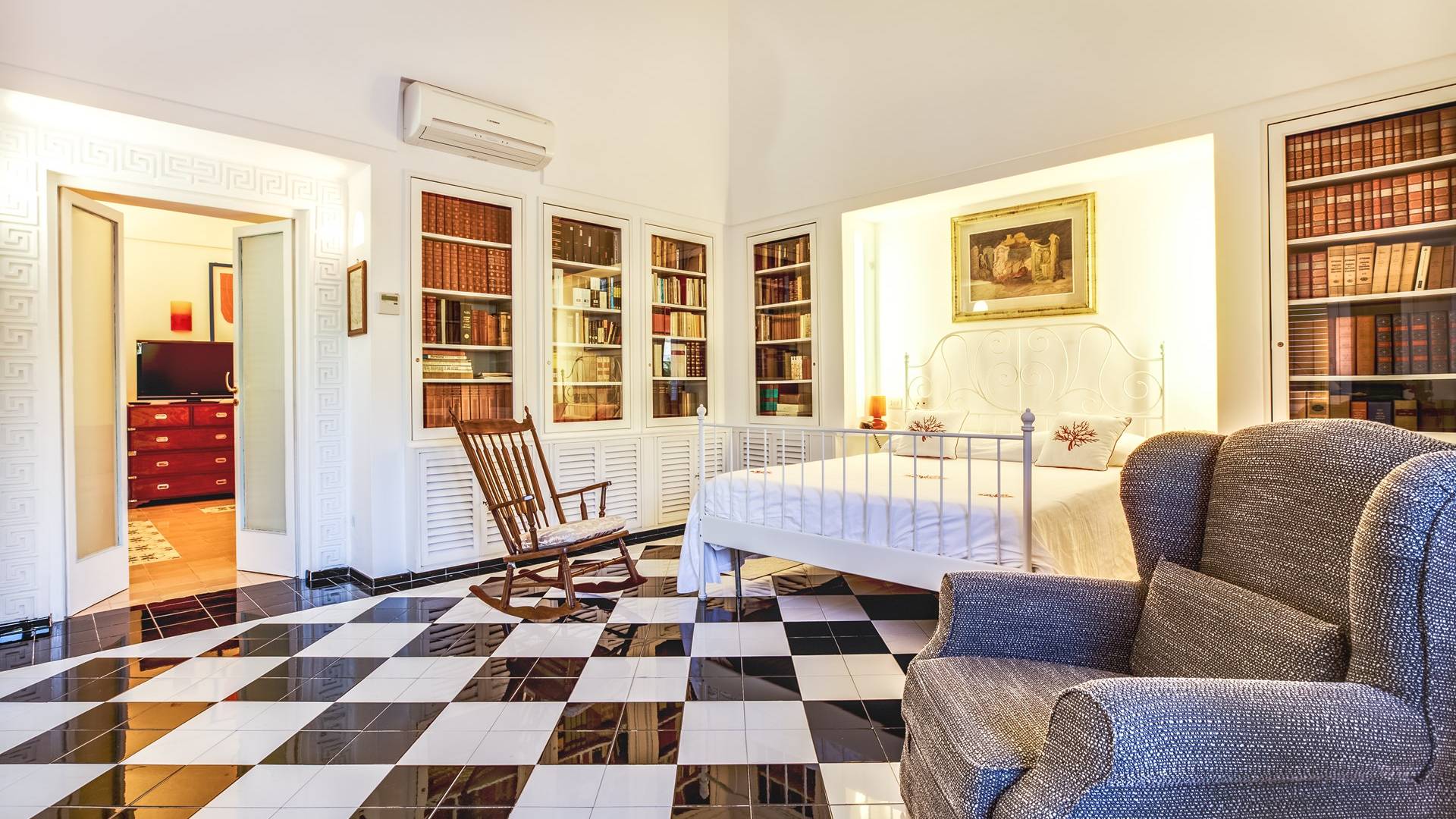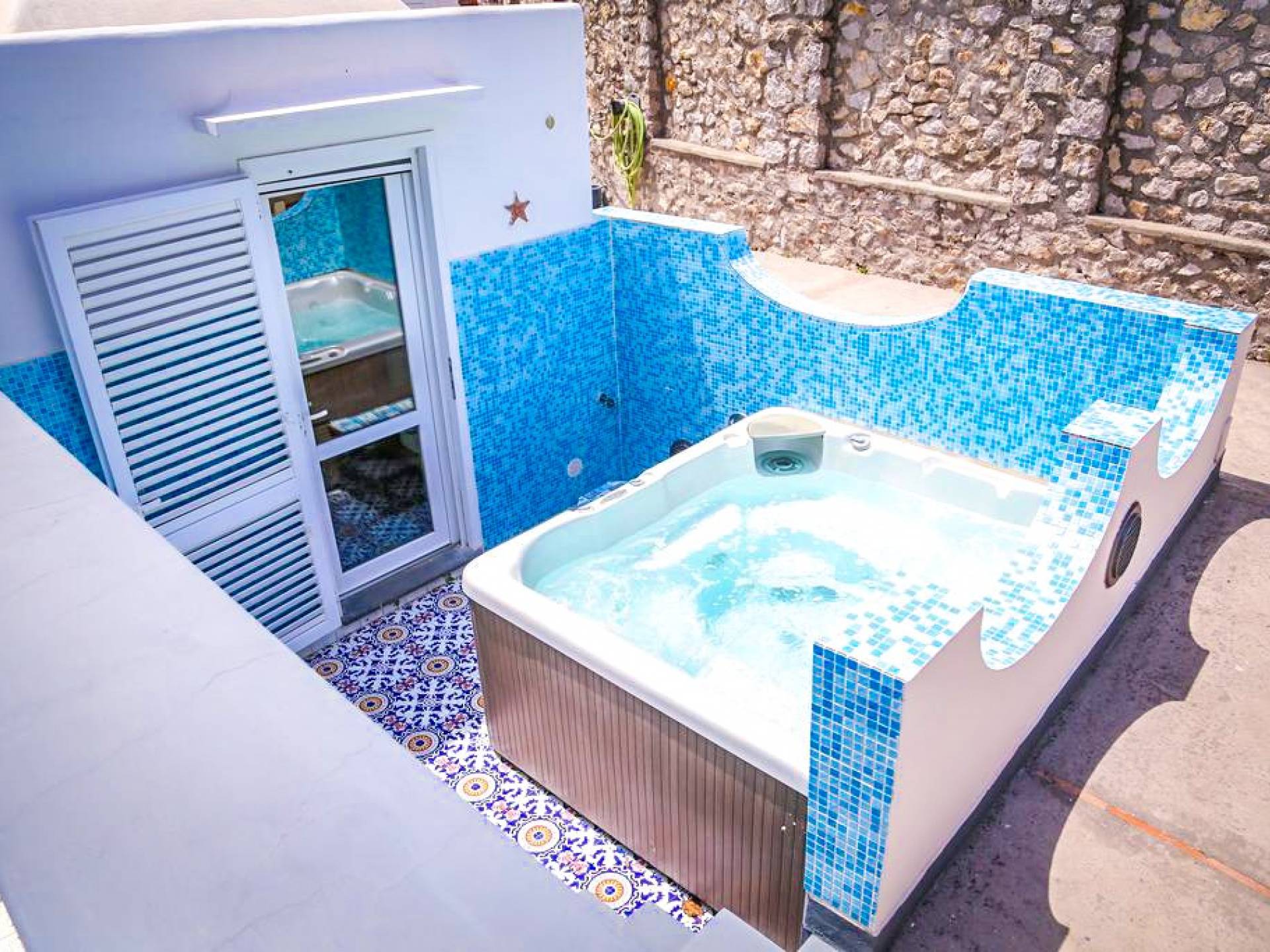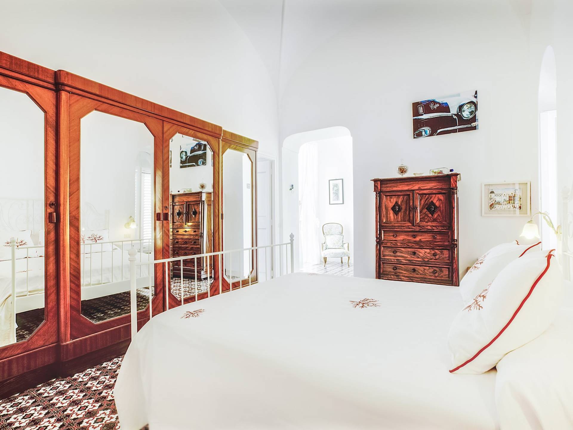 En una terraza de terracota, hay una piscina exterior desde donde se pueden divisar el Vesubio y el Golfo de Nápoles, un solárium y un jacuzzi exterior de 4 plazas. Escondida, pero muy cerca del centro de la ciudad, esta finca ofrece cinco habitaciones decoradas con un estilo elegante con paredes, telas contemporáneas y varios muebles a medida de artesanos italianos locales. La propiedad incluye 2.500 metros cuadrados de jardines privados. El interior de la propiedad mide 400 metros cuadrados y tiene capacidad para un total de 10 adultos y 4 amigos o empleados adicionales en sofás cama. Se usa mejor para 10 personas, en total. El diseño de la vivienda, abordado con la investigación en el contexto histórico, da como resultado un estilo clásico con baldosas cerámicas. Residencia de finales del siglo XIX en estilo mediterráneo clásico recientemente restaurada, la villa ha conservado su característica arquitectura caprese agregando las comodidades que ofrece la tecnología moderna, como la piscina infinita con vista al mar, la sauna y el jacuzzi, así como una colección de arte. y libros de ficción. Moderno pero muy cómodo, este es un refugio contemporáneo lleno de luz y un ambiente acogedor.